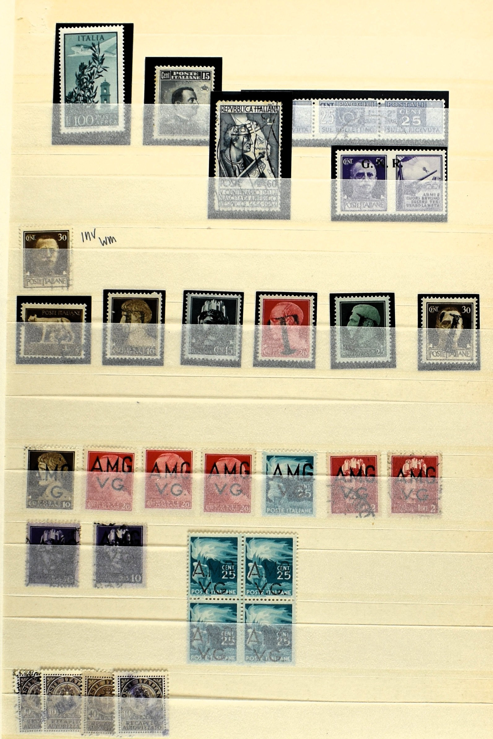 ITALY 1853-2003, o/*/** old stock in 3 albums and 3 stock books with several better numbers and sets; Airmail, Parcel Post Stamps, Postal Stationary, Occupation, Colonies, Triest, Fiume etc. Nice lot with a high catalogue value. For