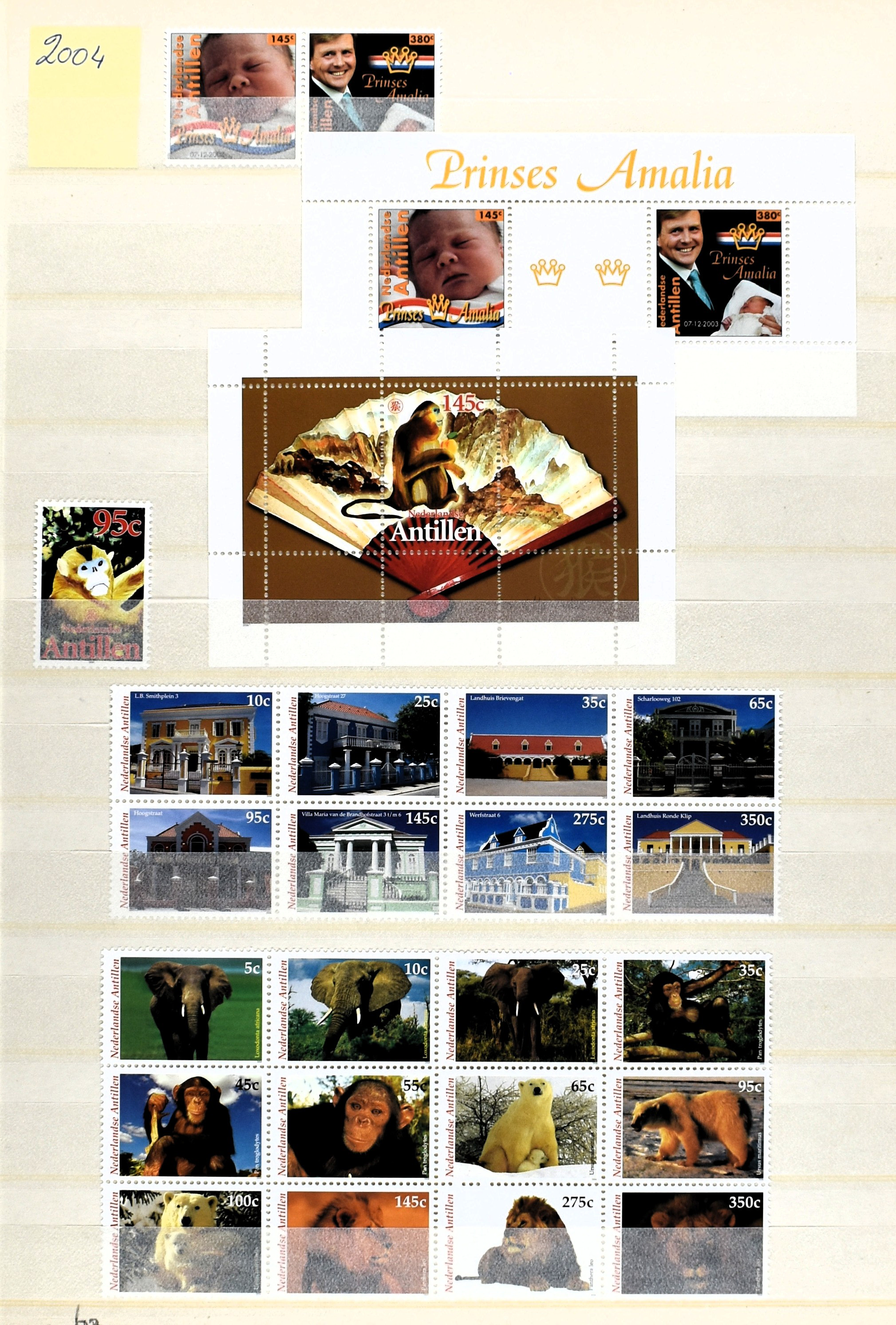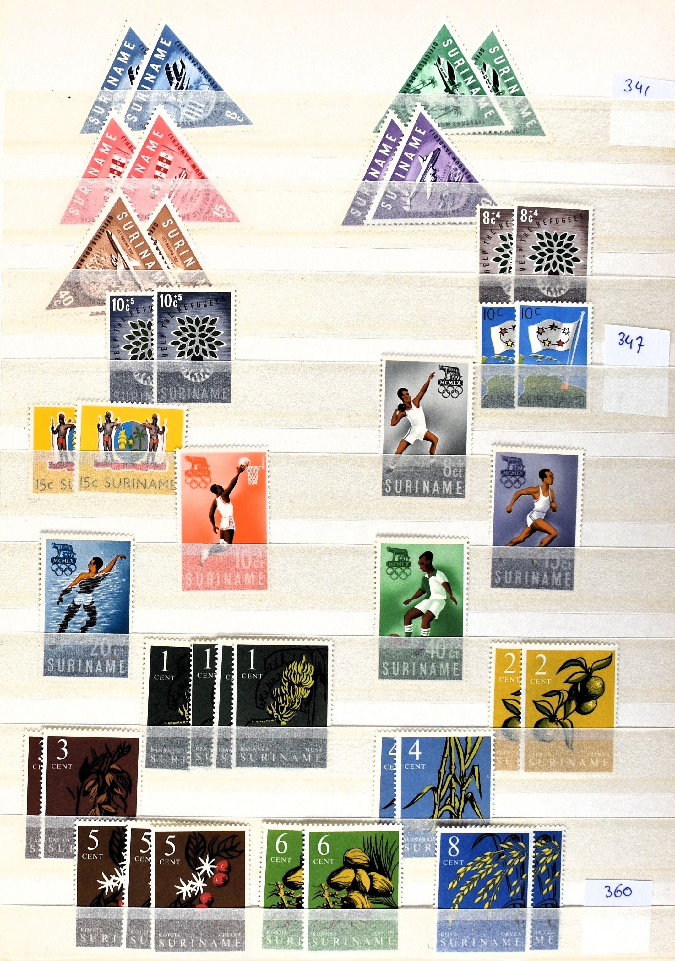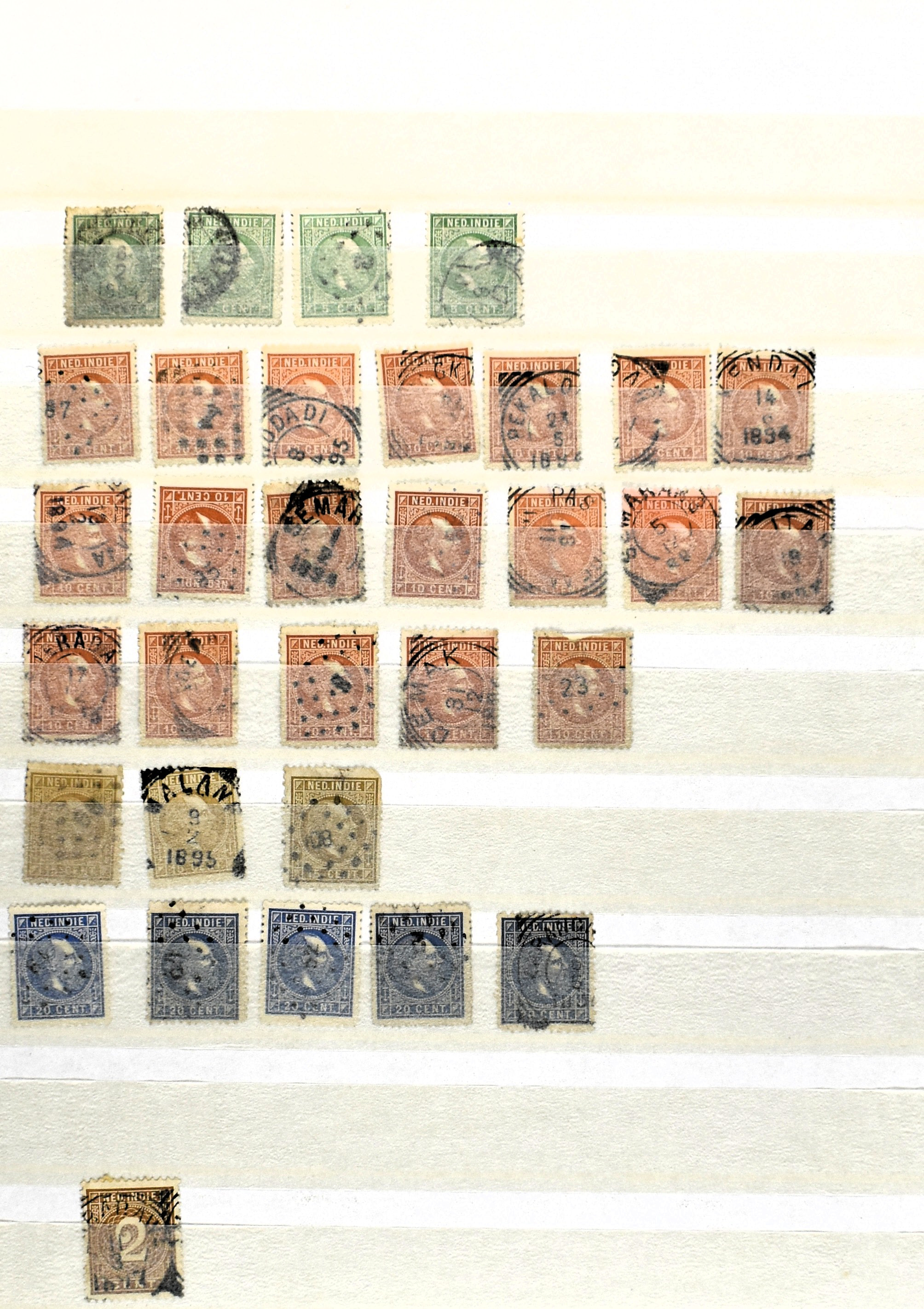 OVERZEESE GEBIEDSDELEN 1870-2005, o/*/** in 8 albums en 3 stockboeken waarbij Nederlands Indië, Aruba, Nederlandse Antillen en Suriname. In 2 dozen