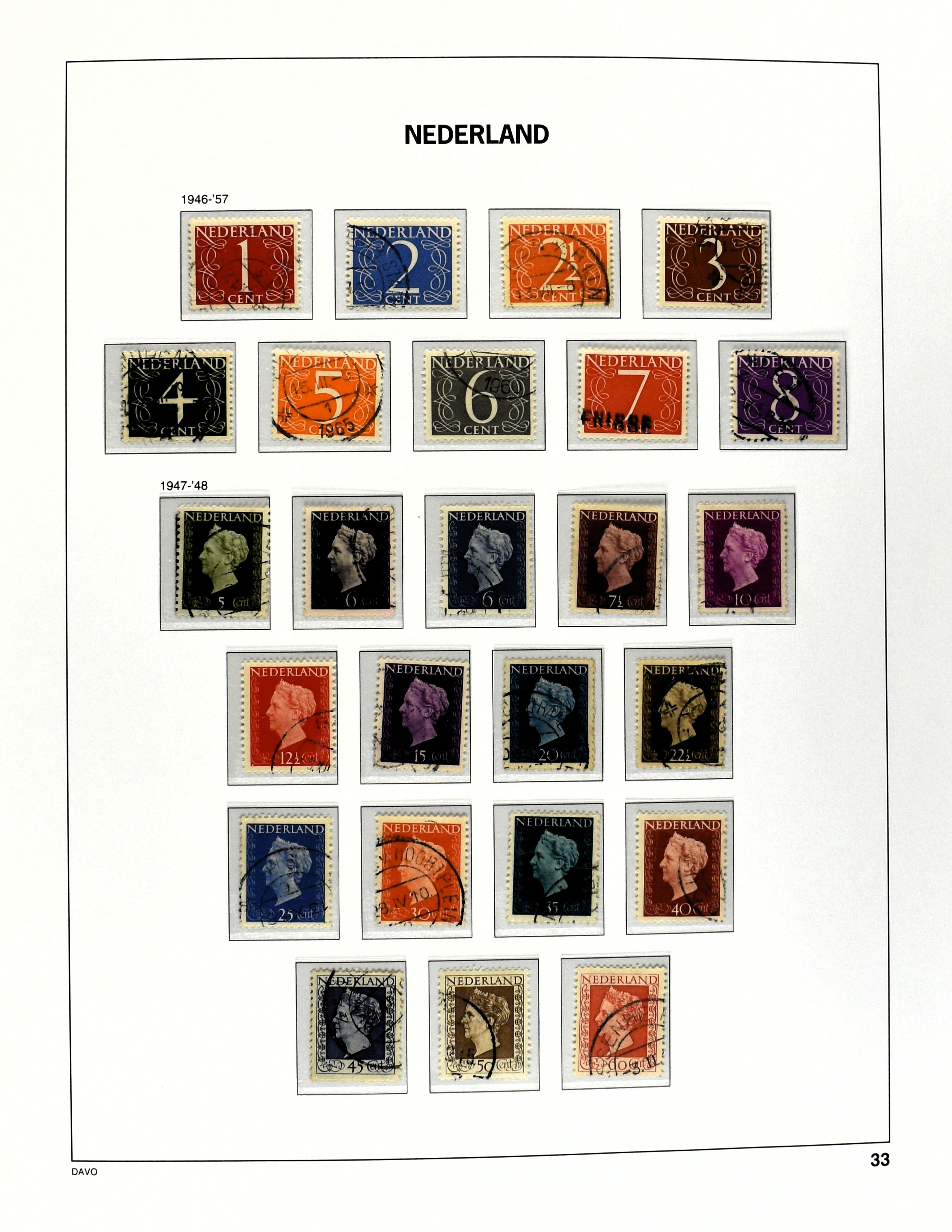 NEDERLAND, gebruikte verzameling 1945-1969, en verzameling 2000-2018 van vooraf gestempelde zegels in eurowaarden, velletjes, Mooi Nederland, Geïllustreerd Verzamelen, Grenzeloos, etc. in 18 Davo-albums, in 2 verhuisdozen (Image) (Image2)