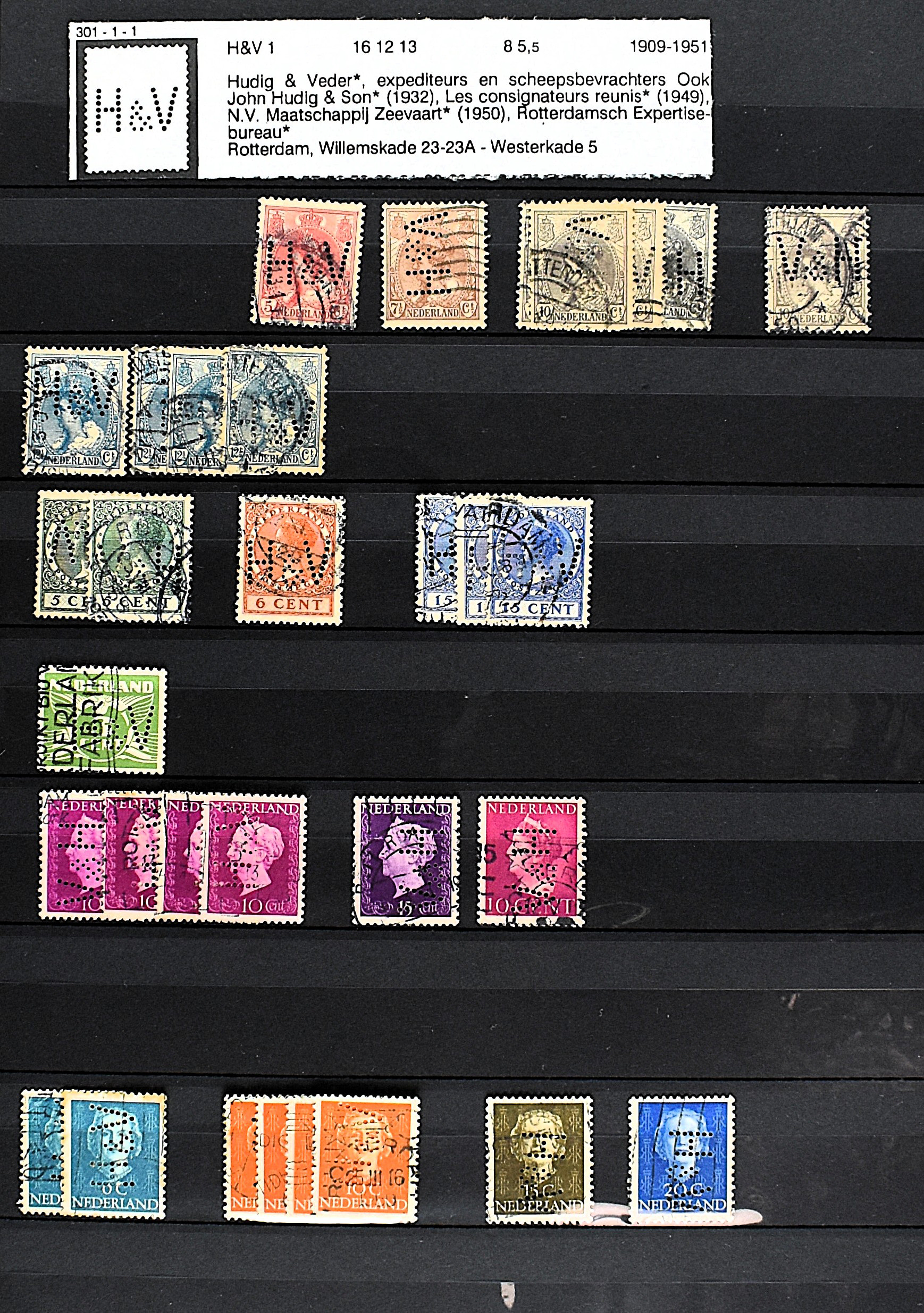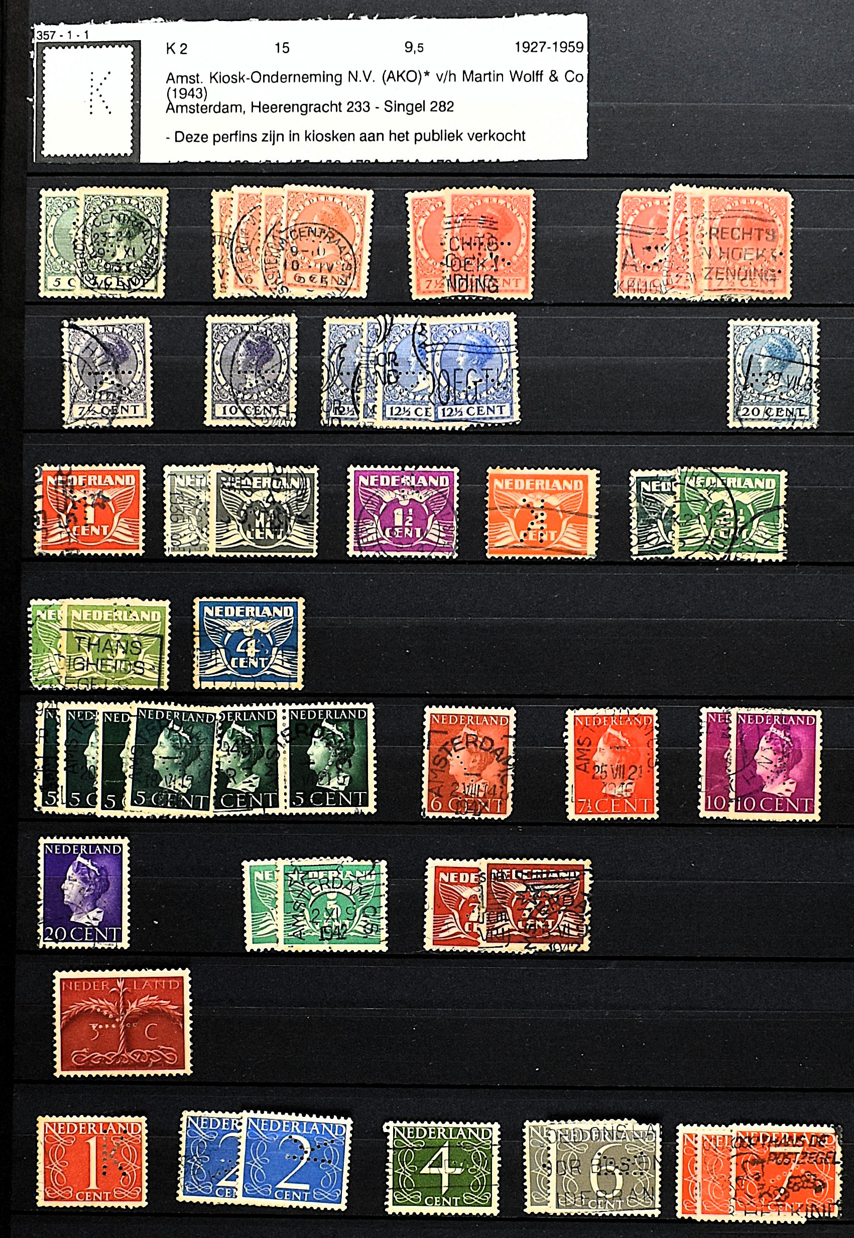 NEDERLAND 1895-1965, alfabetisch opgezette verzameling perfins in 4 insteekboeken waarbij doubletten (Image) (Image2)