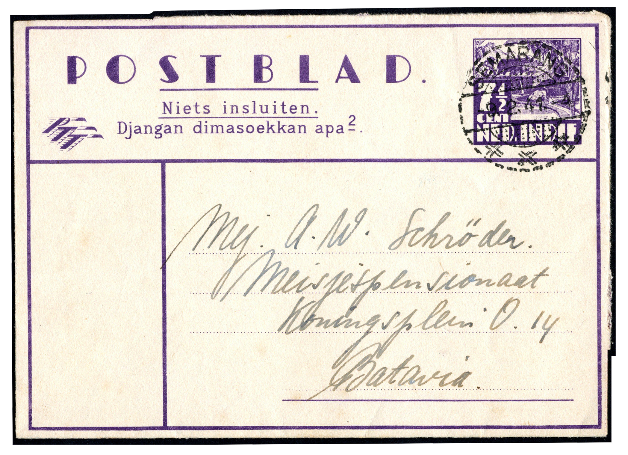 Verhuiskaart G10 lokaal verzonden te Bataviacentrum 27-11-1941. Vroege datum! (Image)