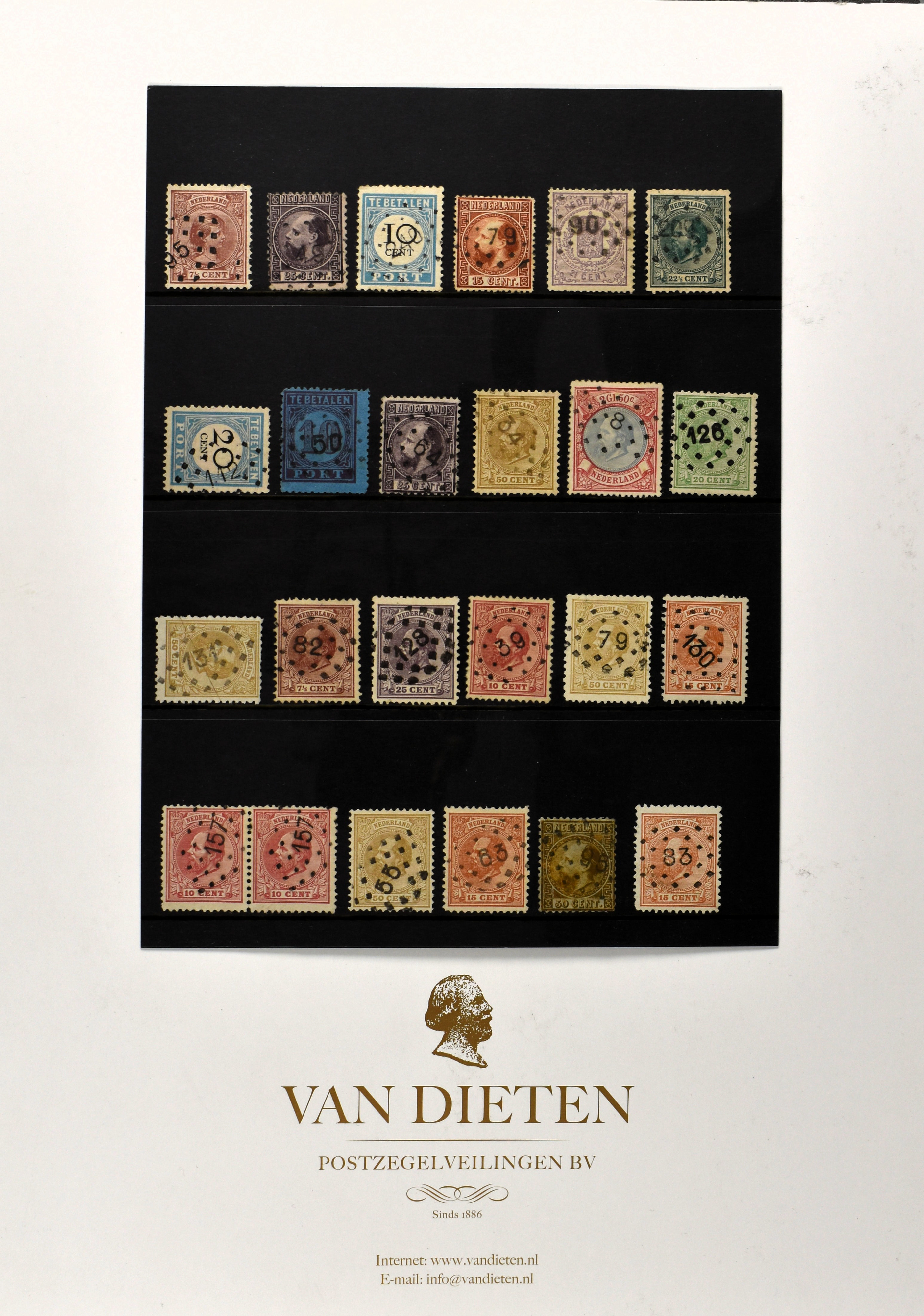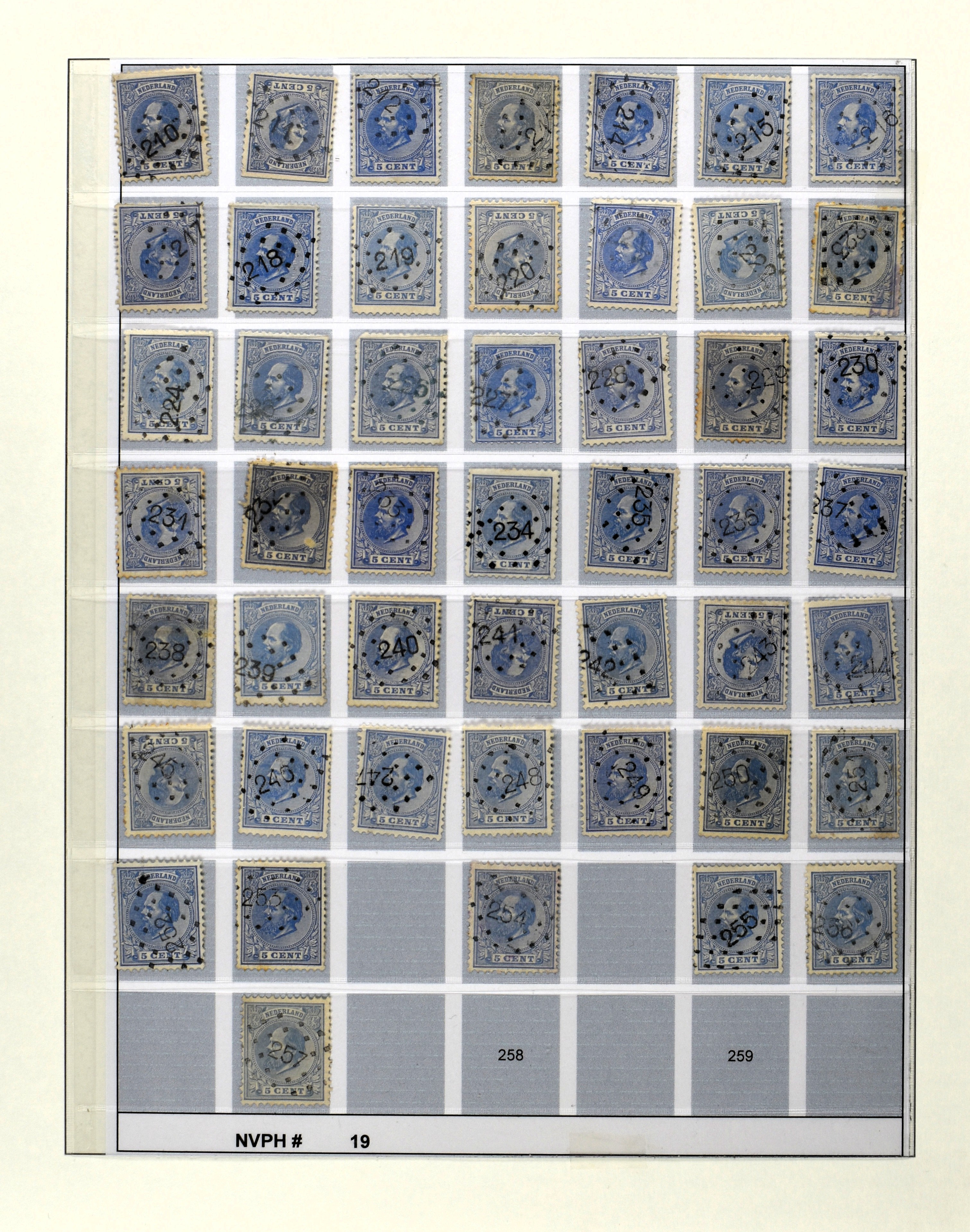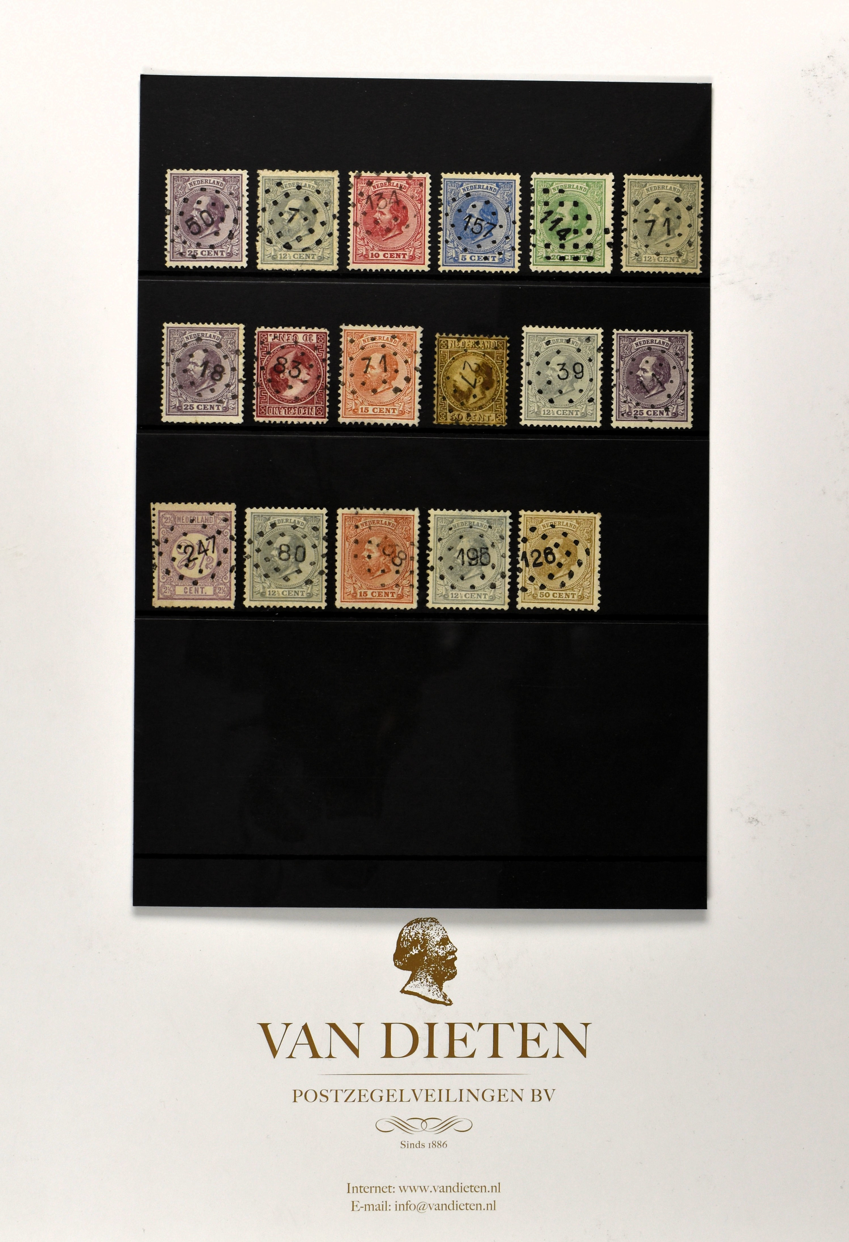 1803 image5 CENT 1872 PUNTSTEMPELS tussen nummers 1 t/m 257, op enkele nummers na compleet, 139 en 142 met keur Koopman, 143 luxe maar zegel heeft hor. vouw, overigens merendeels mooie, volledige en duidelijke afstempelingen op zegels in over het algemeen prima kwaliteit, in klemstroken op 5 Lindner-albumbladen (Image) (Image2) (Image3) (Image4) (Image5) (Image6) (Image7)