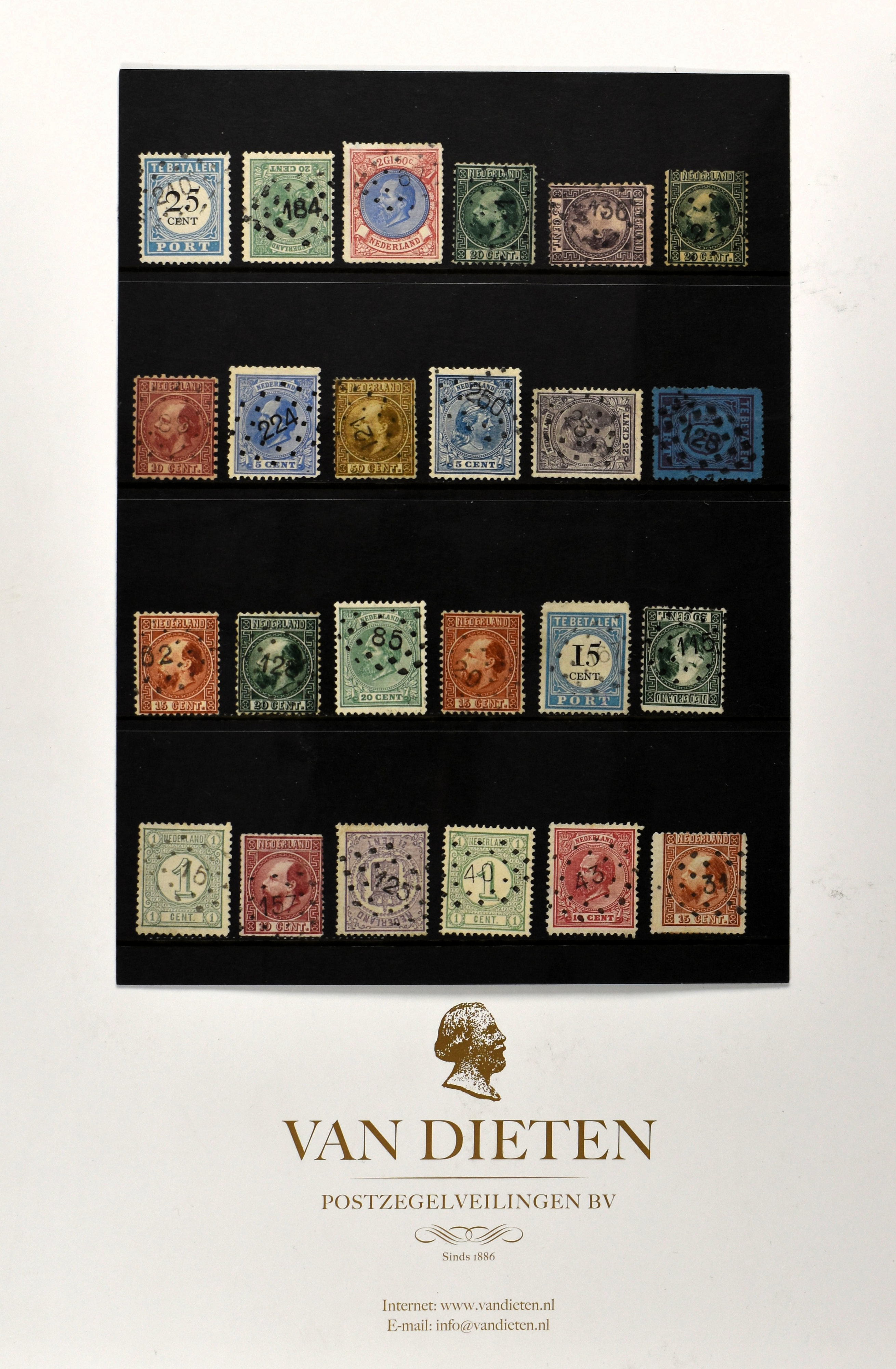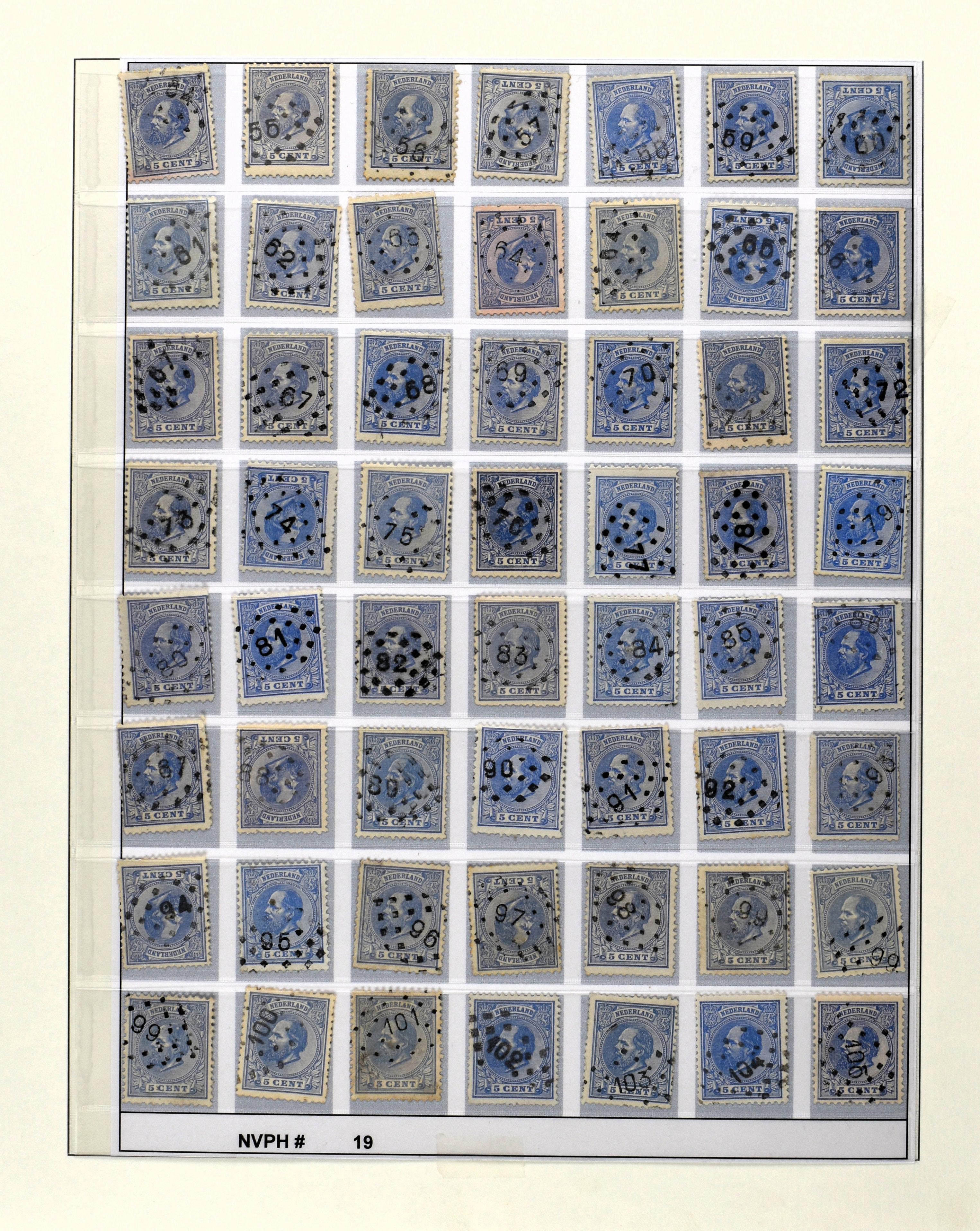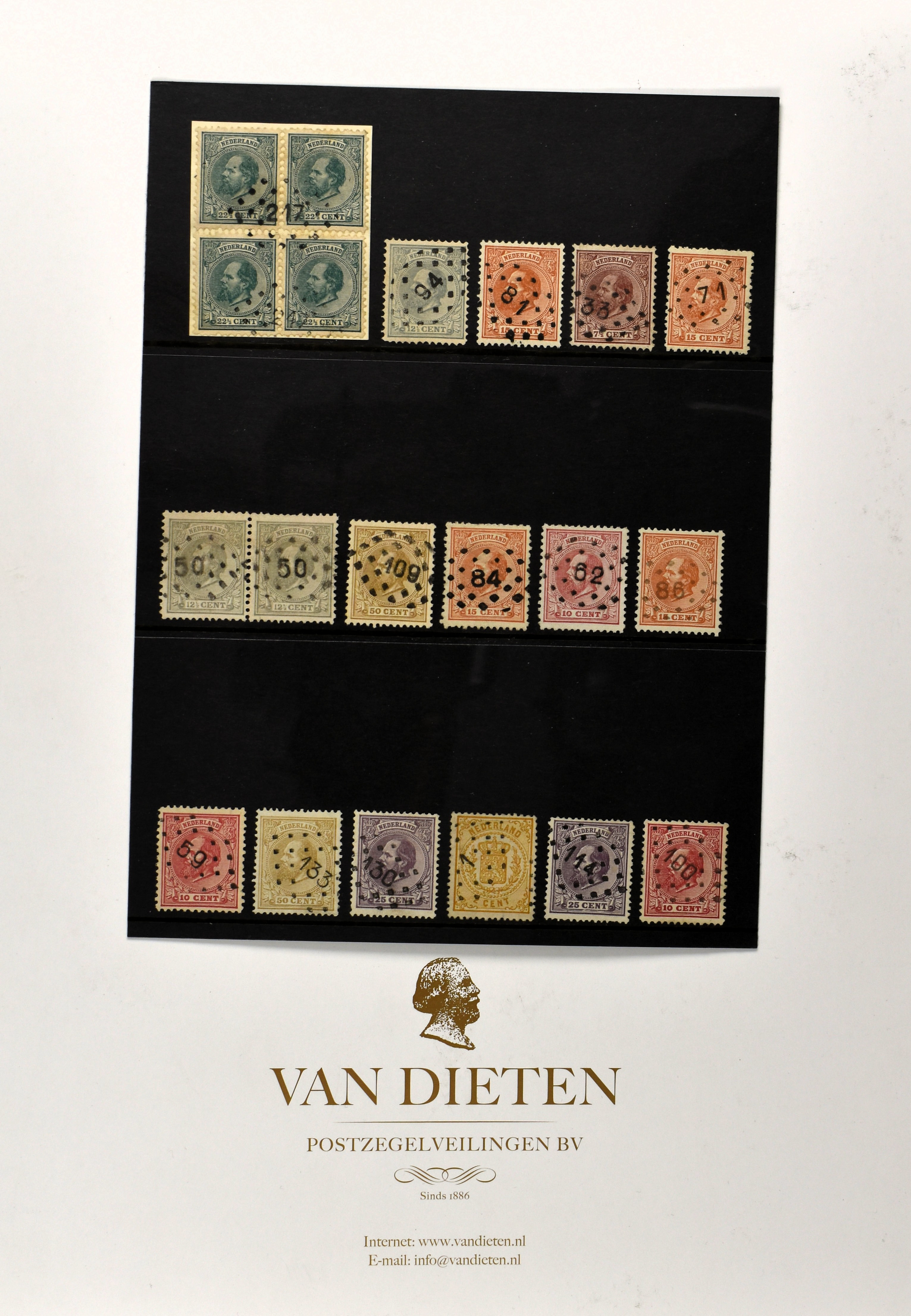 1803 image5 CENT 1872 PUNTSTEMPELS tussen nummers 1 t/m 257, op enkele nummers na compleet, 139 en 142 met keur Koopman, 143 luxe maar zegel heeft hor. vouw, overigens merendeels mooie, volledige en duidelijke afstempelingen op zegels in over het algemeen prima kwaliteit, in klemstroken op 5 Lindner-albumbladen (Image) (Image2) (Image3) (Image4) (Image5) (Image6) (Image7)