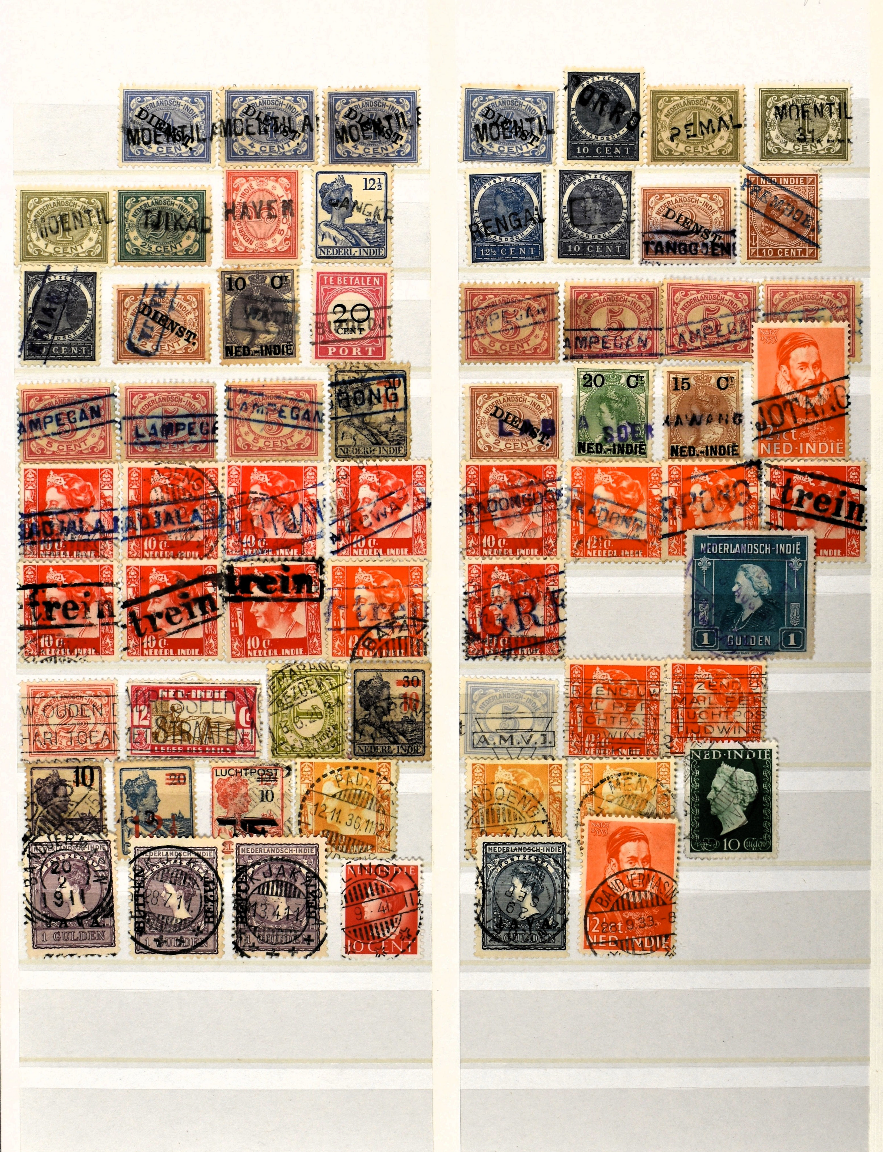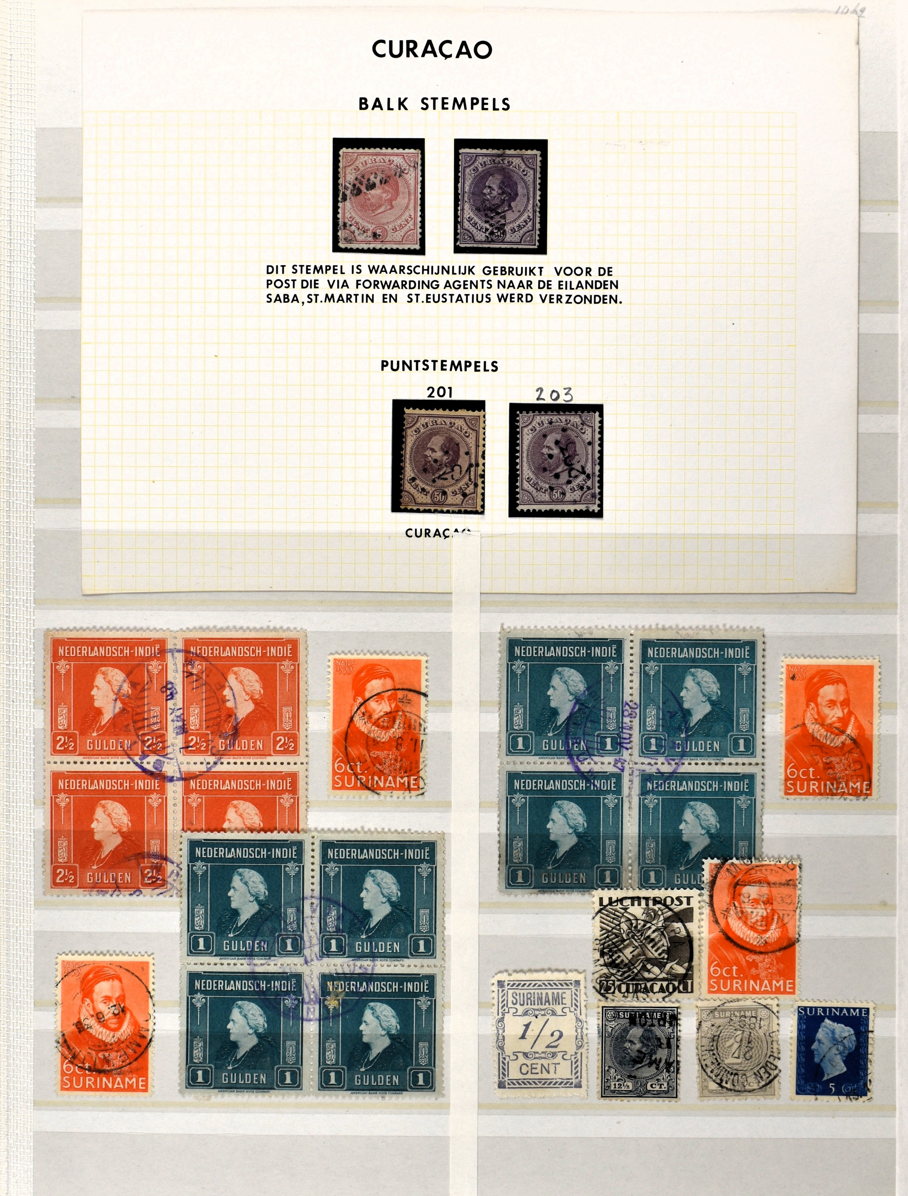 1853 imagePOSTHISTORIE, stempels op losse zegels van Ned.- Indië w.o. naam-, halte-, langebalk- en noodstempels, iets van Curaçao en Suriname, tevens diverse zegels O.R. (Image) (Image2) (Image3) (Image4) (Image5) (Image6) (Image7) (Image8) (Image9) (Image10) (Image11) (Image12) (Image13) (Image14) (Image15)