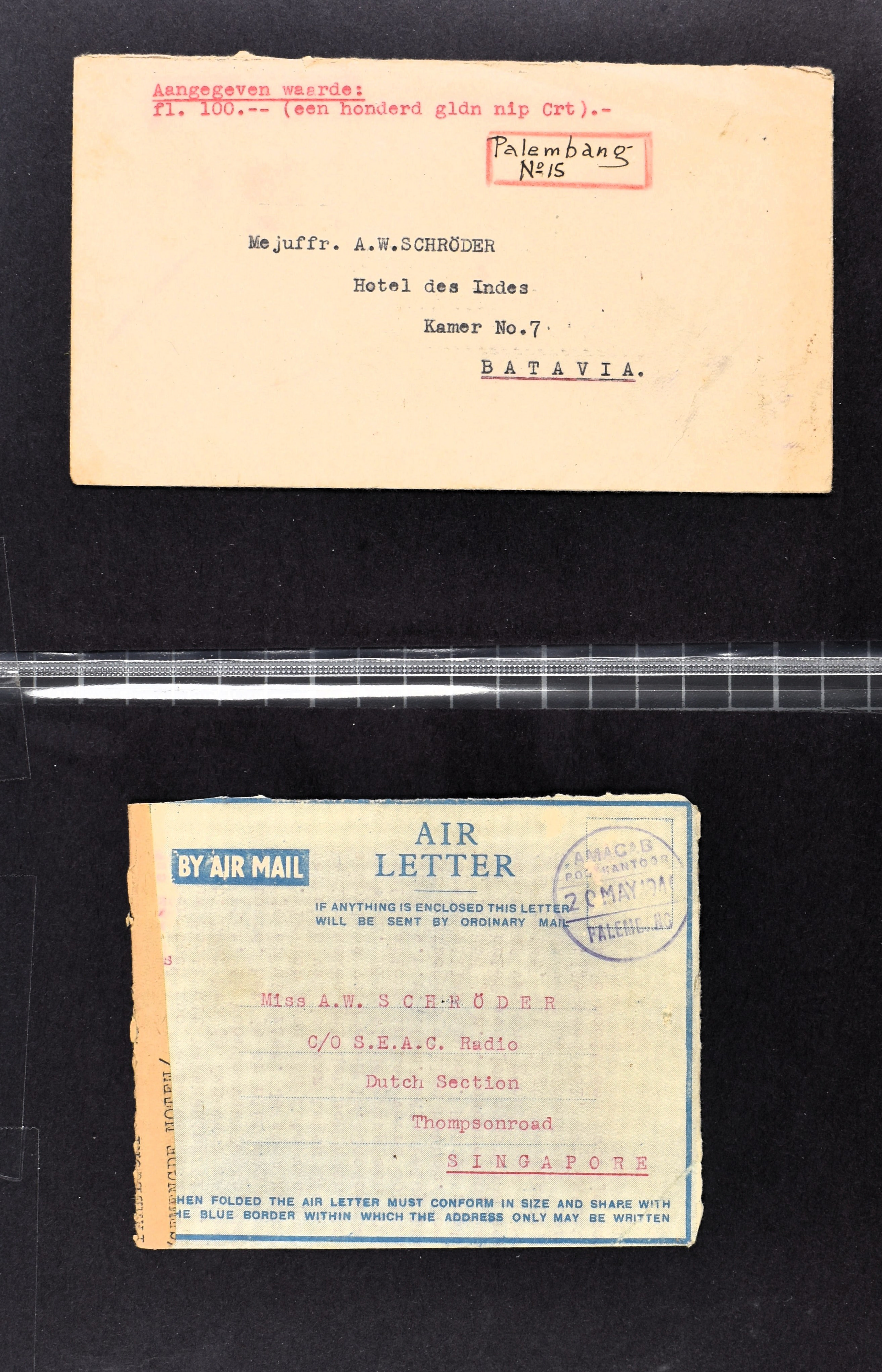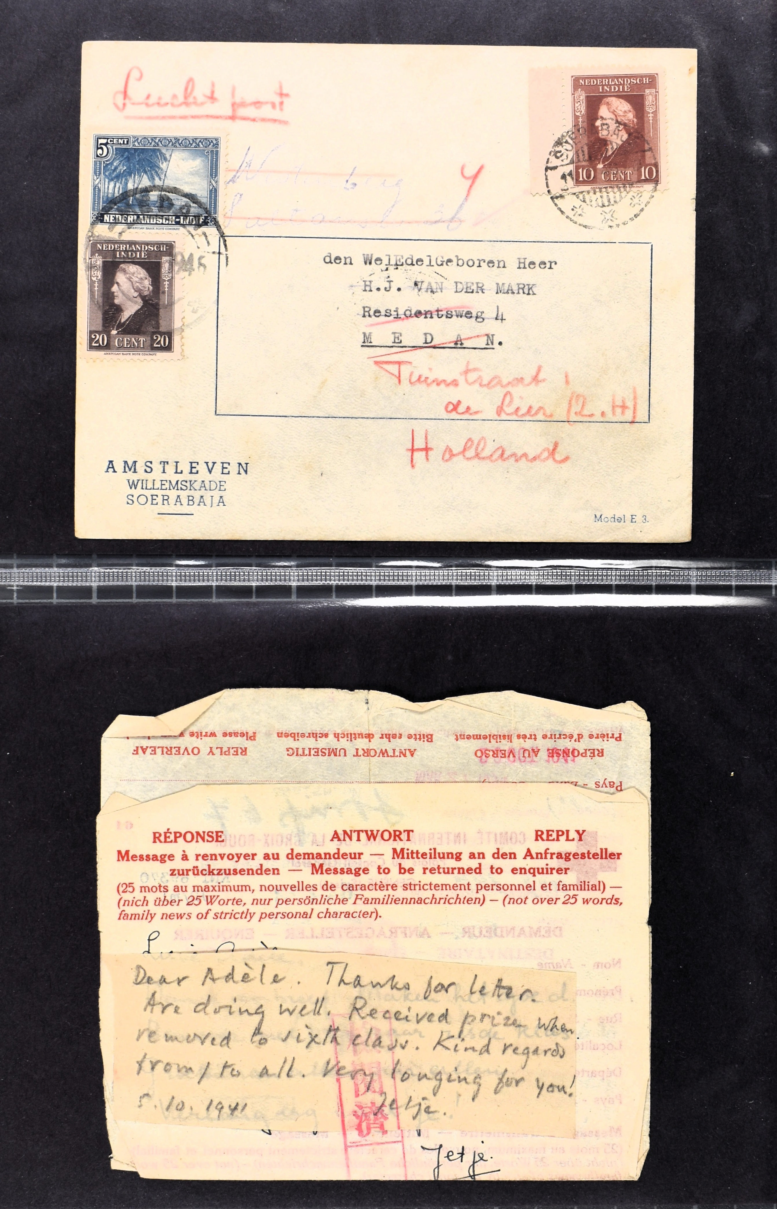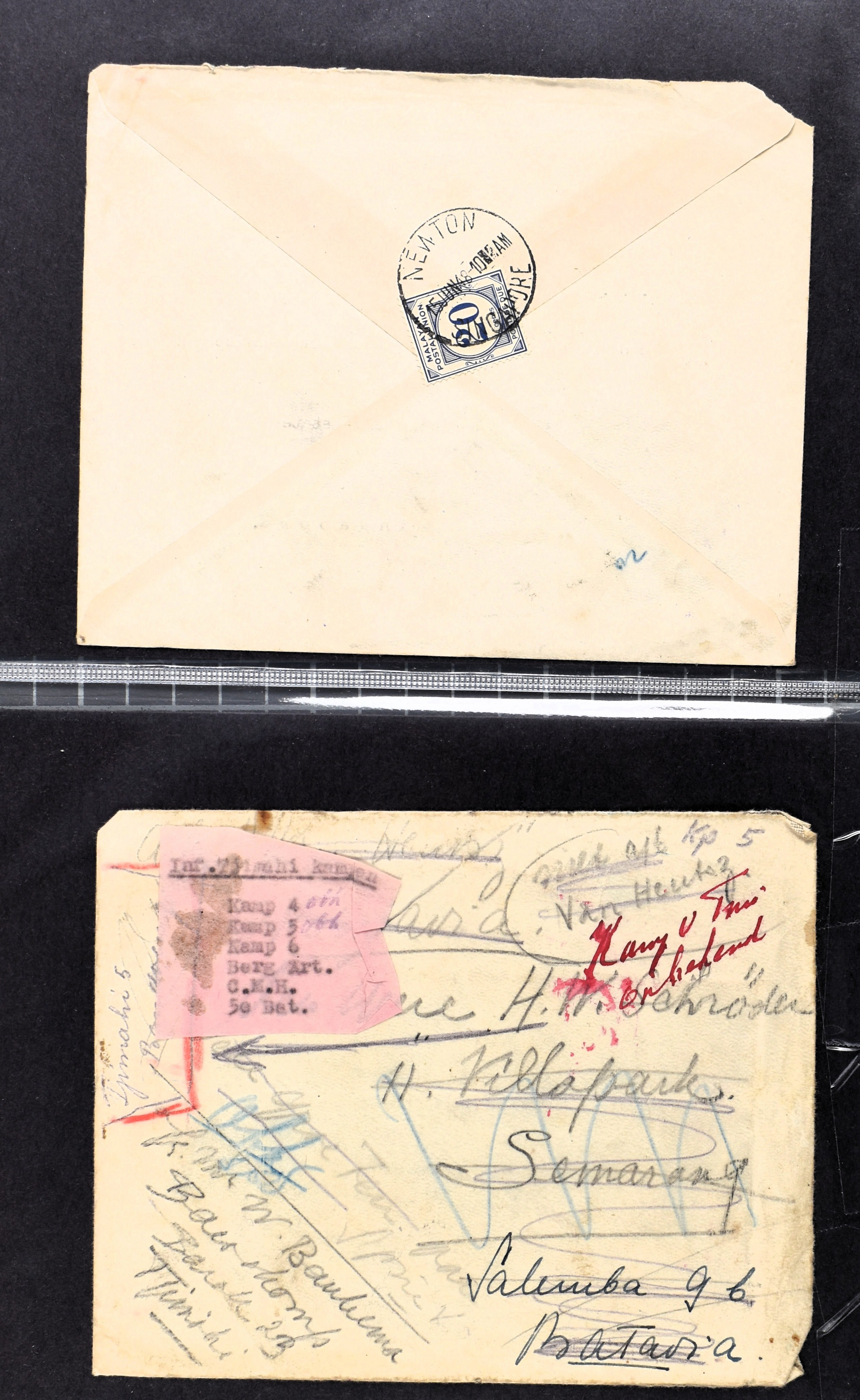 1856 imageNED.- INDIË POSTHISTORIE, 26 betere poststukken 1911-1948 w.o. mooie postagentschapstempels in zwart en violet, kortebalk Kediri in violet (1911), port, brief met aangegeven waarde fl. 100 uit Palembang feb. 1946 met inhoud (helaas niet de 100 gulden), Rapwi, Amacab, Rode Kruis, noodstempels, censuur, zwerfbrief met inhoud op zoek naar overlevende 1945, stempels, etc. Interessant! (Image) (Image2) (Image3) (Image4) (Image5) (Image6) (Image7) (Image8) (Image9) (Image10)