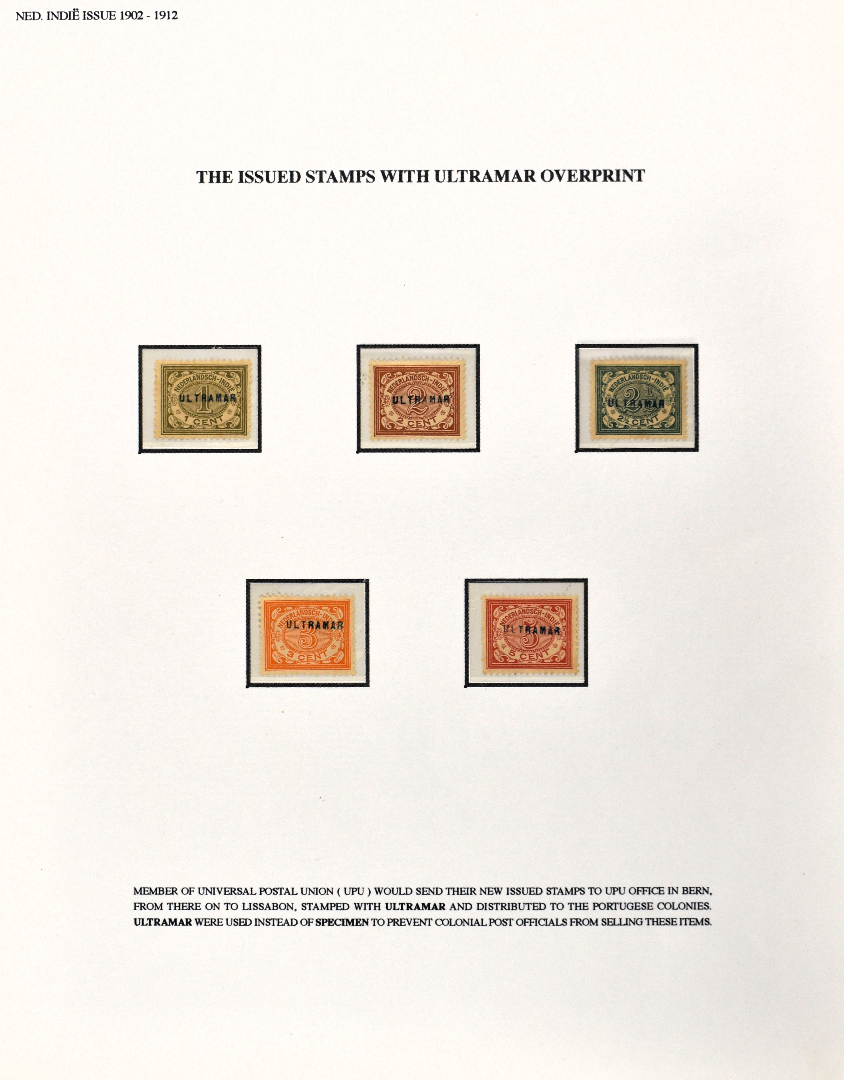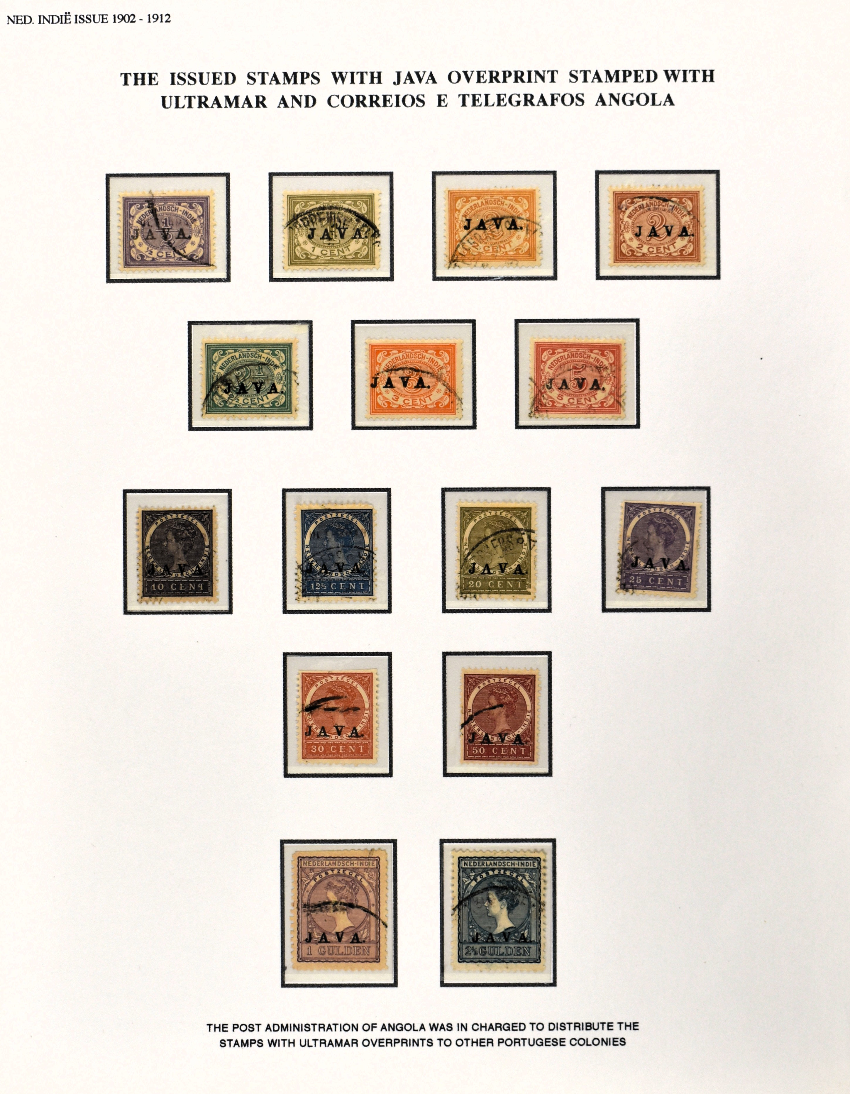 1857 imageNED.- INDIË, 41/44, 46, 63/68, 70, 71, 74, 76/80, 81/86, 88, 89, 94/98, diverse waarden uit de series Cijfer 1902 (Vürtheim), Java- en Buiten Bezit- opdrukken, met opdruk ULTRAMAR in blauw (cijferzegels) of violet/violetbruin (zeer licht gestempeld), zonder gom (Cijferzegels) of met fragment afstempeling 'Correios e Telegrafos Angola'. Pracht- of vrijwel prachtex. doch nrs. 97/98 weggeknipte ondertanding. (Image) (Image2) (Image3) (Image4)