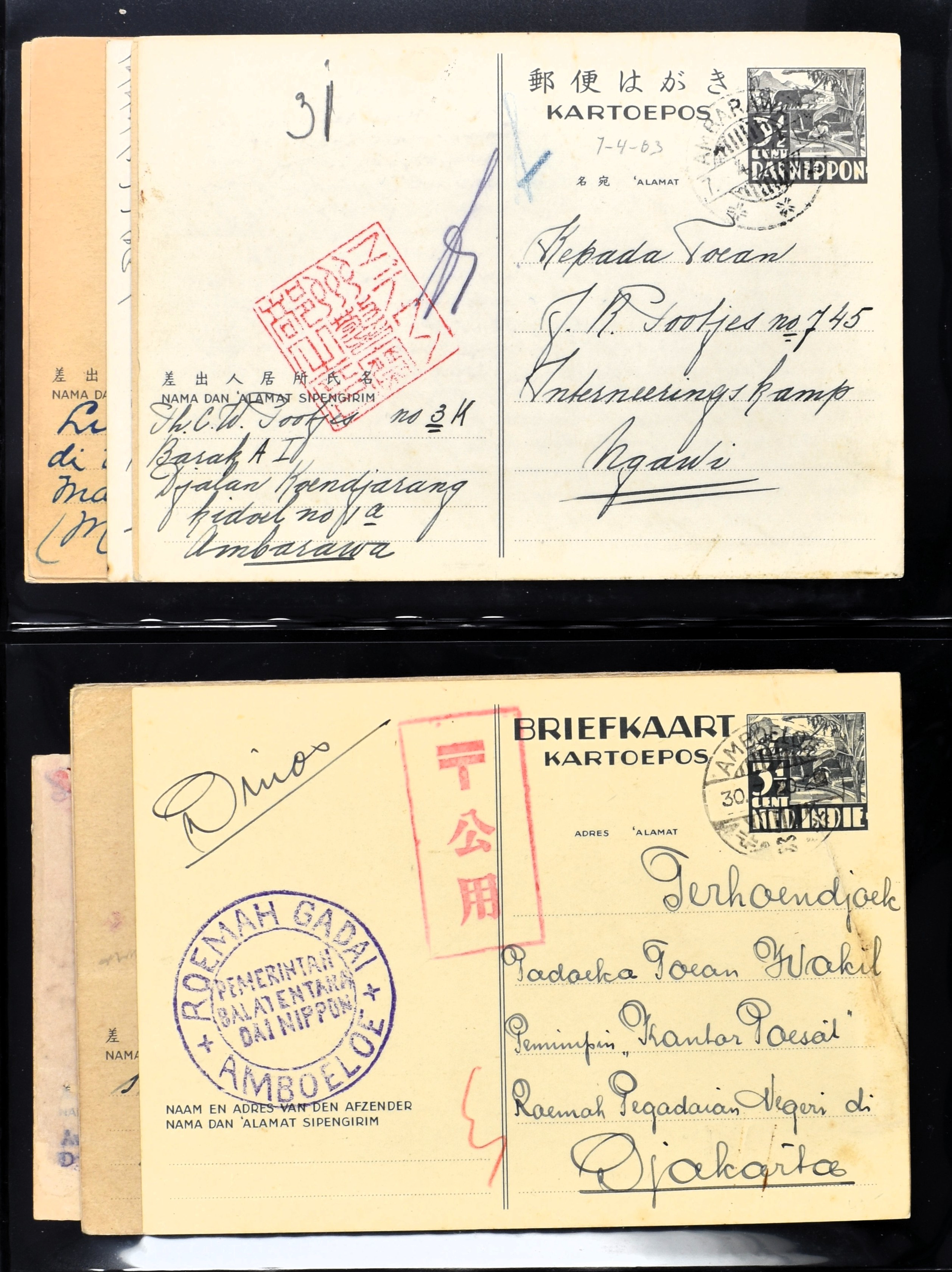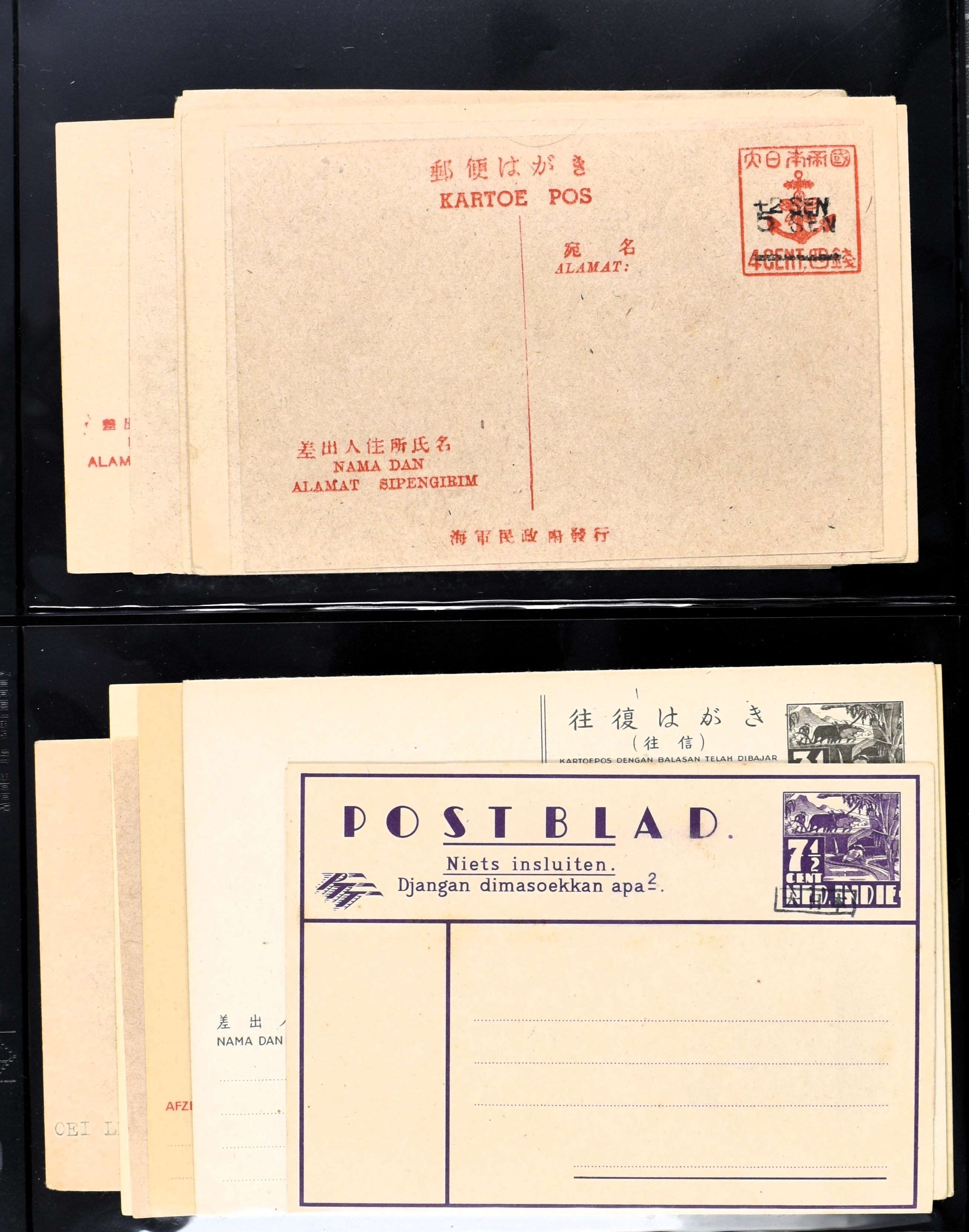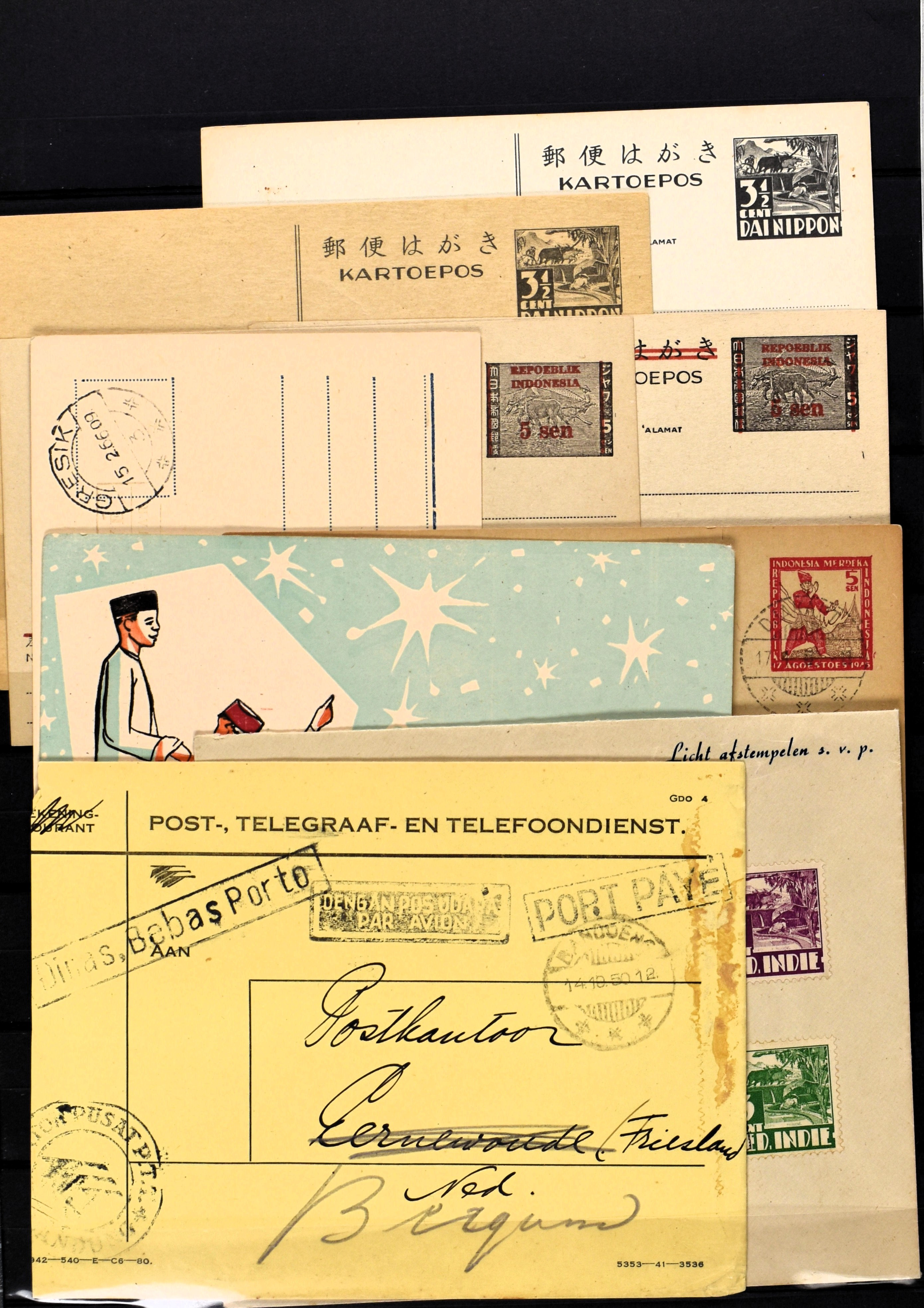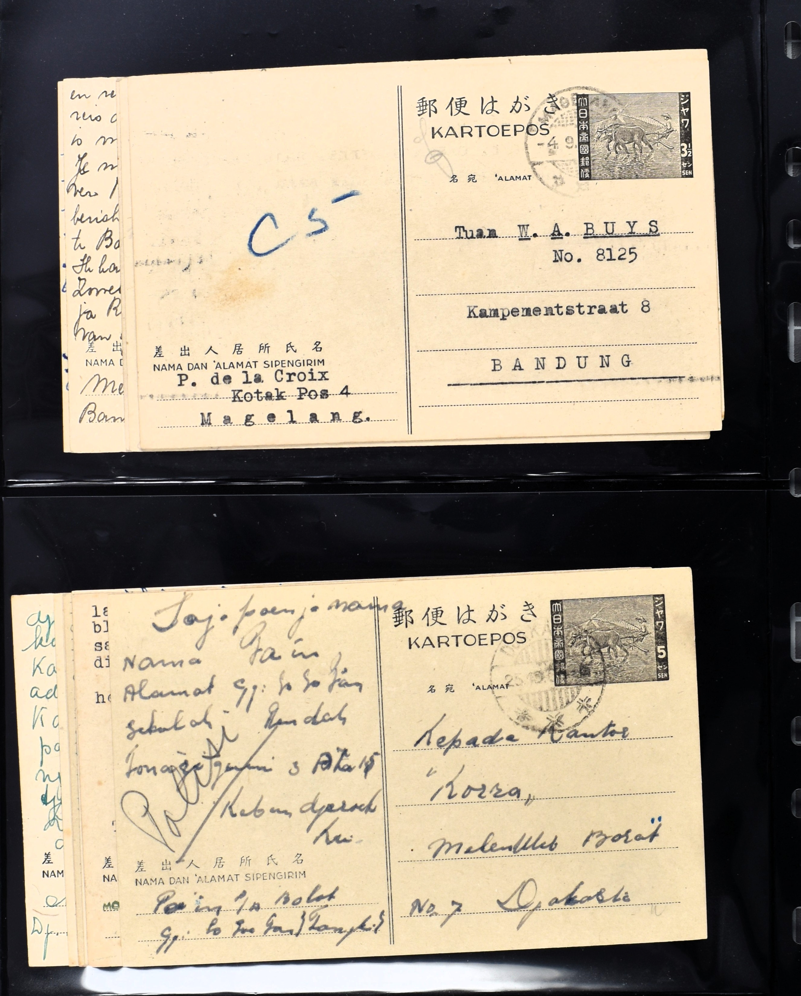 1861 imageJAPANESE OCCUPATION and some Indonesia Revolution Period, circa 55 unused but mainly sent postcards from Java, Sumatra and the Navy area with some nice postmarks, censors, cards written to internees, framed REPOEBLIK INDONESIA P.T.T. in red or back on 3 postcards, etc. (Image) (Image2) (Image3) (Image4)