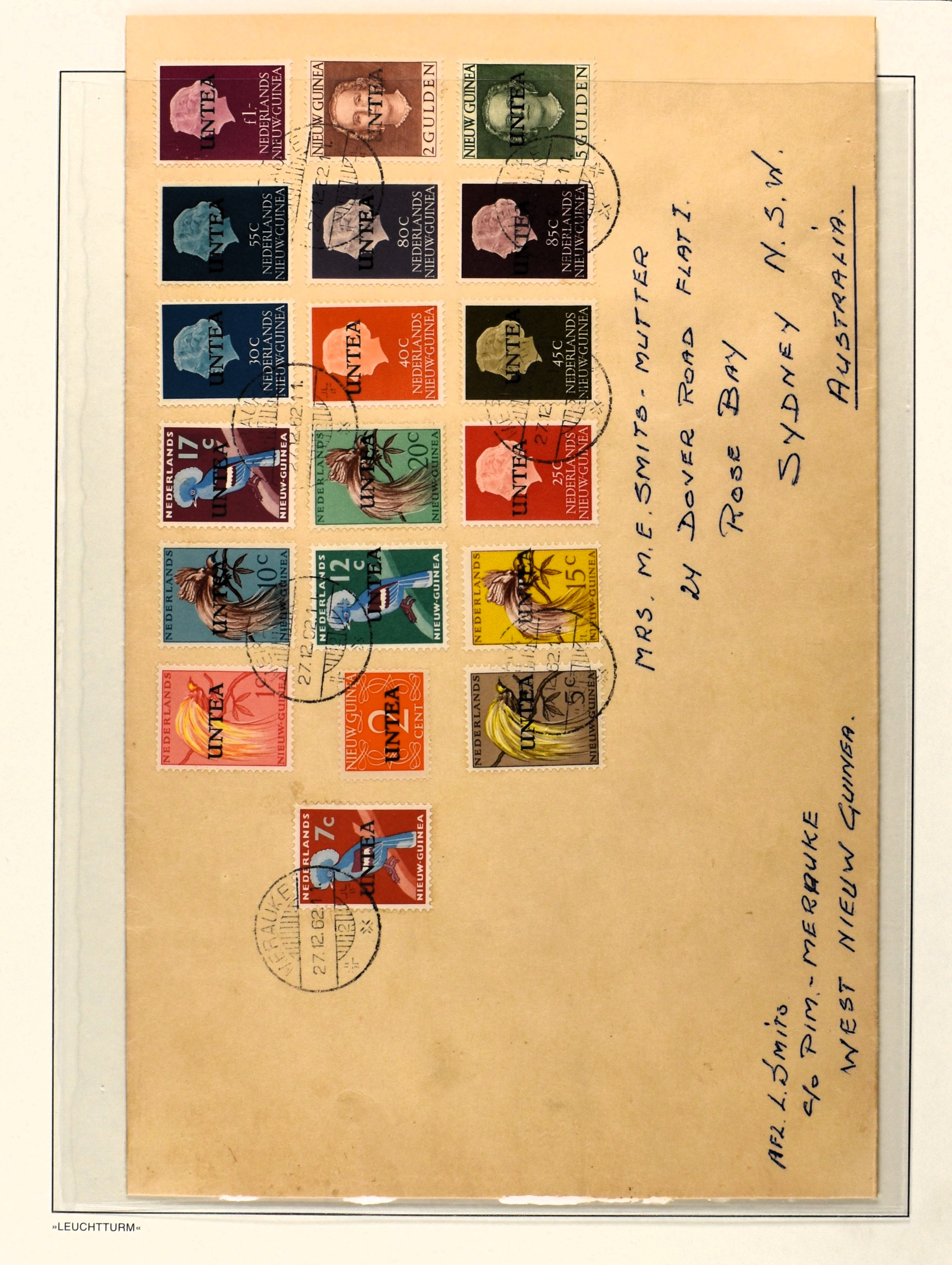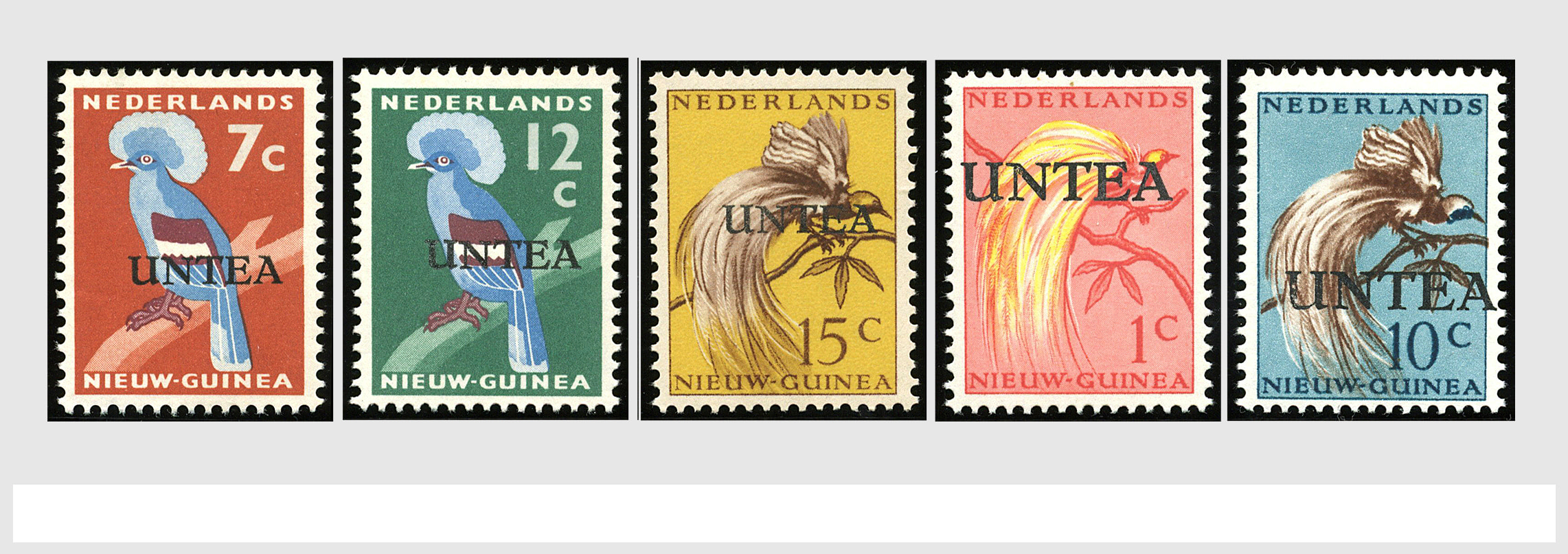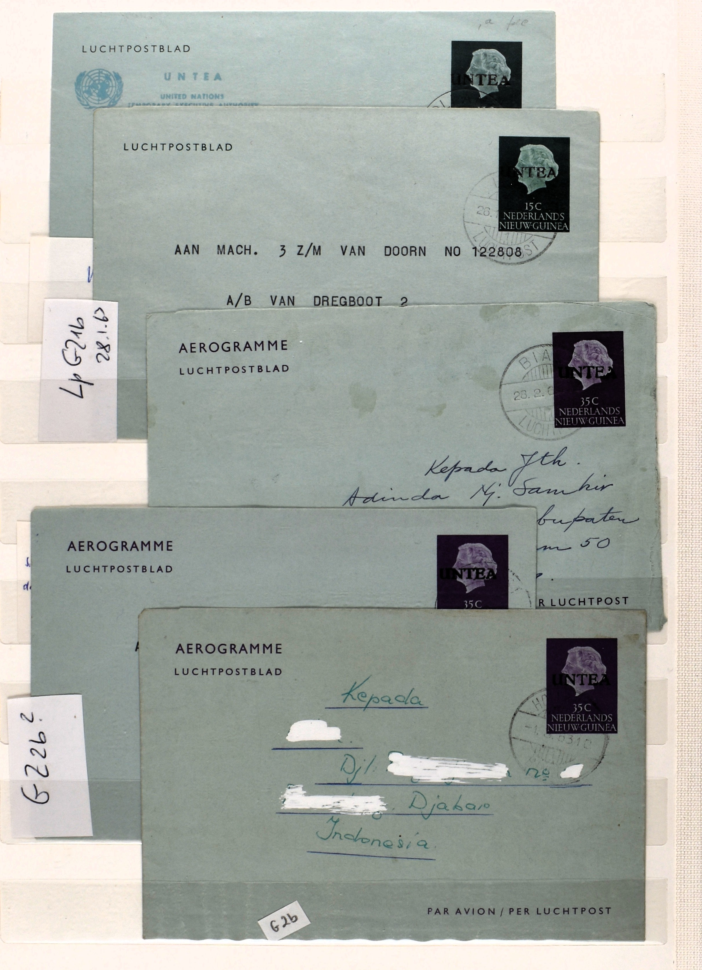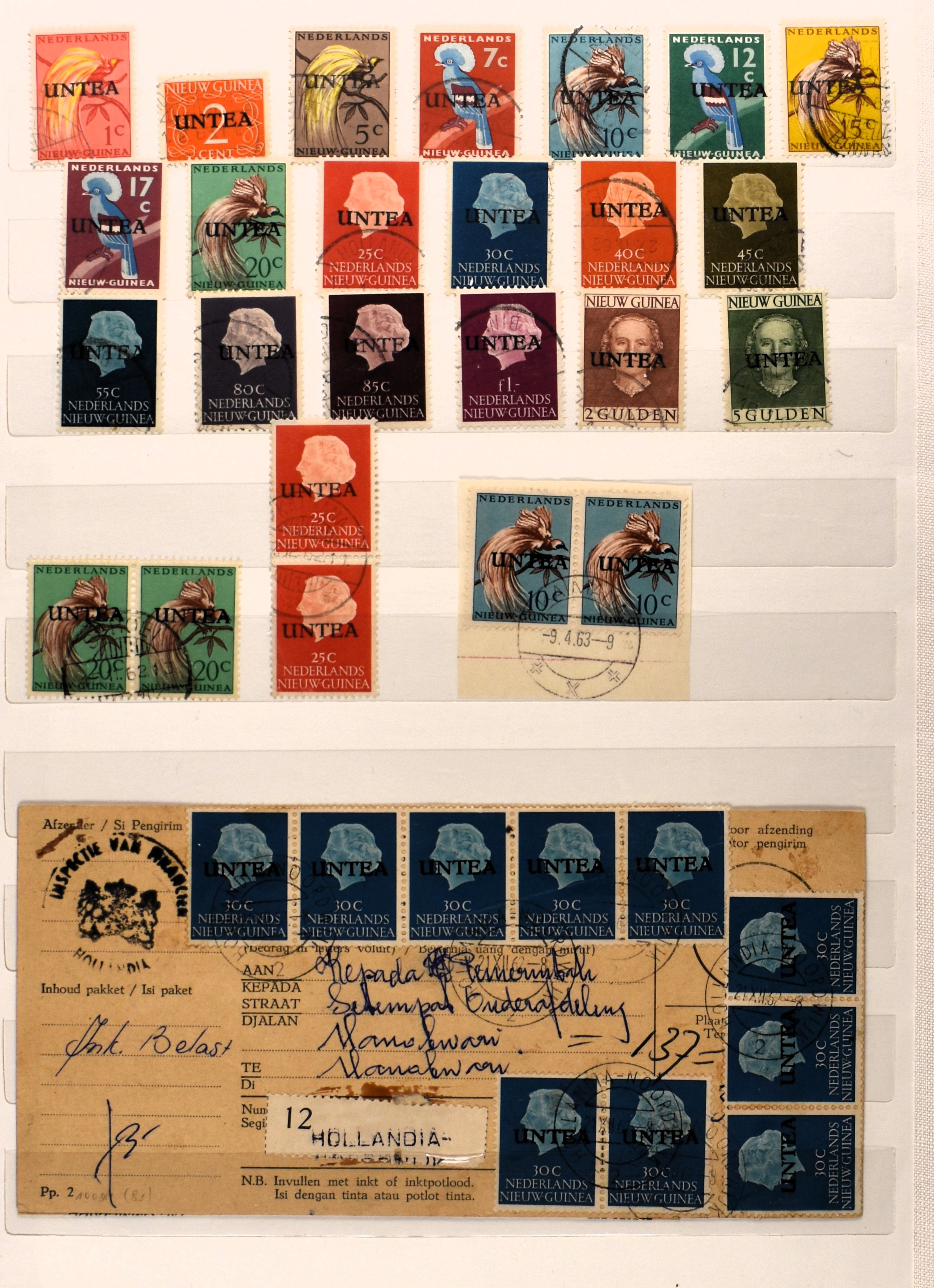1865 imageUNTEA, 6 RONG-kaarten van 7 cent w.o. 1 ex. met kleine opdruk uit Sentani 23-4-1963, alle met bijfrankeringen (Image) (Image2) (Image3)