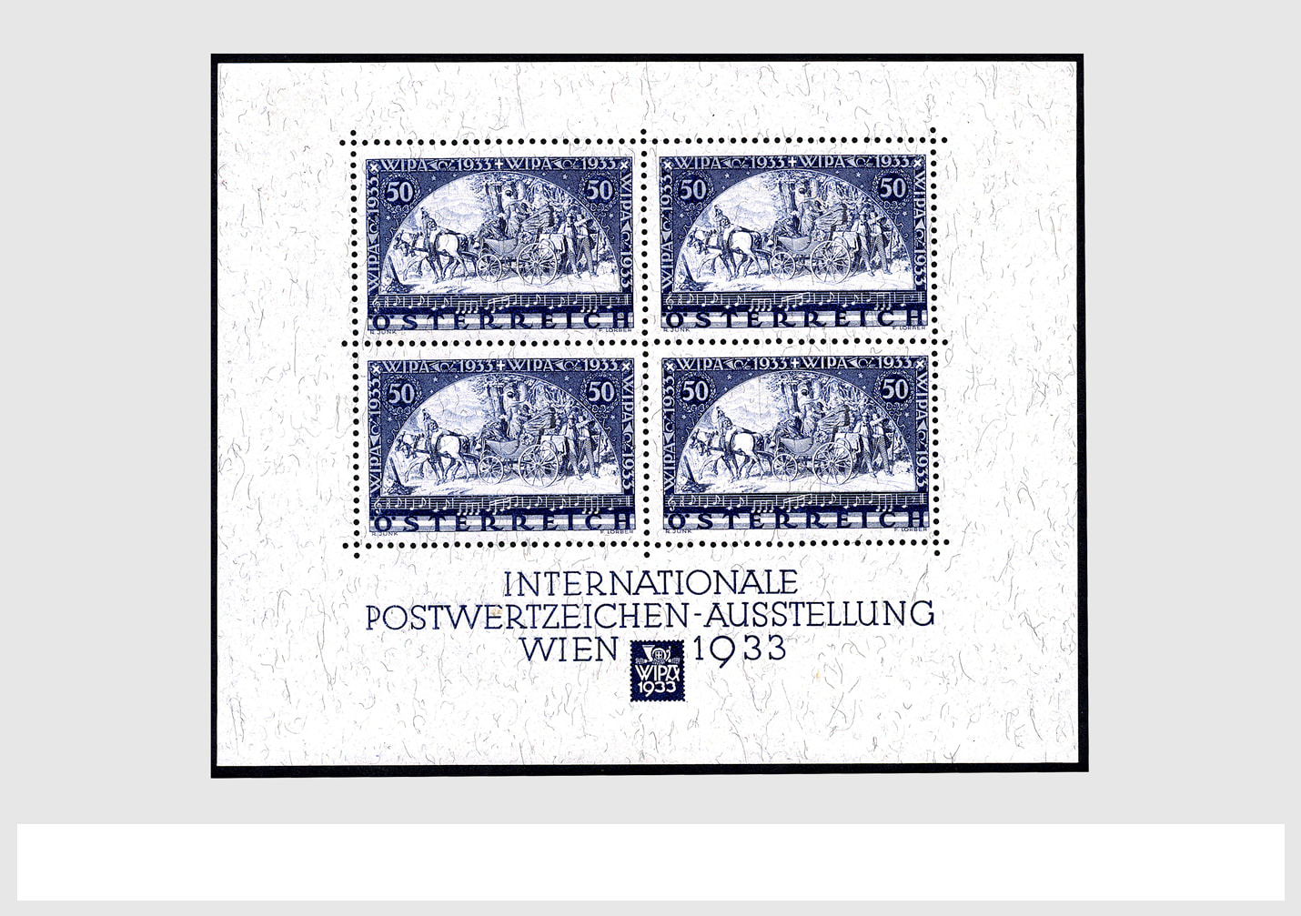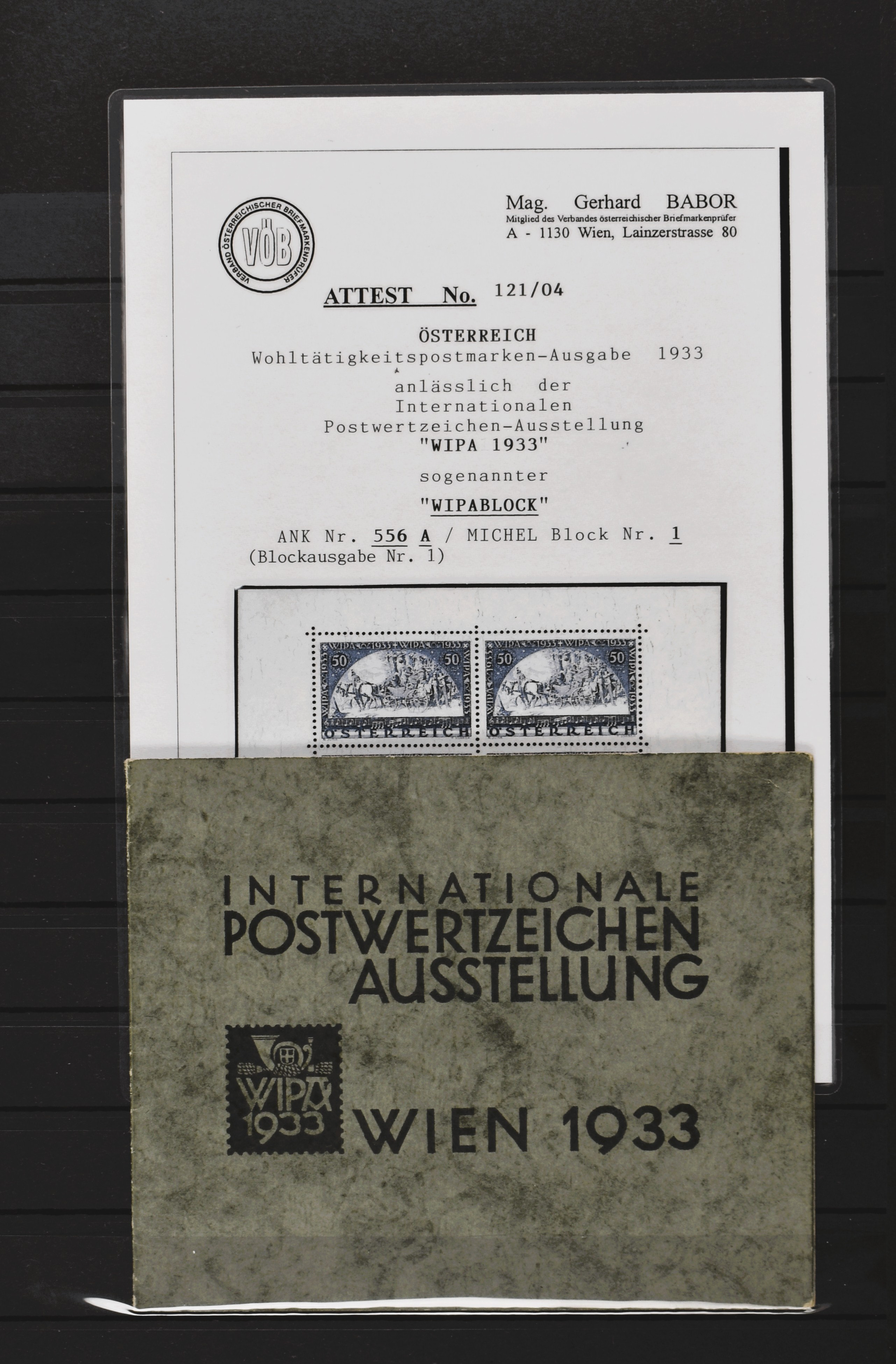 1879 imageAUSTRIA 1933, Mi. block 1 'WIPA block' very fine unused in the original folder from the exhibition, with certificate 'Babor' (Image) (Image2) (Image3)