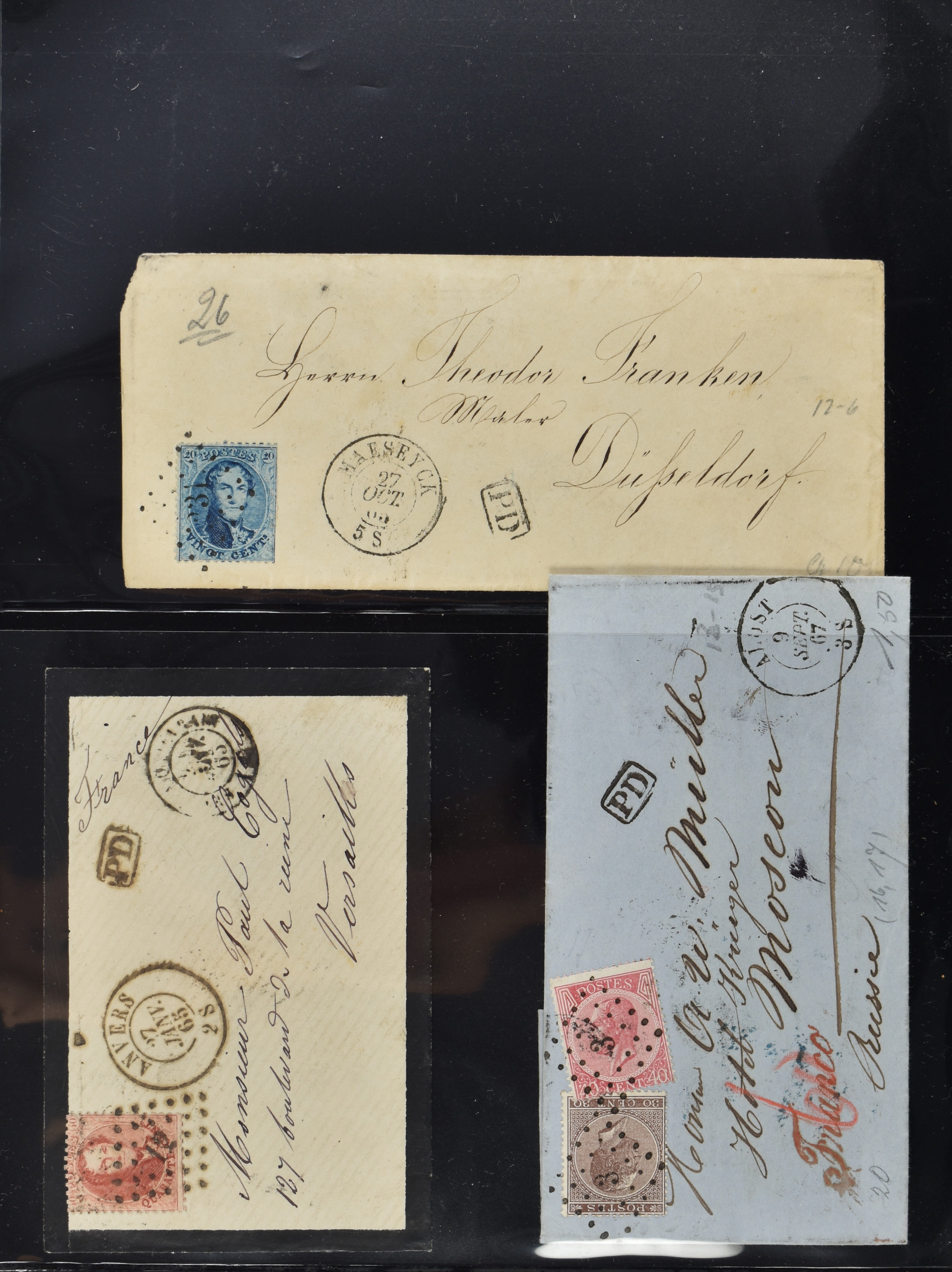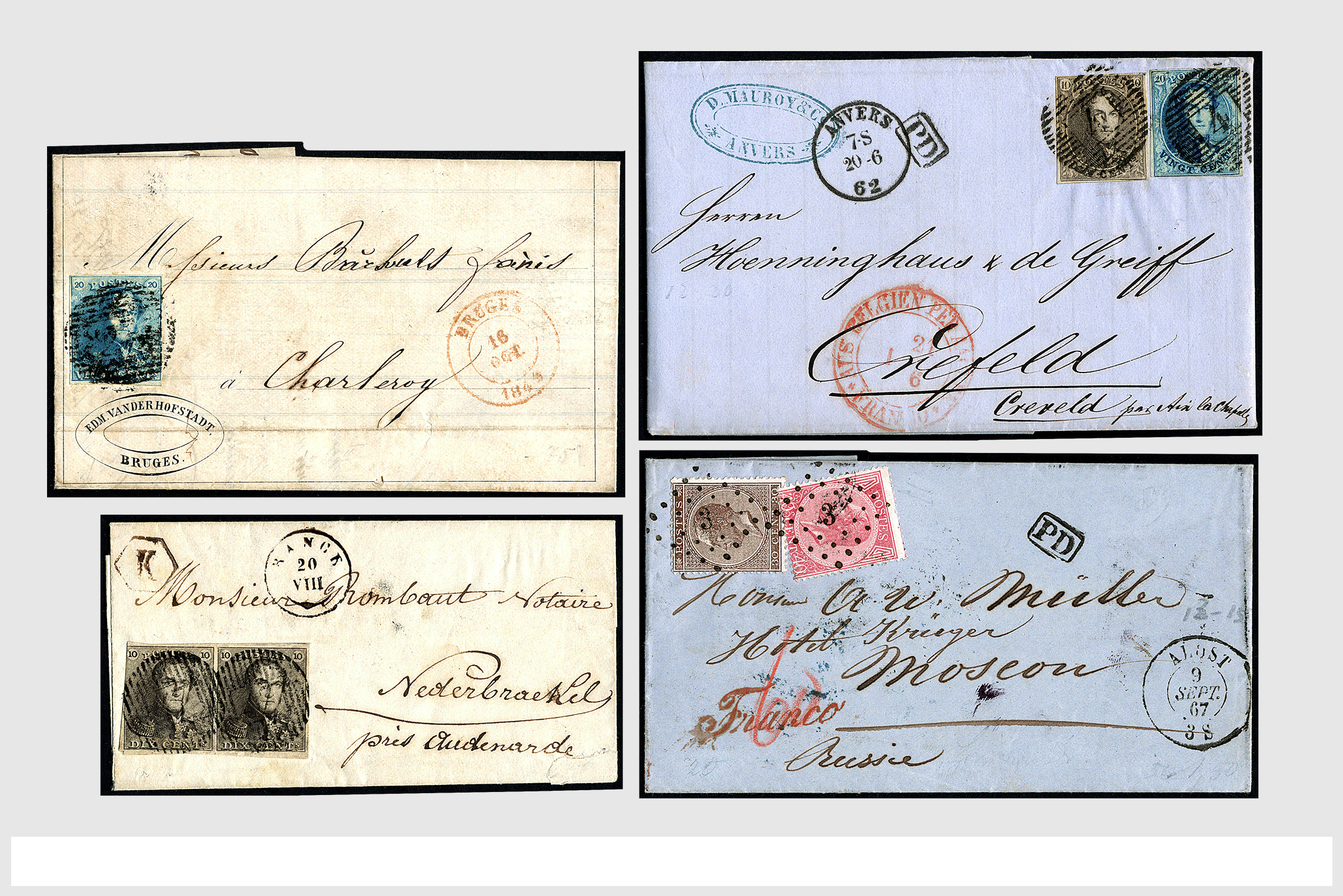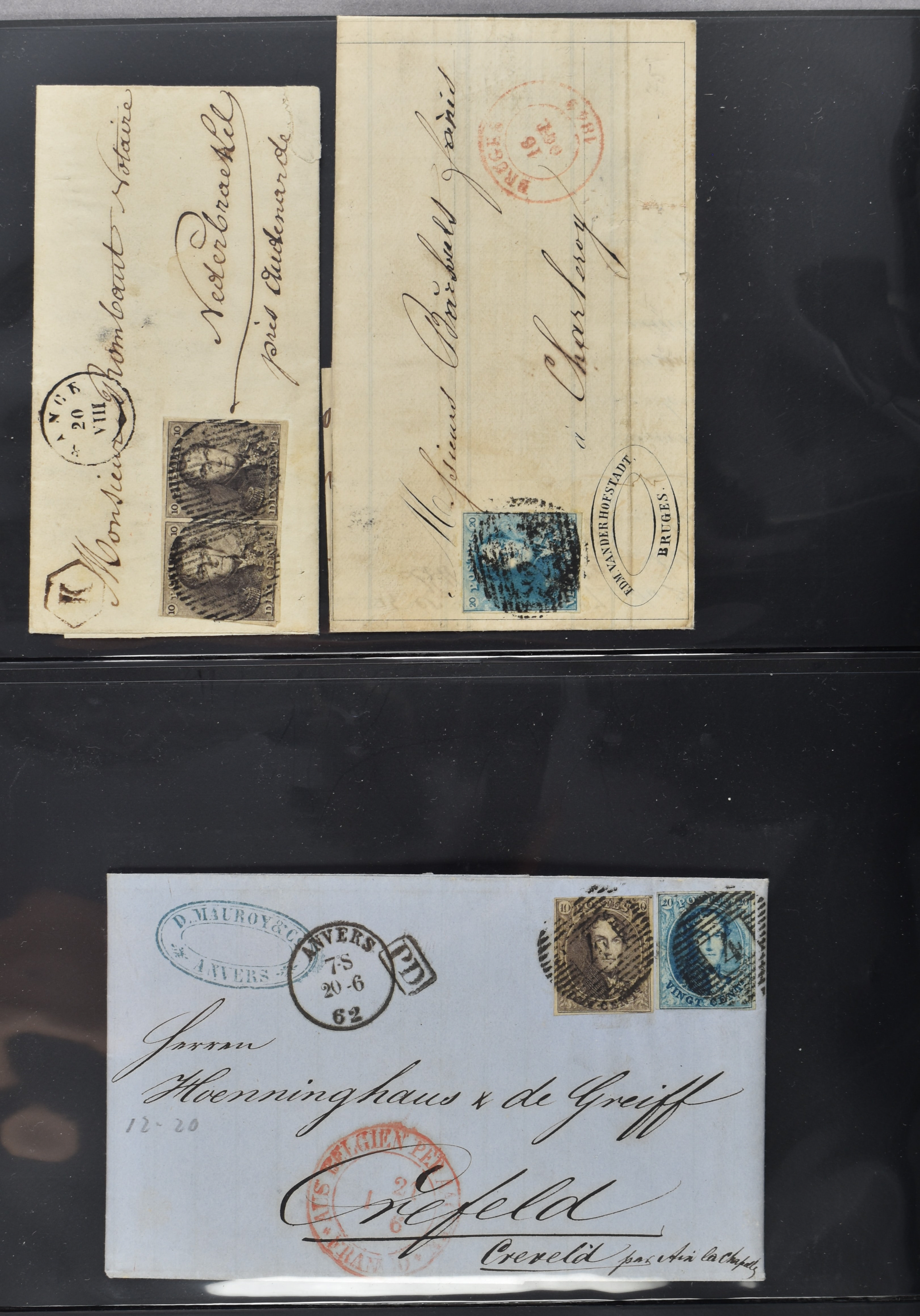 1880 imageBELGIË 1849-1897, 11 oude poststukken waarbij o.a. nr.1 in paar op brief en 2 enkelfrankeringen, alsmede enkele betere ex. (Image) (Image2) (Image3) (Image4) (Image5) (Image6)