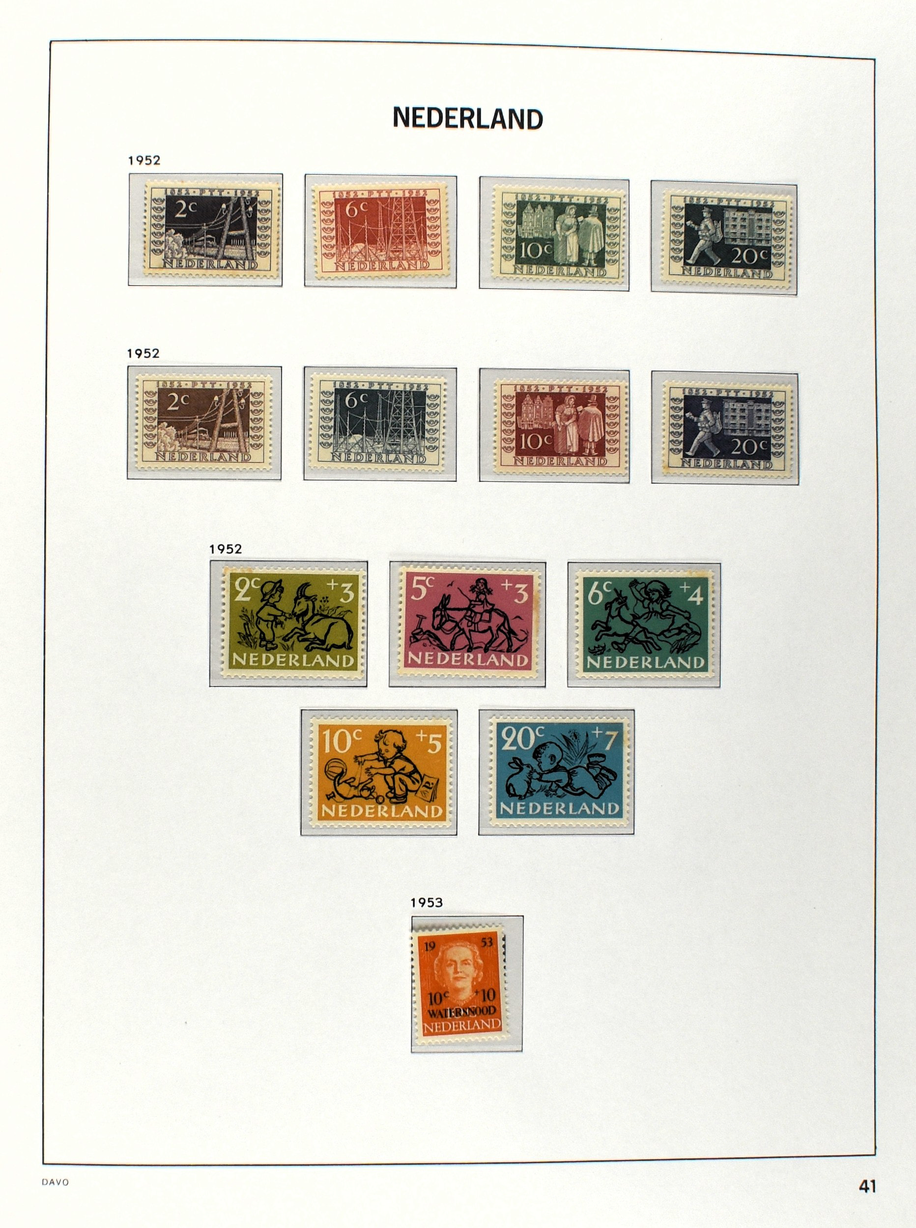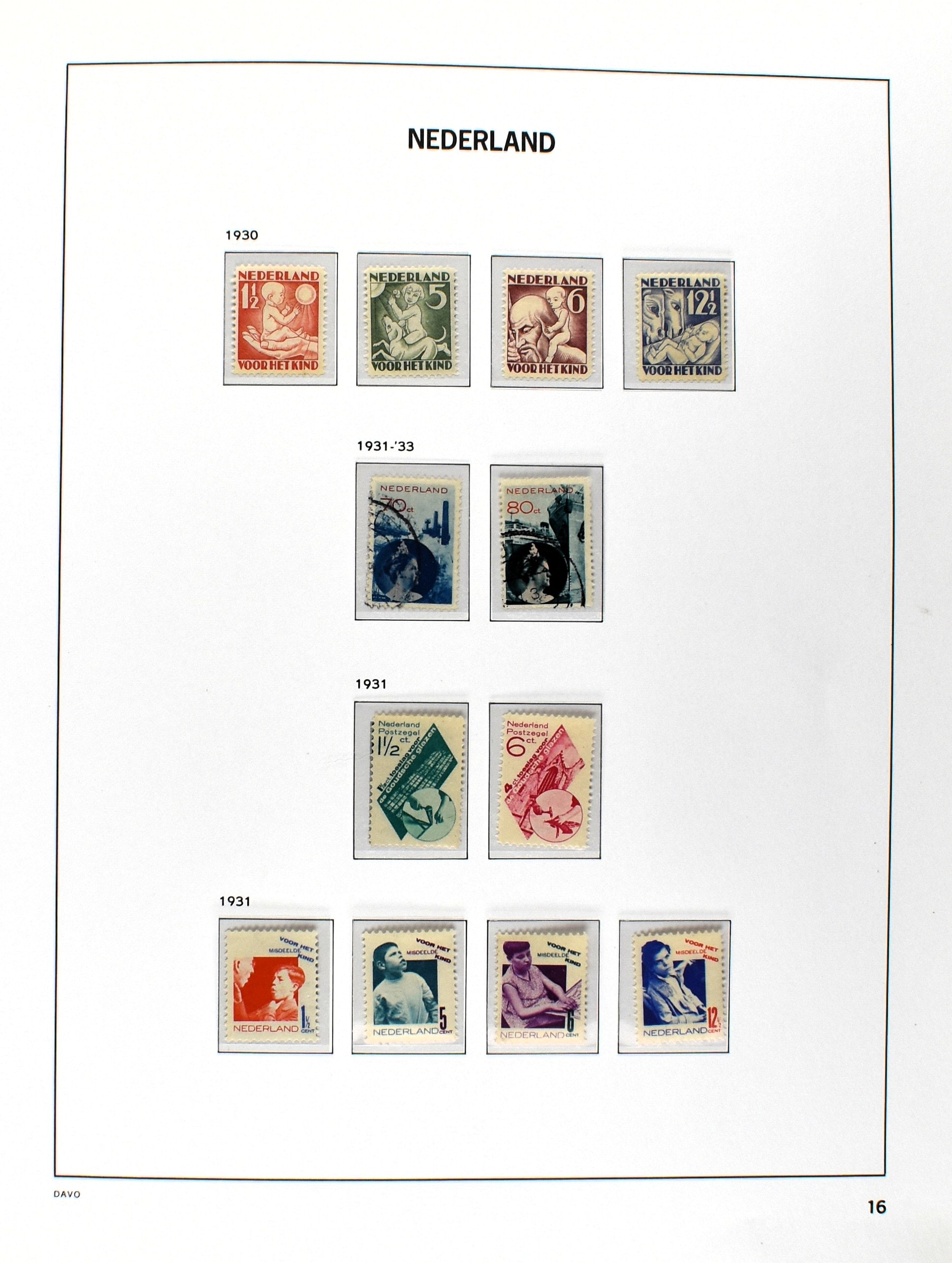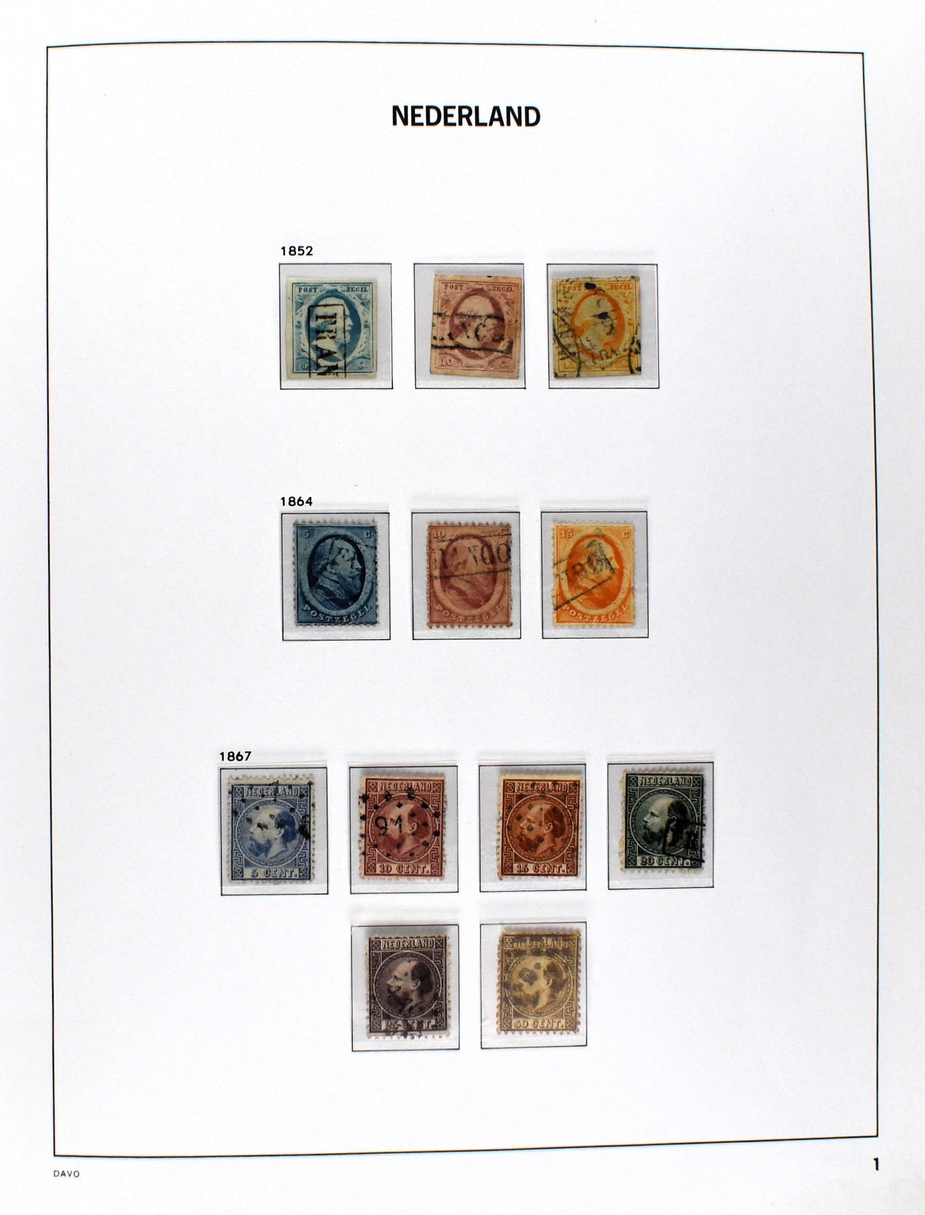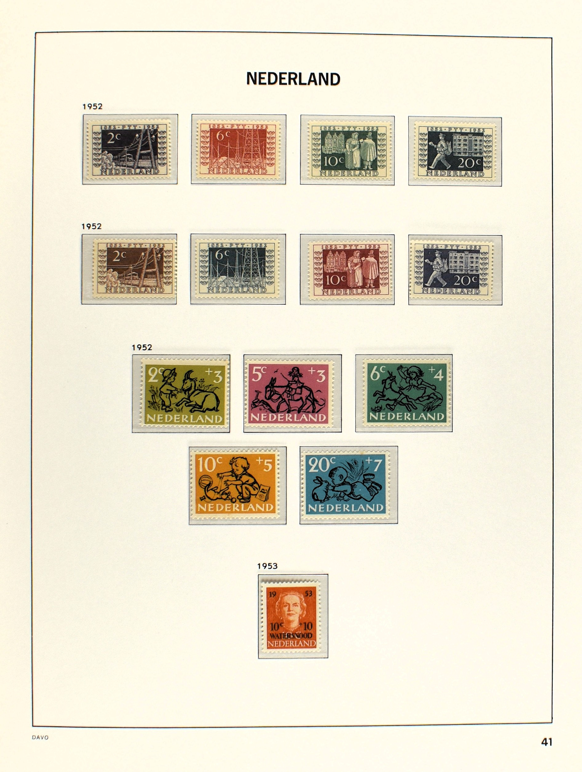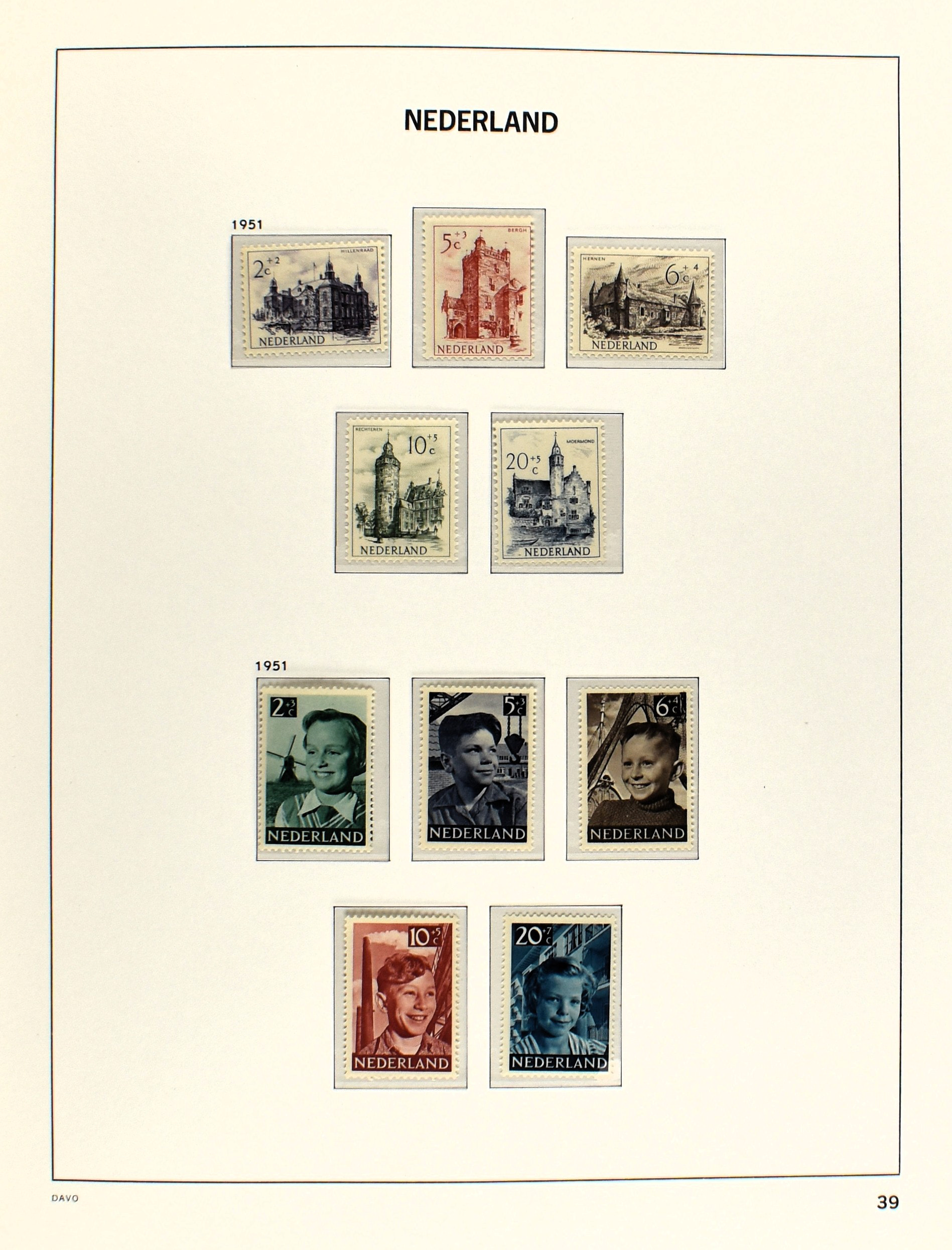 NEDERLAND 1852-1990, o/*/** in 6 Davo albums waarbij zeer aardige nummers o.a.: 1/29, 78/79*, 84/86**, 104/105, 130/31, aardige afdeling Port, Roltanding en Dienst alsmede enkele moderne gestempelde jaarsets (2005/2006 en 2009) (Image) (Image2)