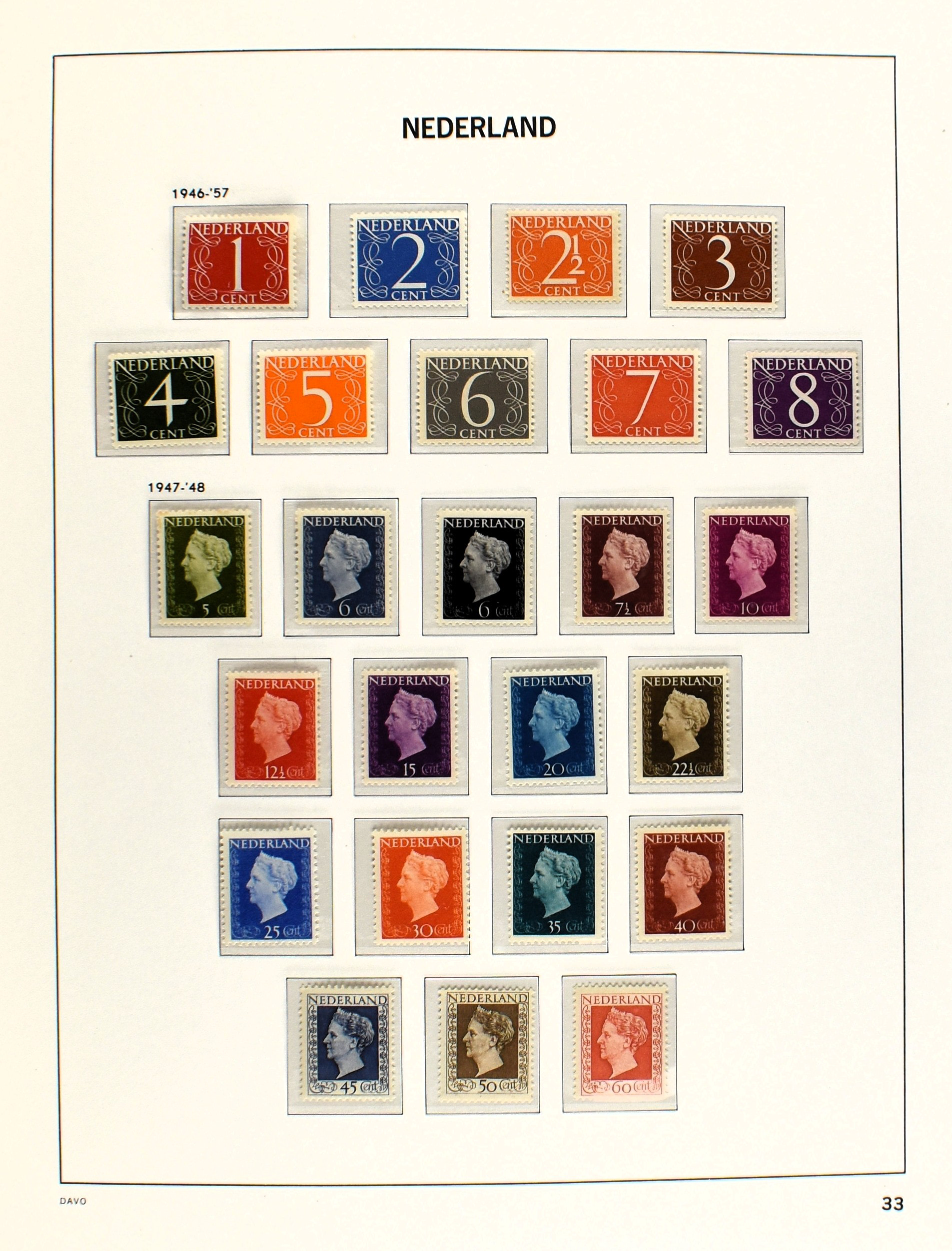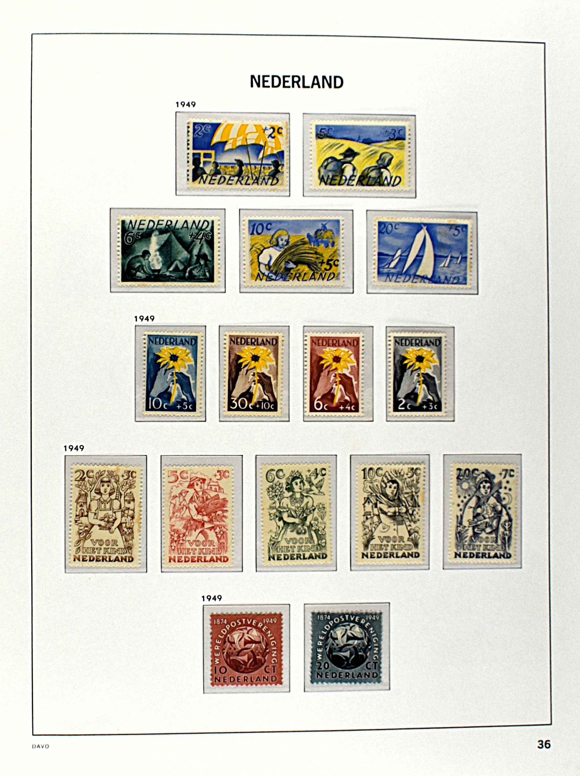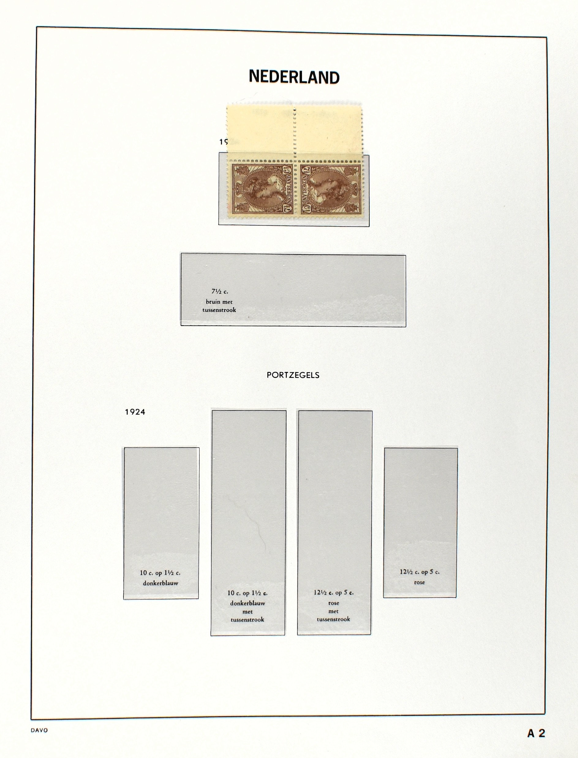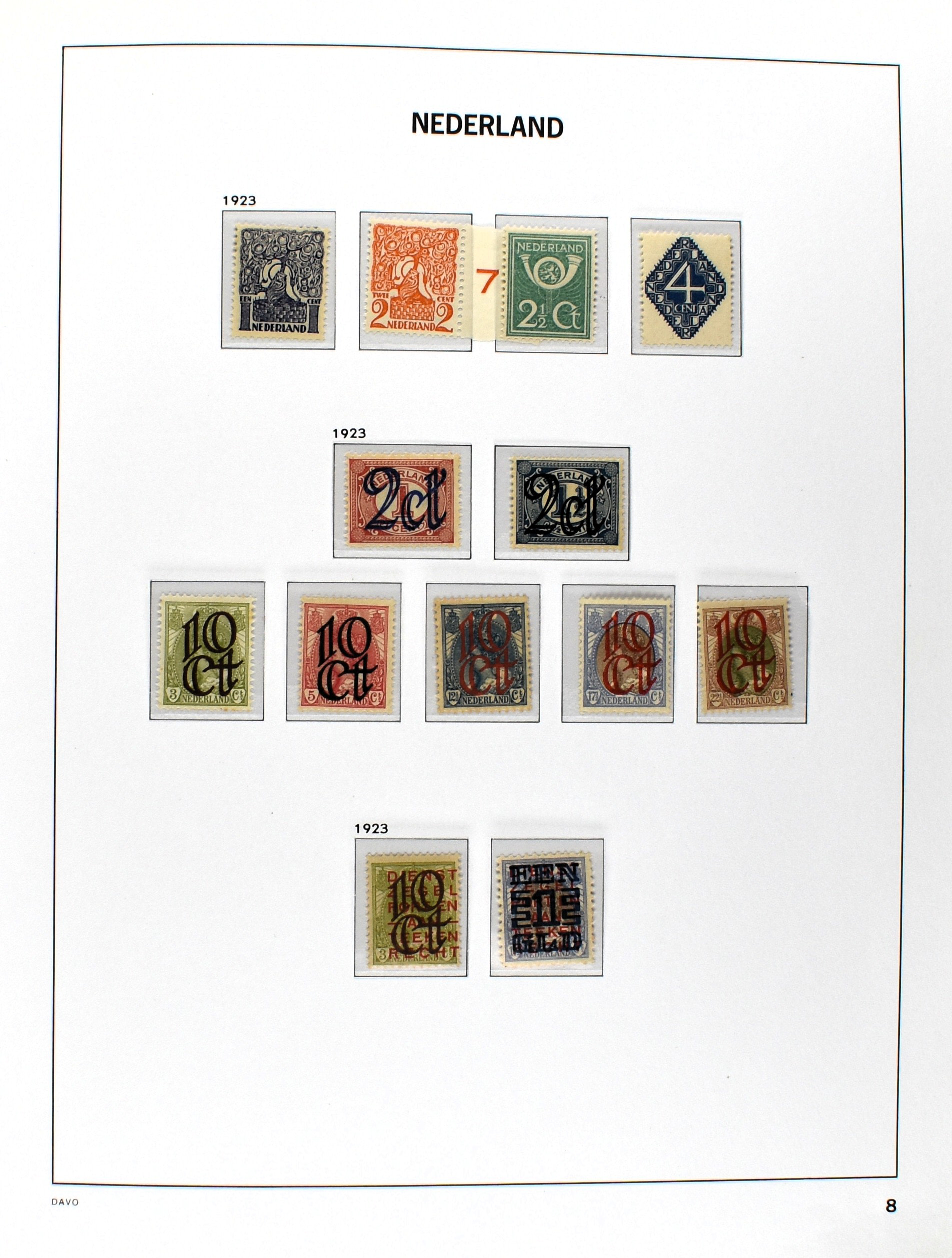 NEDERLAND 1852-1990, o/*/** in 6 Davo albums waarbij zeer aardige nummers o.a.: 1/29, 78/79*, 84/86**, 104/105, 130/31, aardige afdeling Port, Roltanding en Dienst alsmede enkele moderne gestempelde jaarsets (2005/2006 en 2009) (Image) (Image2)