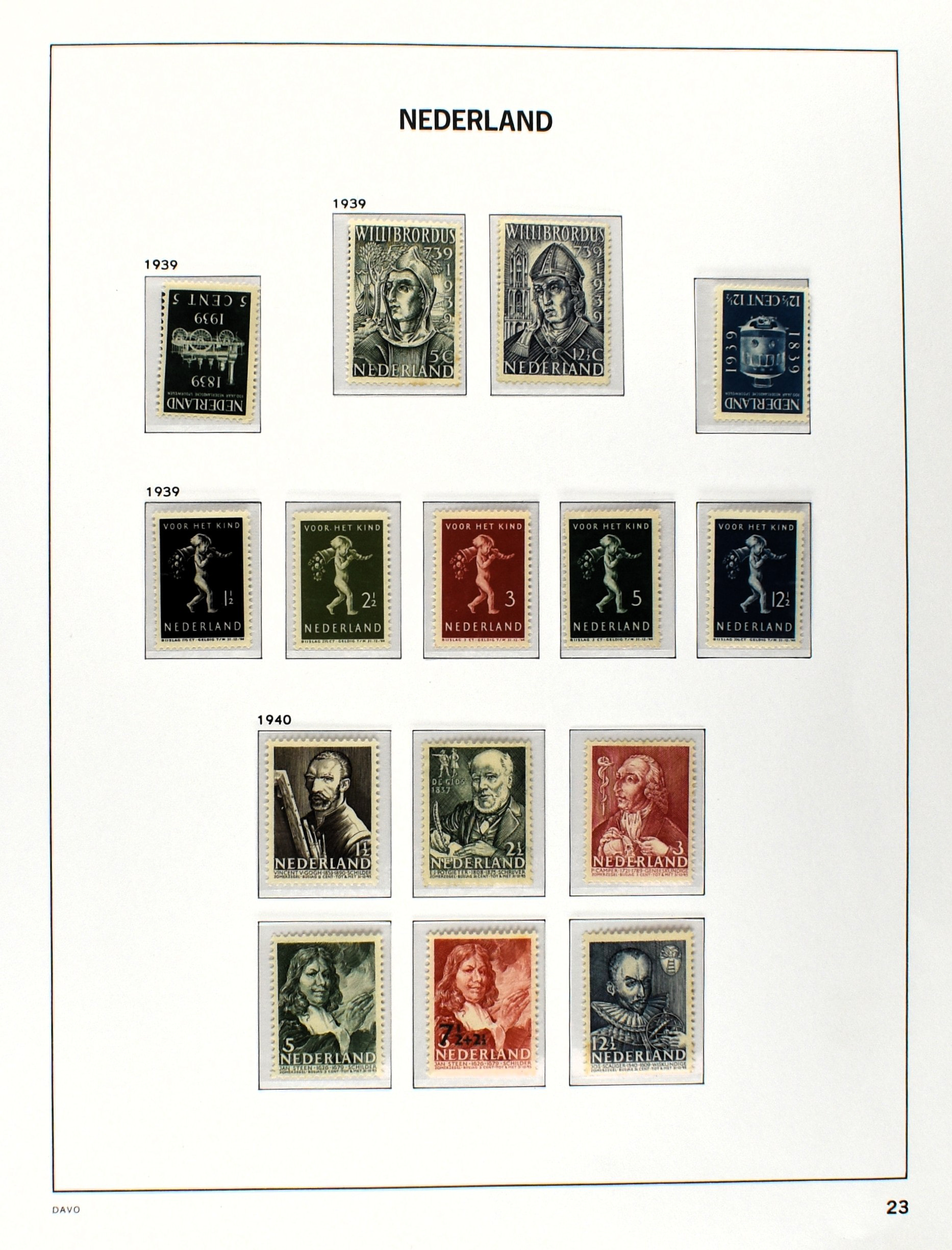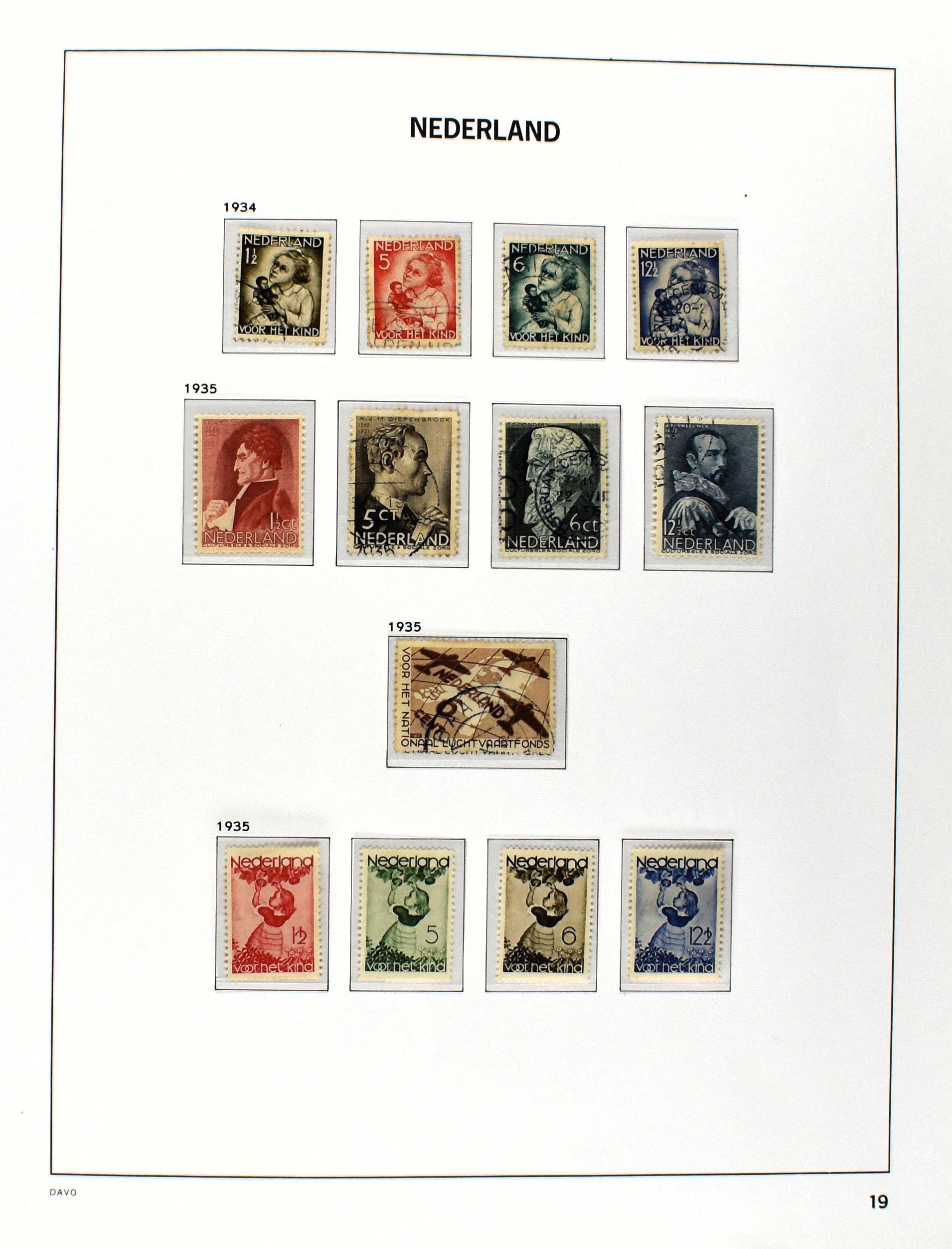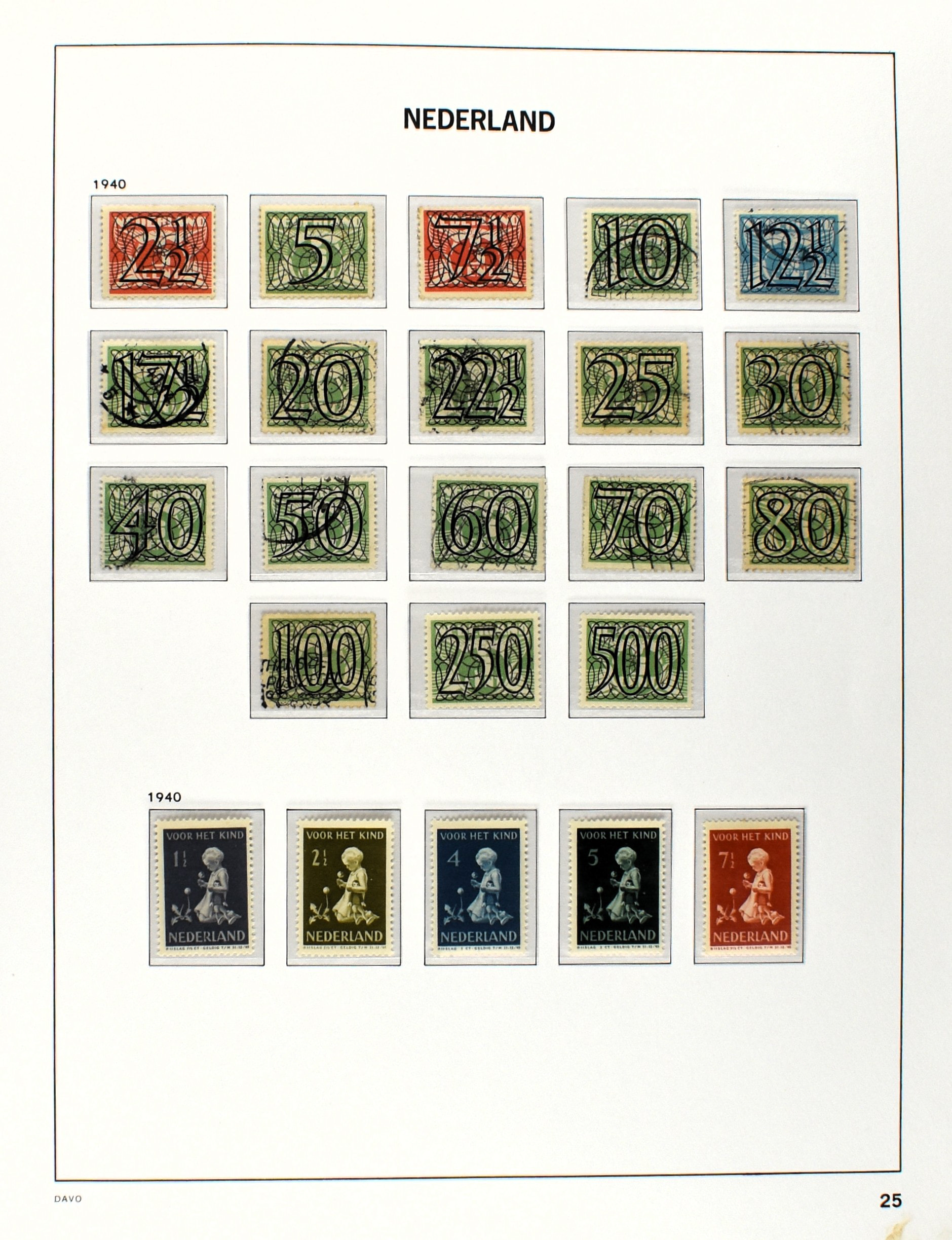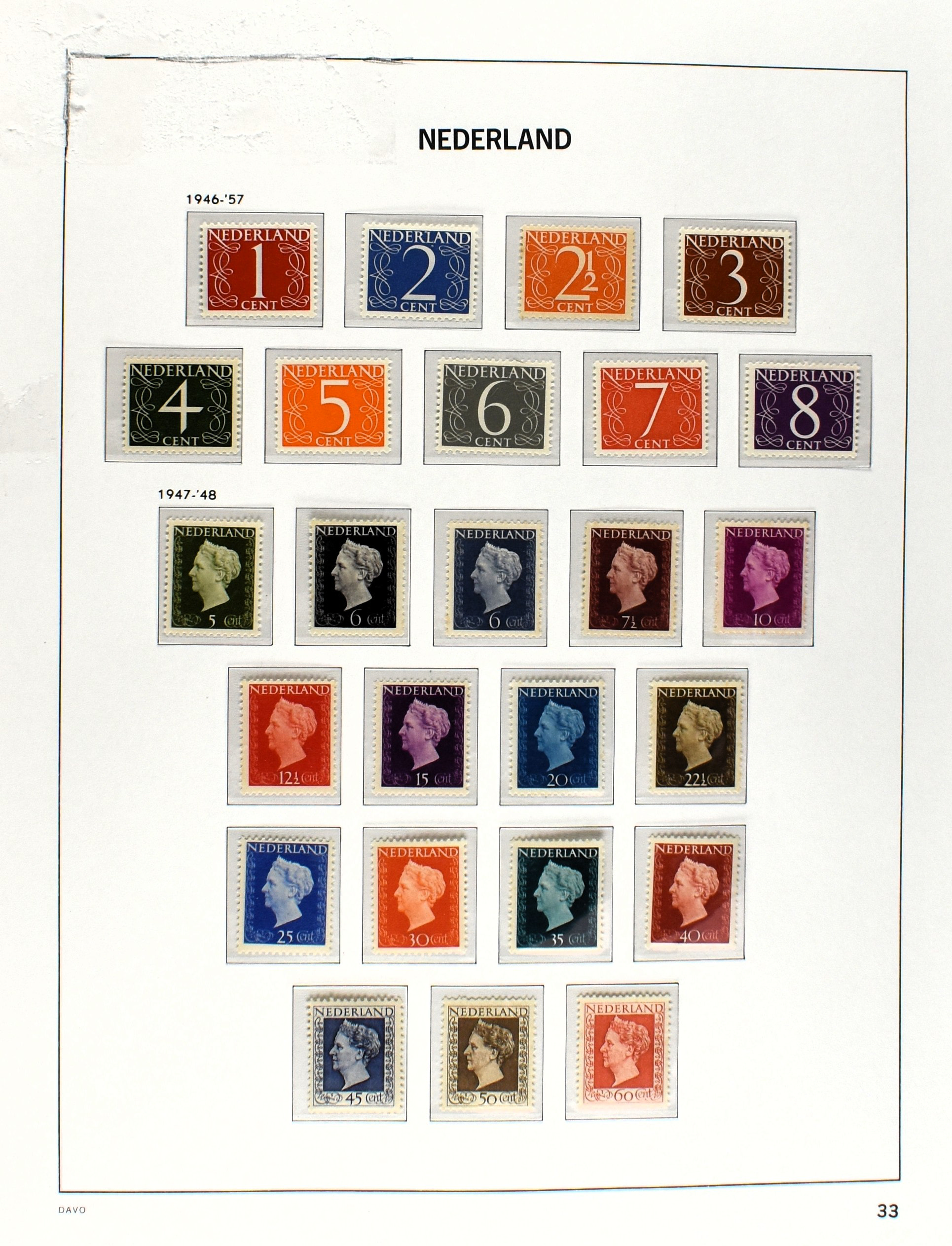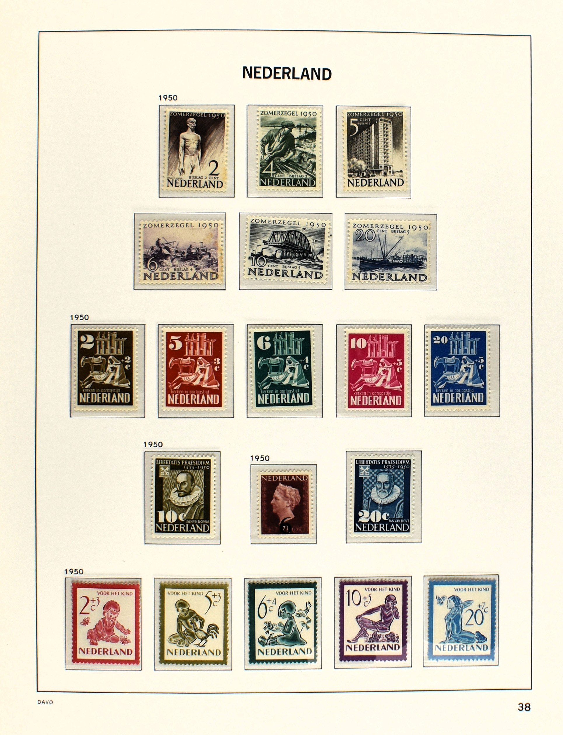 NEDERLAND 1852-1990, o/*/** in 6 Davo albums waarbij zeer aardige nummers o.a.: 1/29, 78/79*, 84/86**, 104/105, 130/31, aardige afdeling Port, Roltanding en Dienst alsmede enkele moderne gestempelde jaarsets (2005/2006 en 2009) (Image) (Image2)
