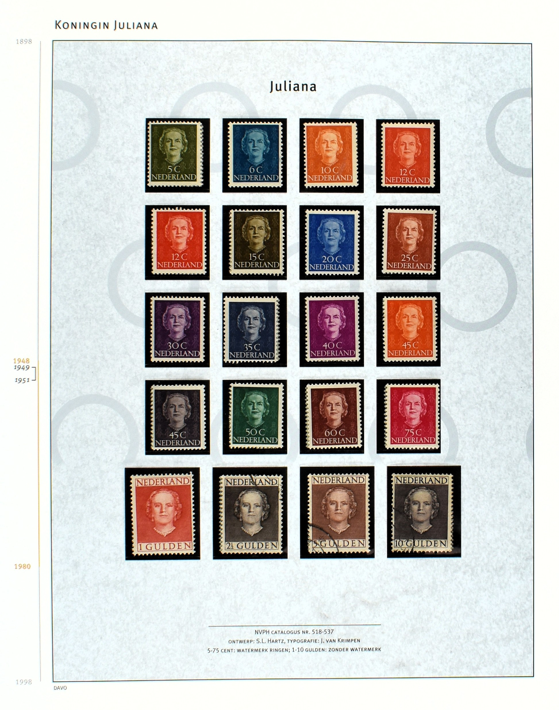 NEDERLAND FDC's E2-E124 (vanaf E19 zonder adres, mogelijk van de oudere enveloppen potloodadres uitgegumd), vanaf 1998-2021 in 5 speciale Davo-albums