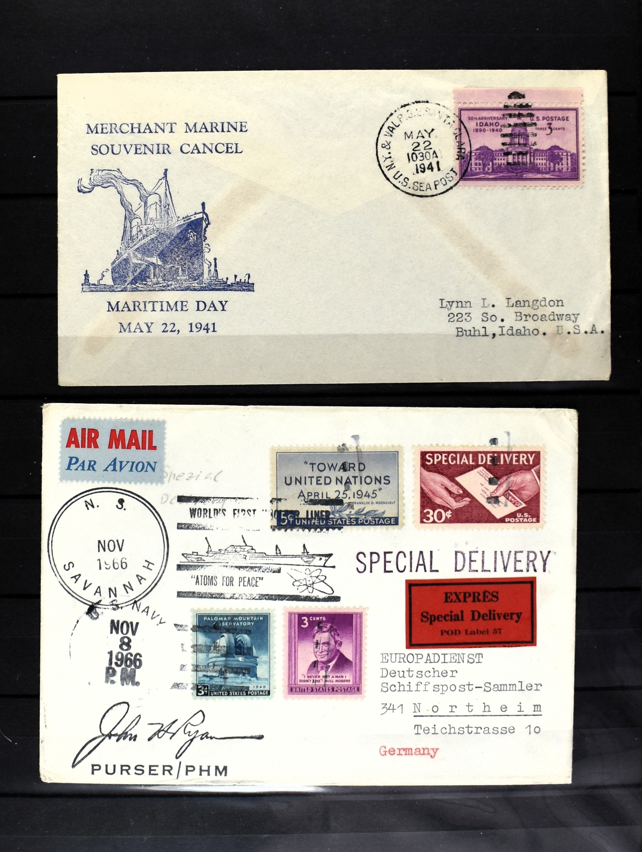 WORLD, POSTAL HISTORY AND SHIPMAIL, extensive collection in 10 albums, with a lot of different countries, Great Britain and U.S.A. well at present with over 100 covers. Further France, Denmark, South Afrika, T.A.A.F. etc. (Image) (Image2)