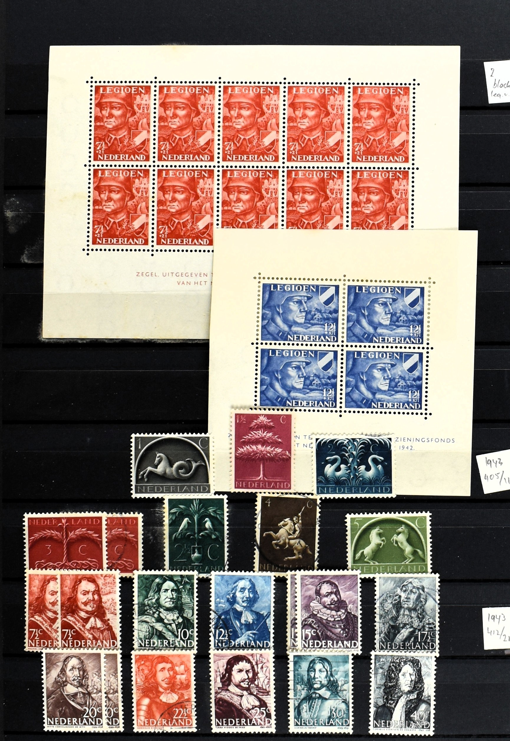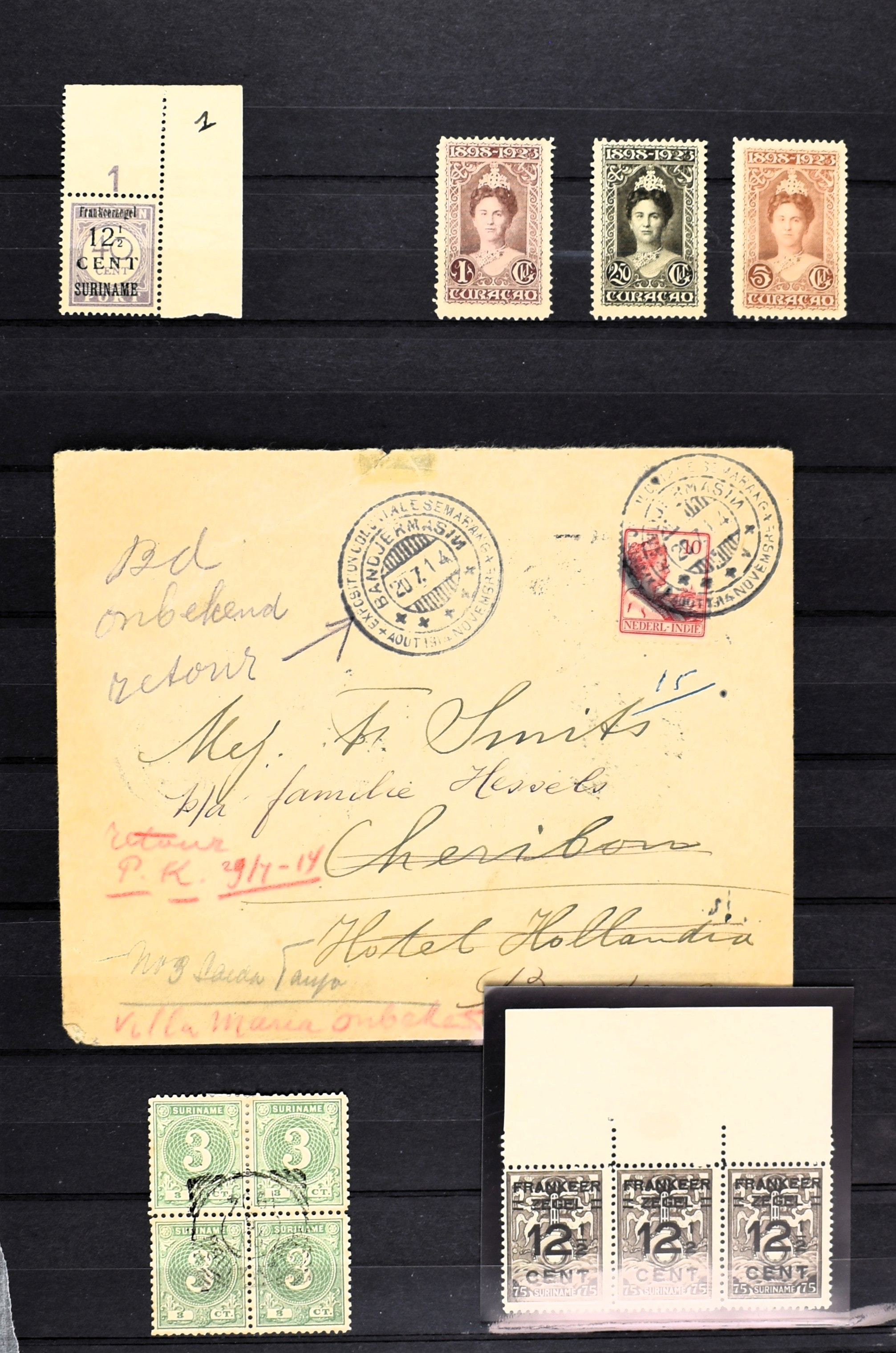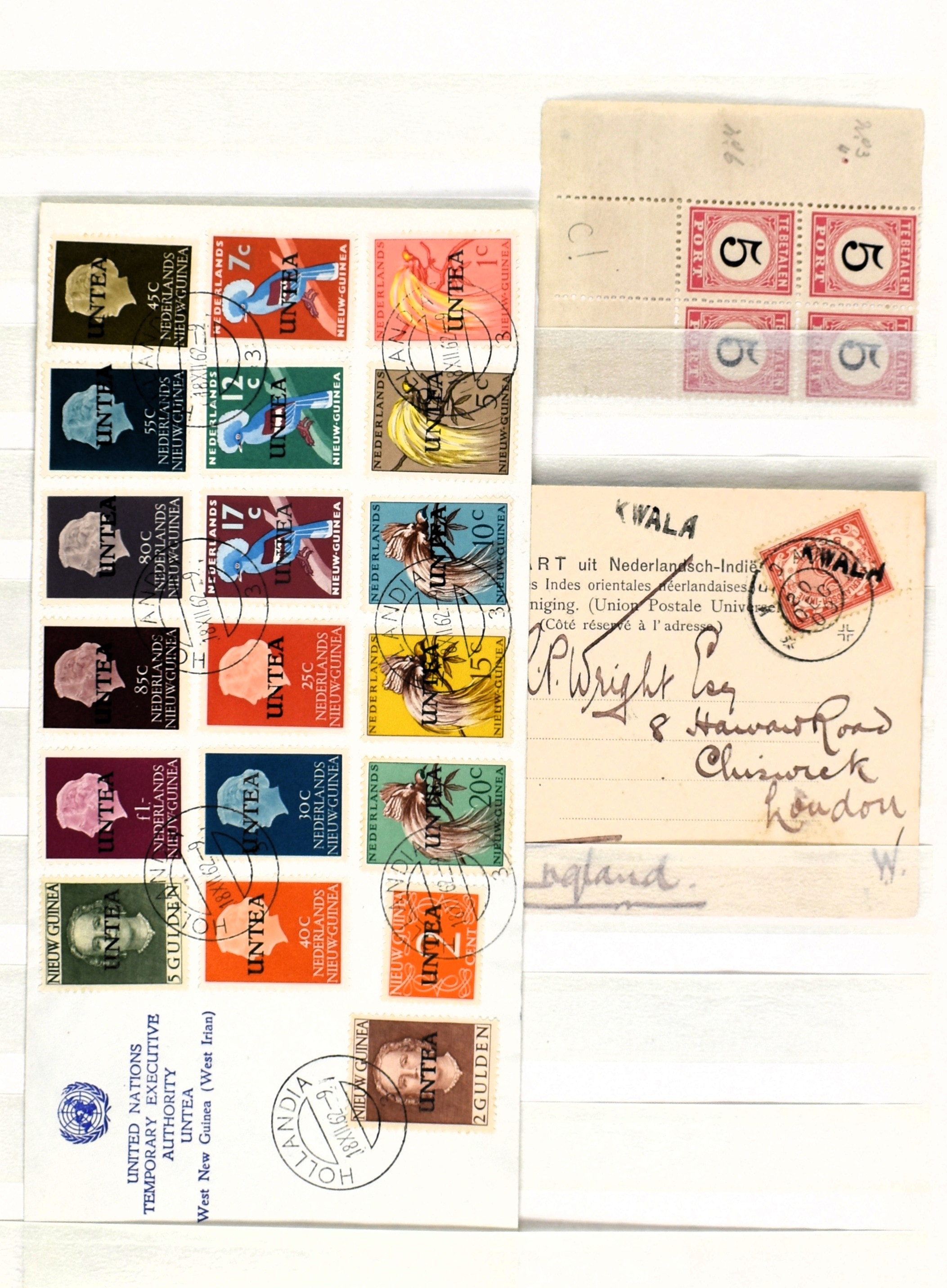 NEDERLAND EN O.G.D., o/*/** in 4 insteekboeken waarbij aardig materiaal zoals o.a.: 26, 48(3), 74 blok v. 4, 130(3), 131, 534/537, Curaçao LP18/25, Nederlands Indië 289, Suriname 3 DOX-brieven met diverse frankeringen. Benieuwd naar dit