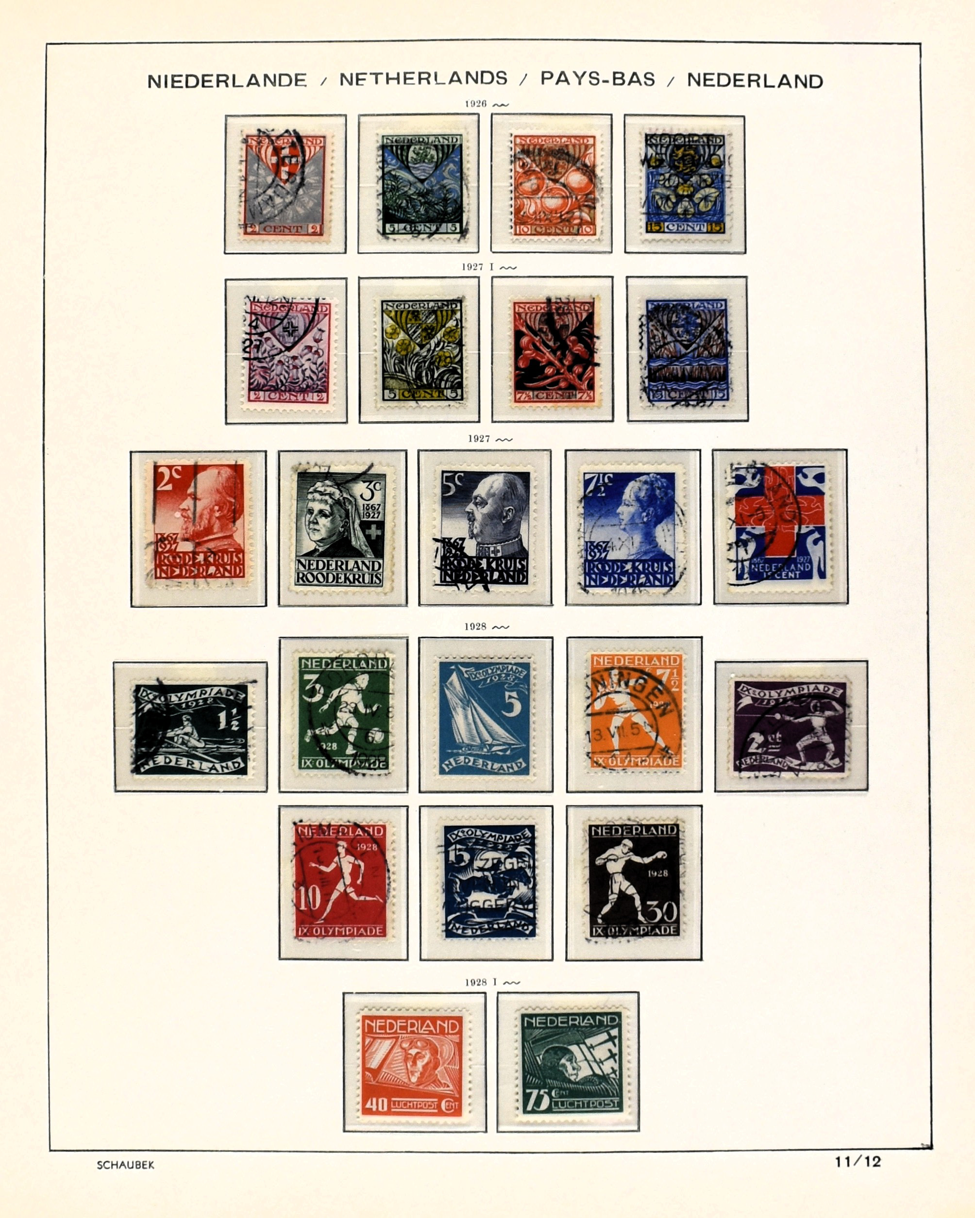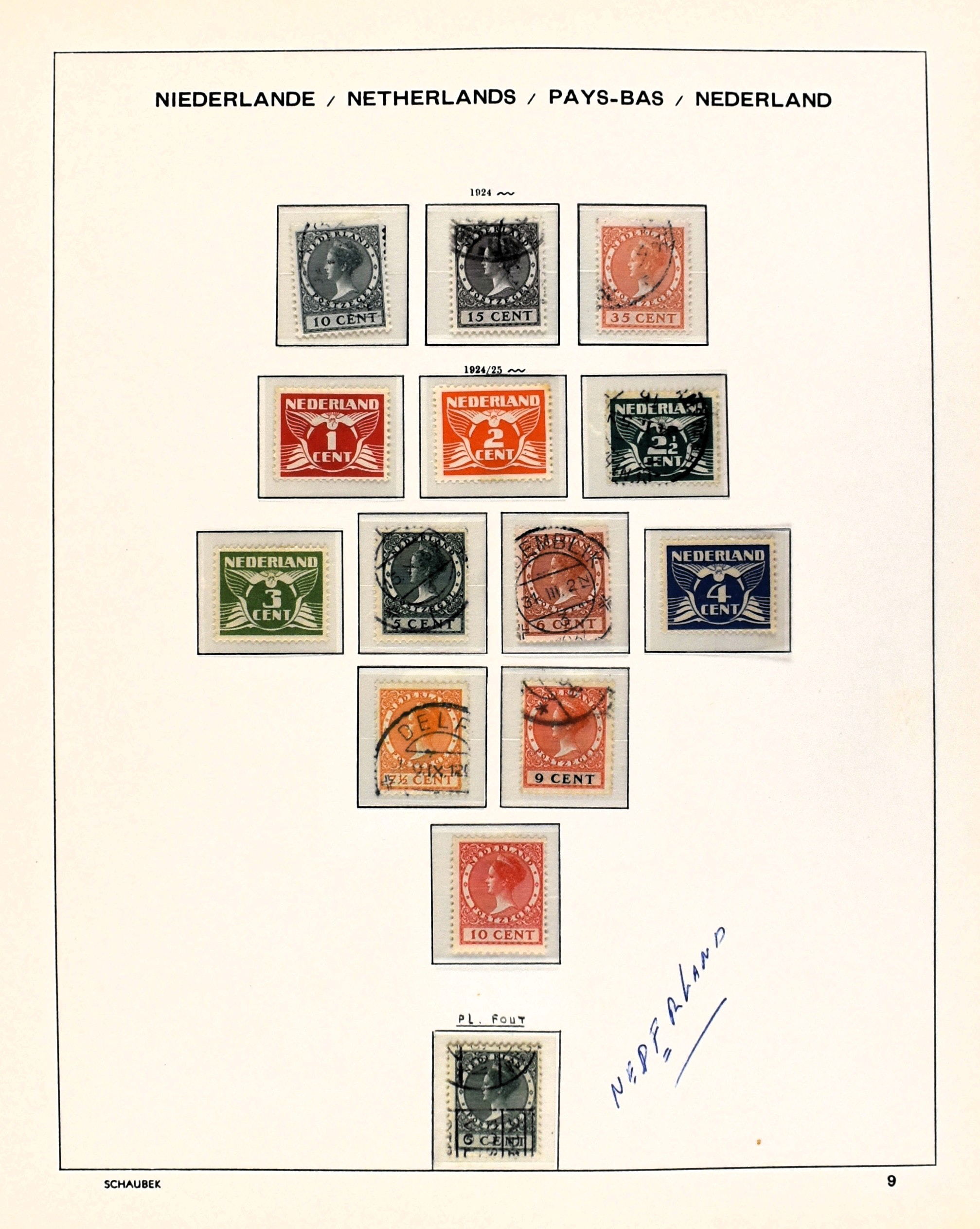 NEDERLAND 1852-1978, o/*/** in 2 Schaubek albums waarbij enkele aardige nummers o.a.: 47, 49, aardig roltanding alsmede een oude voorraad in 2 insteekboeken