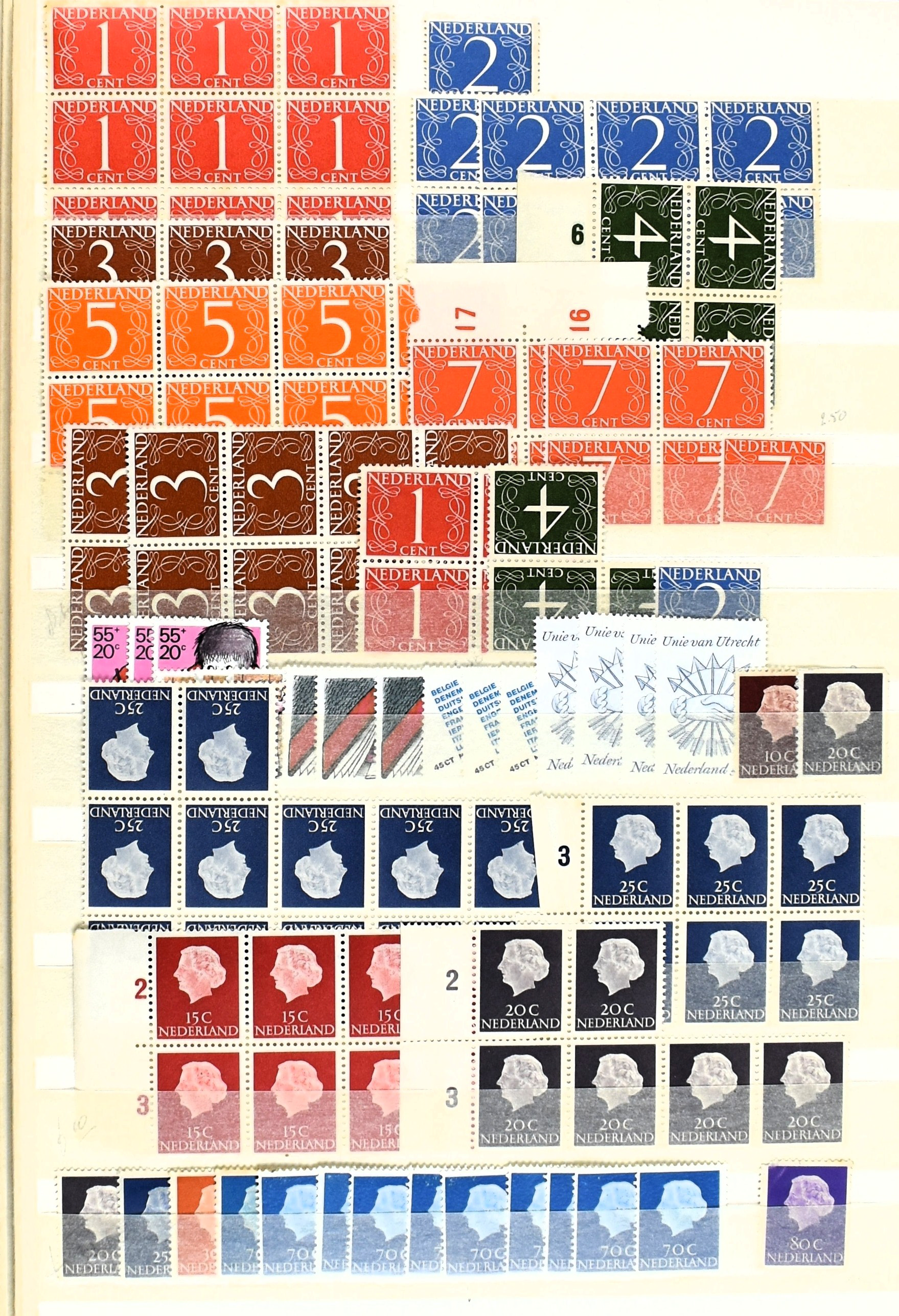 NEDERLAND 1867-2001, o/*/** verzameling in 15 albums/insteekboeken en doosje aardige vooroorlogse series en enkele aardige afstempelingen, blokken van vier, 3 albums FDCs en 1 insteekboek Indonesië. Tevens iets frankeergeldig (€375,-).