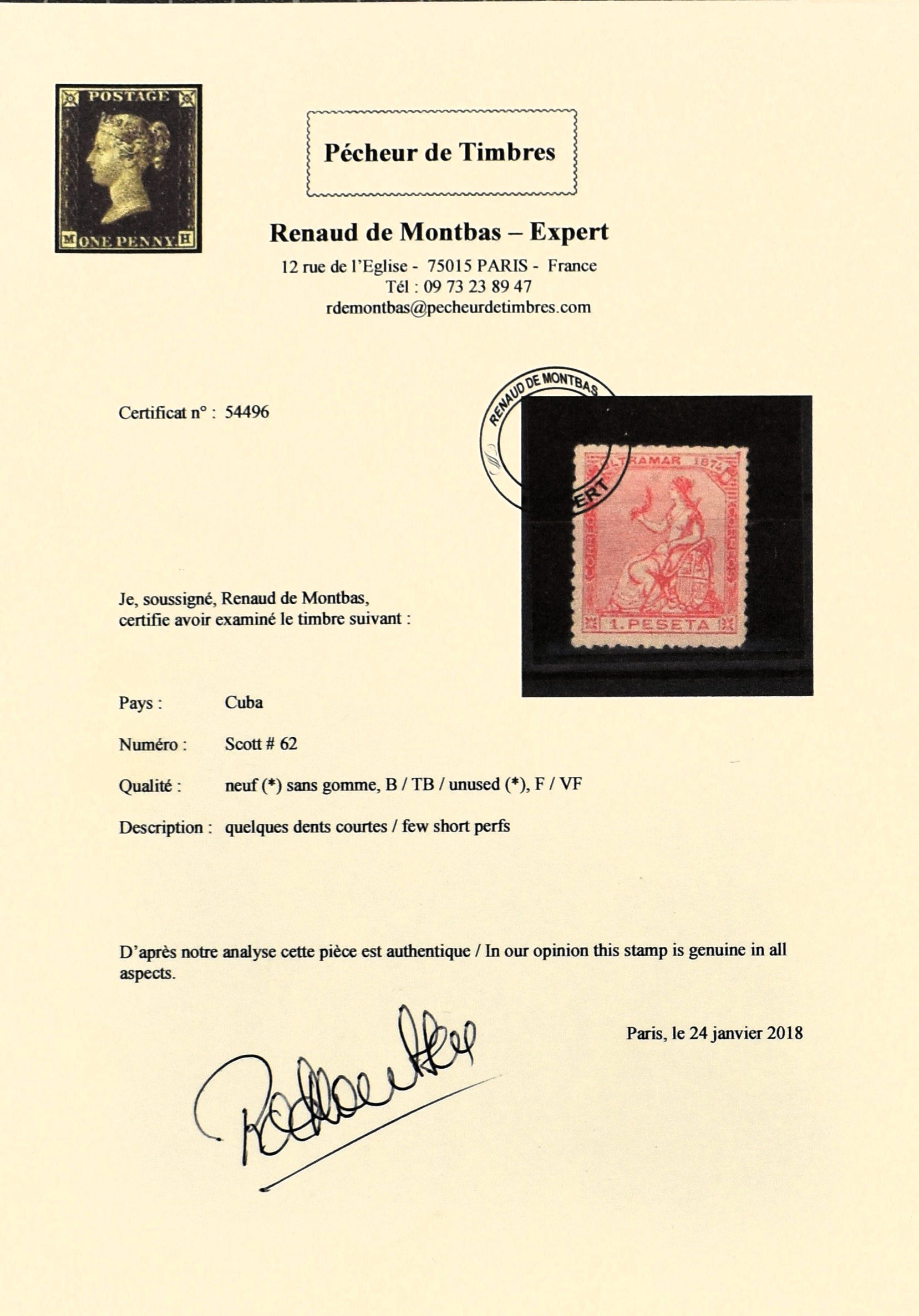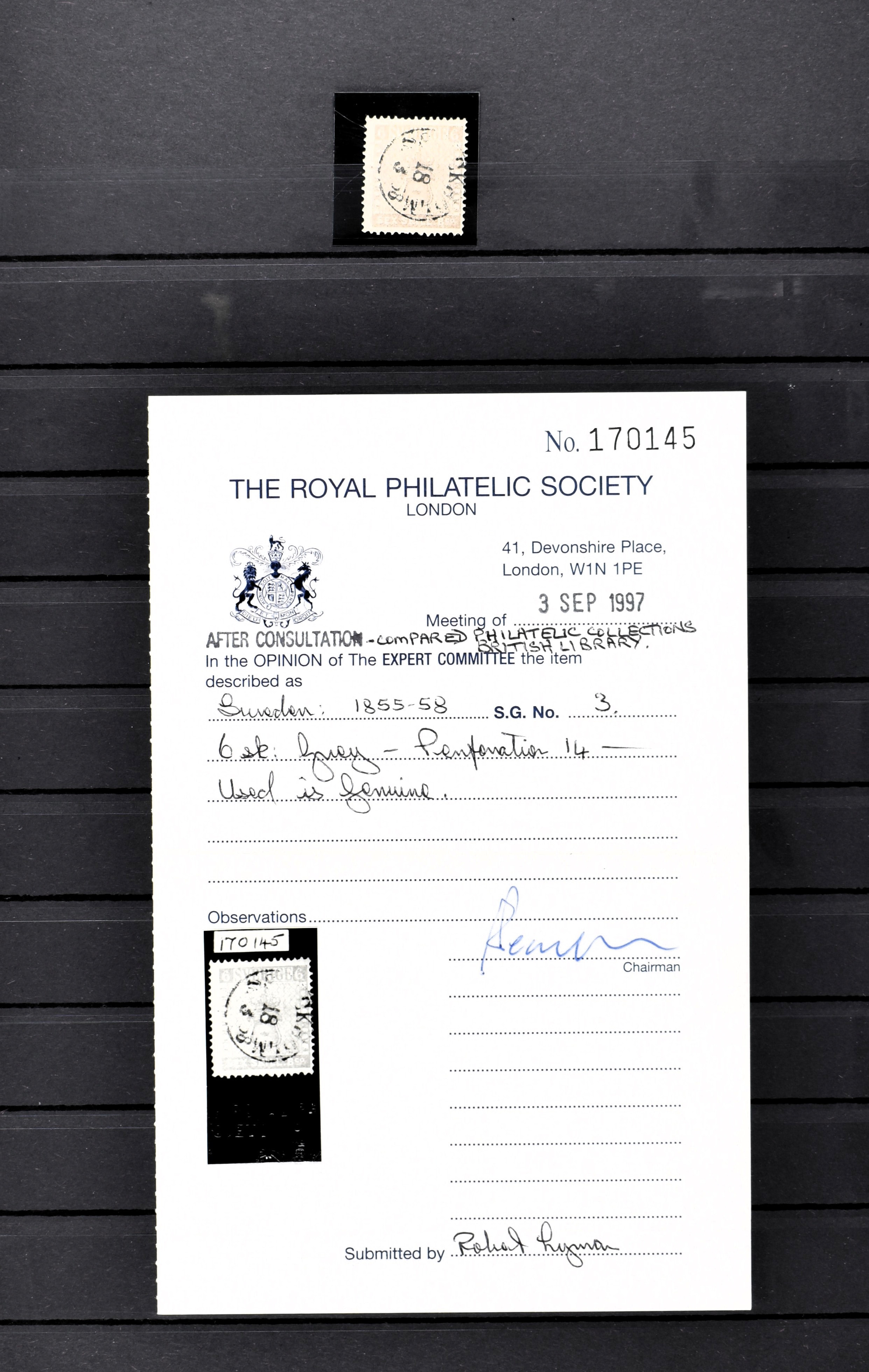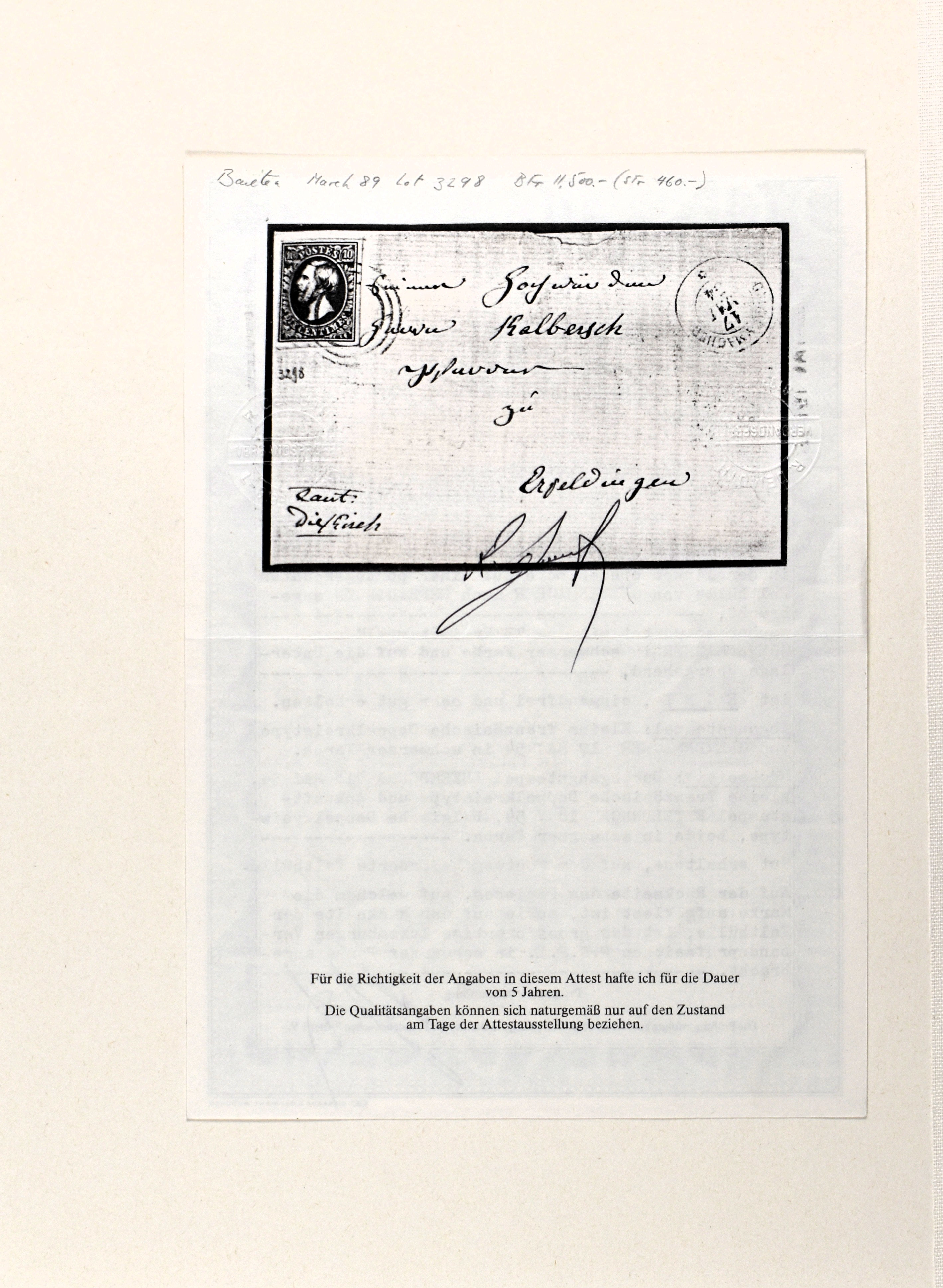 cleaning or inspecting reasons. On the back hallmark 'F.S.P.L.'. Informative certificate René Demuth (1989). Added are 6 used copies of No. 1 in different shades of black
