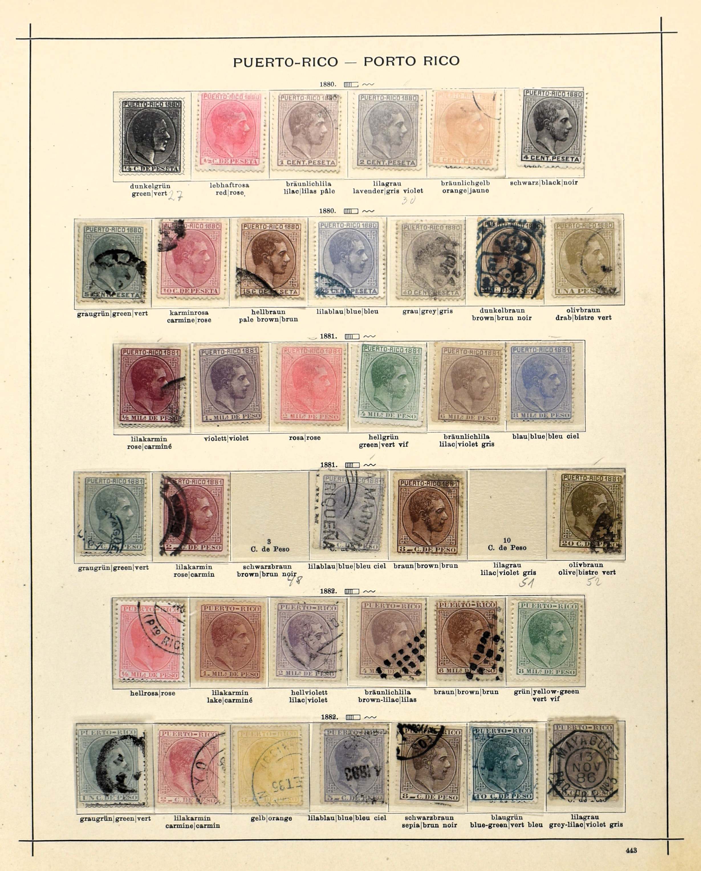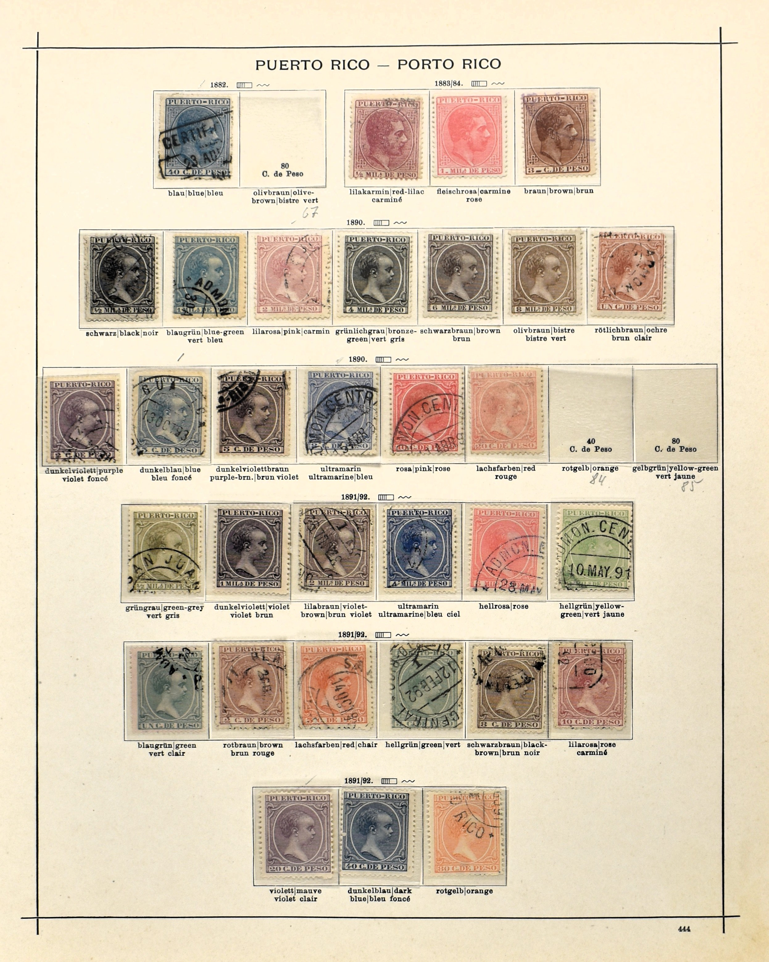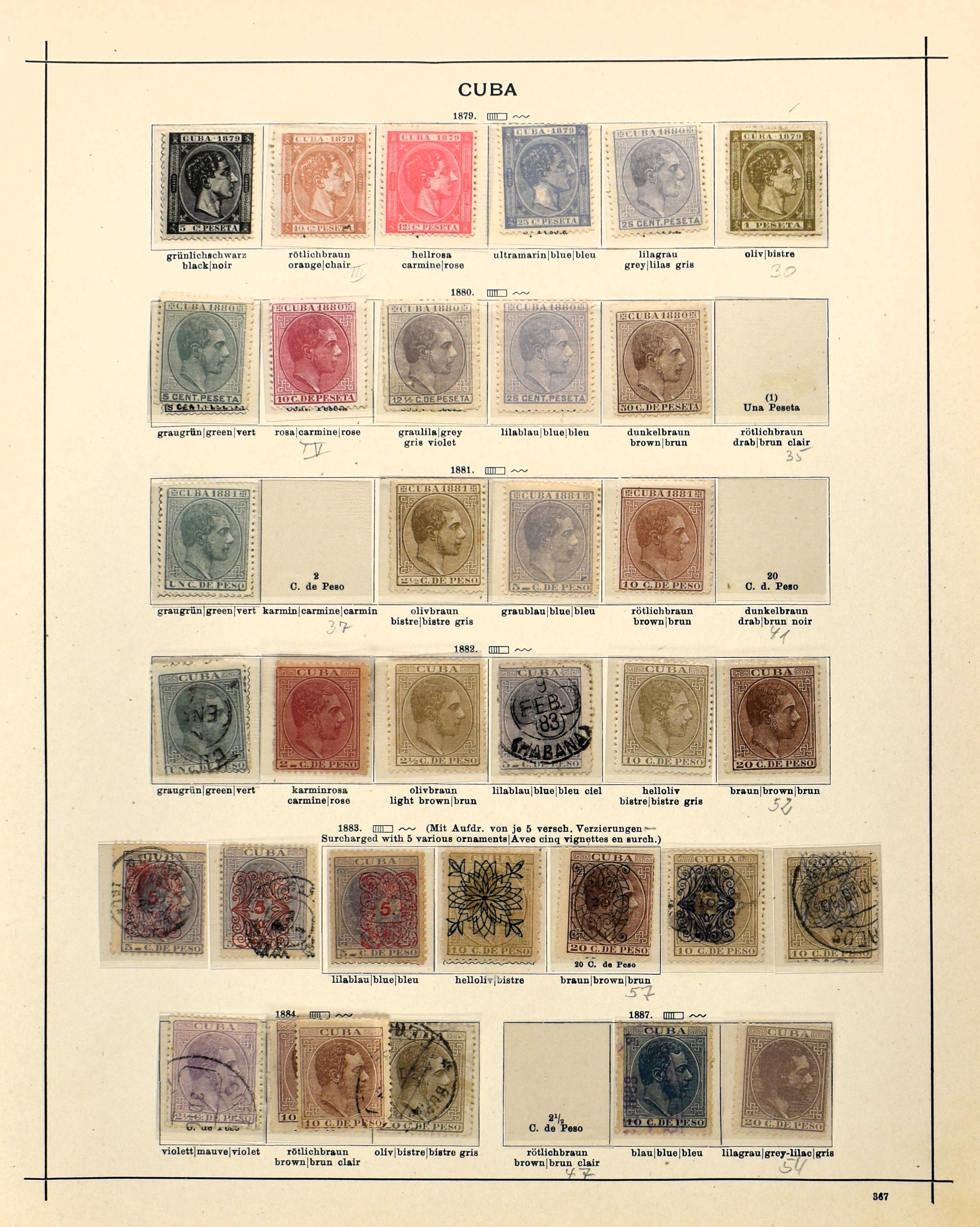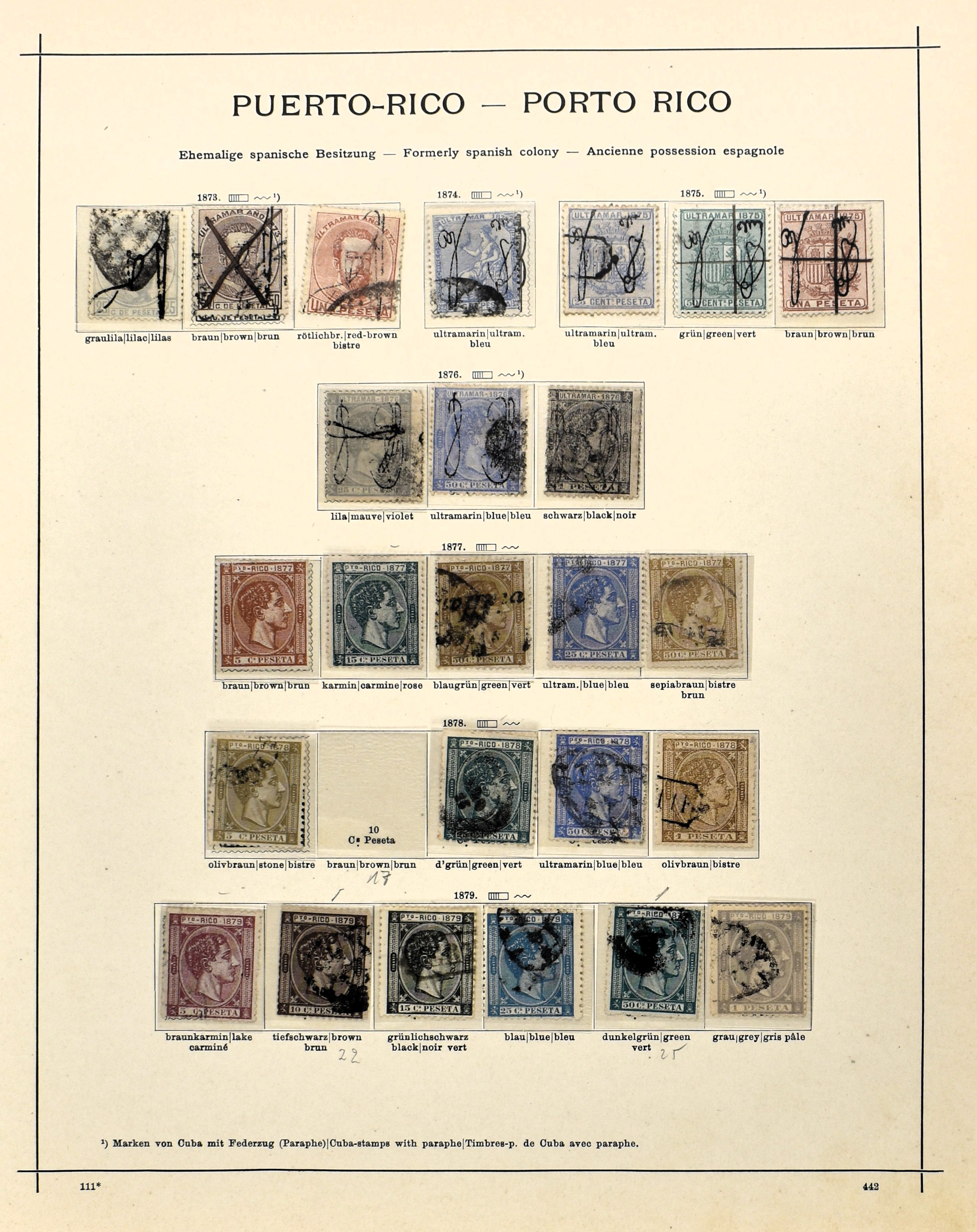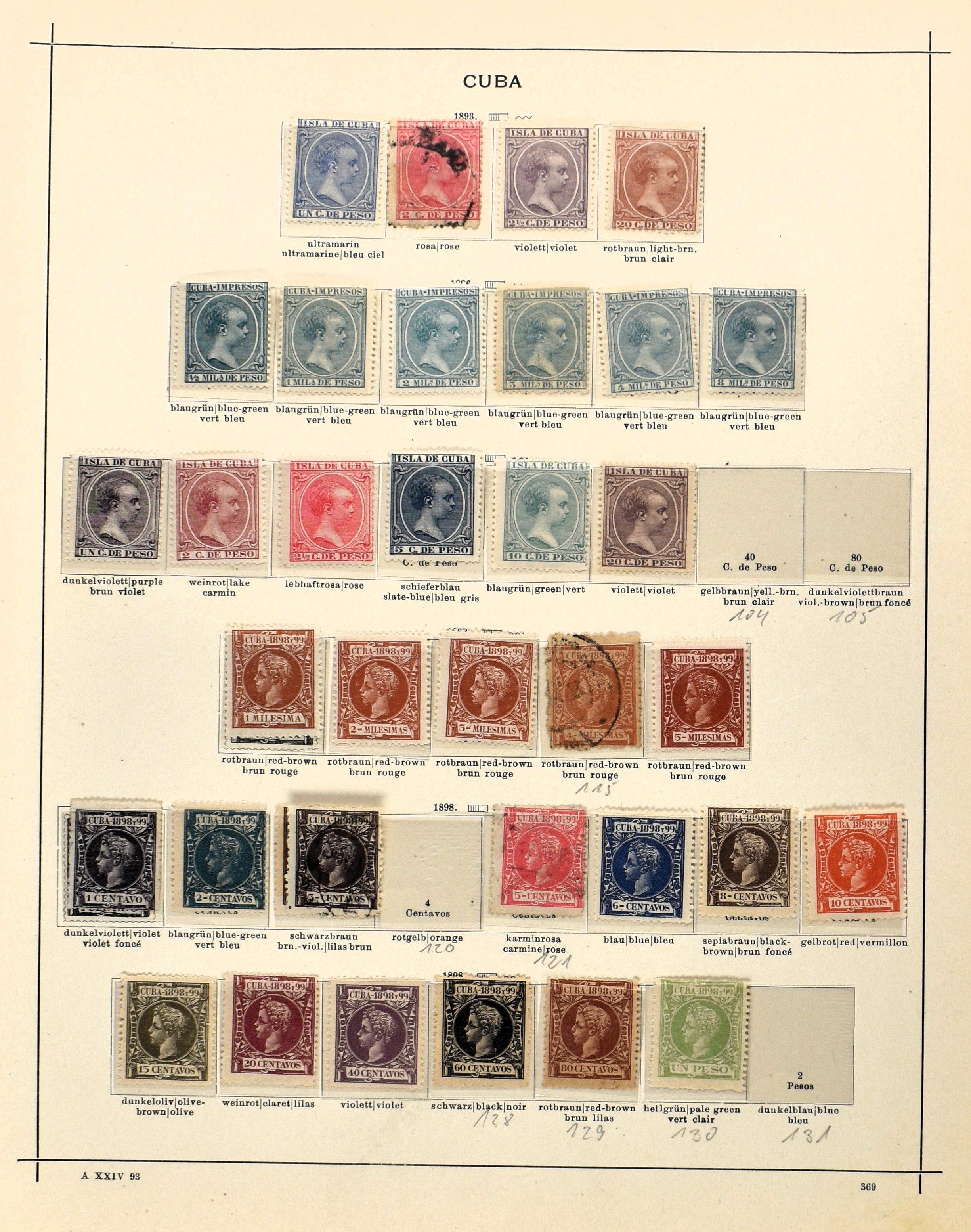 SPANISH COLONIES 1855-1900, o/(*)/* on album pages in mixed quality but still with with better material f.i.: Antilles Mi. 42(*), Cuba 8(*), Fernando Poo 1, 41, 61/62, 86, 104, Philippines 15/16, 40/44, 142*, 217* and postage due 1/7. (Image) (Image2)