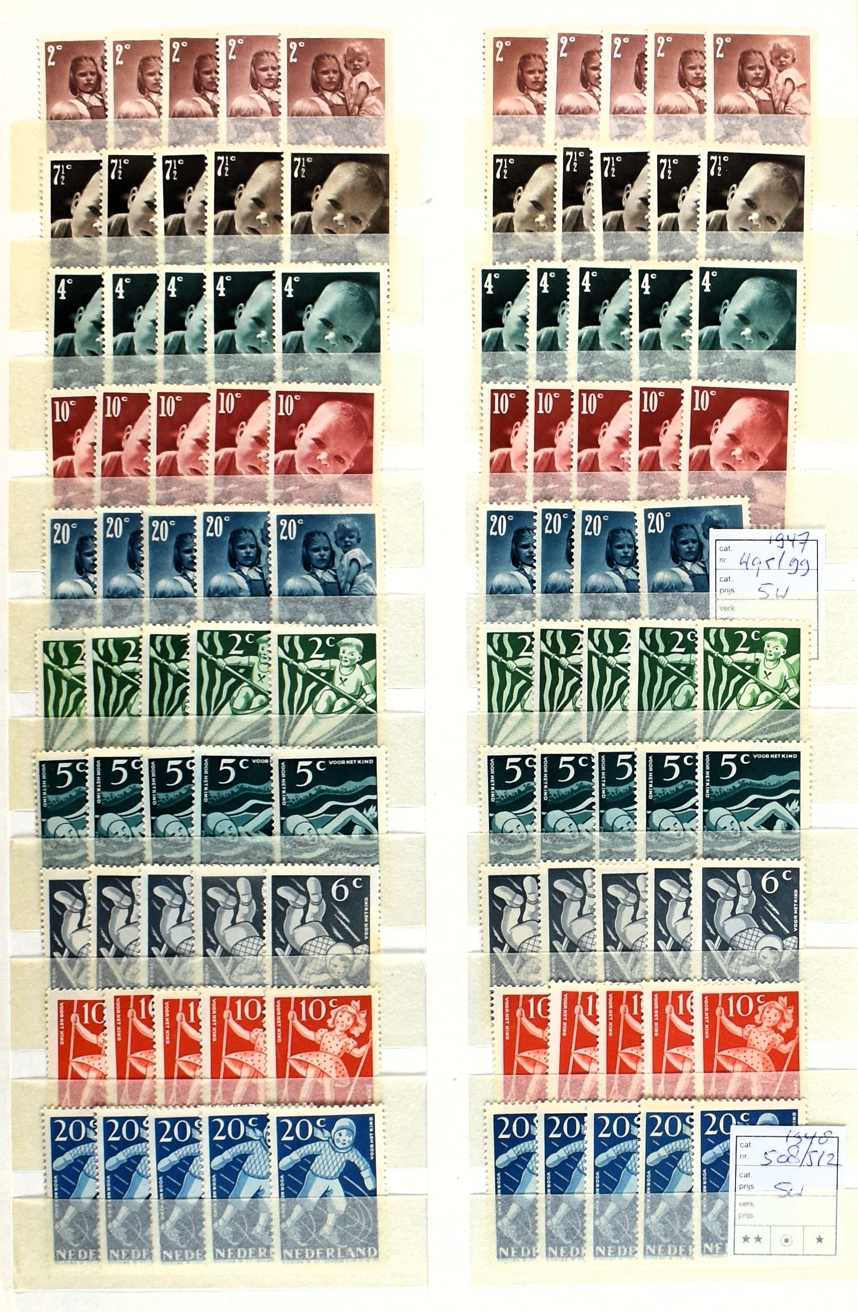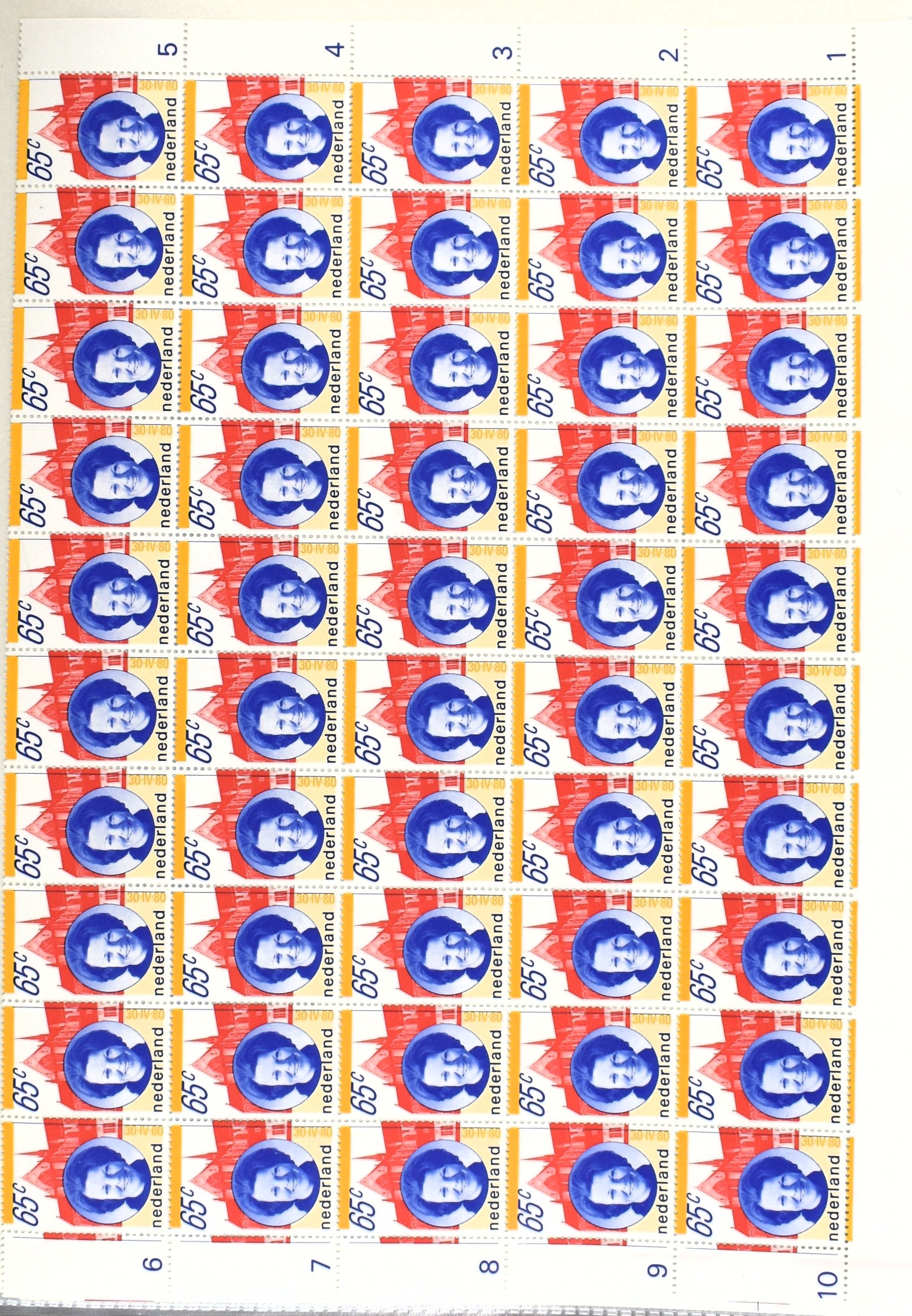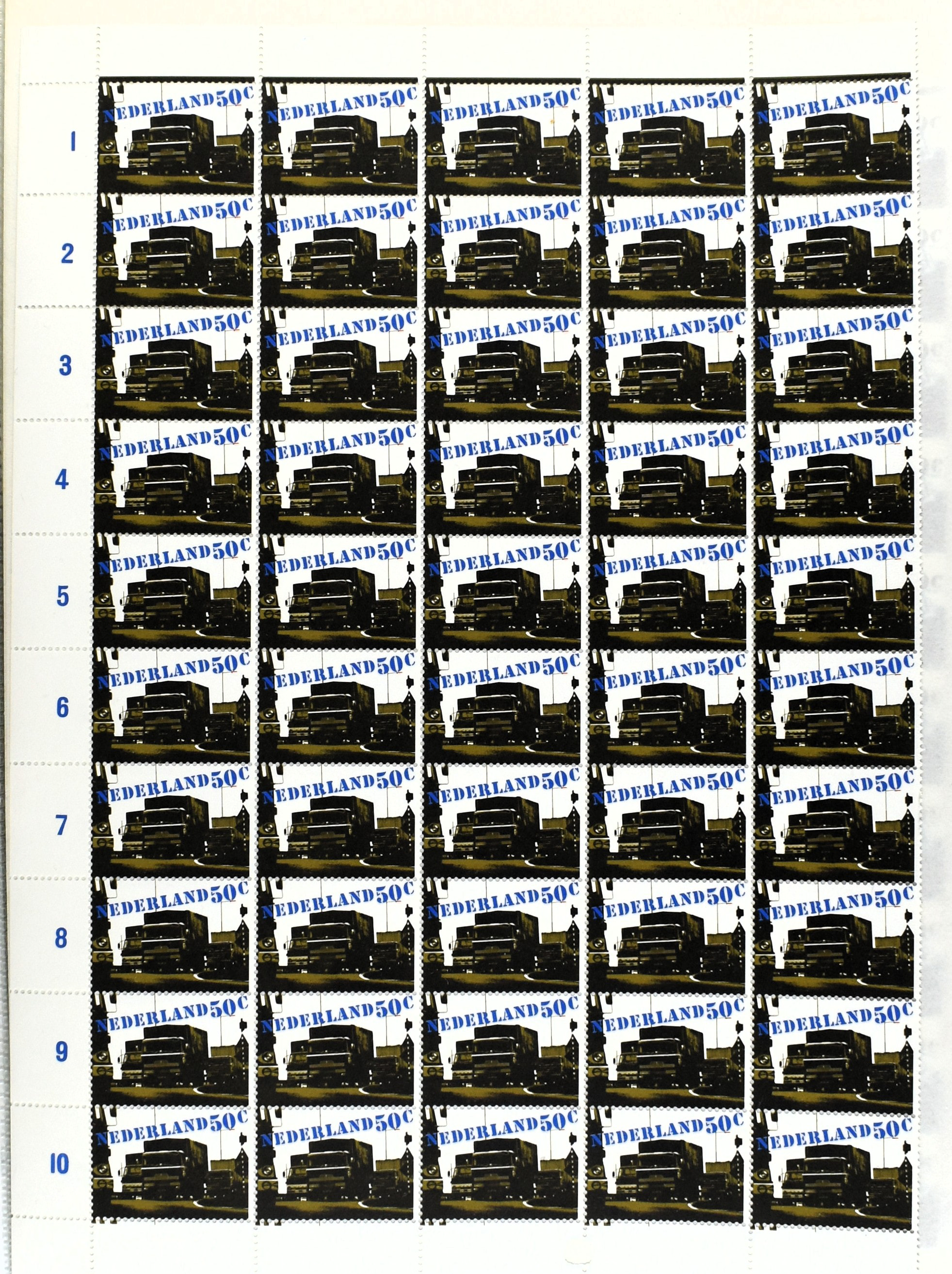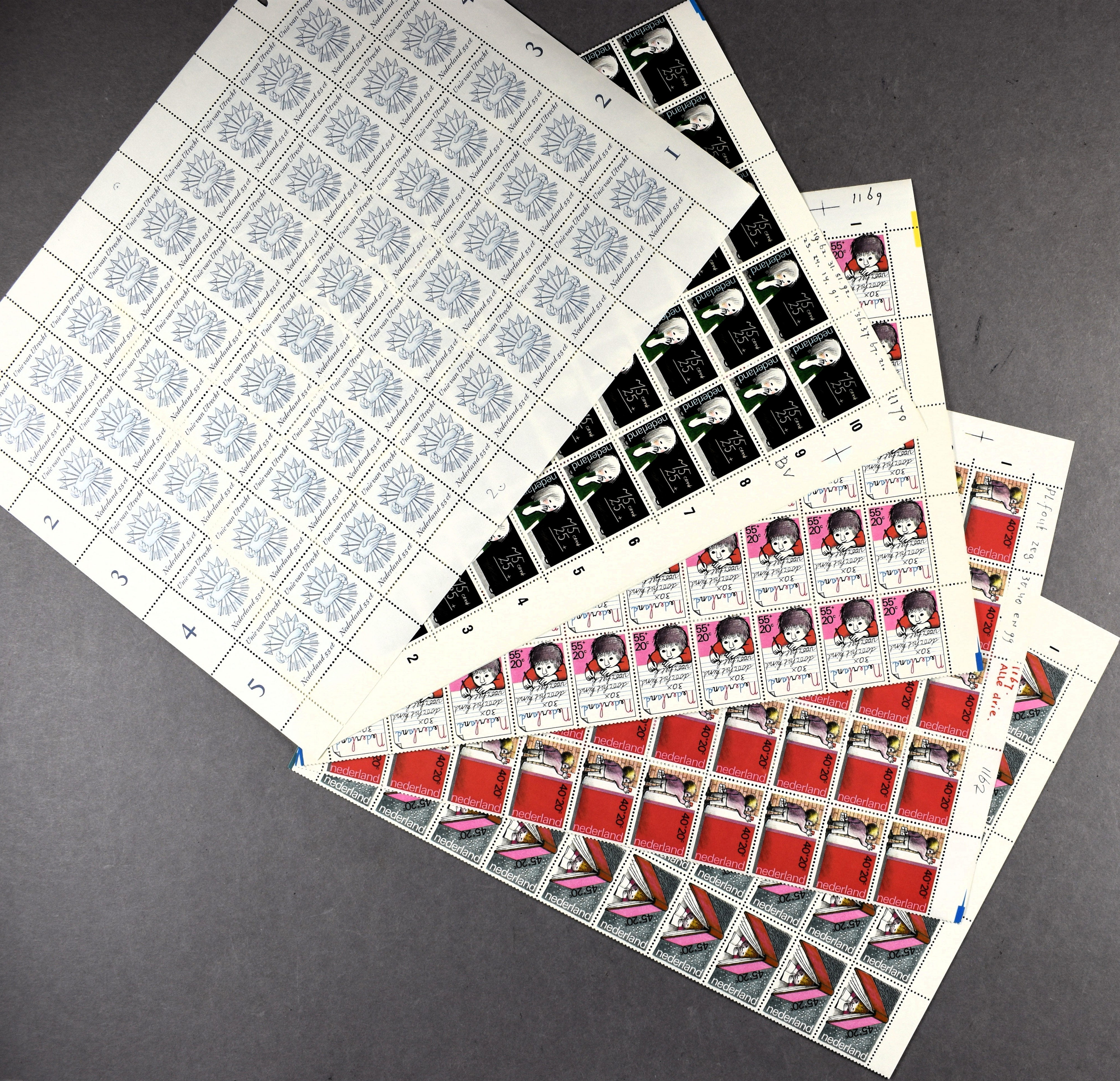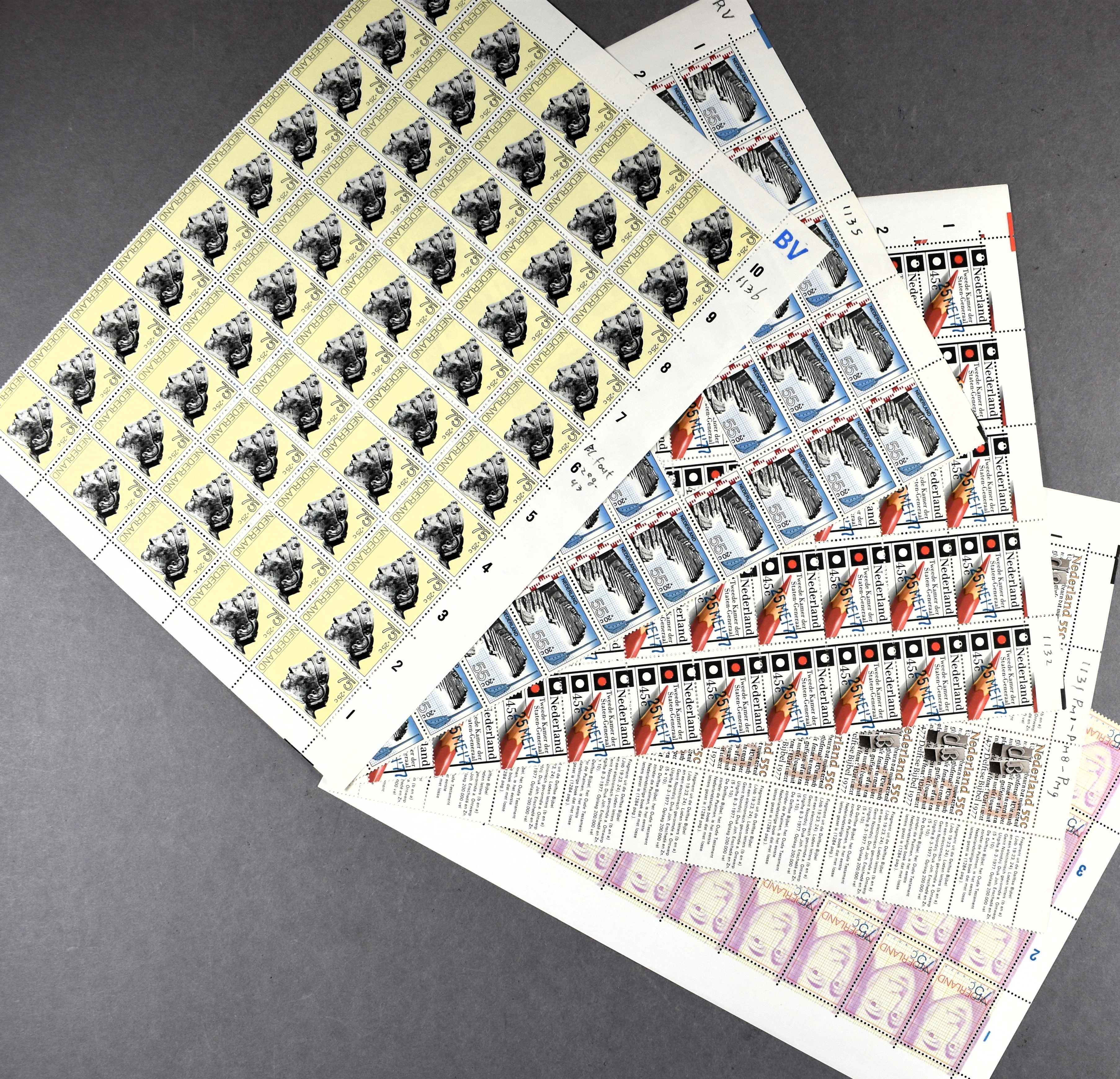 NEDERLAND, enorme partij postfrisse vellen en veldelen tussen de nummers 170-1729. Vaak in woeste aantallen van zowel enkele nummers, alsmede complete series. De partij bestaat uit 55 vellenmappen en ordners en heeft een cataloguswaarde