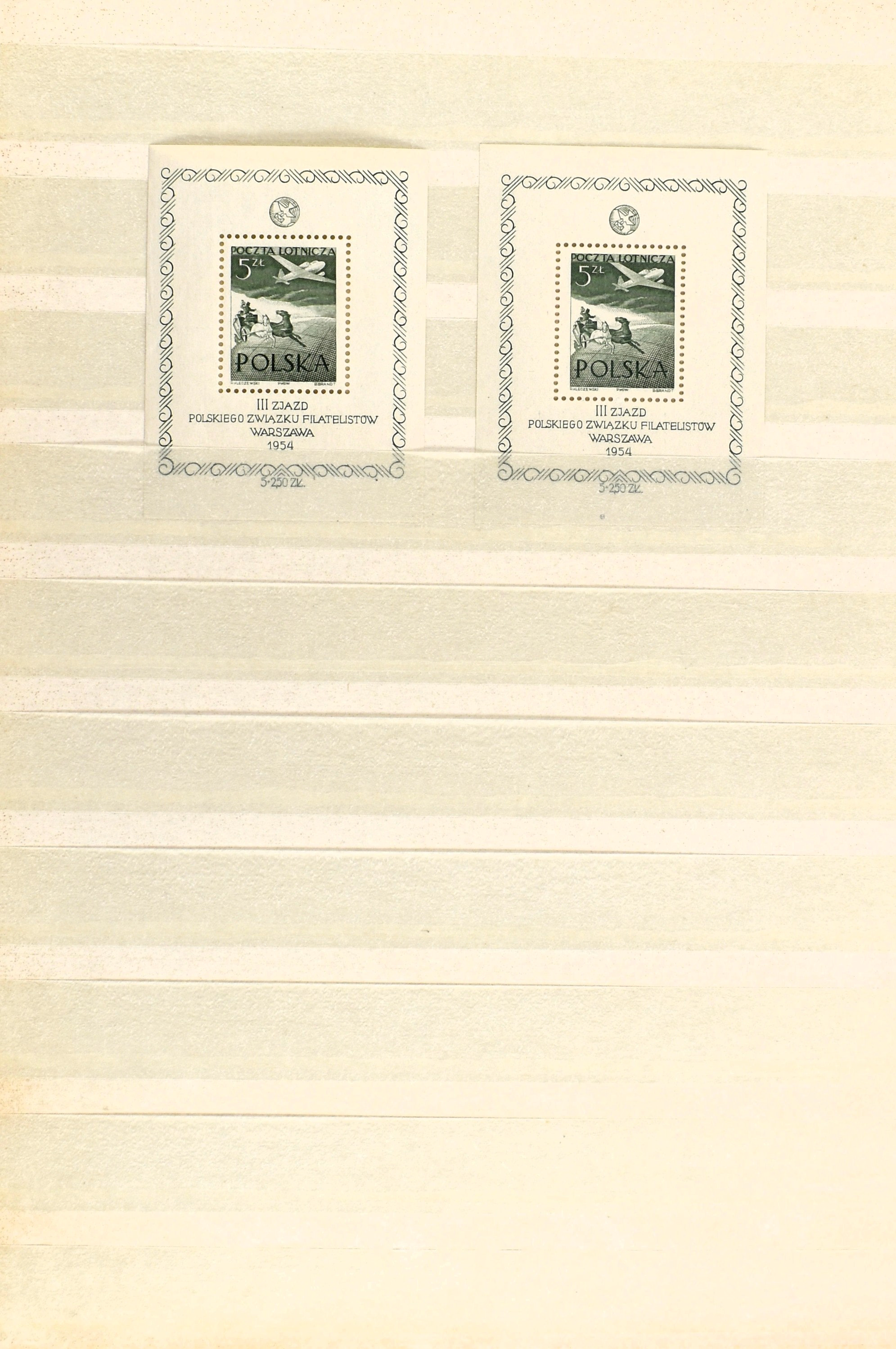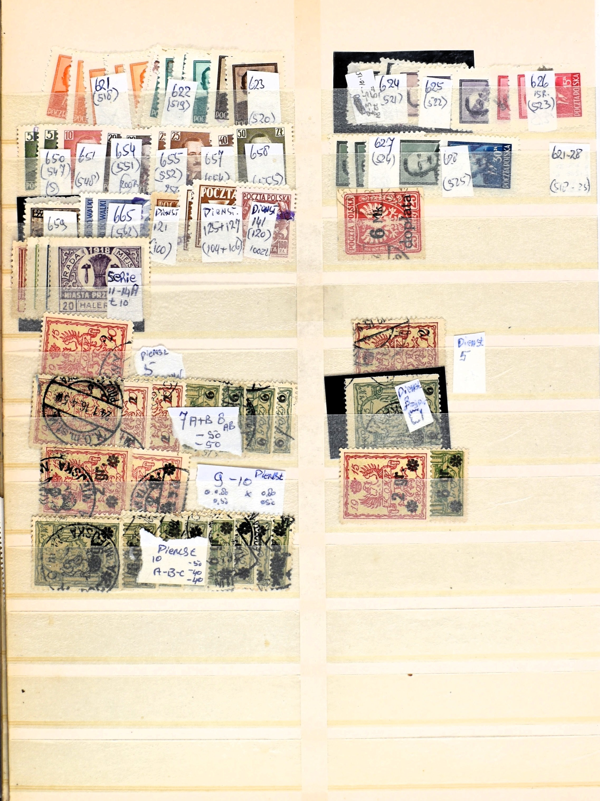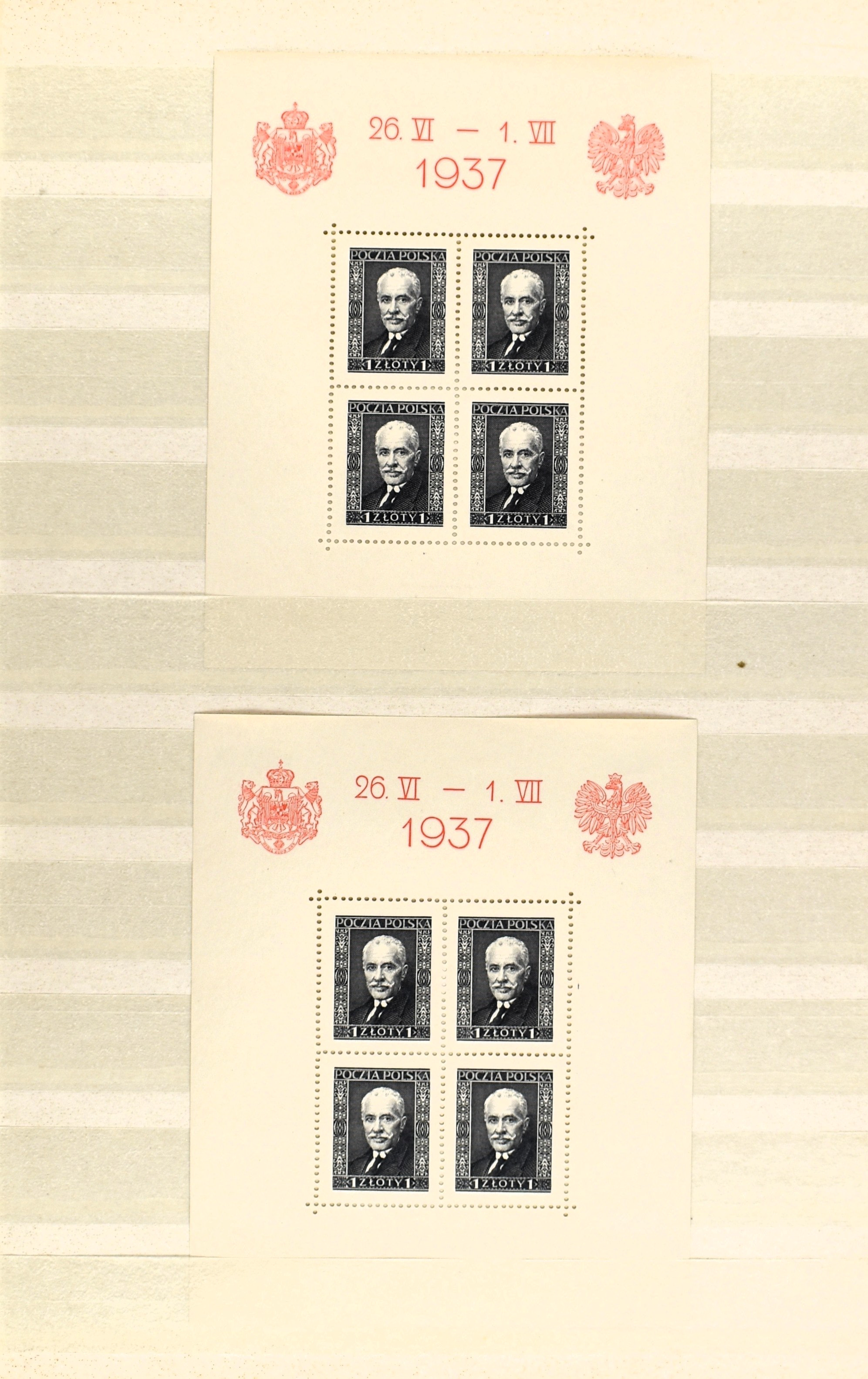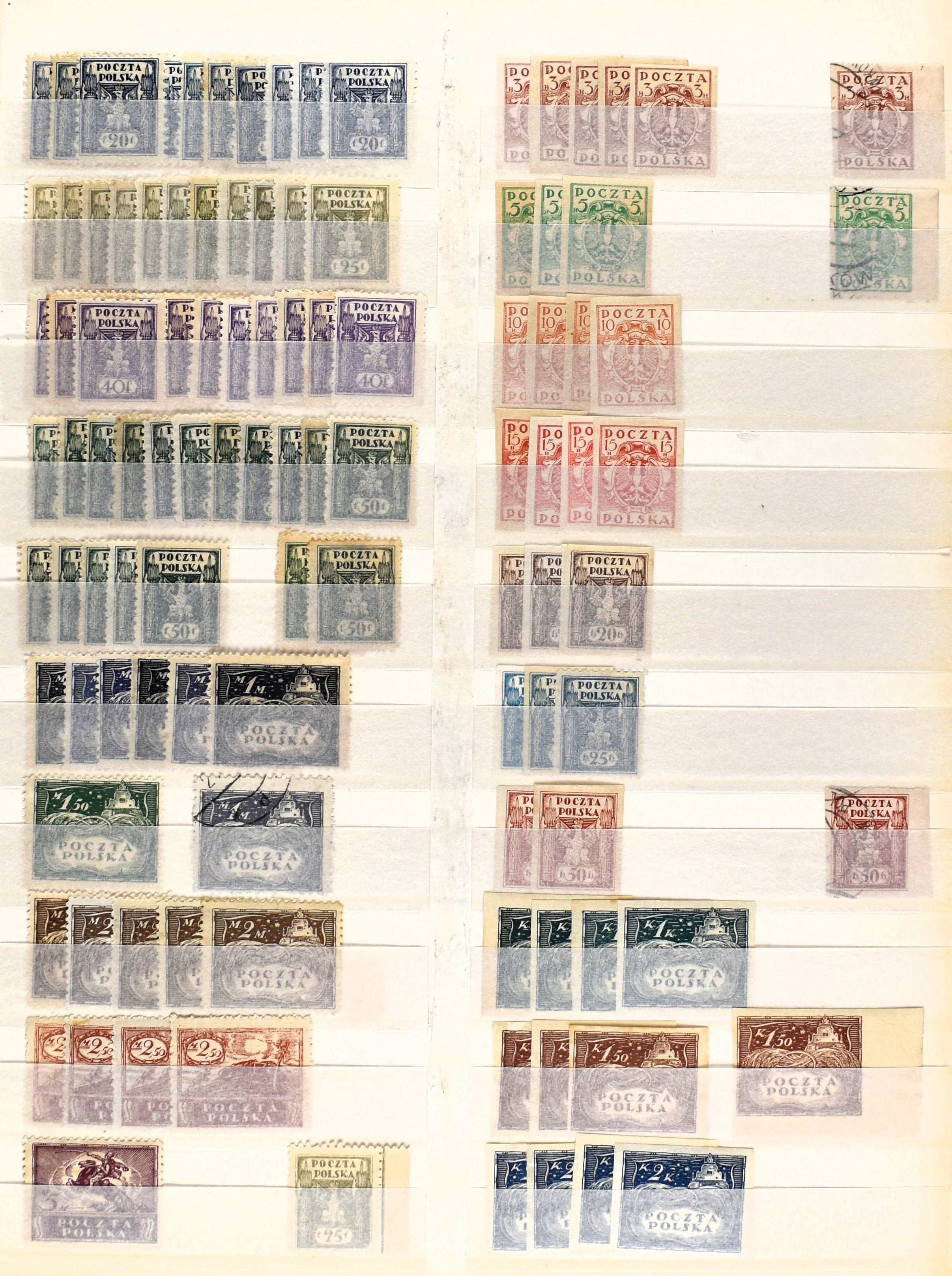 POLAND 1918-1976, o/*/** extensive stock in 4 books and 2 albums with good material a.o.: Mi.1, 154/7(3), 201/11, 445/47(4), Block 1, 5A+B, 6, (4), I/II(2)* and (*), miniature sheet etc. Beautifull lot at a very modest starting price,