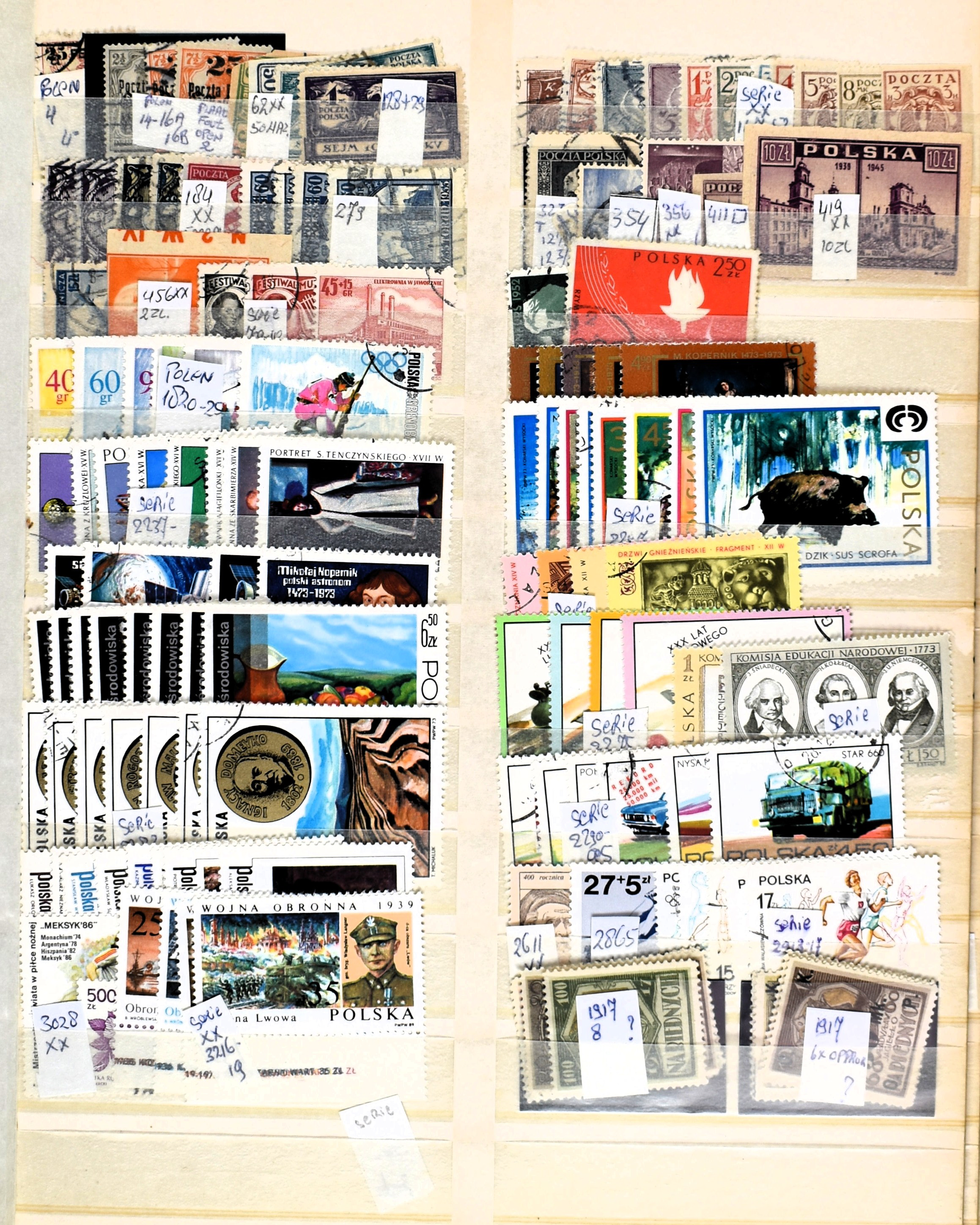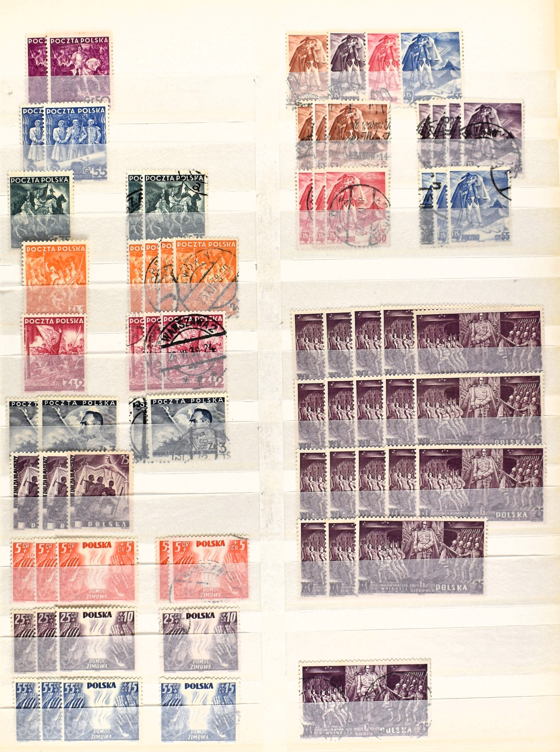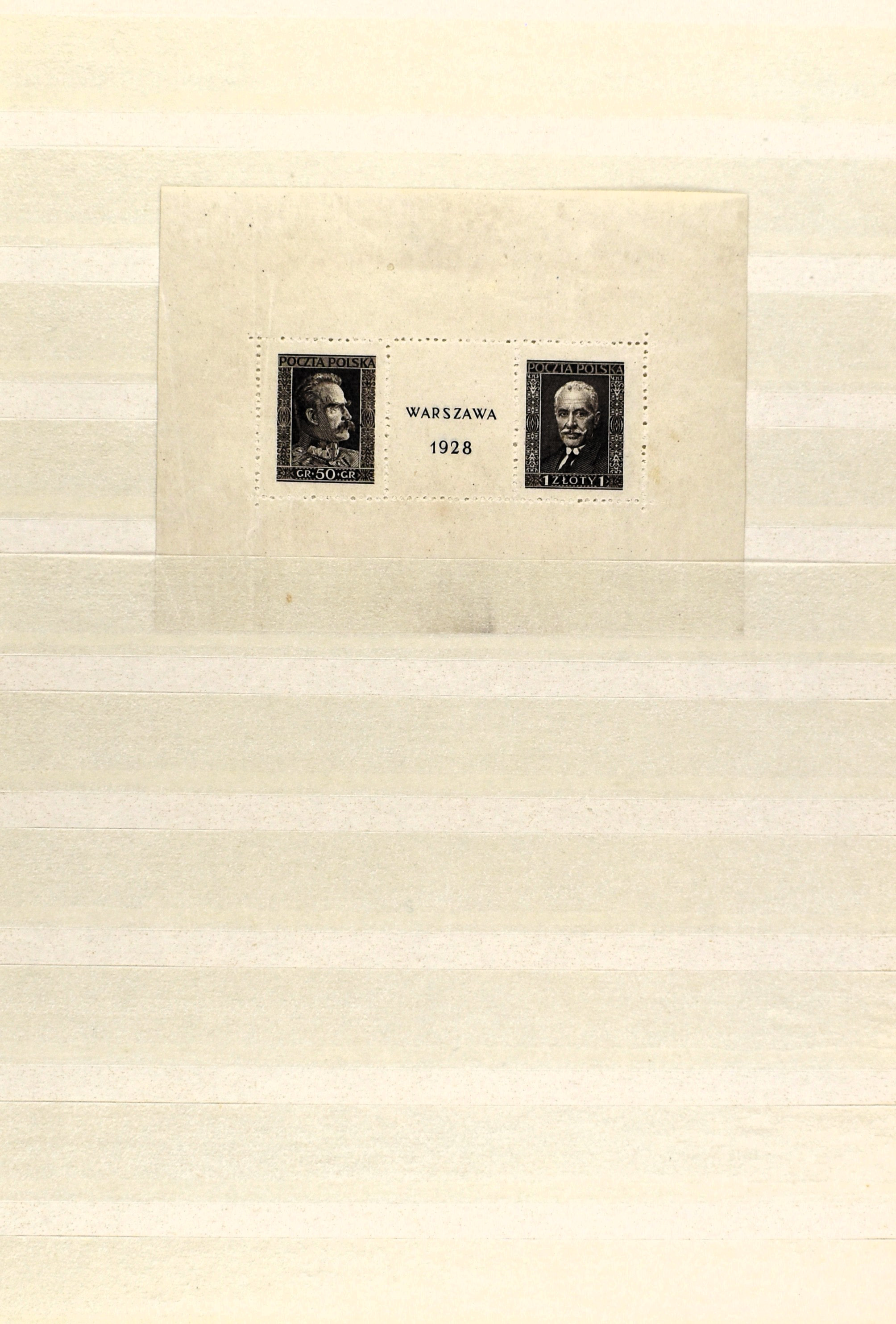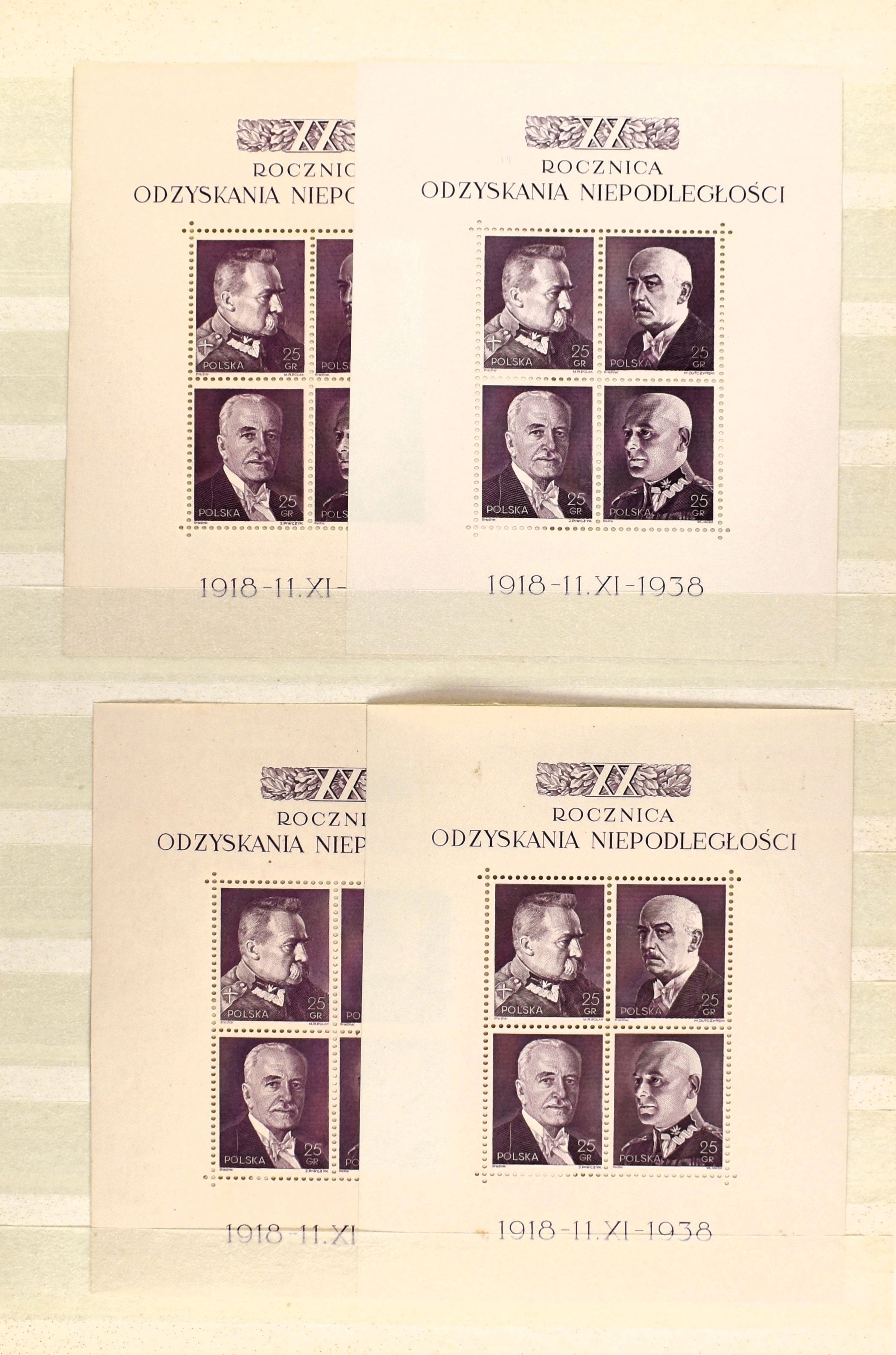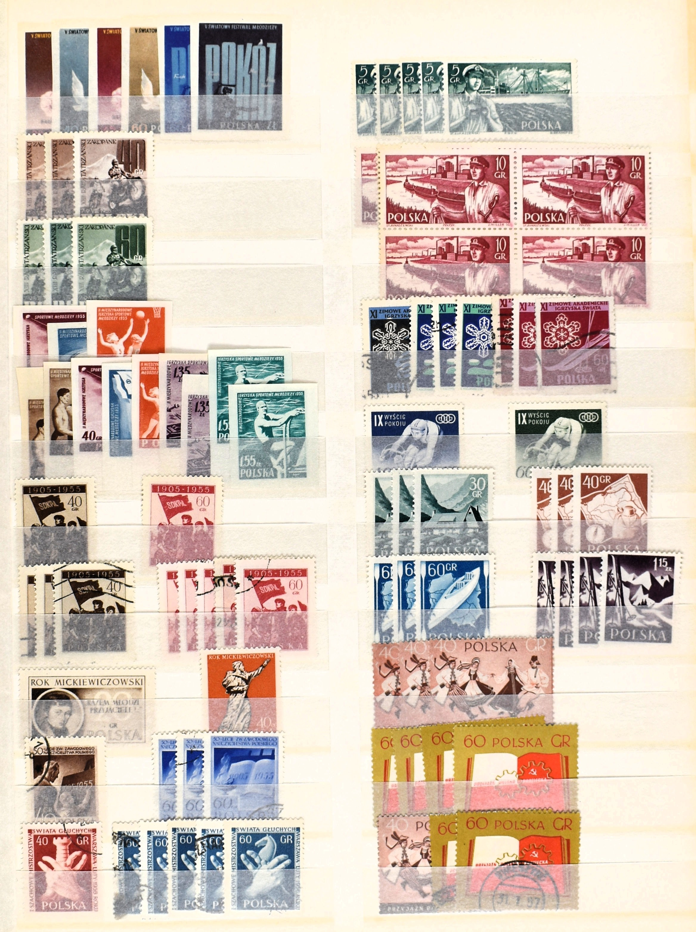 POLAND 1918-1976, o/*/** extensive stock in 4 books and 2 albums with good material a.o.: Mi.1, 154/7(3), 201/11, 445/47(4), Block 1, 5A+B, 6, (4), I/II(2)* and (*), miniature sheet etc. Beautifull lot at a very modest starting price,