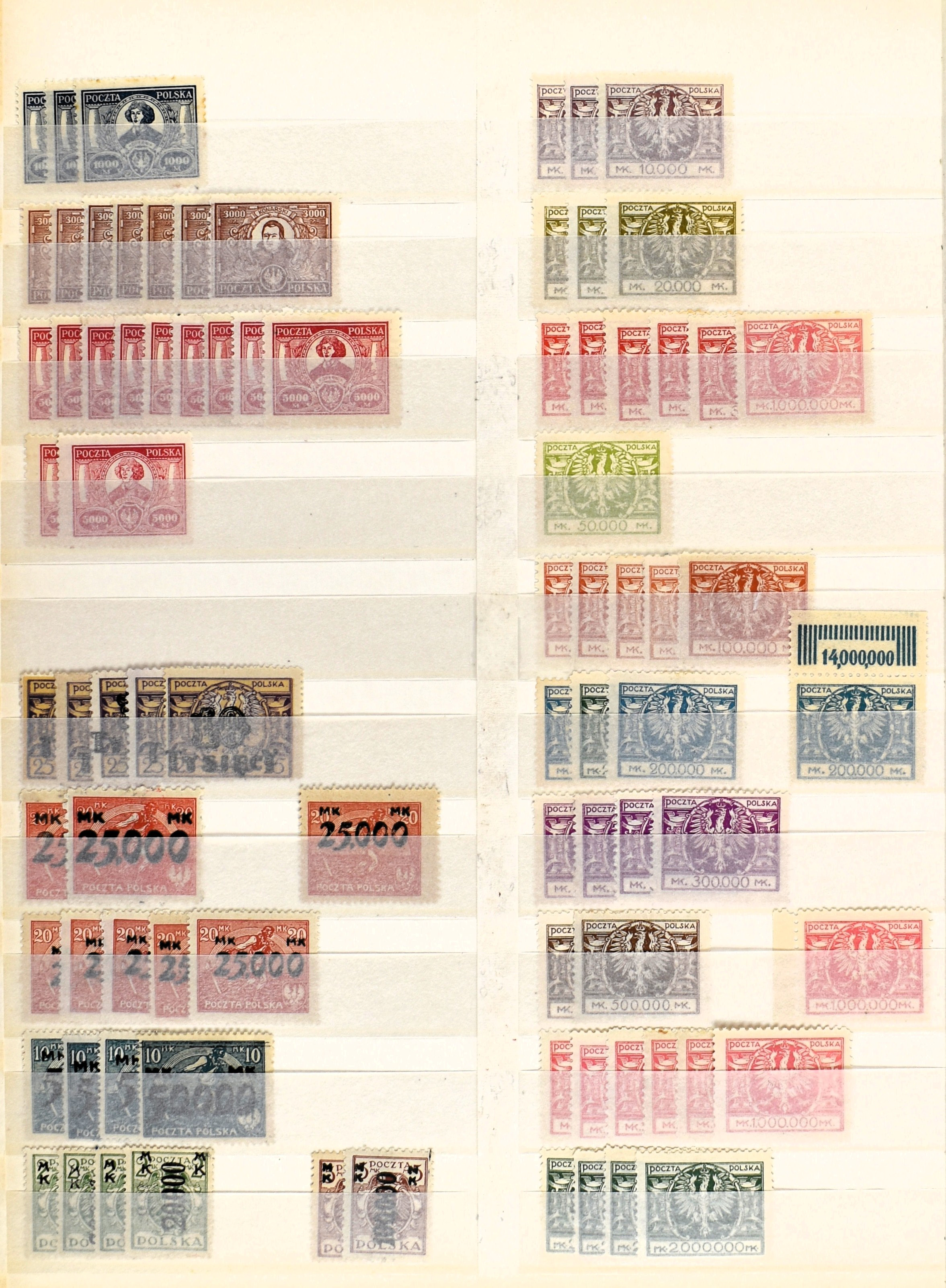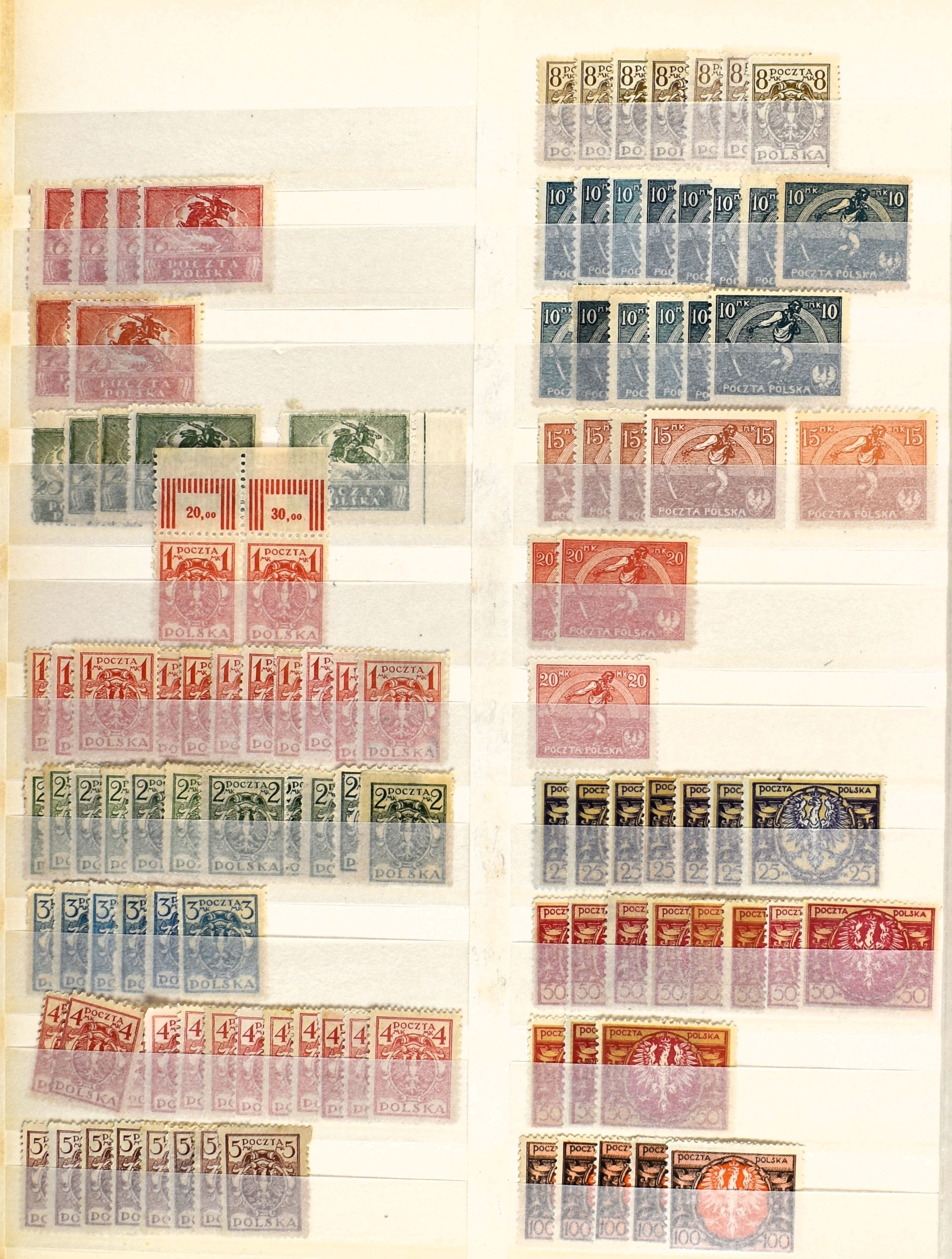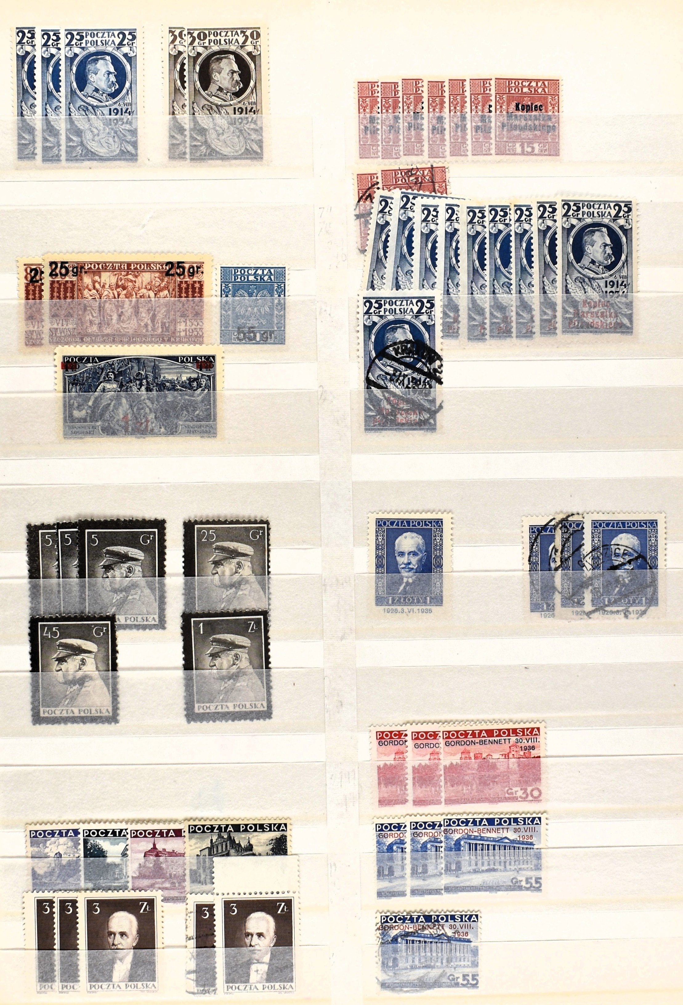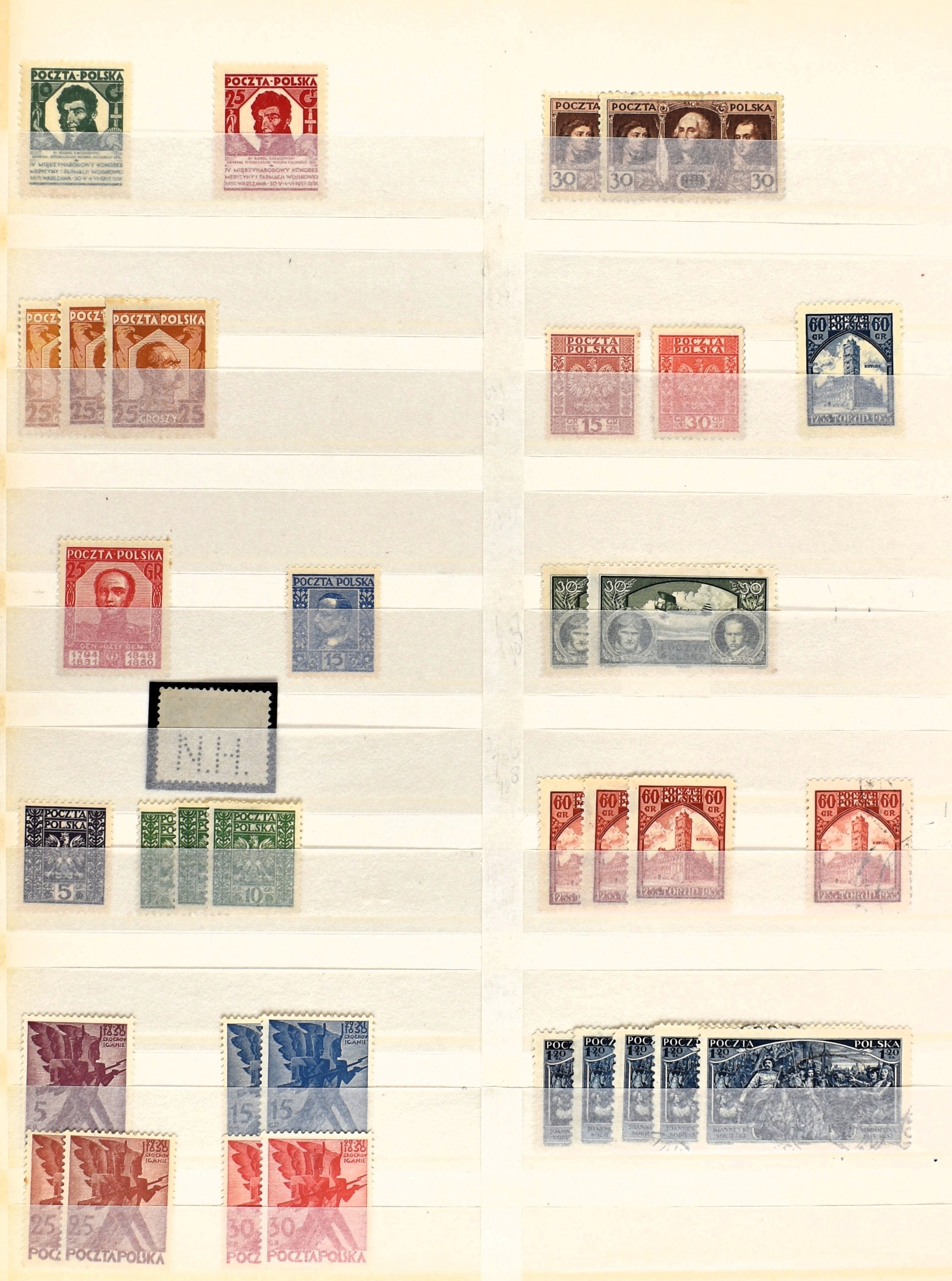 POLAND 1918-1976, o/*/** extensive stock in 4 books and 2 albums with good material a.o.: Mi.1, 154/7(3), 201/11, 445/47(4), Block 1, 5A+B, 6, (4), I/II(2)* and (*), miniature sheet etc. Beautifull lot at a very modest starting price,