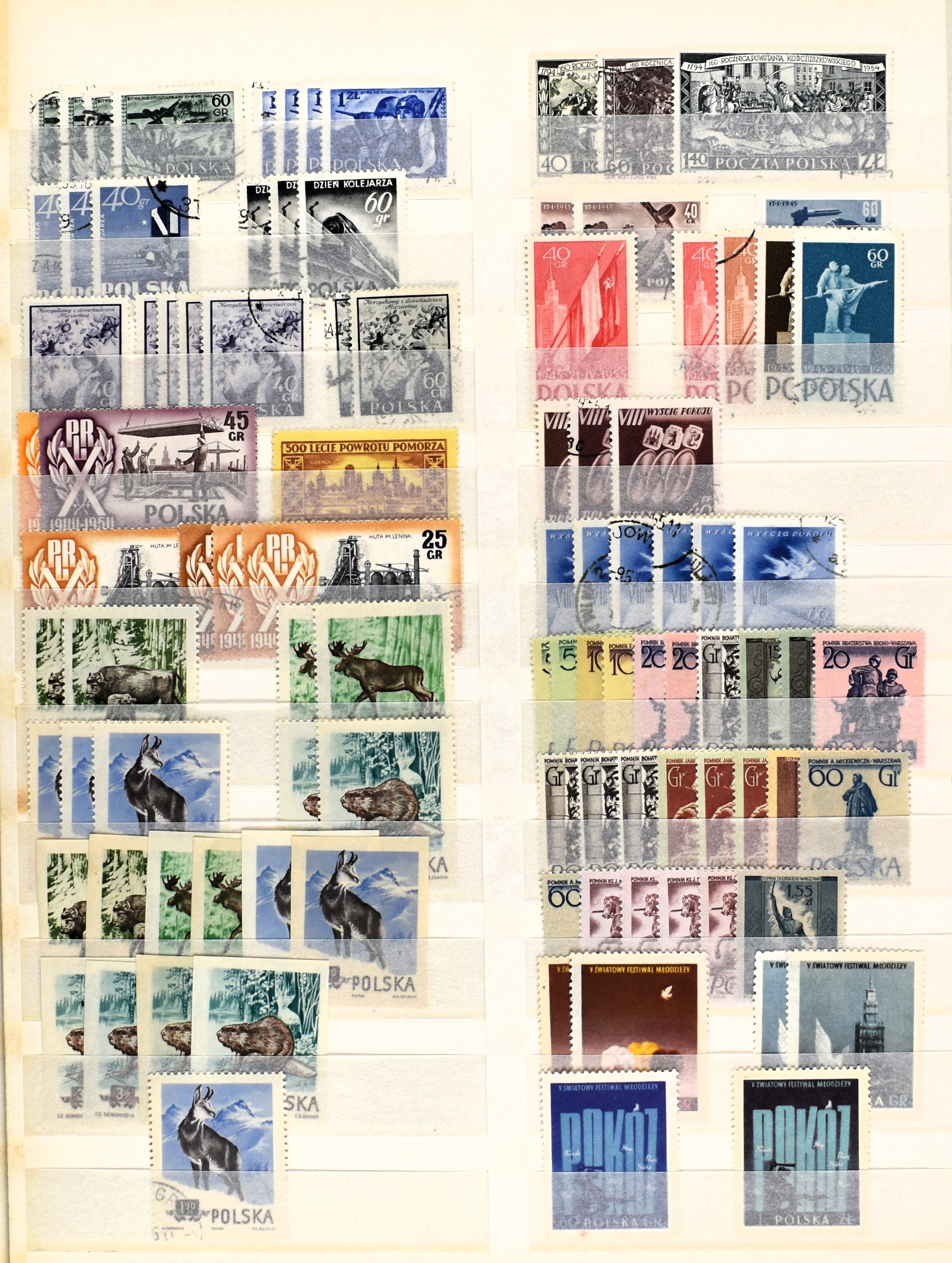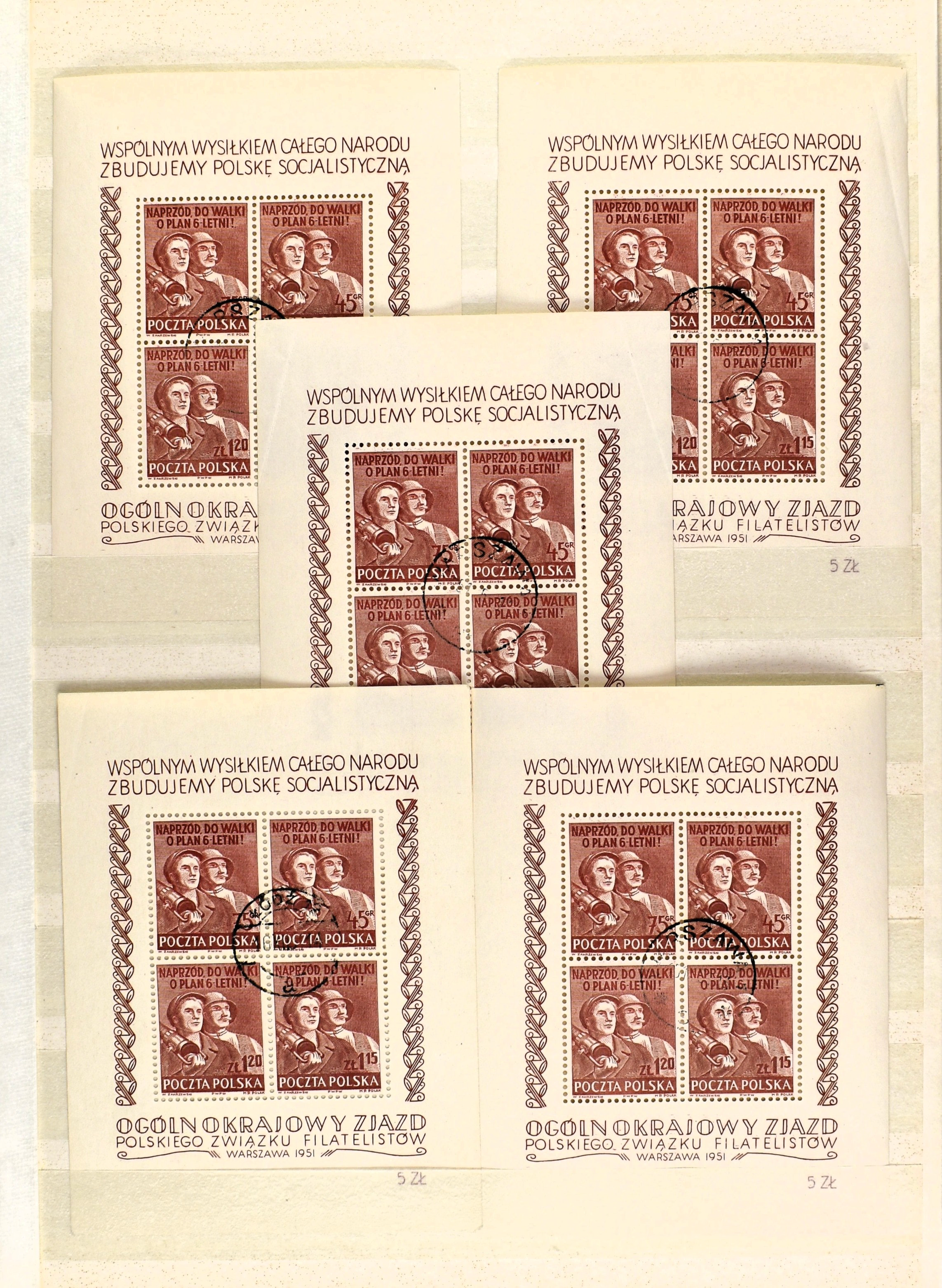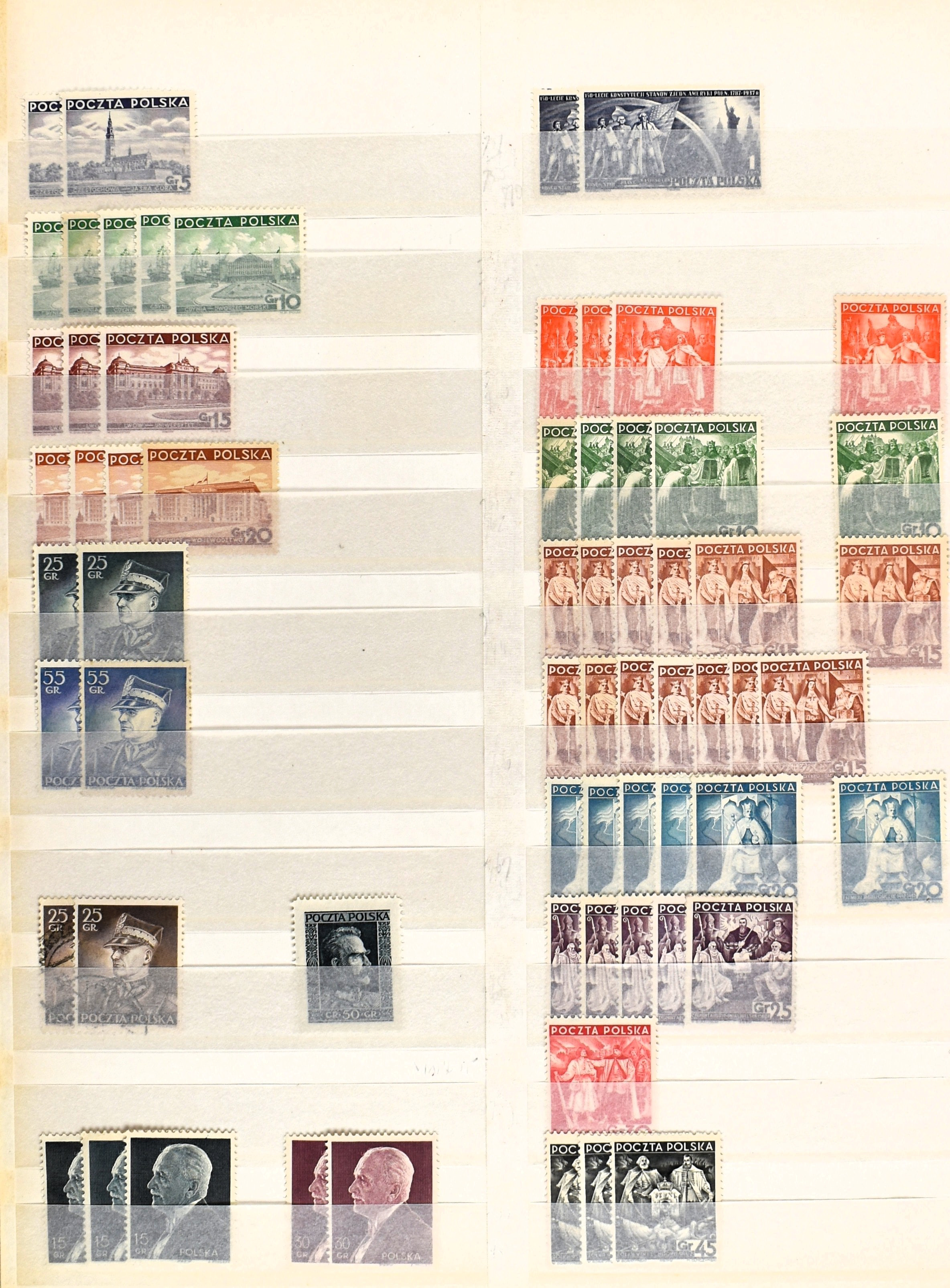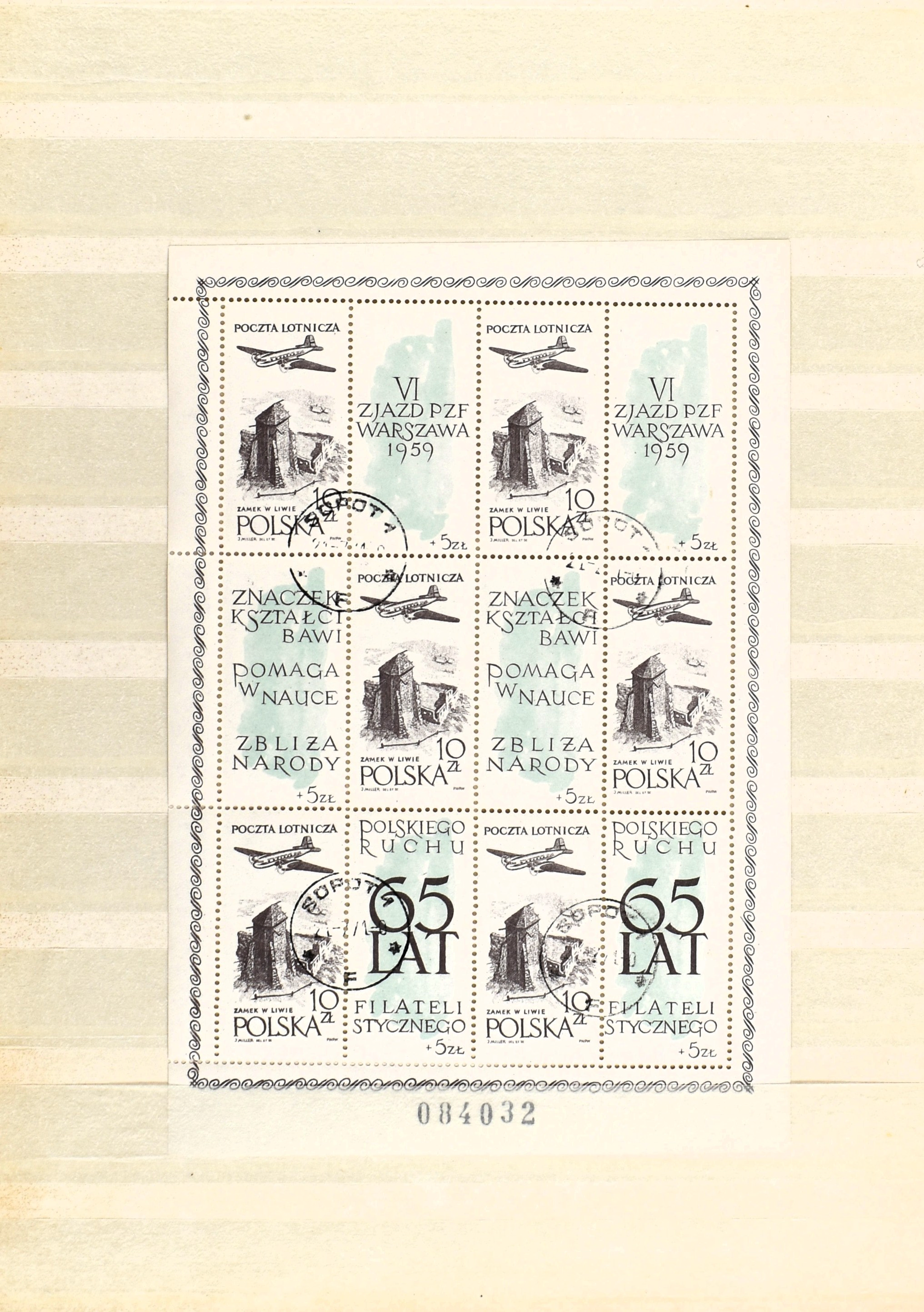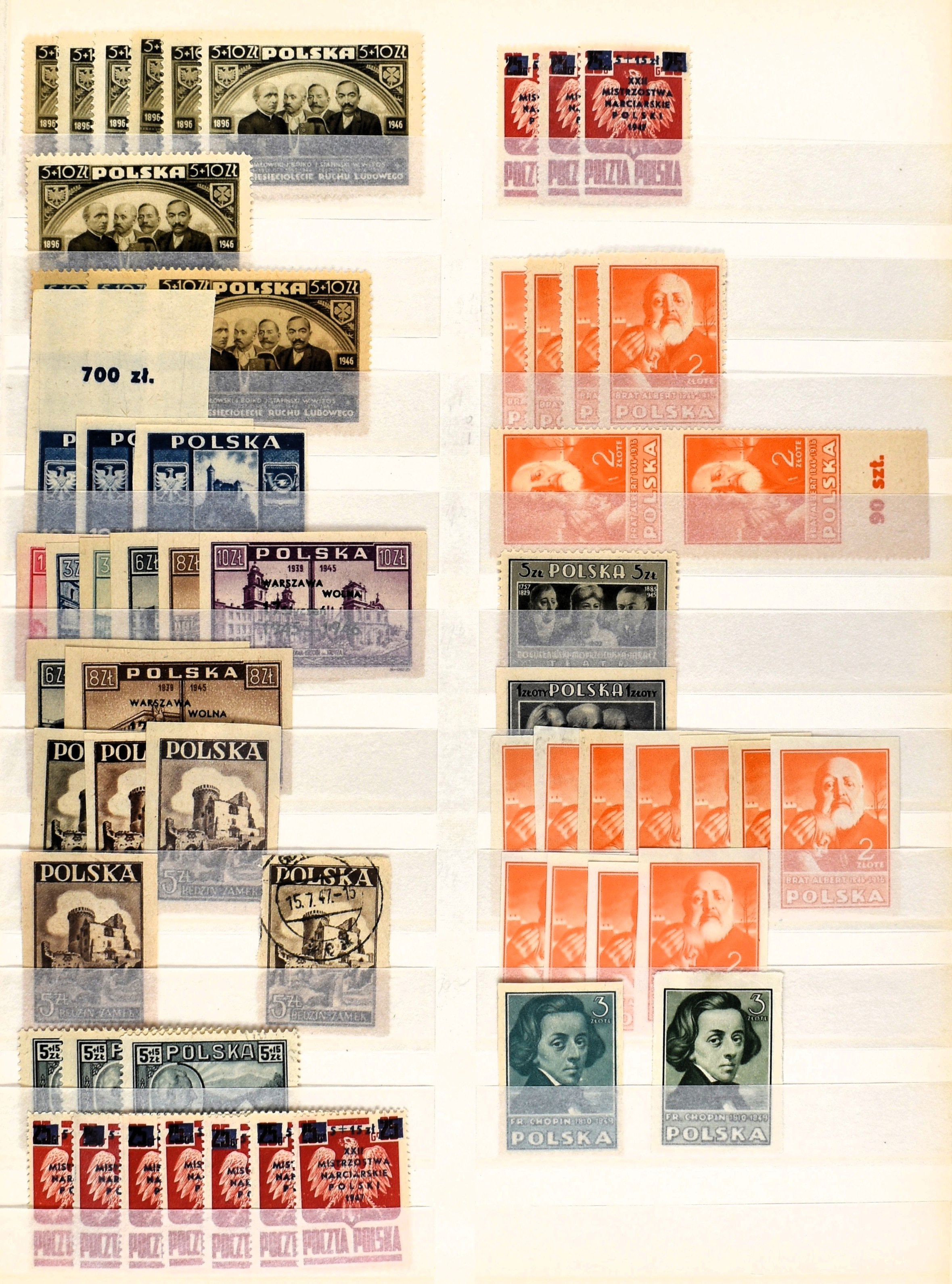 POLAND 1918-1976, o/*/** extensive stock in 4 books and 2 albums with good material a.o.: Mi.1, 154/7(3), 201/11, 445/47(4), Block 1, 5A+B, 6, (4), I/II(2)* and (*), miniature sheet etc. Beautifull lot at a very modest starting price,
