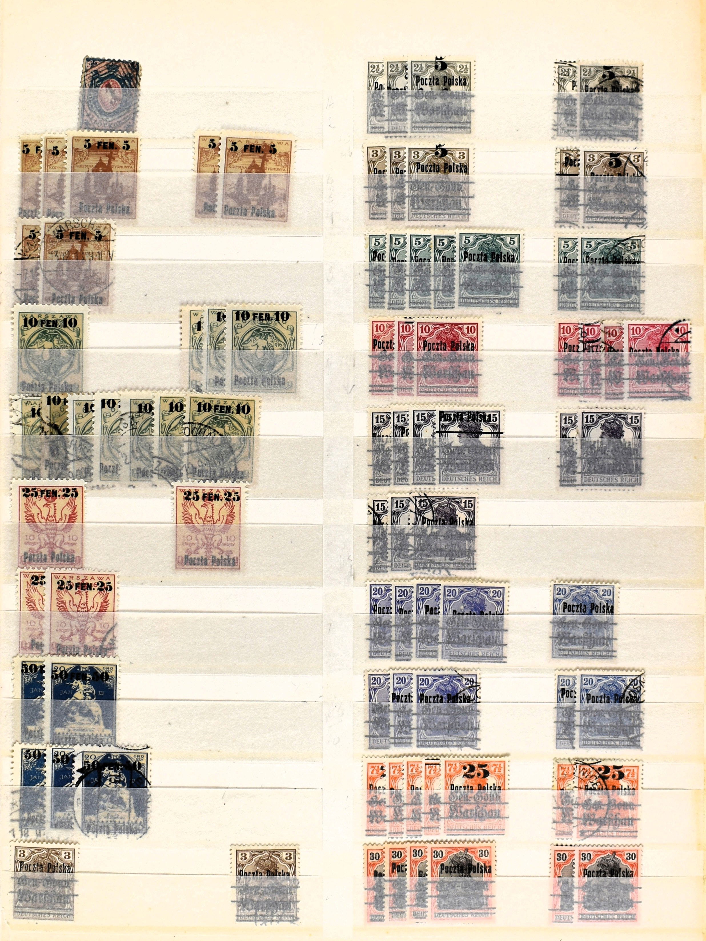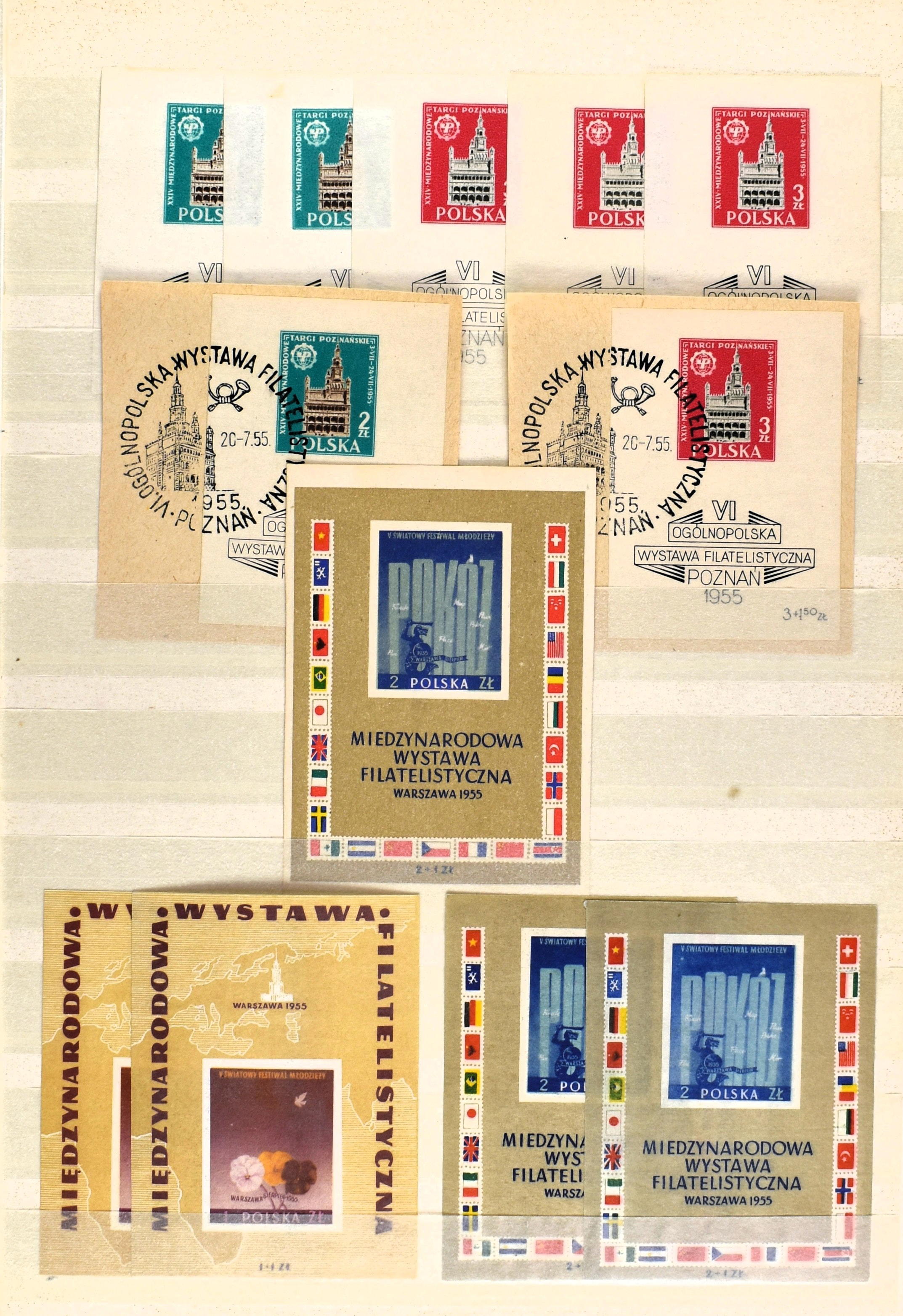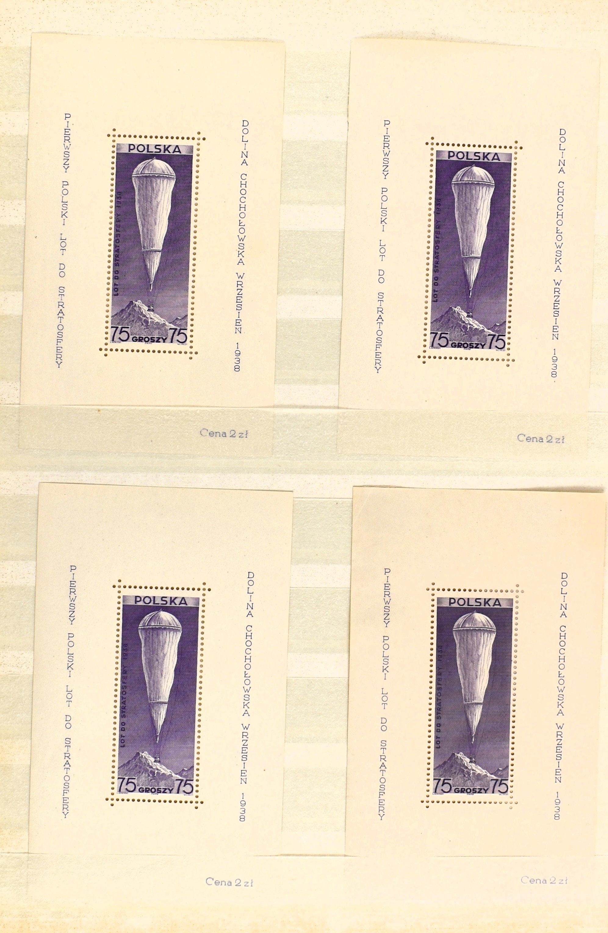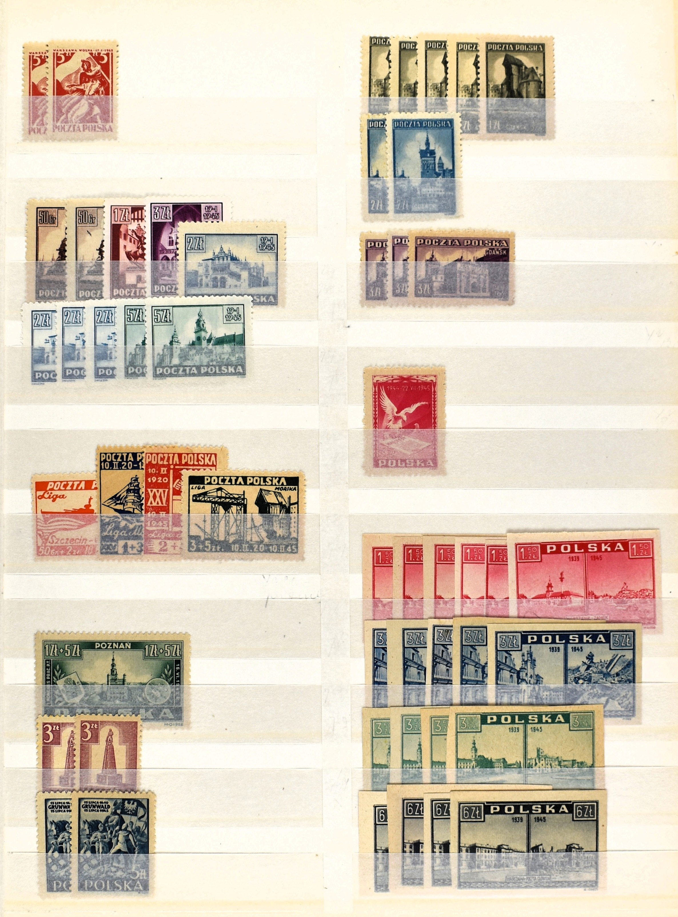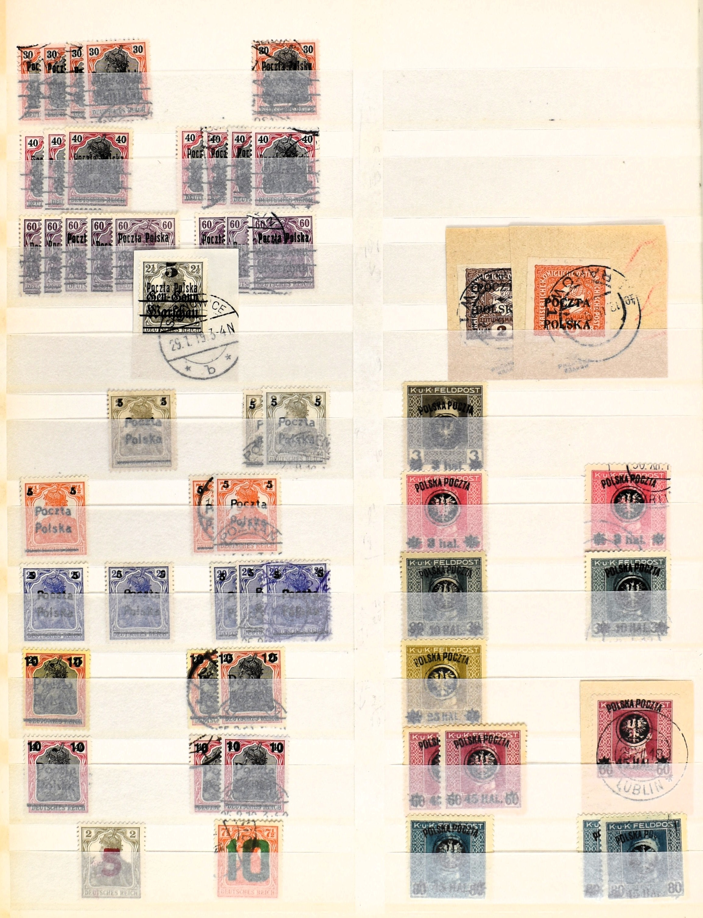 POLAND 1918-1976, o/*/** extensive stock in 4 books and 2 albums with good material a.o.: Mi.1, 154/7(3), 201/11, 445/47(4), Block 1, 5A+B, 6, (4), I/II(2)* and (*), miniature sheet etc. Beautifull lot at a very modest starting price,
