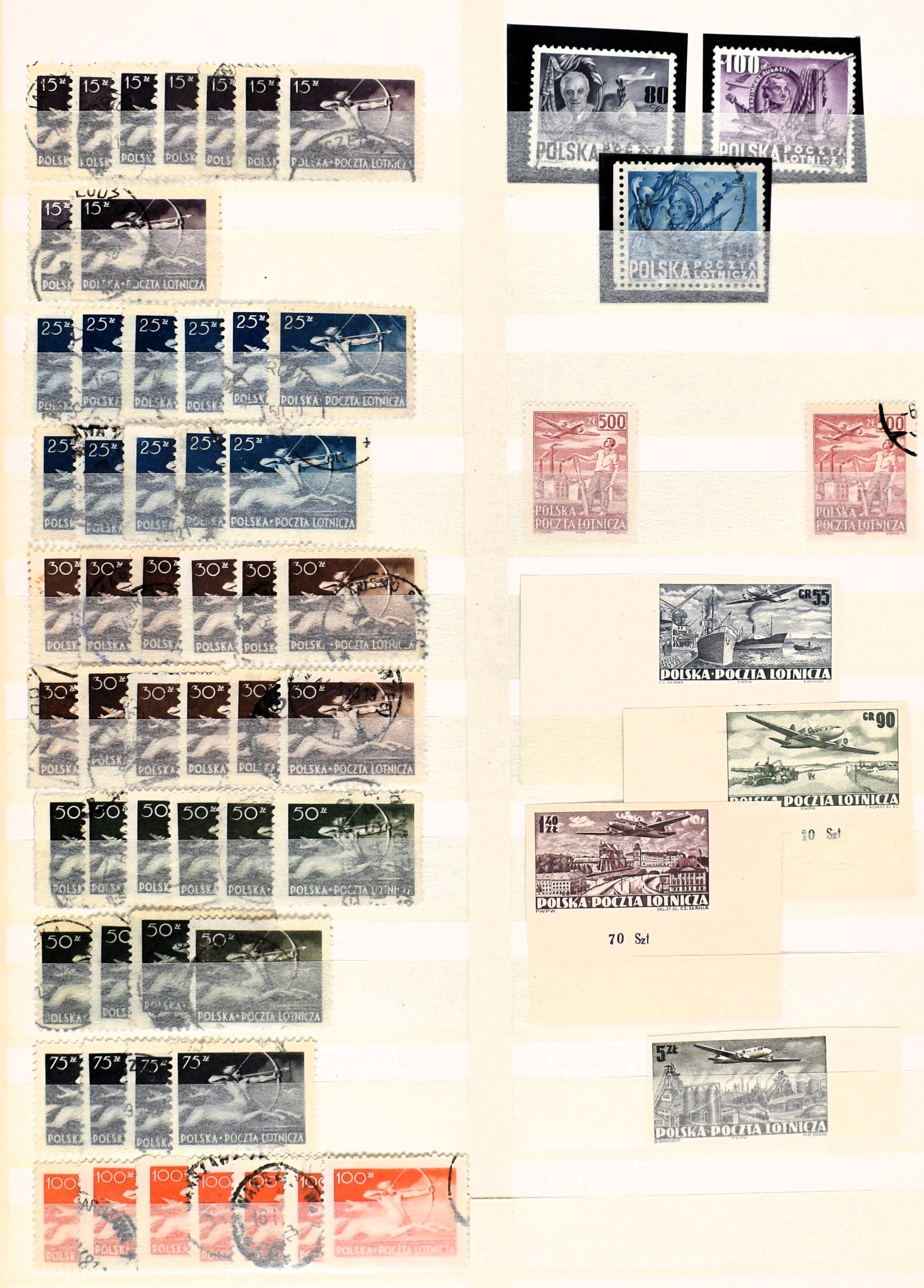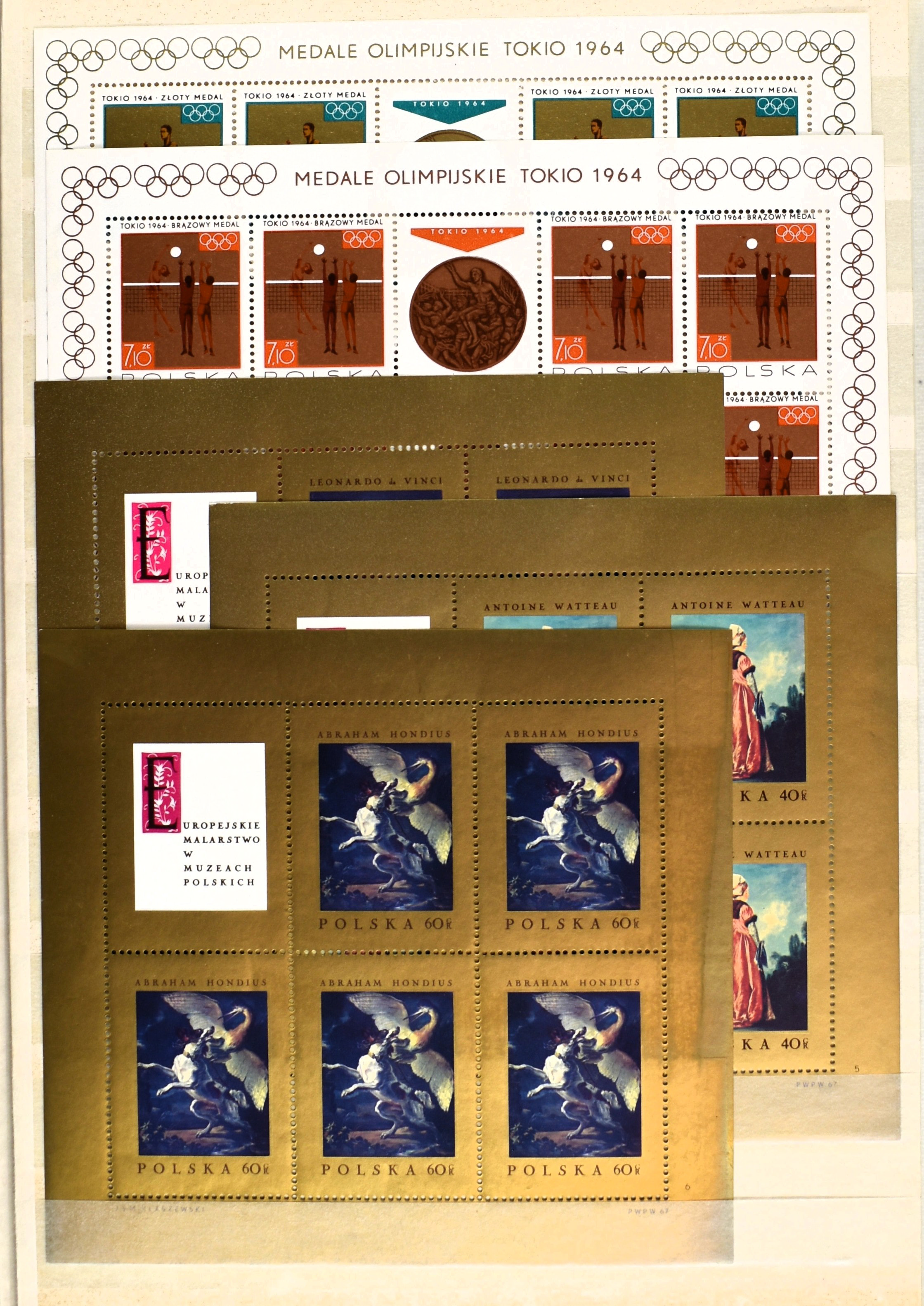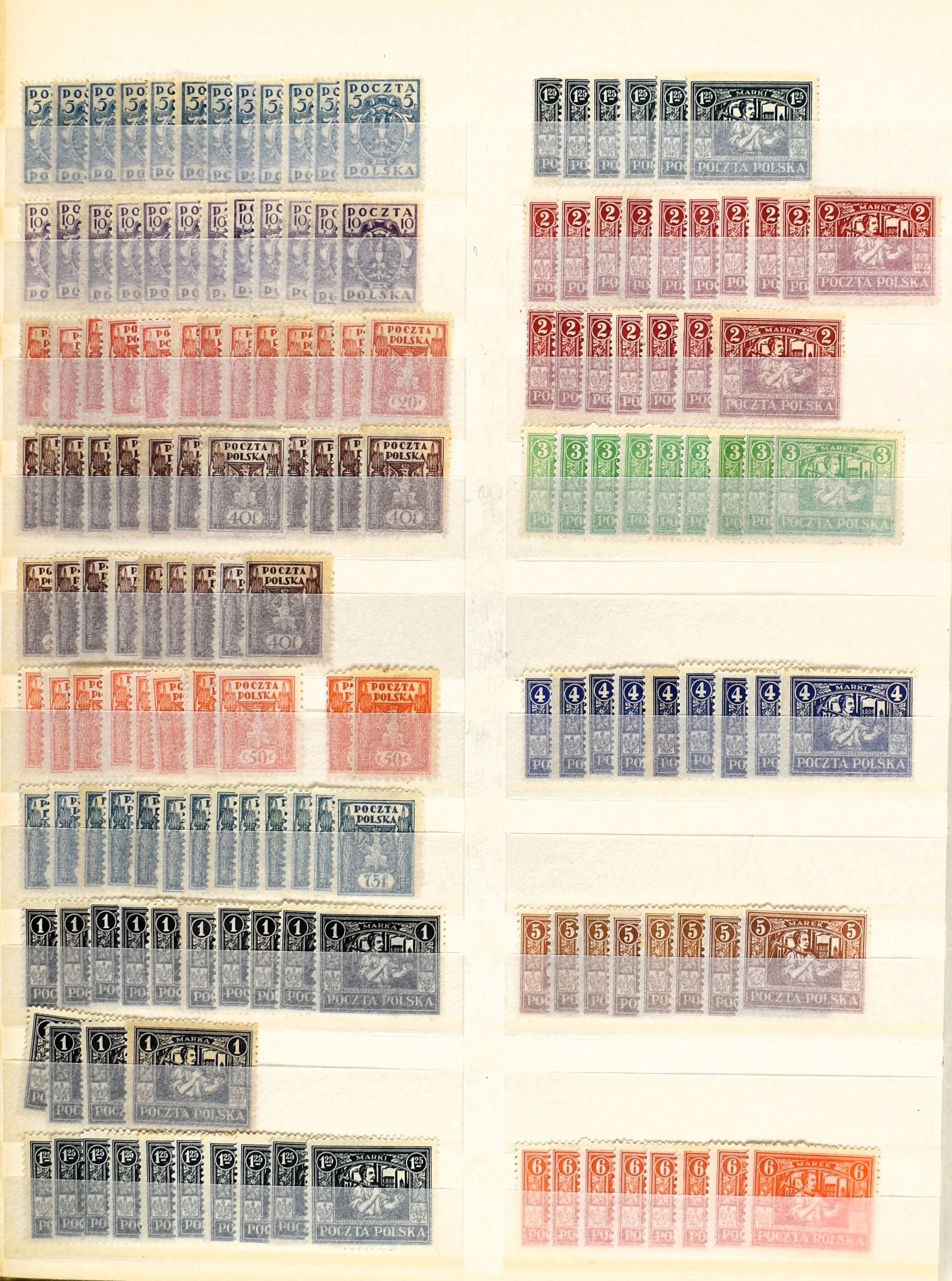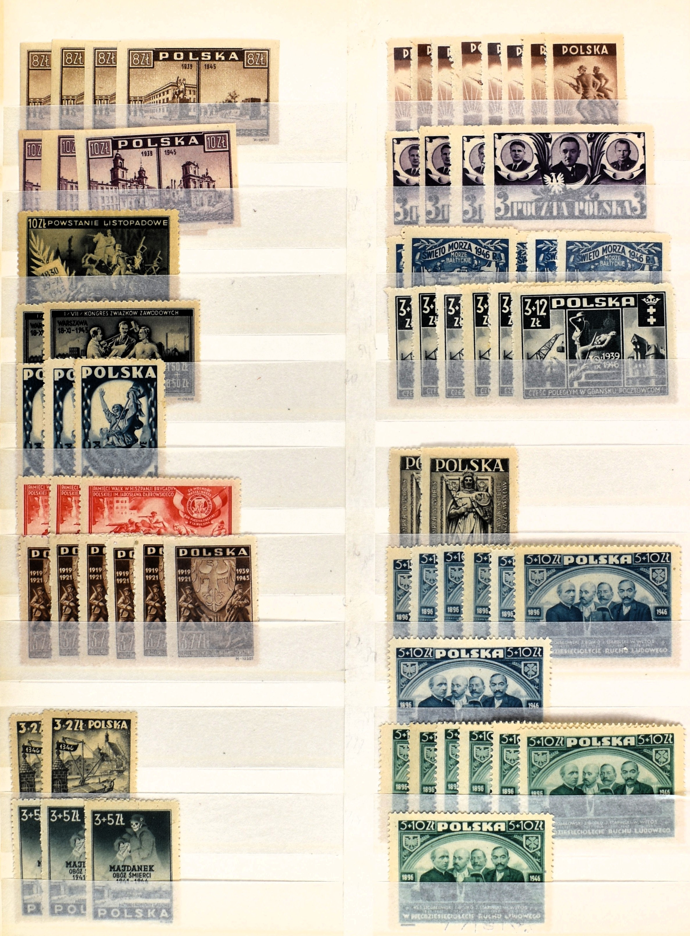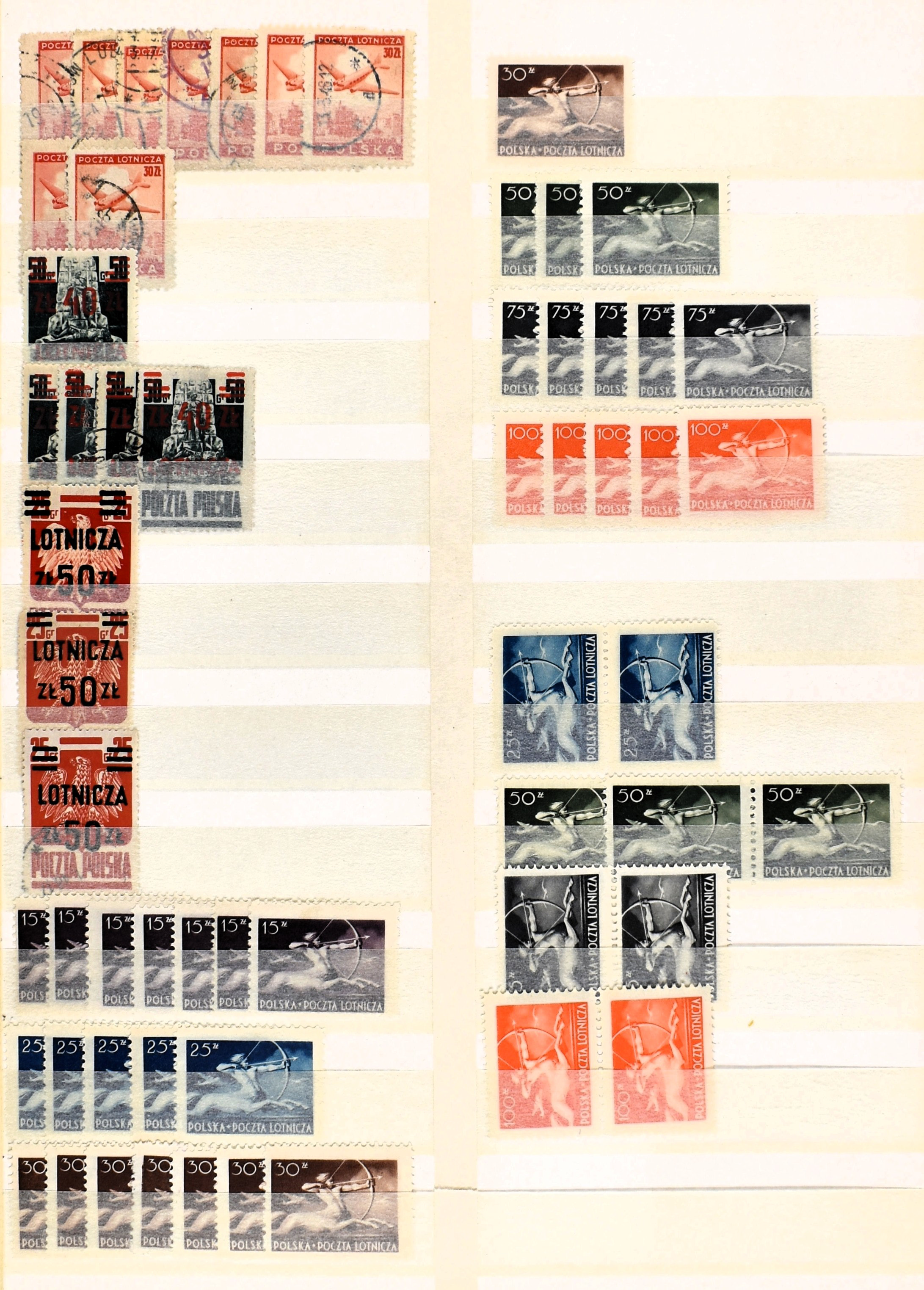 POLAND 1918-1976, o/*/** extensive stock in 4 books and 2 albums with good material a.o.: Mi.1, 154/7(3), 201/11, 445/47(4), Block 1, 5A+B, 6, (4), I/II(2)* and (*), miniature sheet etc. Beautifull lot at a very modest starting price,