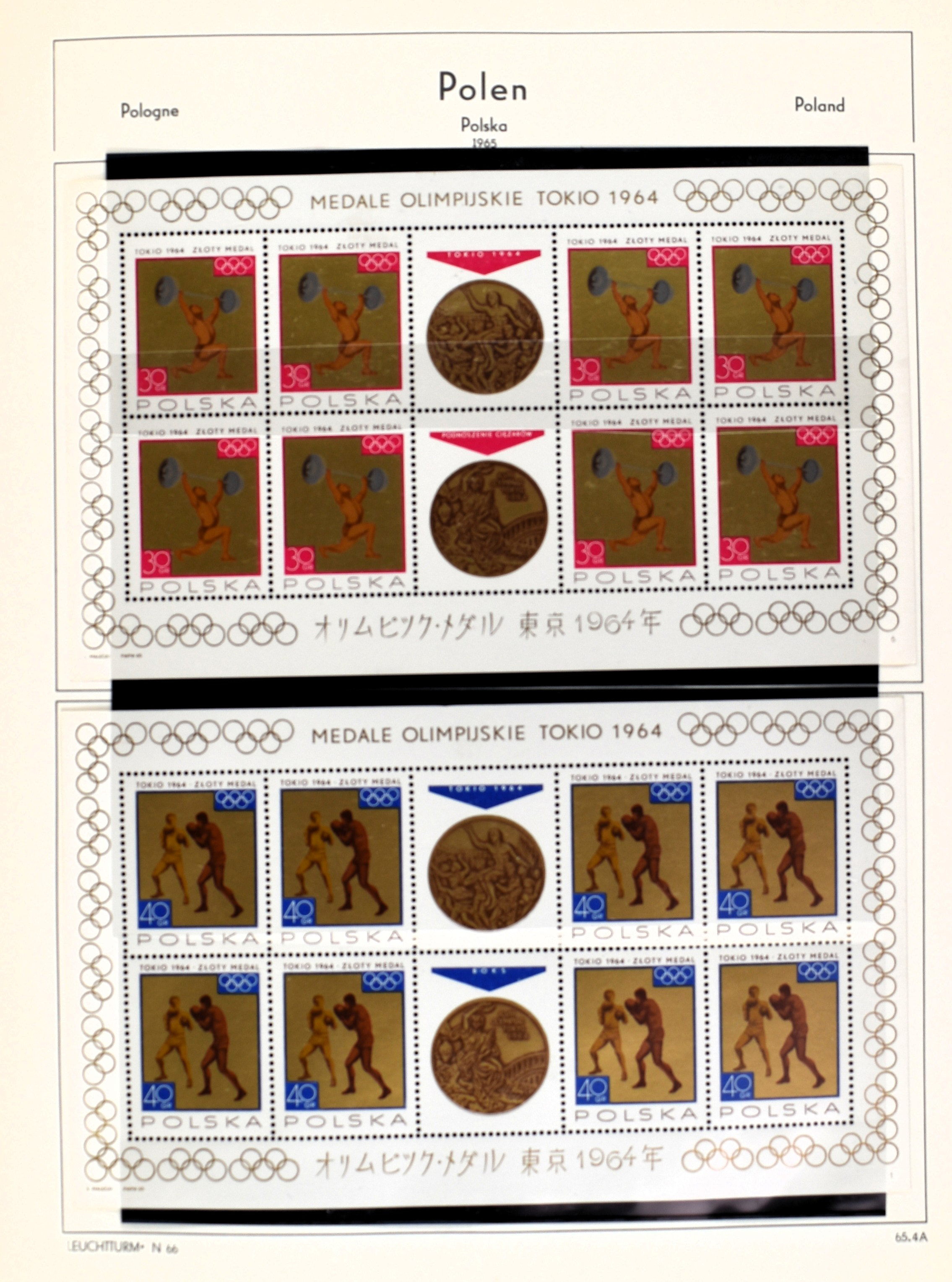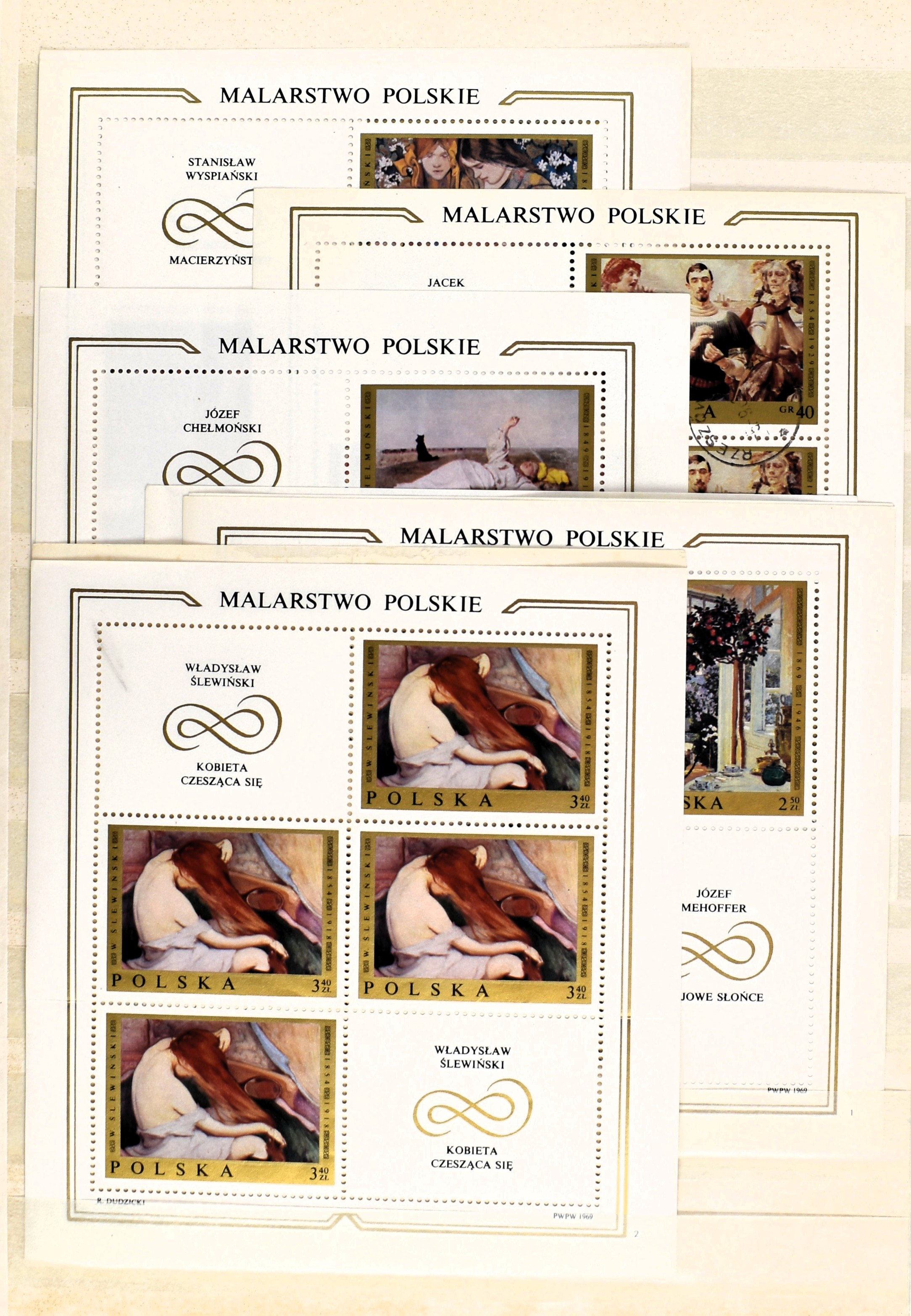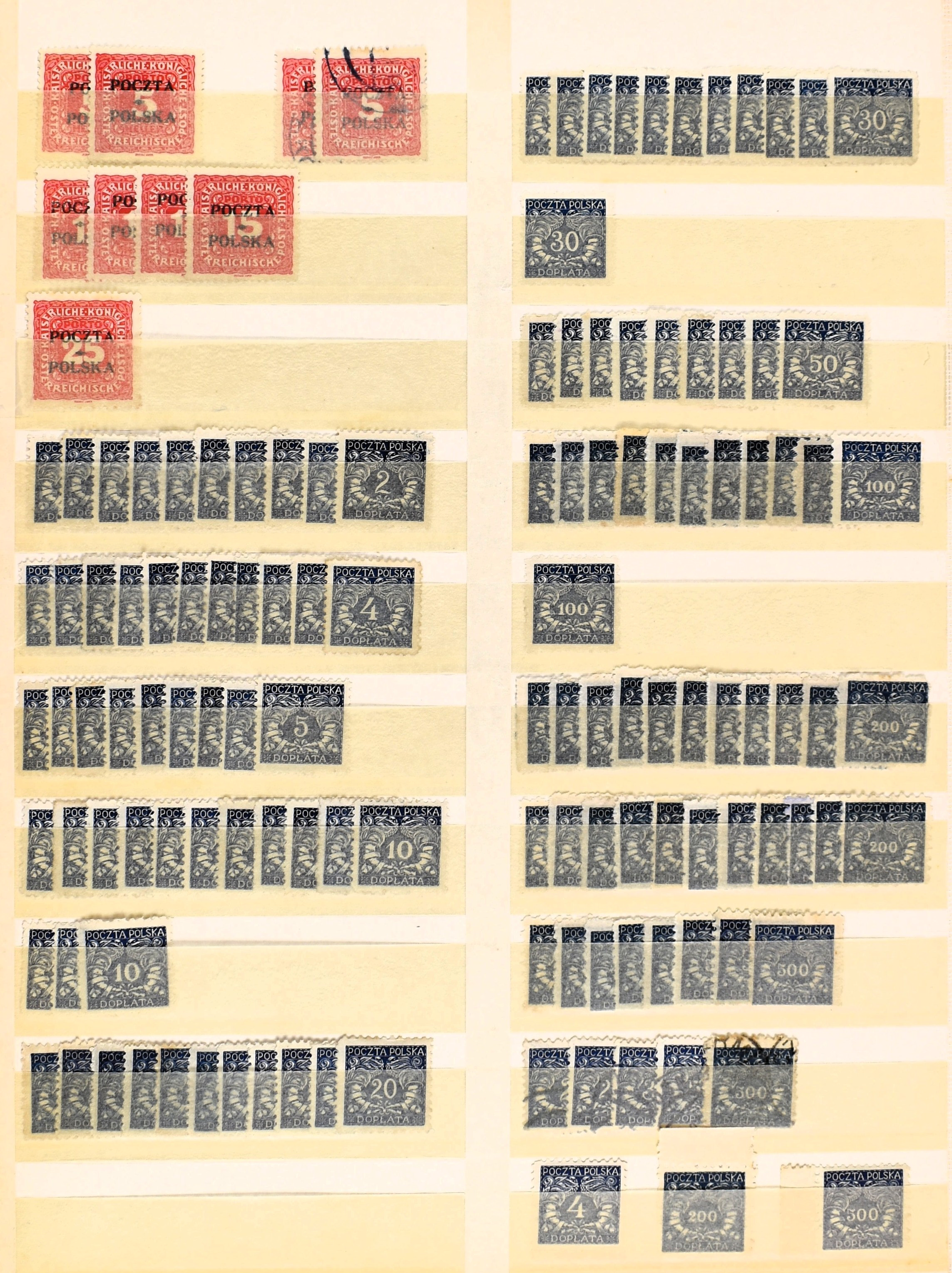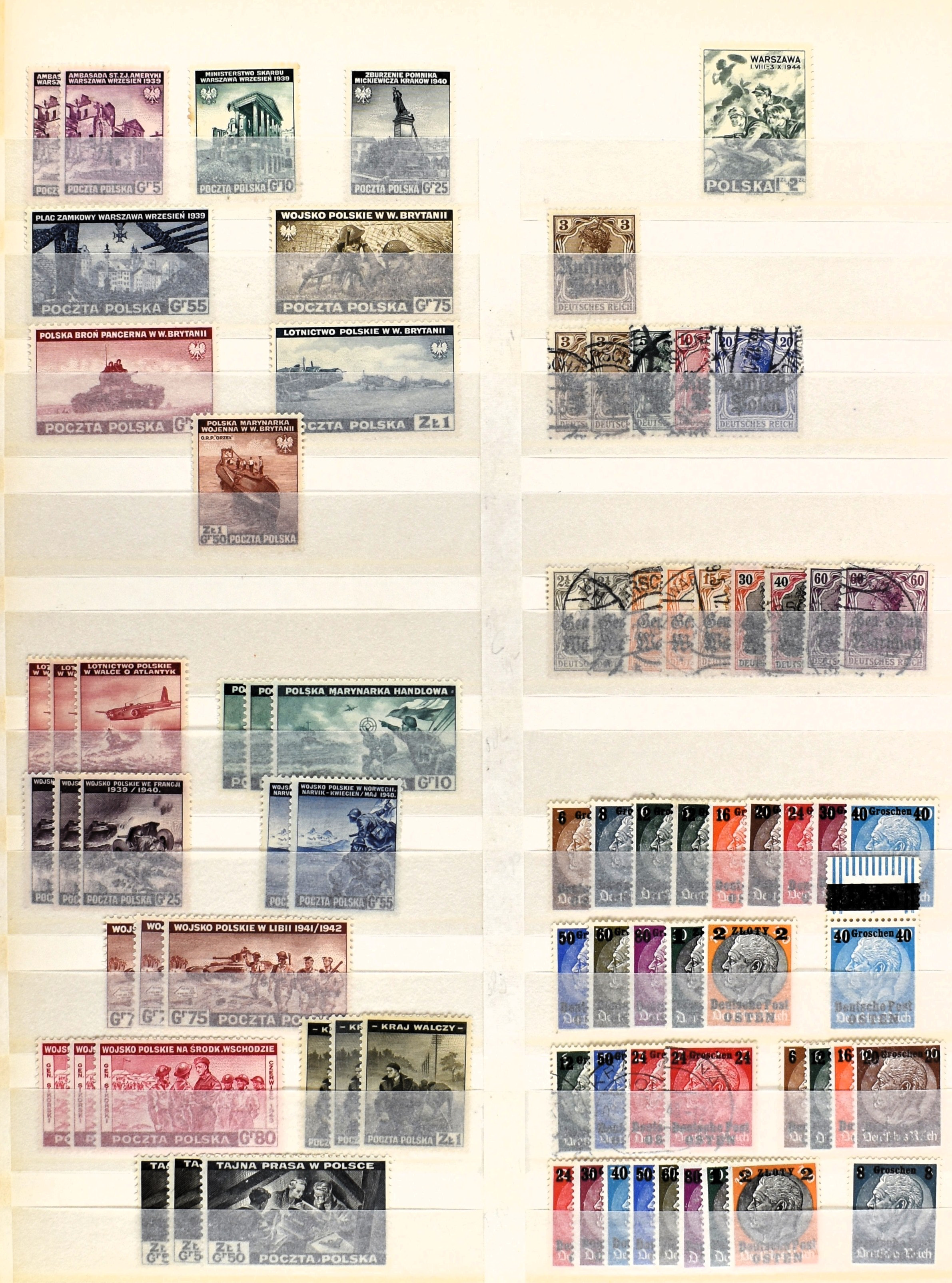 POLAND 1918-1976, o/*/** extensive stock in 4 books and 2 albums with good material a.o.: Mi.1, 154/7(3), 201/11, 445/47(4), Block 1, 5A+B, 6, (4), I/II(2)* and (*), miniature sheet etc. Beautifull lot at a very modest starting price,