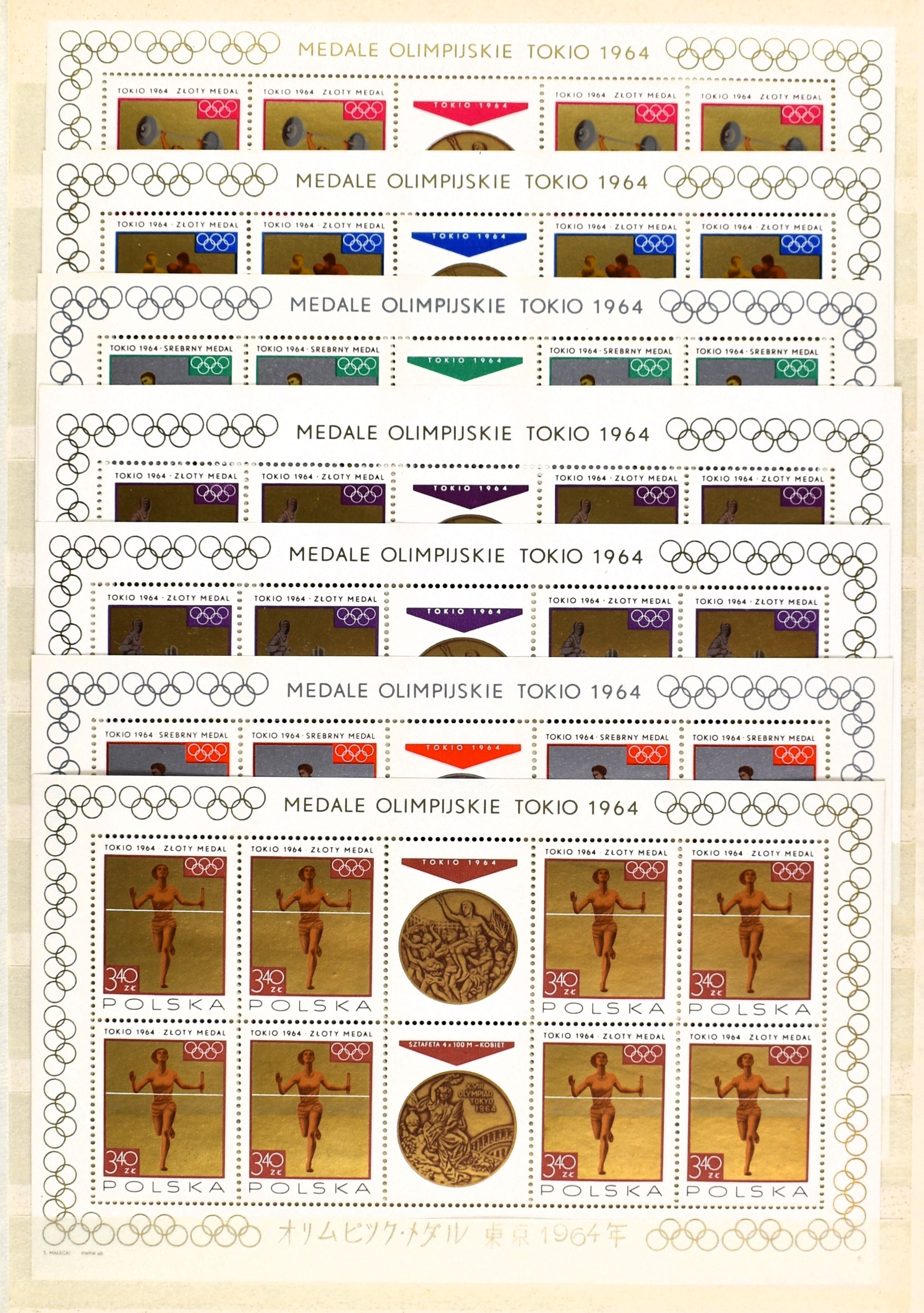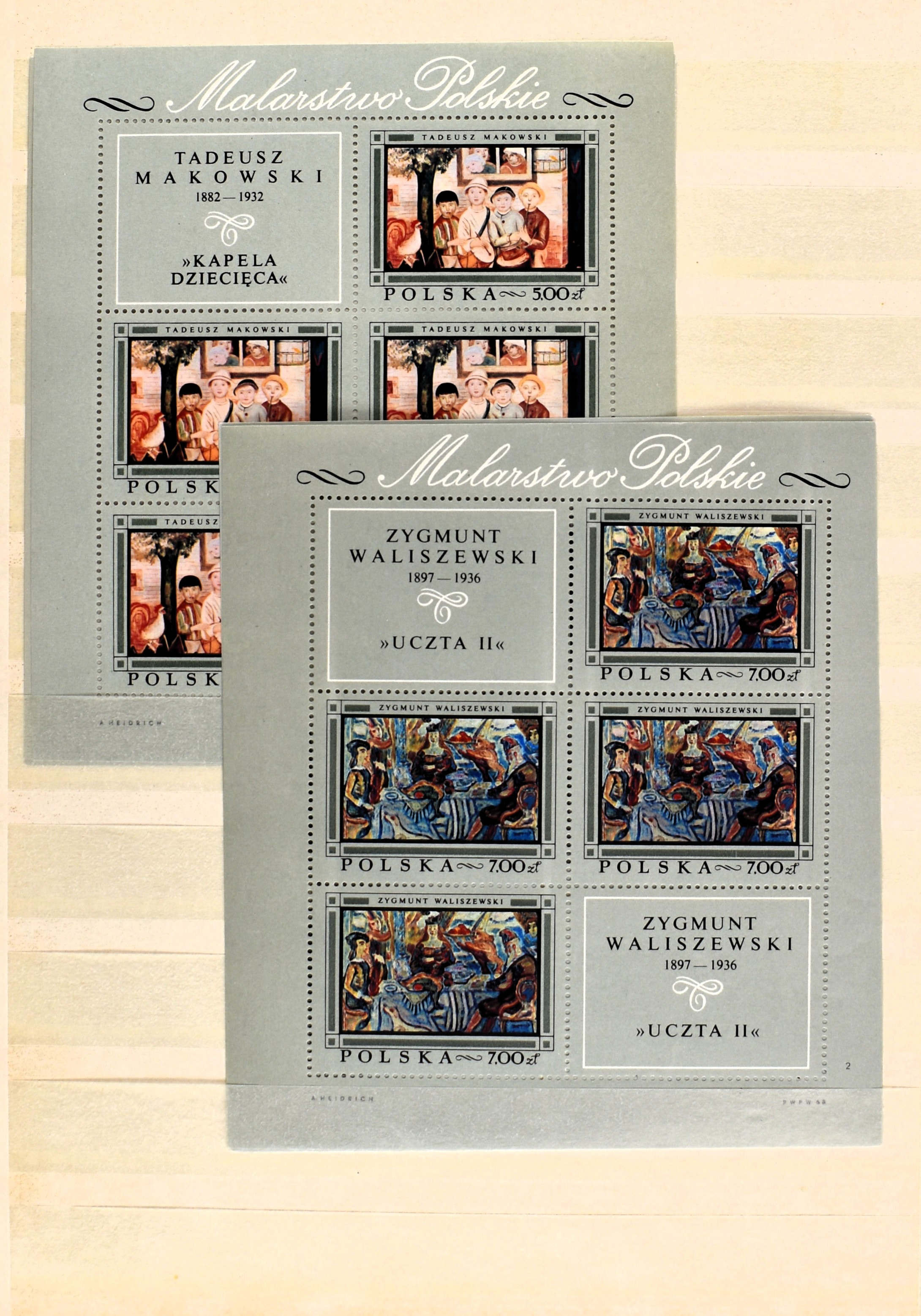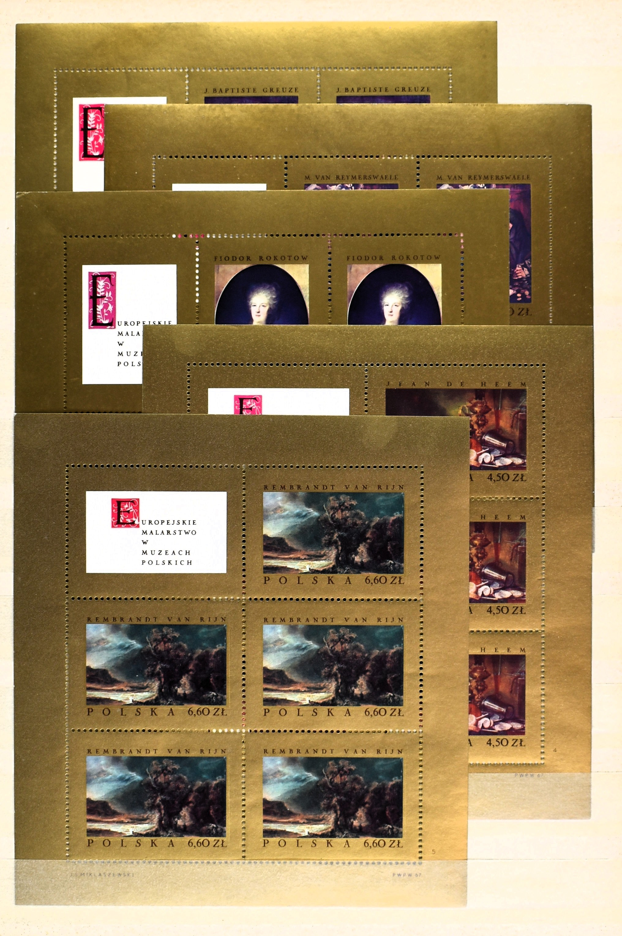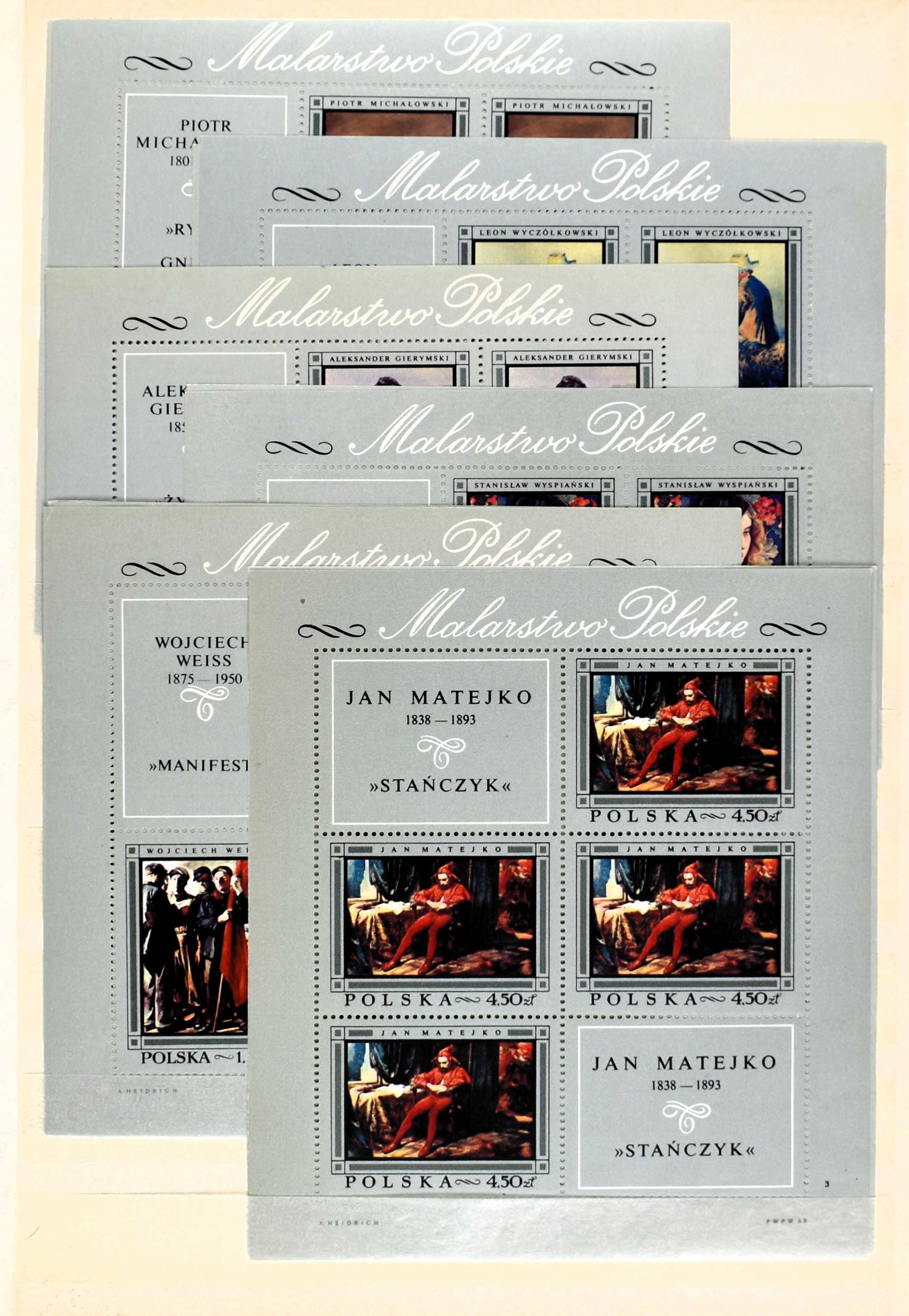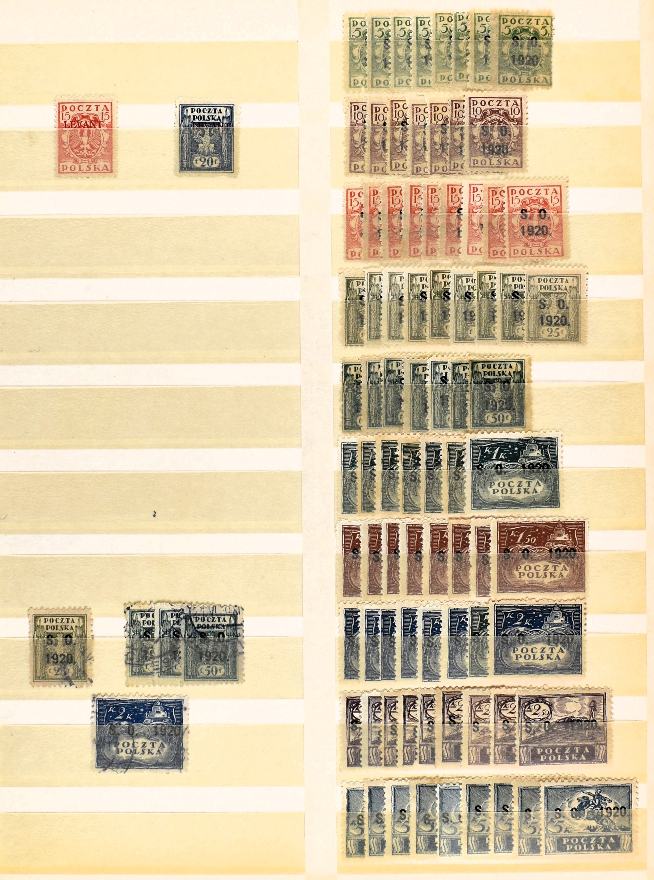 POLAND 1918-1976, o/*/** extensive stock in 4 books and 2 albums with good material a.o.: Mi.1, 154/7(3), 201/11, 445/47(4), Block 1, 5A+B, 6, (4), I/II(2)* and (*), miniature sheet etc. Beautifull lot at a very modest starting price,