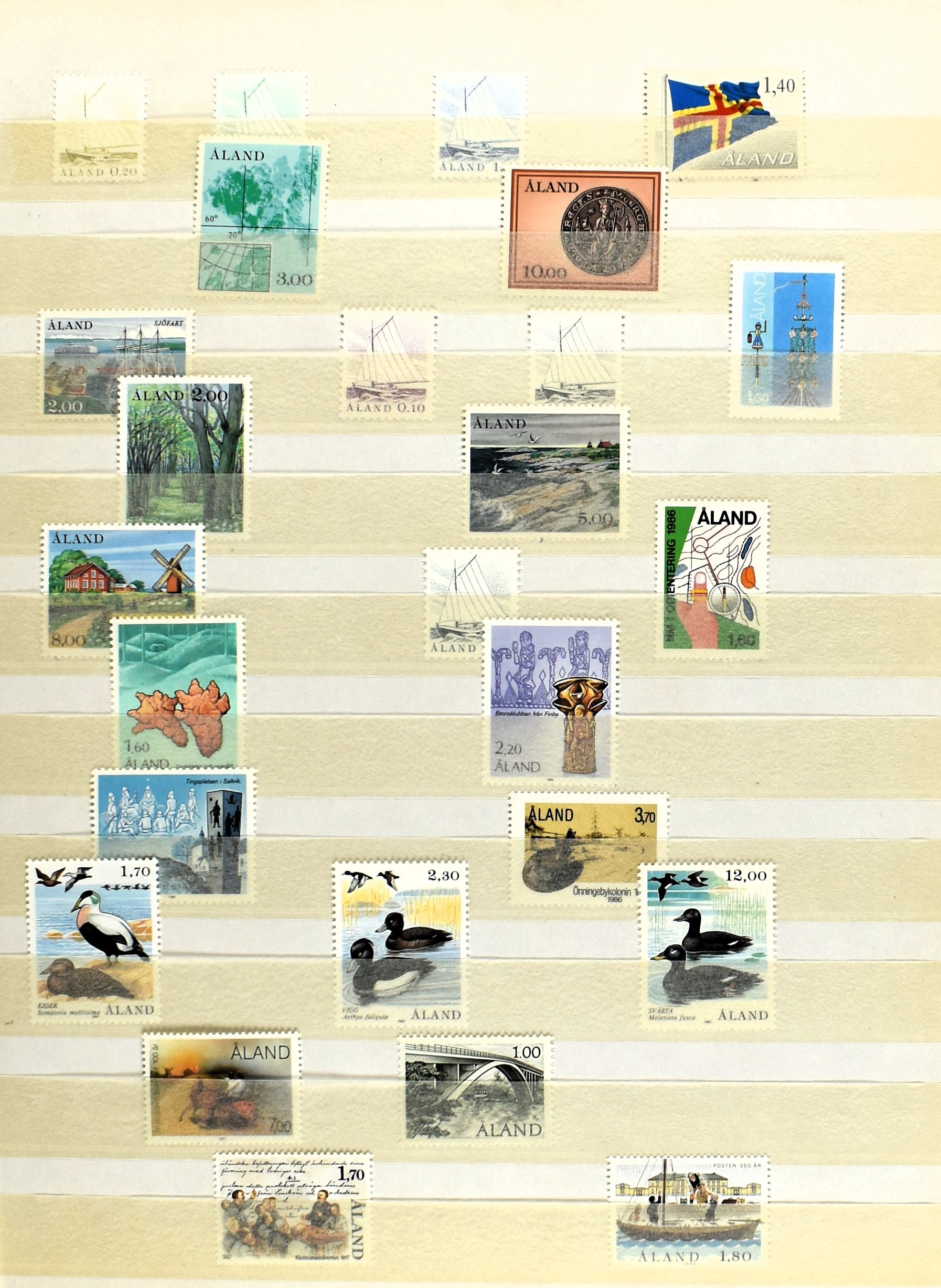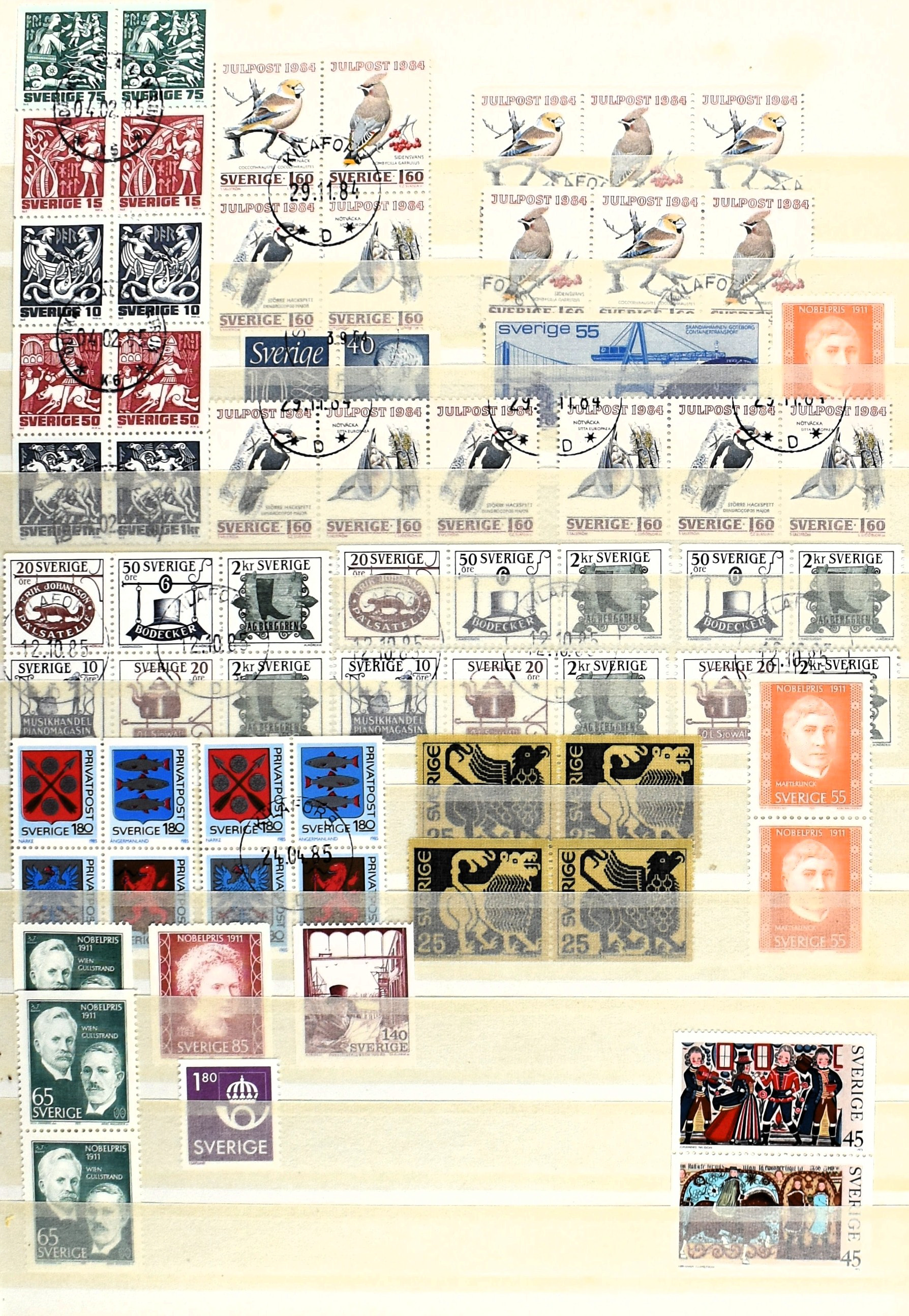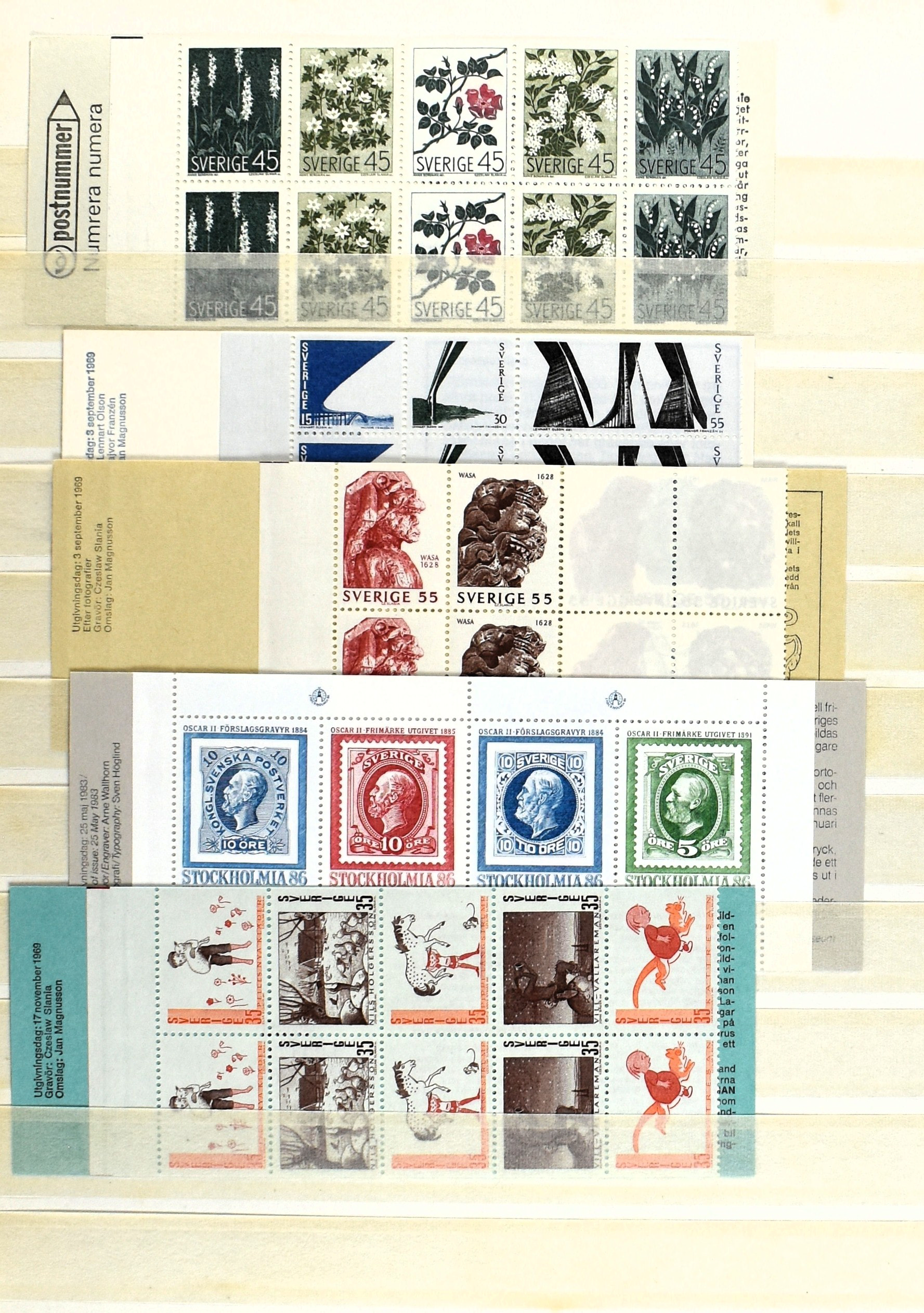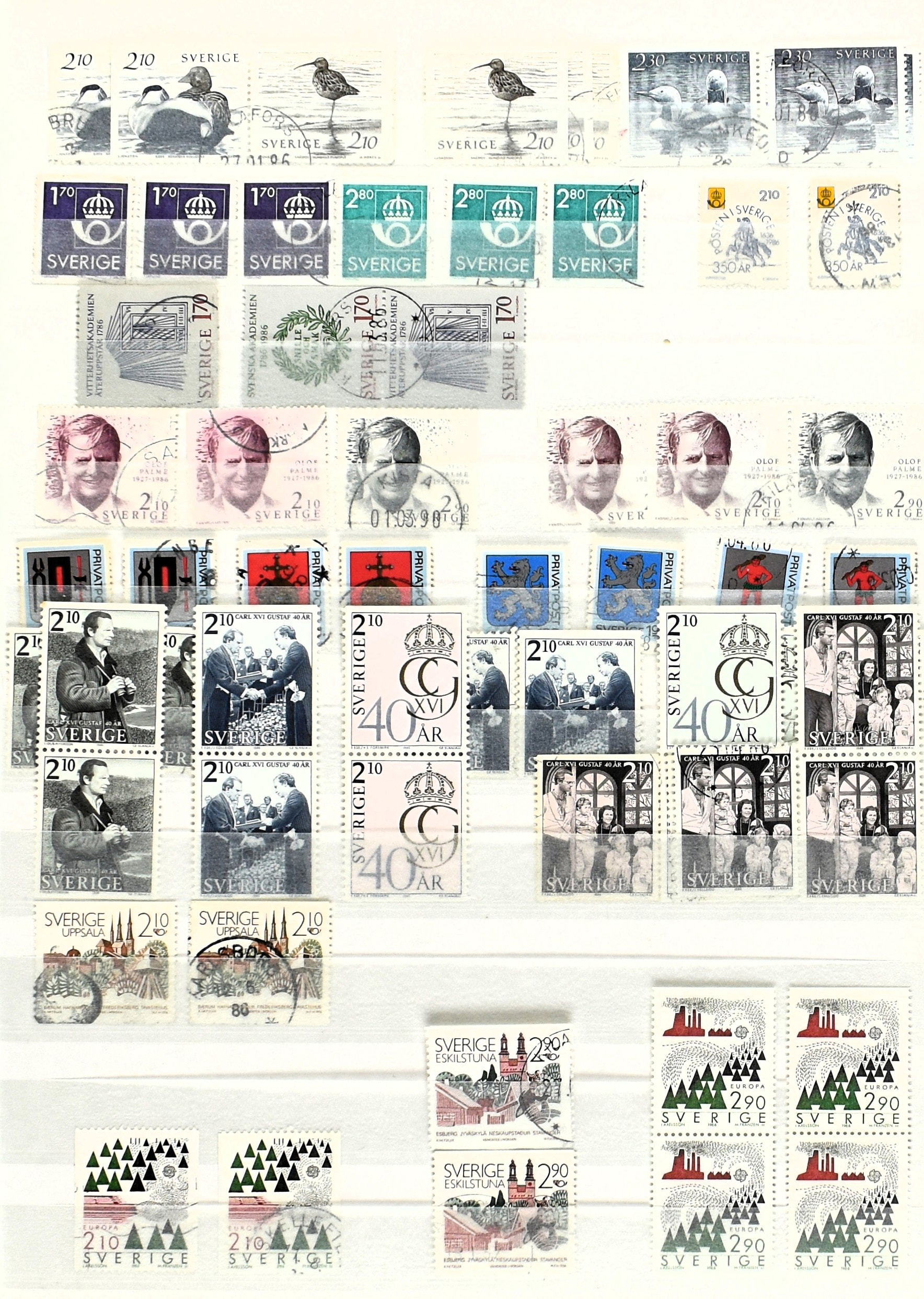 SCANDINAVIA, o/*/** in 10 stock books and 1 album, contains Denmark, 1851-1998 and Sweden 1855-1986, further Finland, Aland, and Faroe Islands