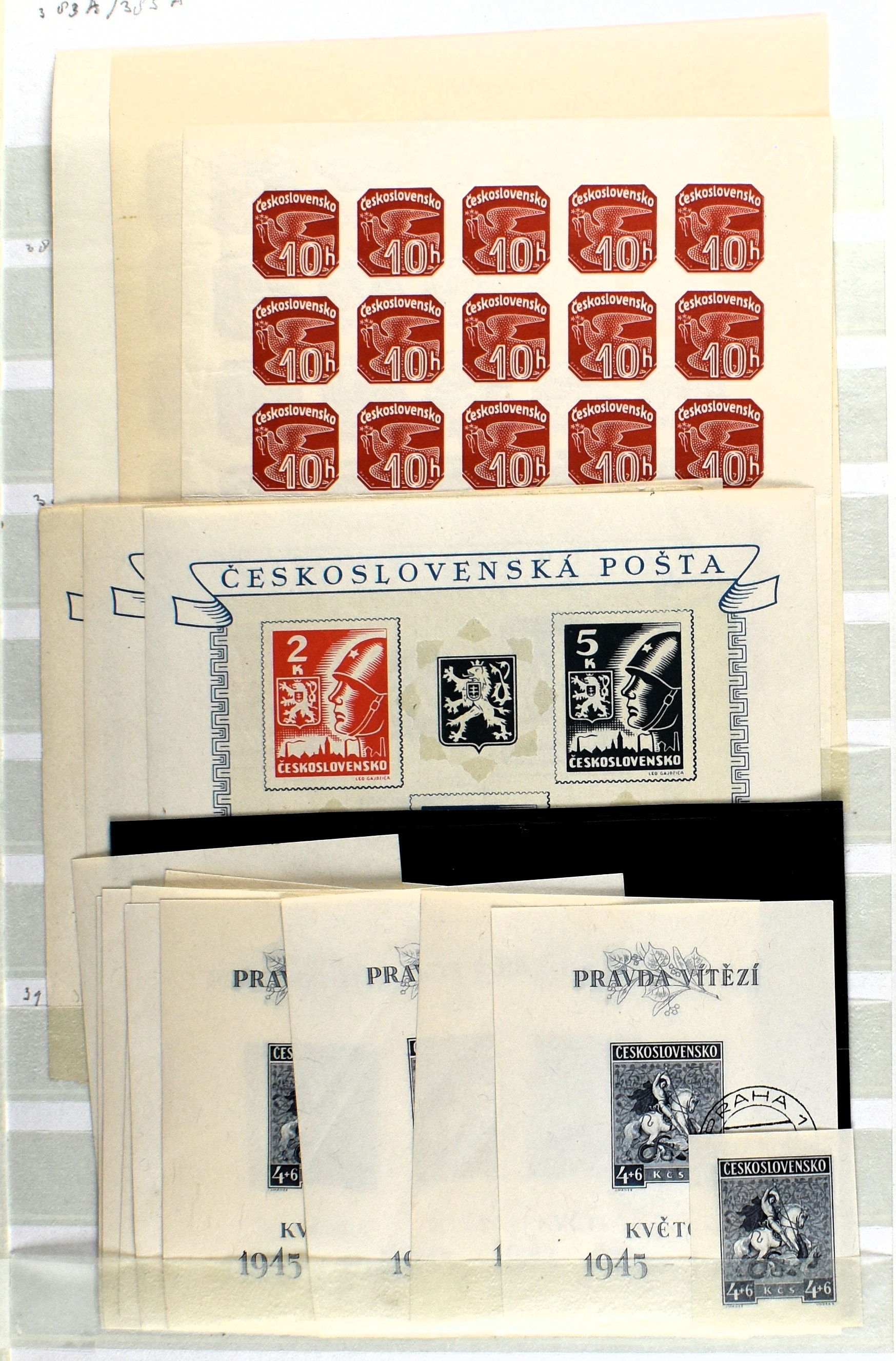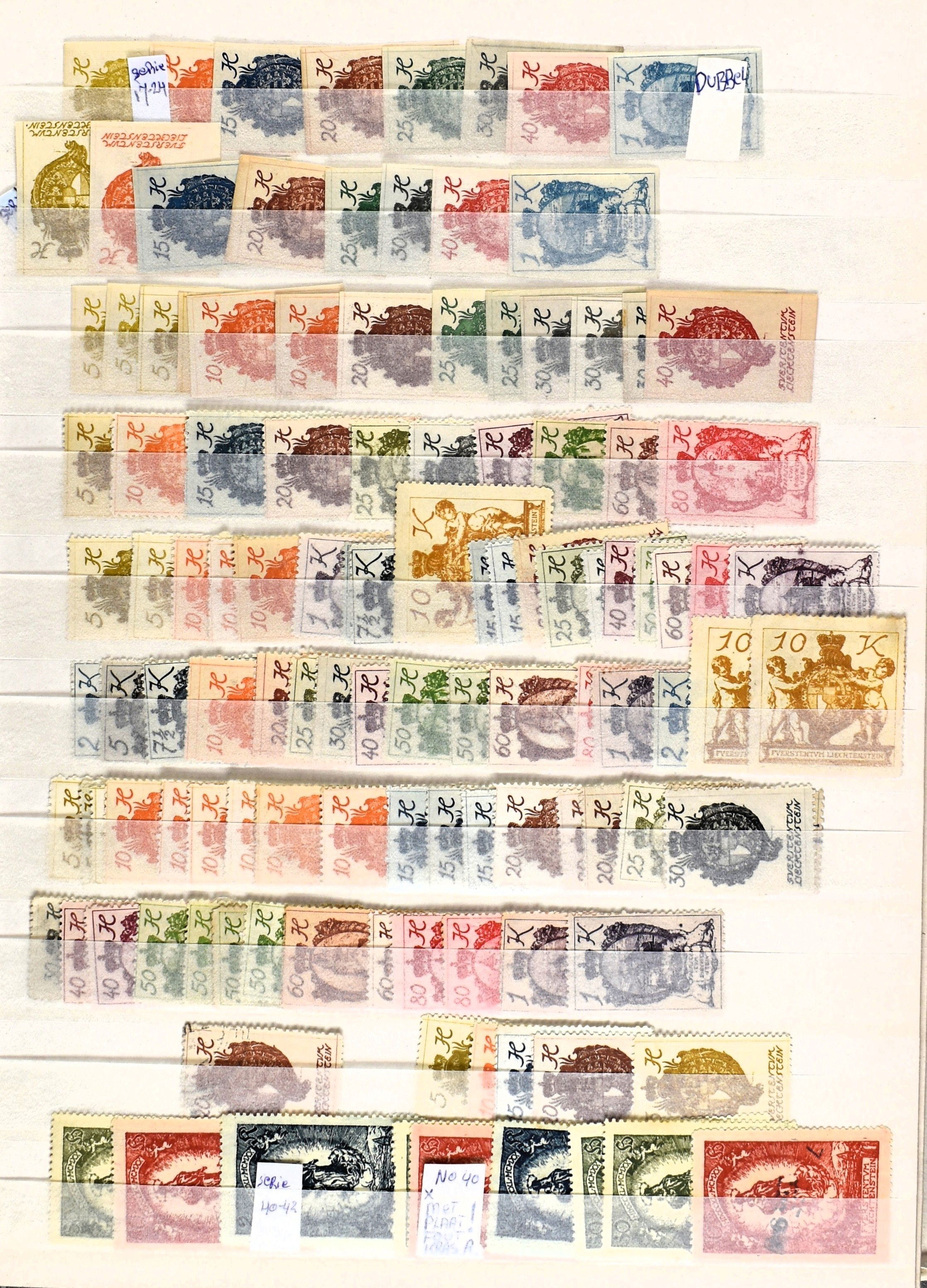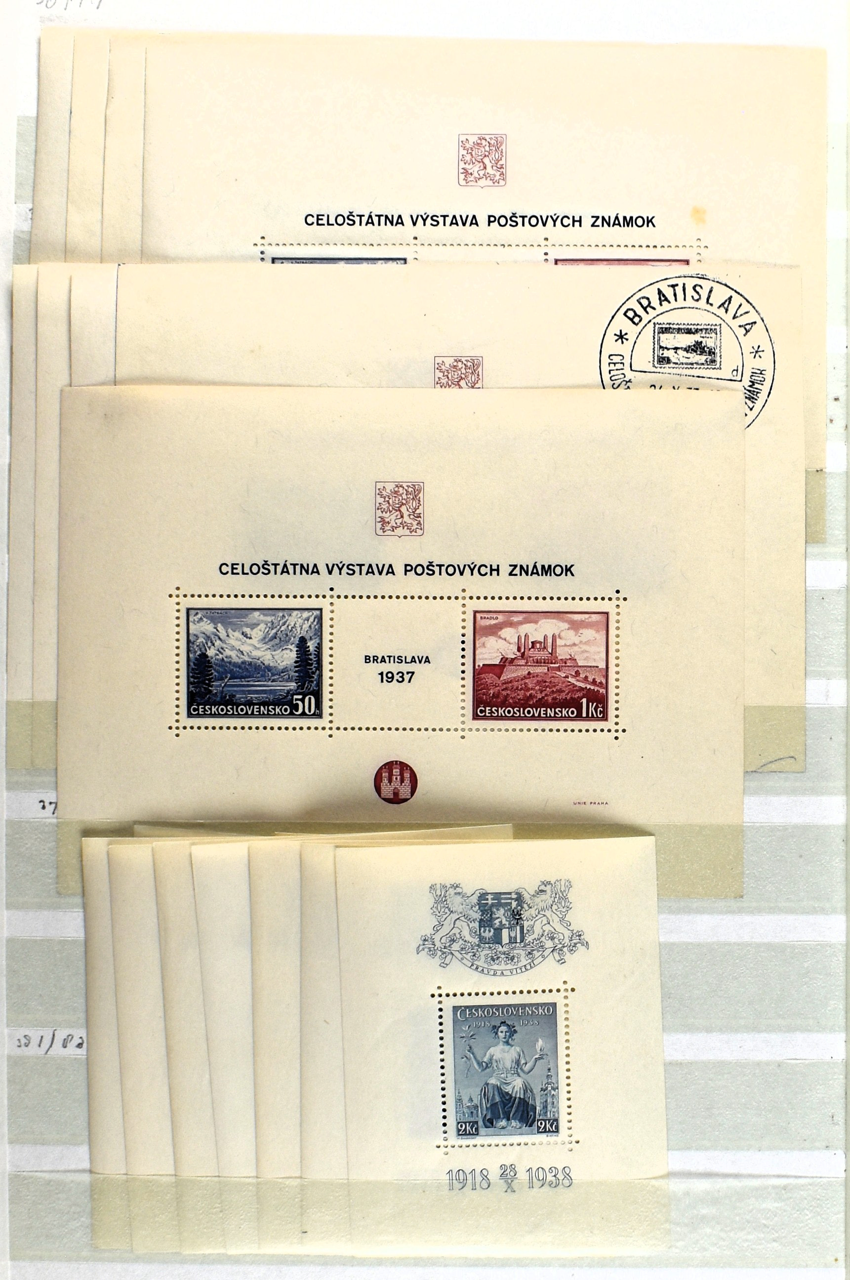 CZECHOSLOVAKIA 1918-1988, extensive stock with a lot of duplicates and also better blocks, miniature sheets, sets and the "Hymne Blocks!" For images visit our website (Image) (Image2)