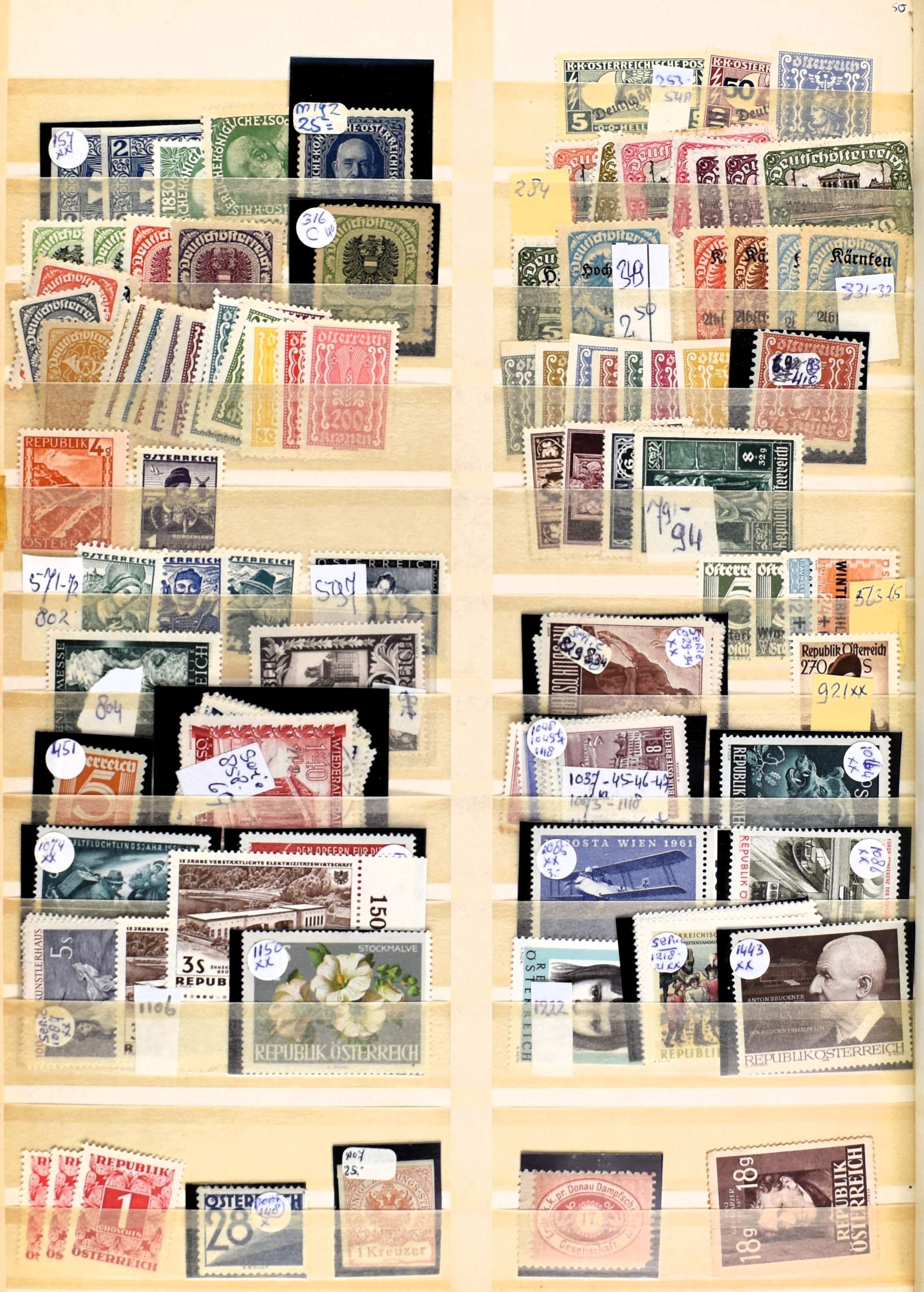 WESTERN EUROPE o/*/**, in 8 albums and 14 stock books with Netherlands, Suriname, Luxembourg till 2017 (face value € 380,-), France, Switzerland, Liechtenstein, Austria (face value € 200,-) Spain with Colonies with duplicates o/*/**.