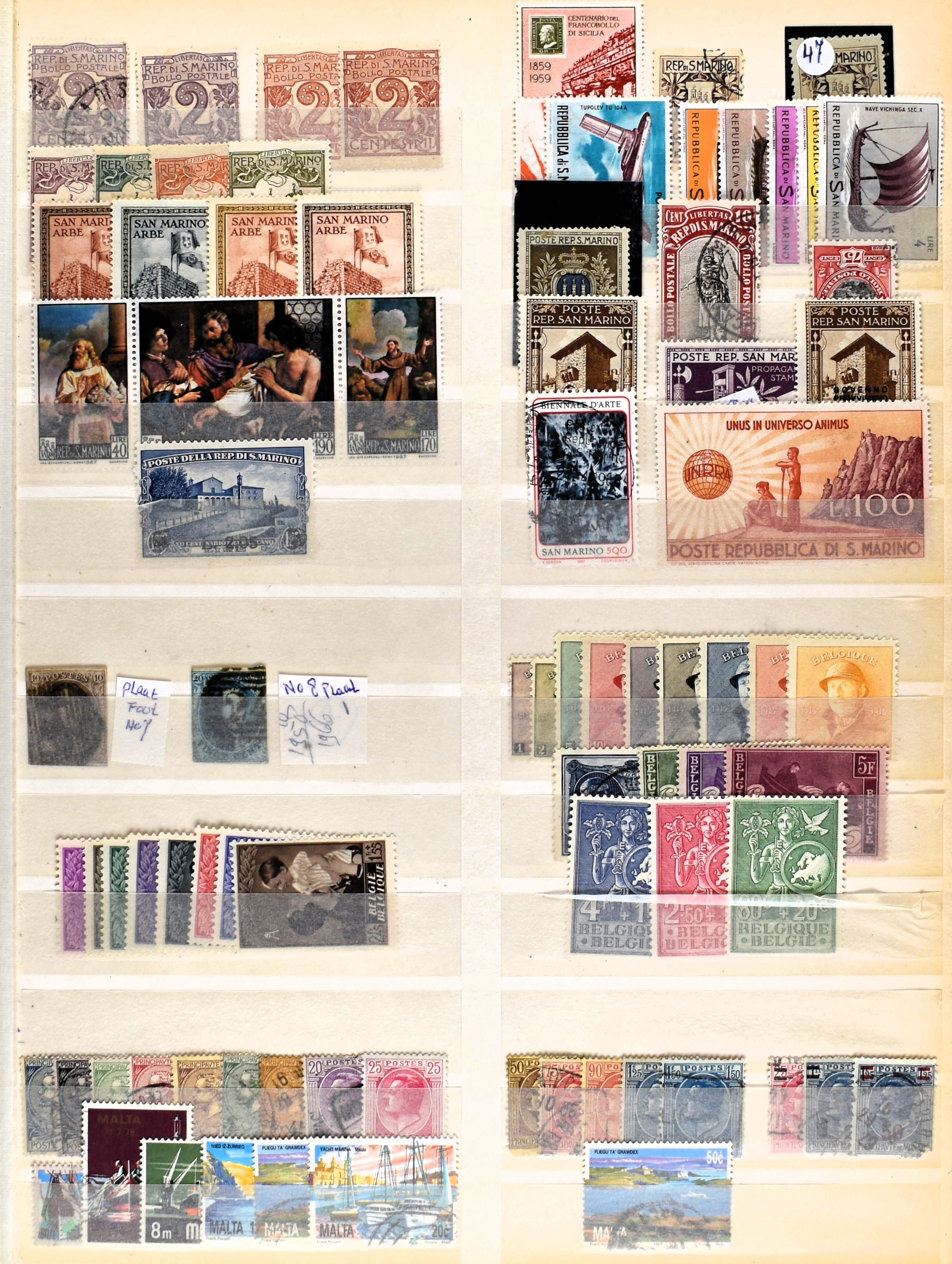 WORLD, o/*/** accumulation in 26 stock books with a.o.: Scandinavia, Western Europe, South America and Asia with better numbers and sets, some covers etc. etc. Perfect for the adventurer, in 2 moving boxes. (Image) (Image2)