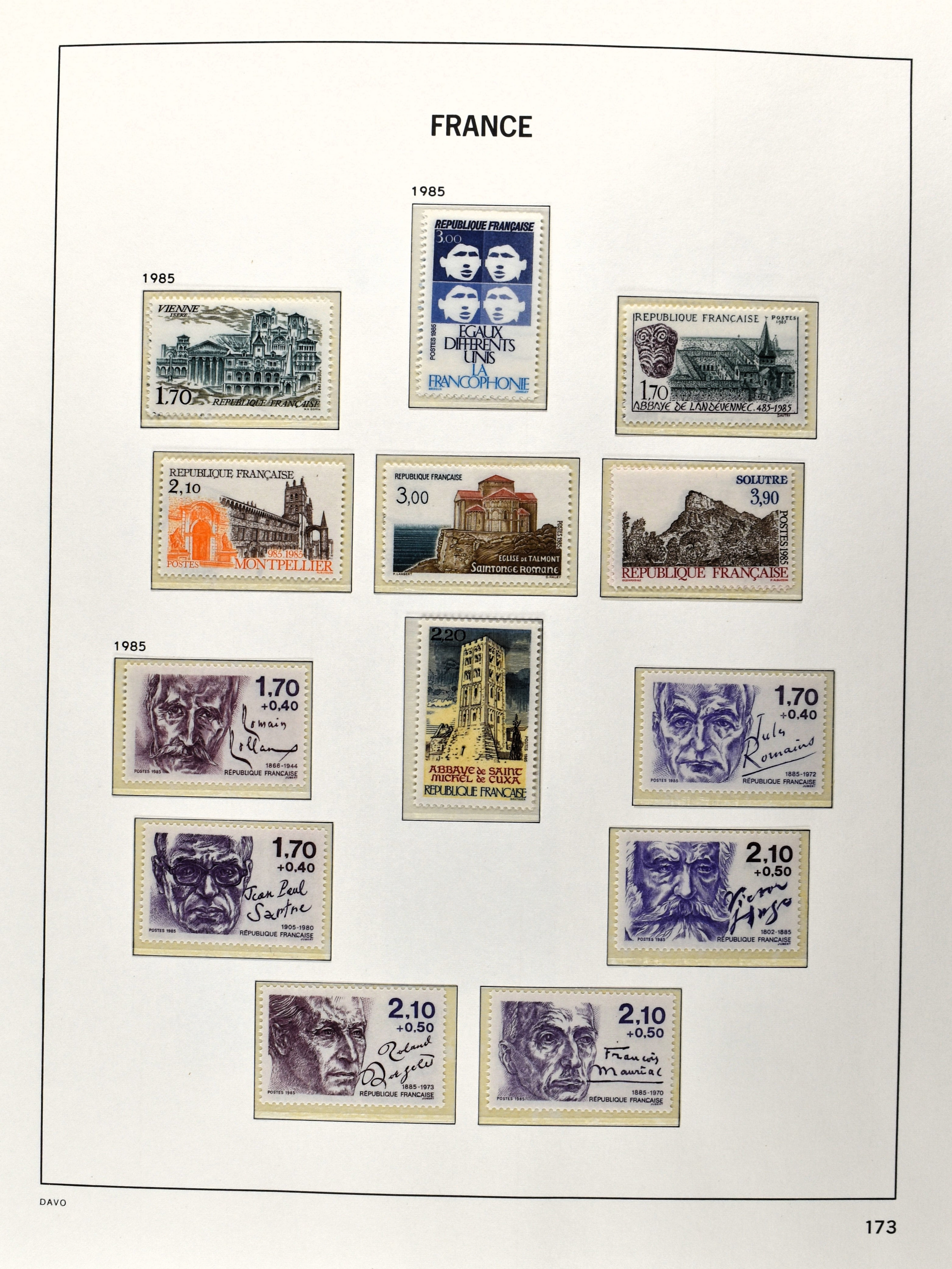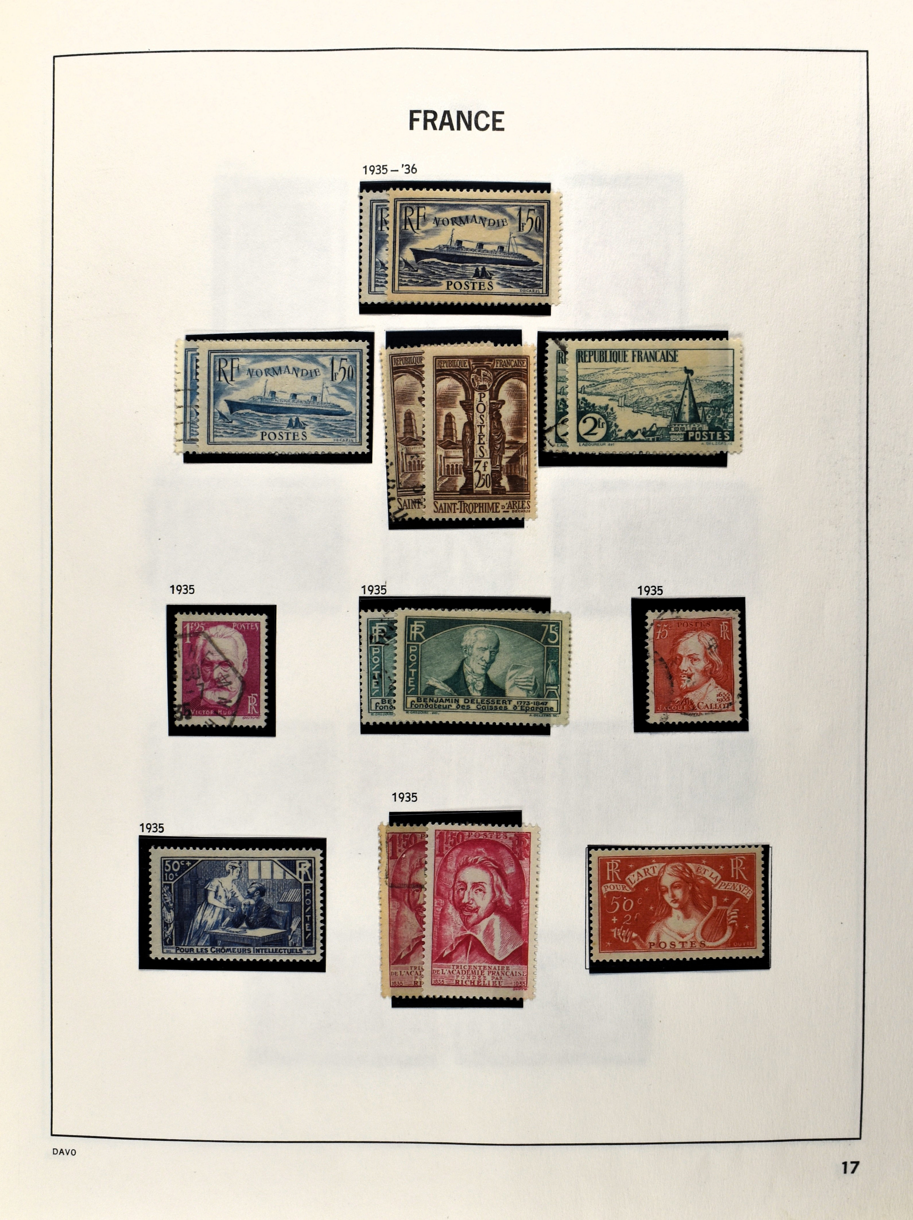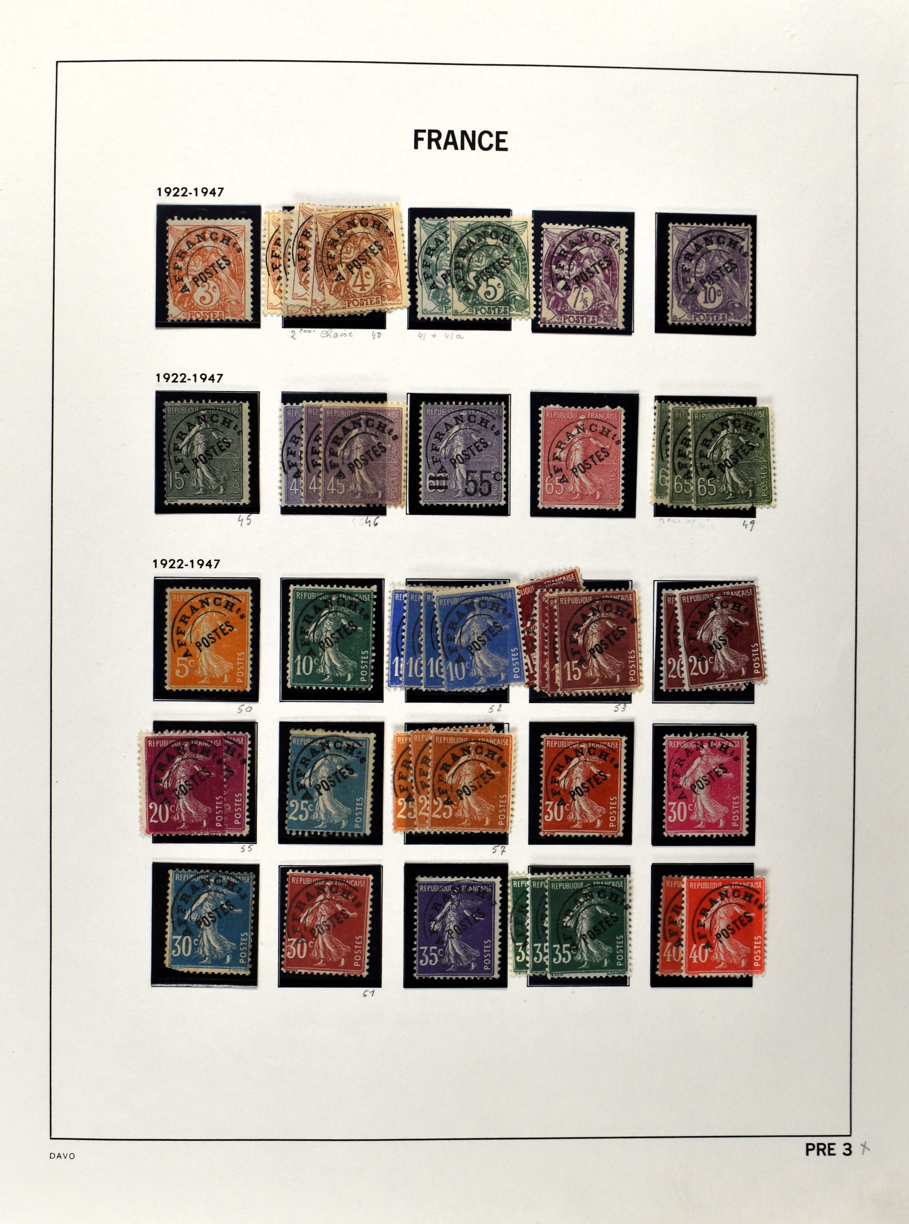 2156 imageFRANCE 1849-2005, o/*/** in 6 Davo albums with a lot of good and better numbers and sets often used as well as unused collected, such as Yv. 144/51, 211/14(2), 218/19, 220, 321, 327(2), airmail, blocks incl. blocks 1,2 and 3 , booklets, varieties, etc., a valuable collection in decent quality. (Image) (Image2) (Image3) (Image4) (Image5) (Image6) (Image7) (Image8) (Image9) (Image10) (Image11) (Image12) (Image13) (Image14) (Image15) (Image16) (Image17) (Image18) (Image19) (Image20) (Image21) (Image22) (Image23) (Image24) (Image25) (Image26) (Image27) (Image28) (Image29) (Image30) (Image31) (Image32) (Image33) (Image34) (Image35) (Image36) (Image37) (Image38) (Image39) (Image40) (Image41) (Image42) (Image43) (Image44) (Image45) (Image46) (Image47) (Image48) (Image49) (Image50) (Image51) (Image52) (Image53) (Image54) (Image55) (Image56) (Image57) (Image58) (Image59) (Image60) (Image61) (Image62) (Image63) (Image64) (Image65) (Image66) (Image67) (Image68) (Image69) (Image70) (Image71) (Image72) (Image73) (Image74) (Image75) (Image76) (Image77) (Image78) (Image79) (Image80) (Image81) (Image82) (Image83) (Image84) (Image85) (Image86) (Image87) (Image88) (Image89)