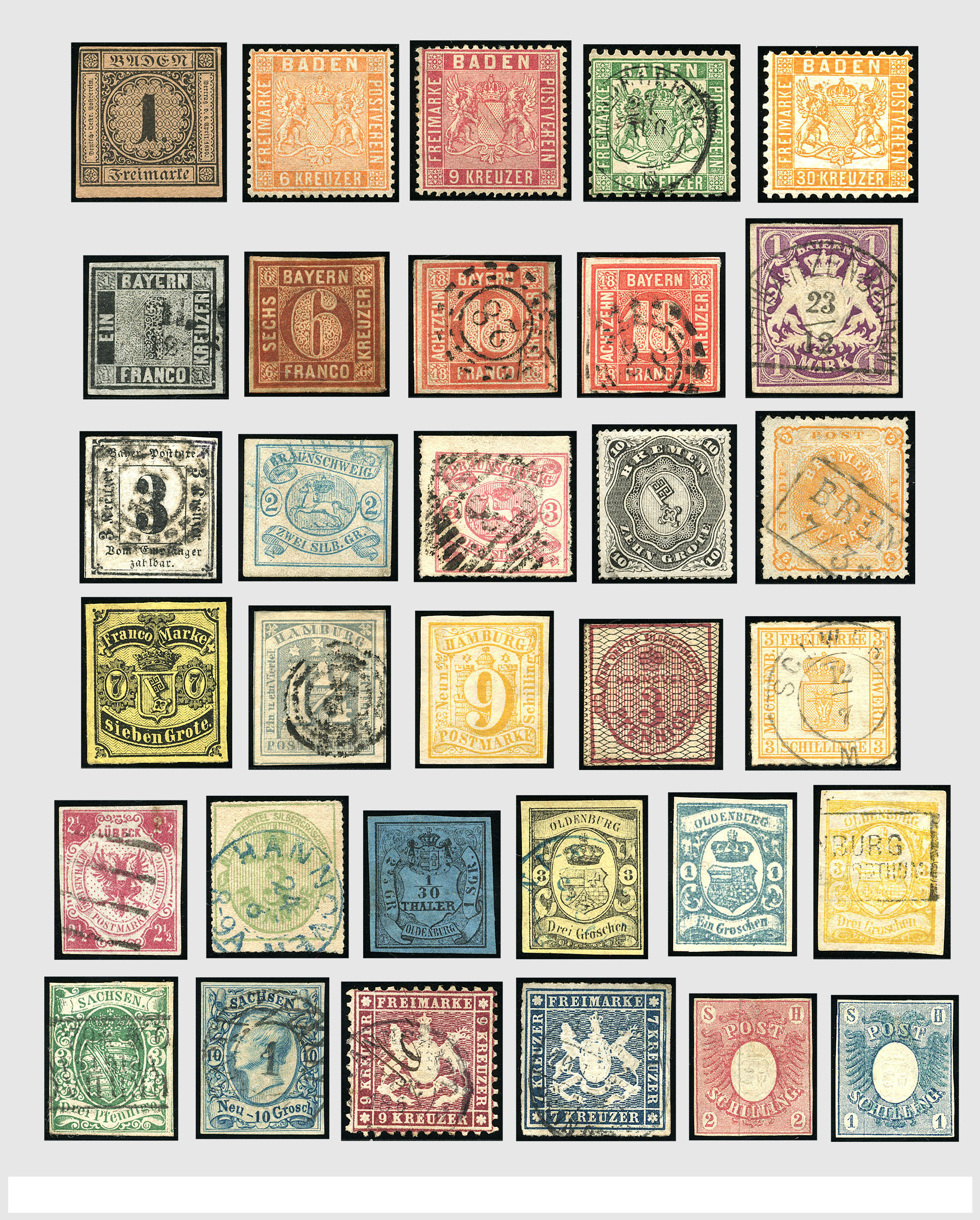 2158 imageOLD GERMAN STATES o/(*)/*/** extensive collection in a bit mixed quality (as to be expected) in 2 Lindner albums, often used and unused with a lot of colour- and other varieties, several better numbers such as : Baden Mi. 1(*), 21 (signed higher), Bavaria 1, 6, 12/13, Bremen 8 (*), Lubeck 4 (cert. Brettl), Oldenburg 2(*), 8, 12(double signed), Saxony 2, 12/13, Holstein 1/2 and a nice section of Württemberg. Beautiful collection with an enormous catalogue value! (Image) (Image2) (Image3) (Image4) (Image5) (Image6) (Image7) (Image8) (Image9) (Image10) (Image11) (Image12) (Image13) (Image14) (Image15) (Image16) (Image17) (Image18) (Image19) (Image20) (Image21) (Image22) (Image23) (Image24) (Image25) (Image26) (Image27) (Image28) (Image29) (Image30) (Image31) (Image32) (Image33) (Image34) (Image35) (Image36) (Image37) (Image38) (Image39) (Image40) (Image41) (Image42) (Image43) (Image44) (Image45) (Image46) (Image47) (Image48) (Image49) (Image50) (Image51) (Image52) (Image53) (Image54) (Image55) (Image56) (Image57) (Image58) (Image59) (Image60) (Image61) (Image62) (Image63) (Image64) (Image65) (Image66) (Image67) (Image68) (Image69) (Image70) (Image71) (Image72) (Image73) (Image74) (Image75) (Image76) (Image77) (Image78) (Image79) (Image80) (Image81) (Image82) (Image83) (Image84) (Image85) (Image86) (Image87) (Image88) (Image89) (Image90) (Image91) (Image92) (Image93) (Image94) (Image95)