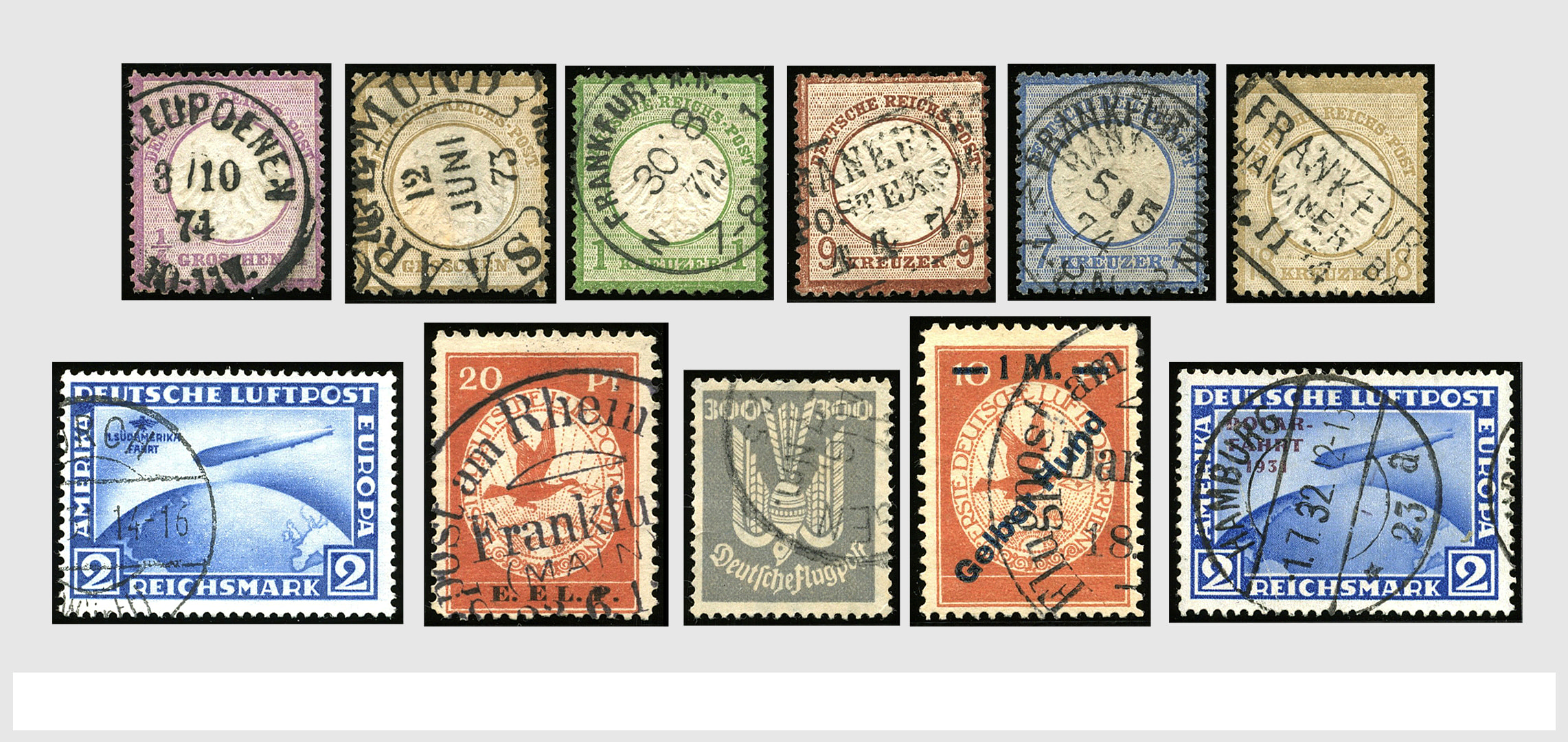 2159 imageGERMAN EMPIRE 1872-1932, used collection in a Lighthouse album with many good stamps and sets such as the small and large shields complete including some colour varieties, watermarks and types, the 1912 Airmails incl. "Gelber Hund" and the "E.E.L.P."- overprints Mi. IV, V, and VI, "Südamerikafahrt" 438/39, Blok 1 and Officials incl. some extra's. Nice collection with a very high cat. value (Image) (Image2) (Image3) (Image4) (Image5) (Image6) (Image7) (Image8) (Image9) (Image10) (Image11) (Image12) (Image13) (Image14) (Image15) (Image16) (Image17) (Image18) (Image19) (Image20) (Image21) (Image22) (Image23) (Image24) (Image25) (Image26) (Image27) (Image28) (Image29) (Image30) (Image31) (Image32) (Image33) (Image34) (Image35) (Image36) (Image37) (Image38) (Image39) (Image40) (Image41) (Image42) (Image43) (Image44) (Image45) (Image46) (Image47) (Image48) (Image49) (Image50) (Image51) (Image52) (Image53) (Image54) (Image55) (Image56) (Image57)