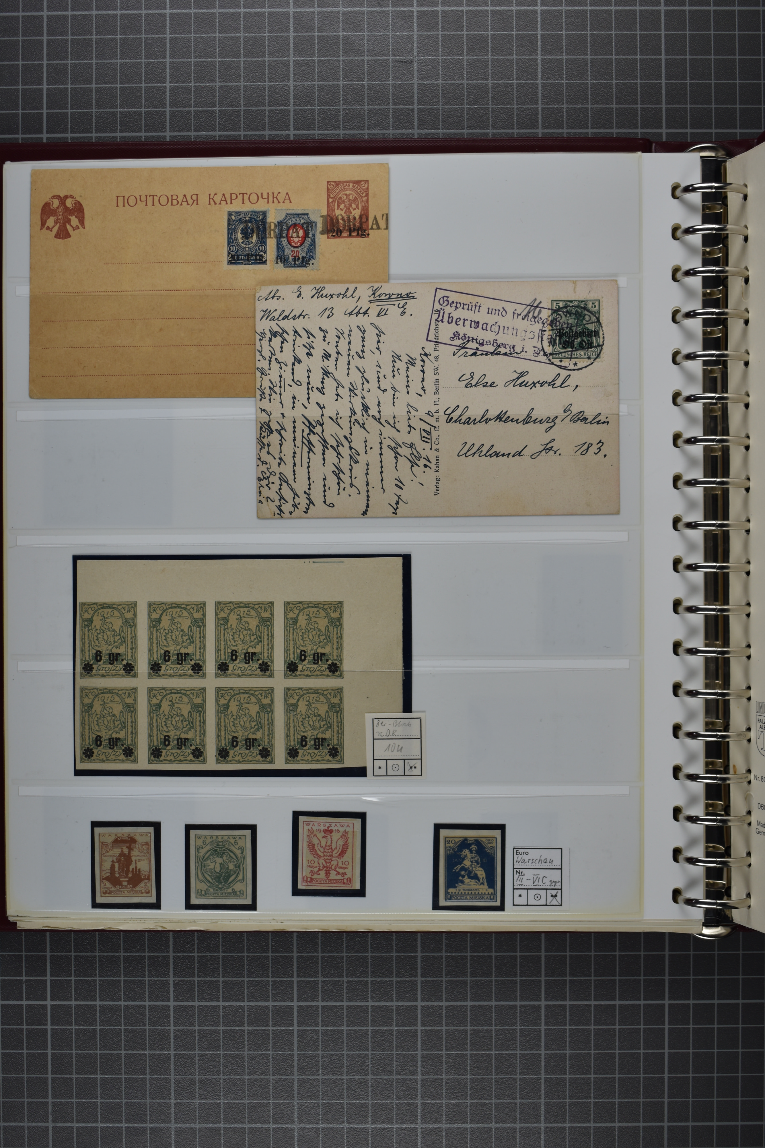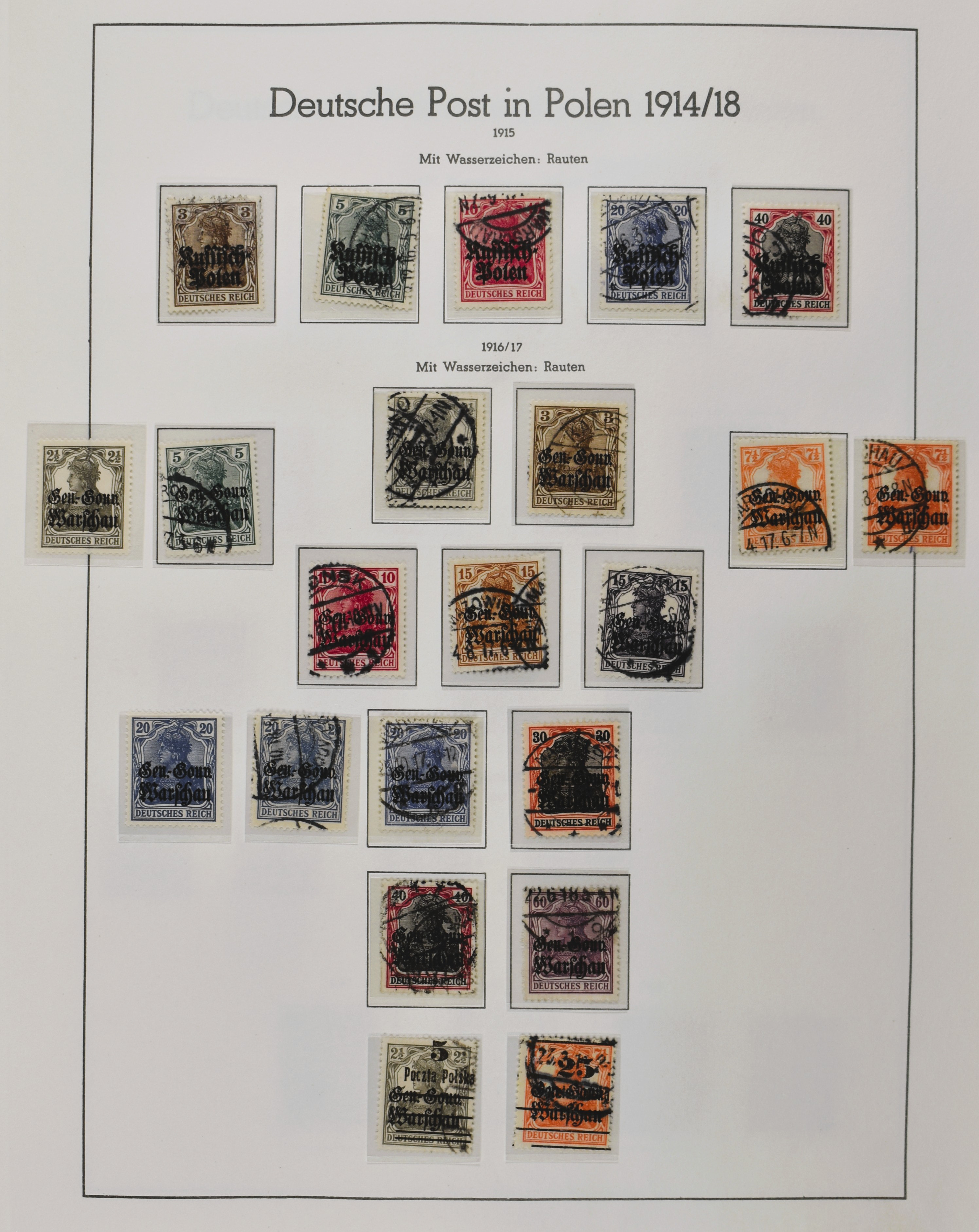 2161 imageGERMAN OCCUPATION OF POLAND WWI 1915-1919, o/* sophisticated collection in a Lindner binder with a good range of wartime city mail, 1918-1919 Local surcharges including types and varieties (as usual with some non-genuine ones) a beautiful, promising lot for the specialists! Take your time for viewing! (Image) (Image2) (Image3) (Image4) (Image5) (Image6) (Image7) (Image8) (Image9) (Image10) (Image11) (Image12) (Image13) (Image14) (Image15) (Image16) (Image17) (Image18) (Image19) (Image20) (Image21) (Image22) (Image23) (Image24)