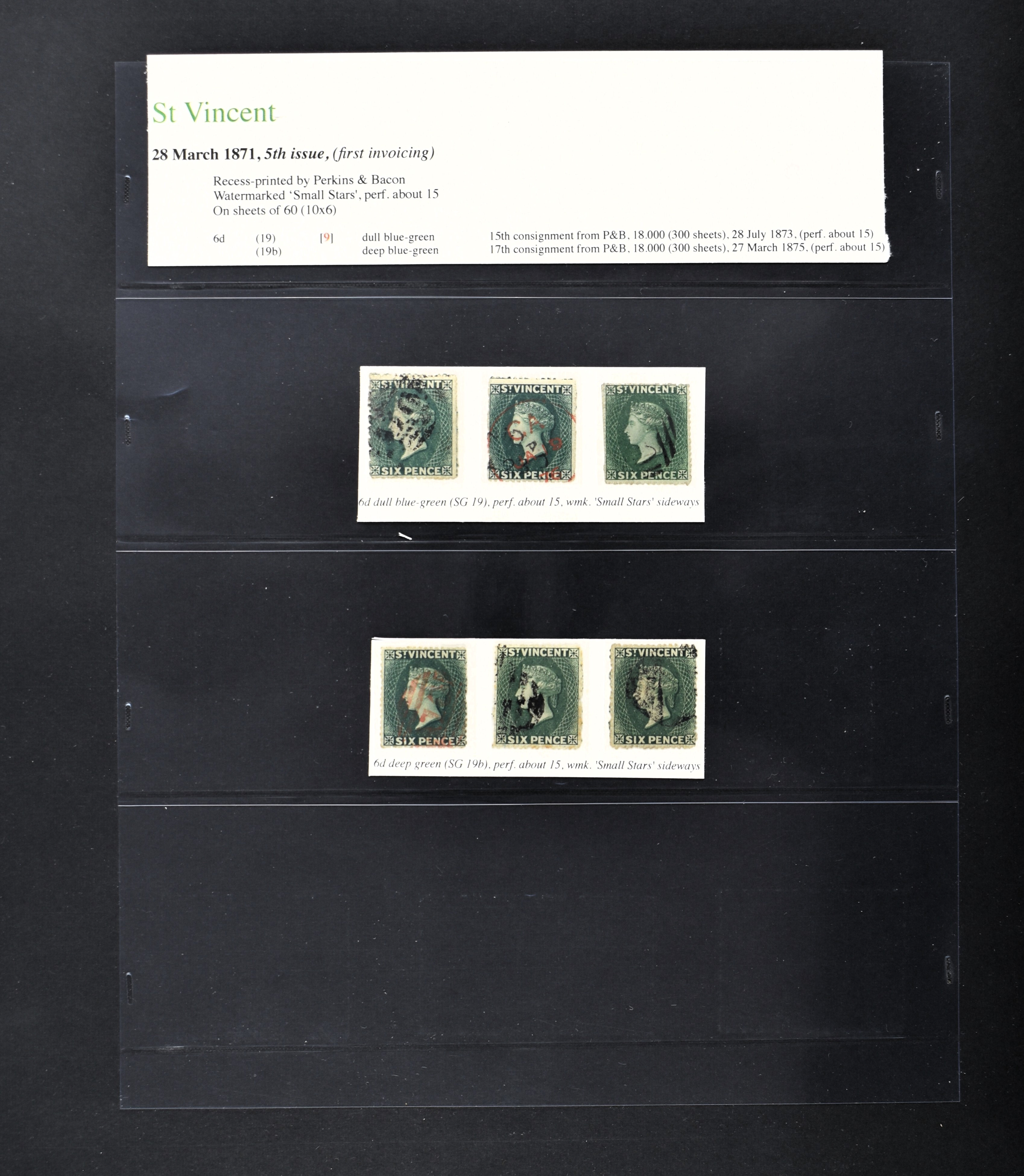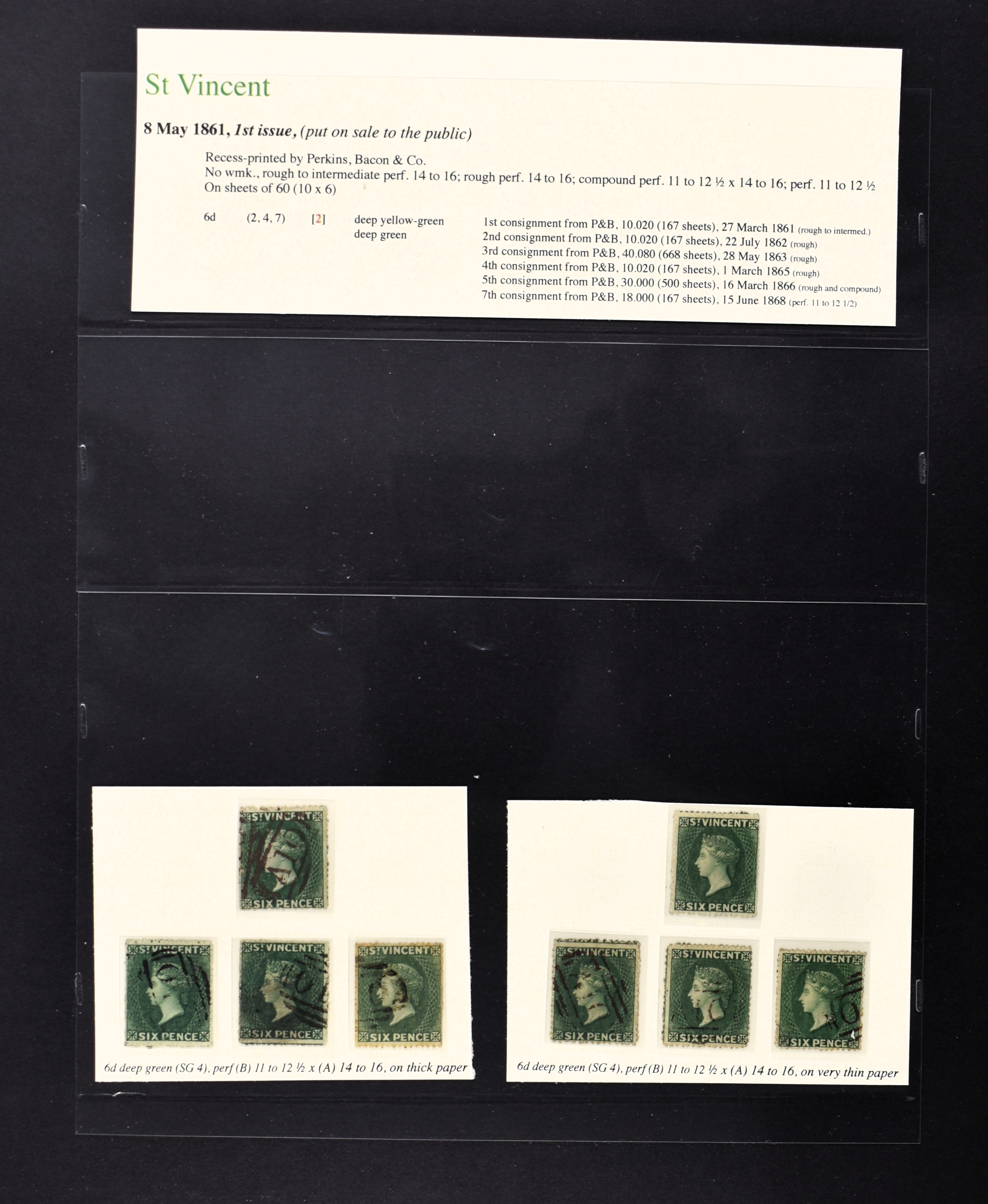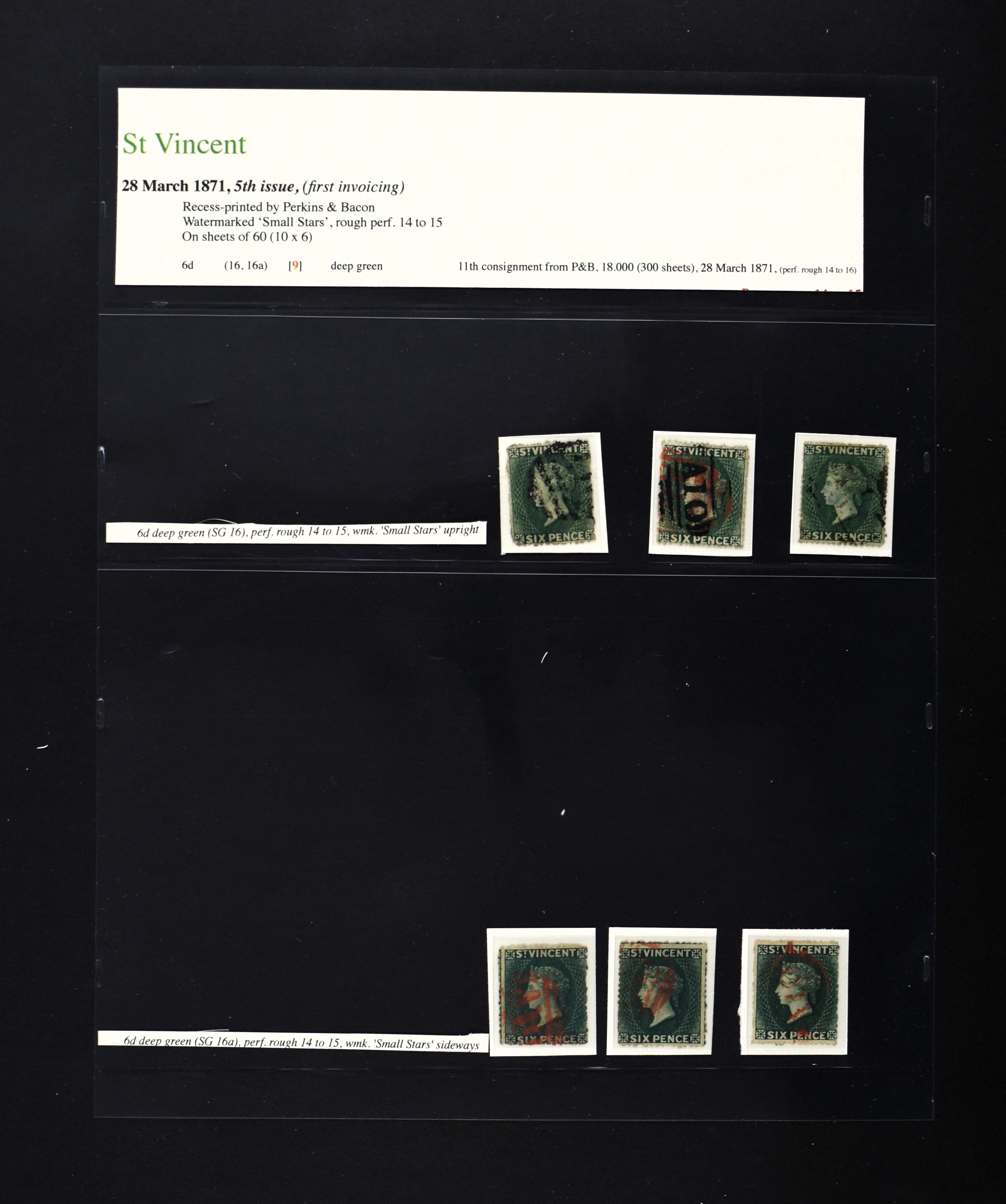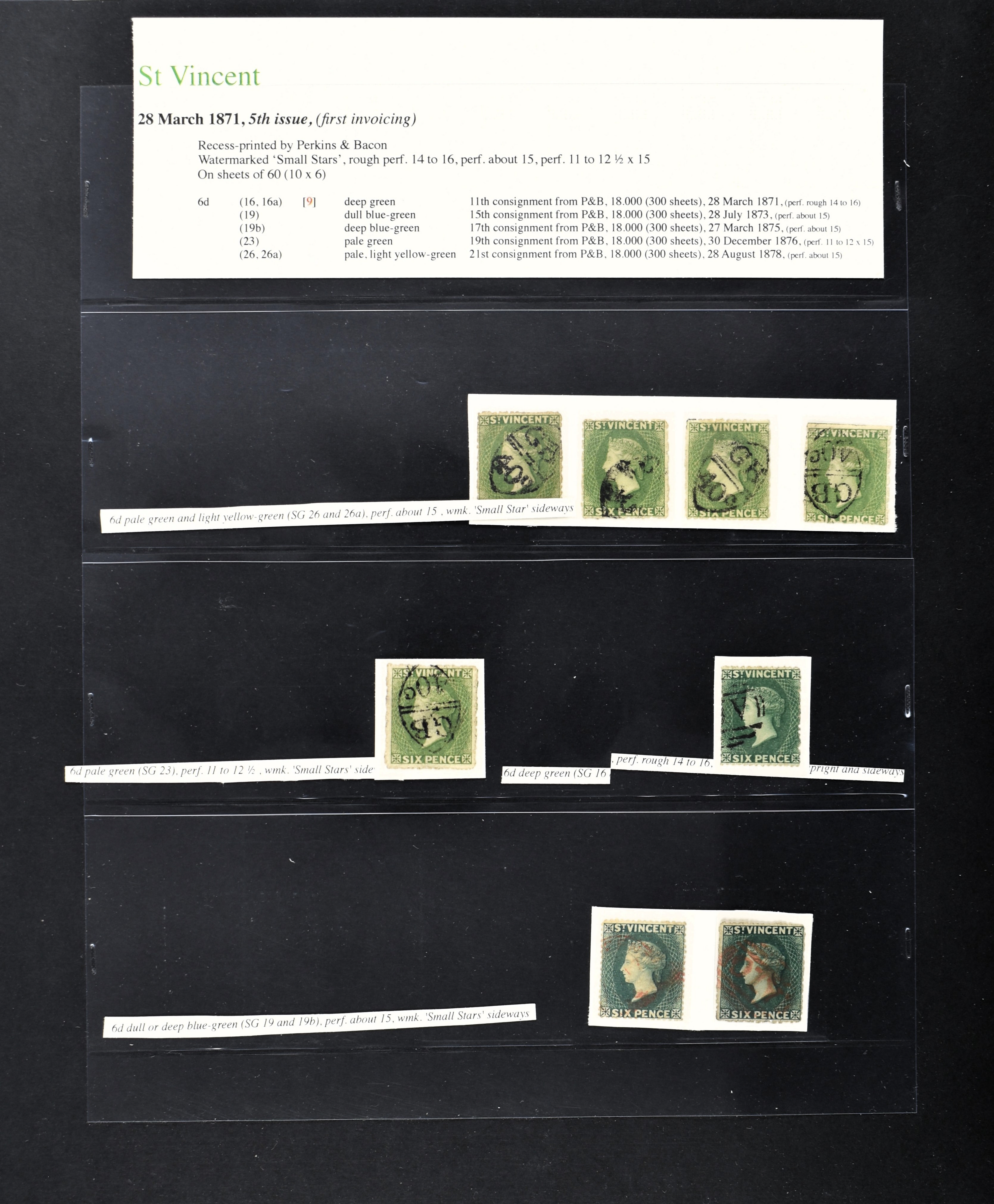 2188 imageBRITISH COMMONWEALTH ST. VINCENT 1861-188, o/(*)/* Specialized collection on exhibition pages with perf-, paper-, wmk- and colour varieties, better numbers and some covers. Interesting lot in nice quality and with high catalogue value (Image) (Image2) (Image3) (Image4) (Image5) (Image6) (Image7) (Image8) (Image9) (Image10) (Image11) (Image12) (Image13) (Image14) (Image15) (Image16) (Image17) (Image18) (Image19) (Image20) (Image21) (Image22) (Image23) (Image24) (Image25) (Image26)