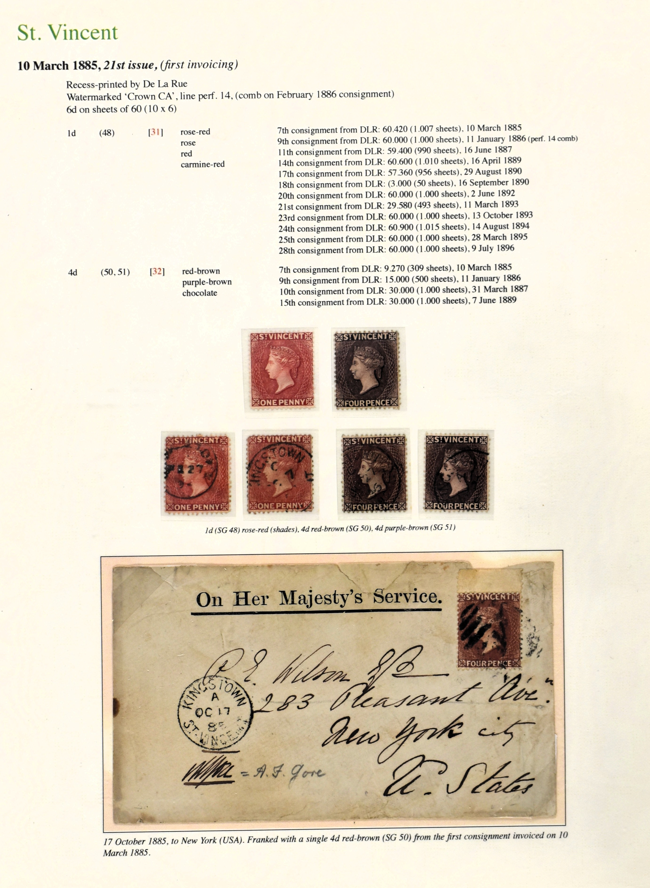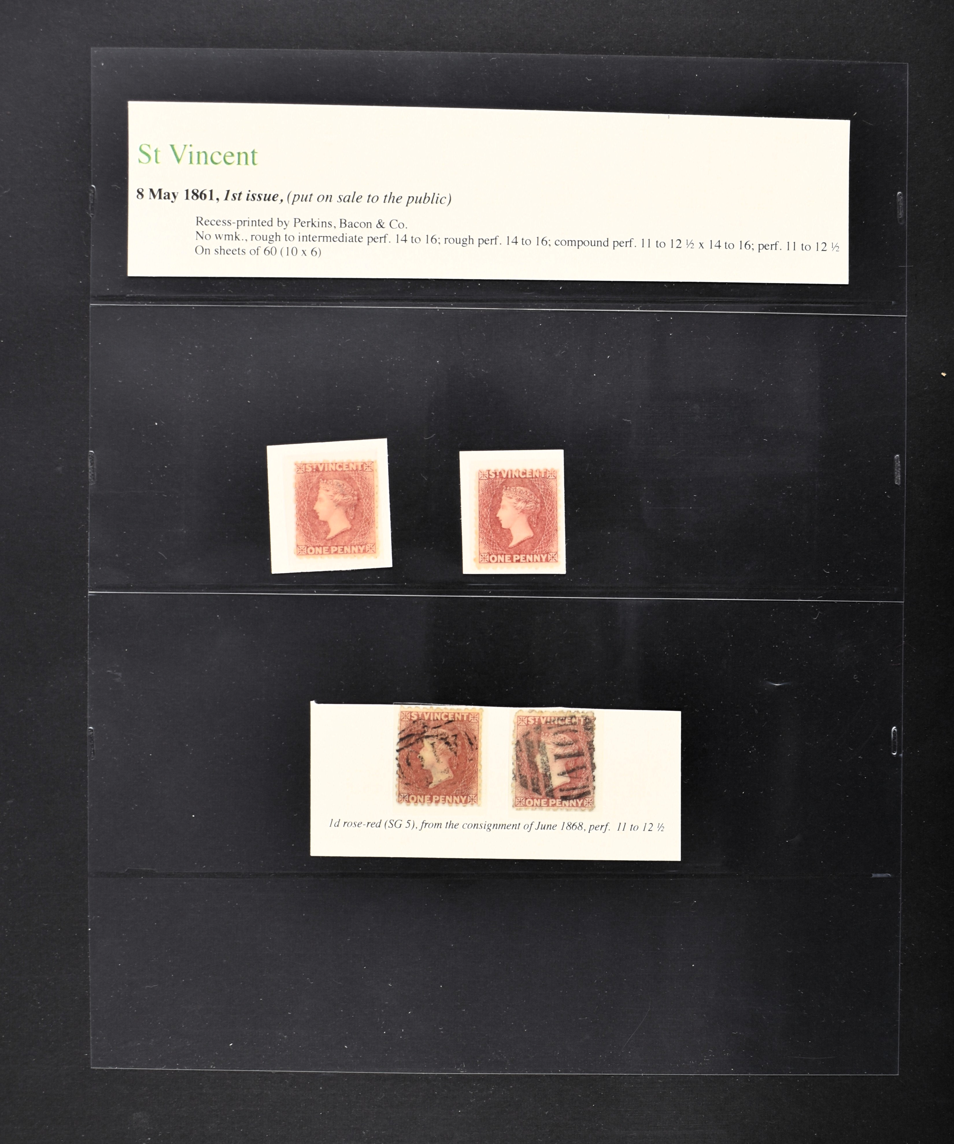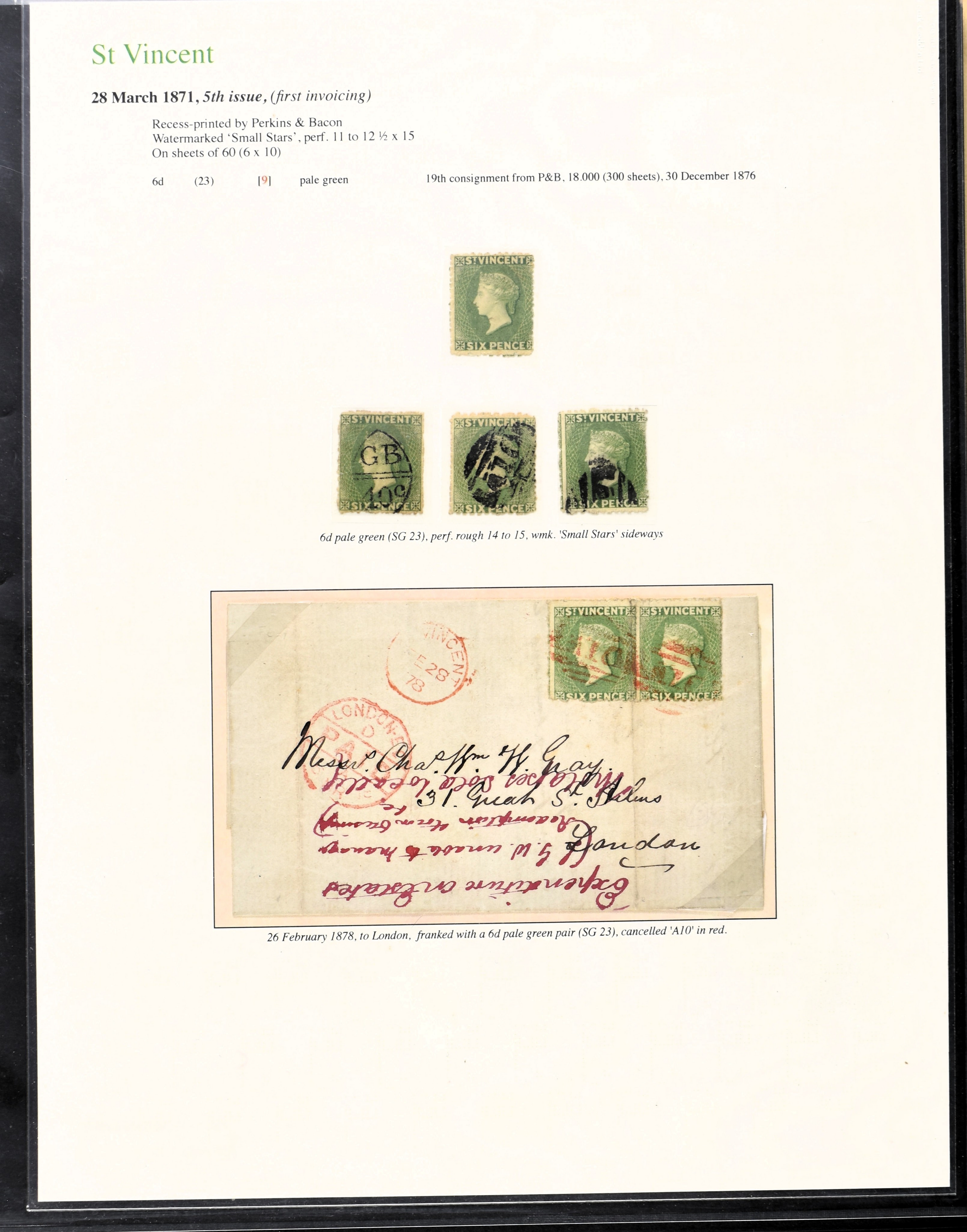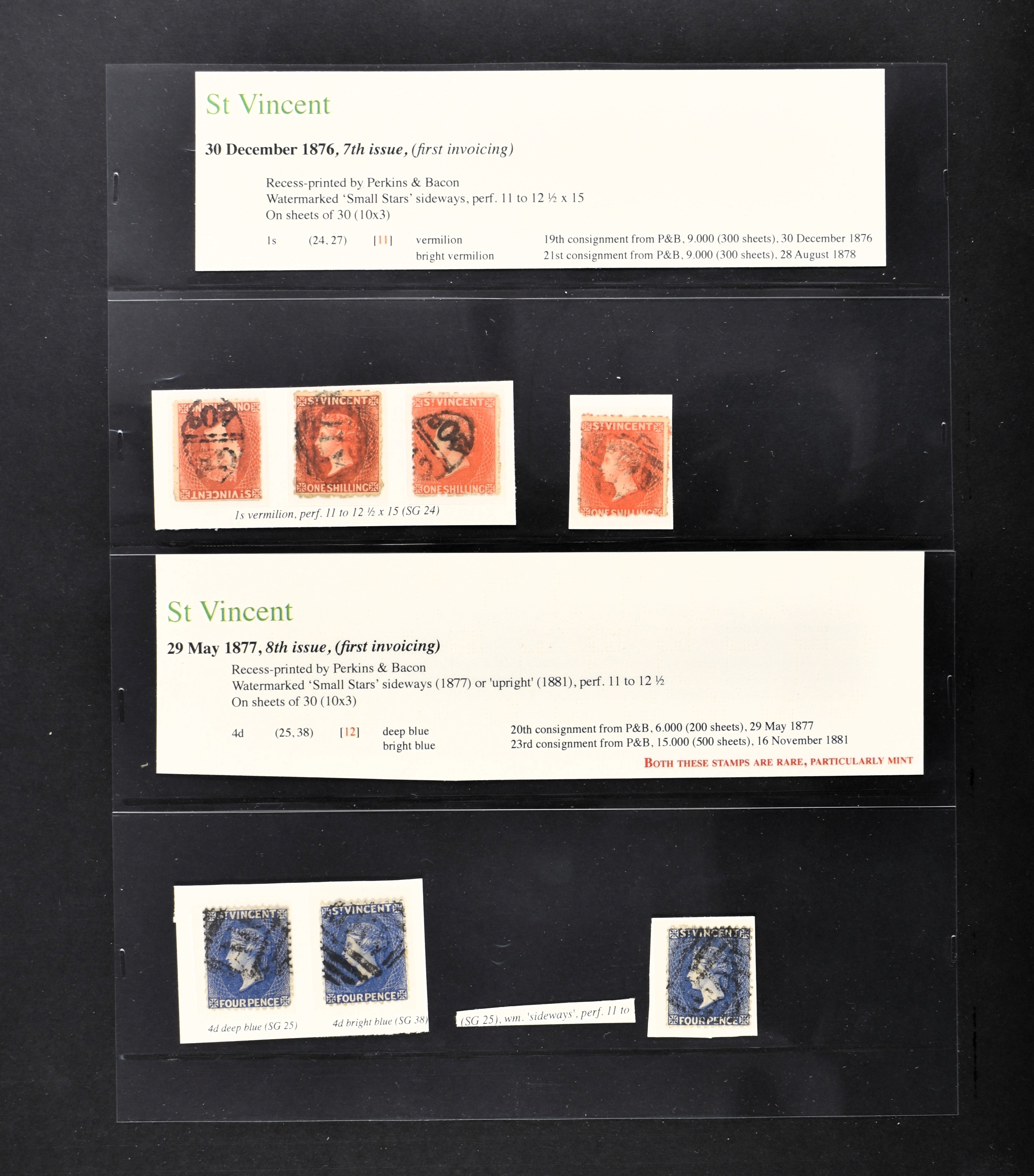 2188 imageBRITISH COMMONWEALTH ST. VINCENT 1861-188, o/(*)/* Specialized collection on exhibition pages with perf-, paper-, wmk- and colour varieties, better numbers and some covers. Interesting lot in nice quality and with high catalogue value (Image) (Image2) (Image3) (Image4) (Image5) (Image6) (Image7) (Image8) (Image9) (Image10) (Image11) (Image12) (Image13) (Image14) (Image15) (Image16) (Image17) (Image18) (Image19) (Image20) (Image21) (Image22) (Image23) (Image24) (Image25) (Image26)