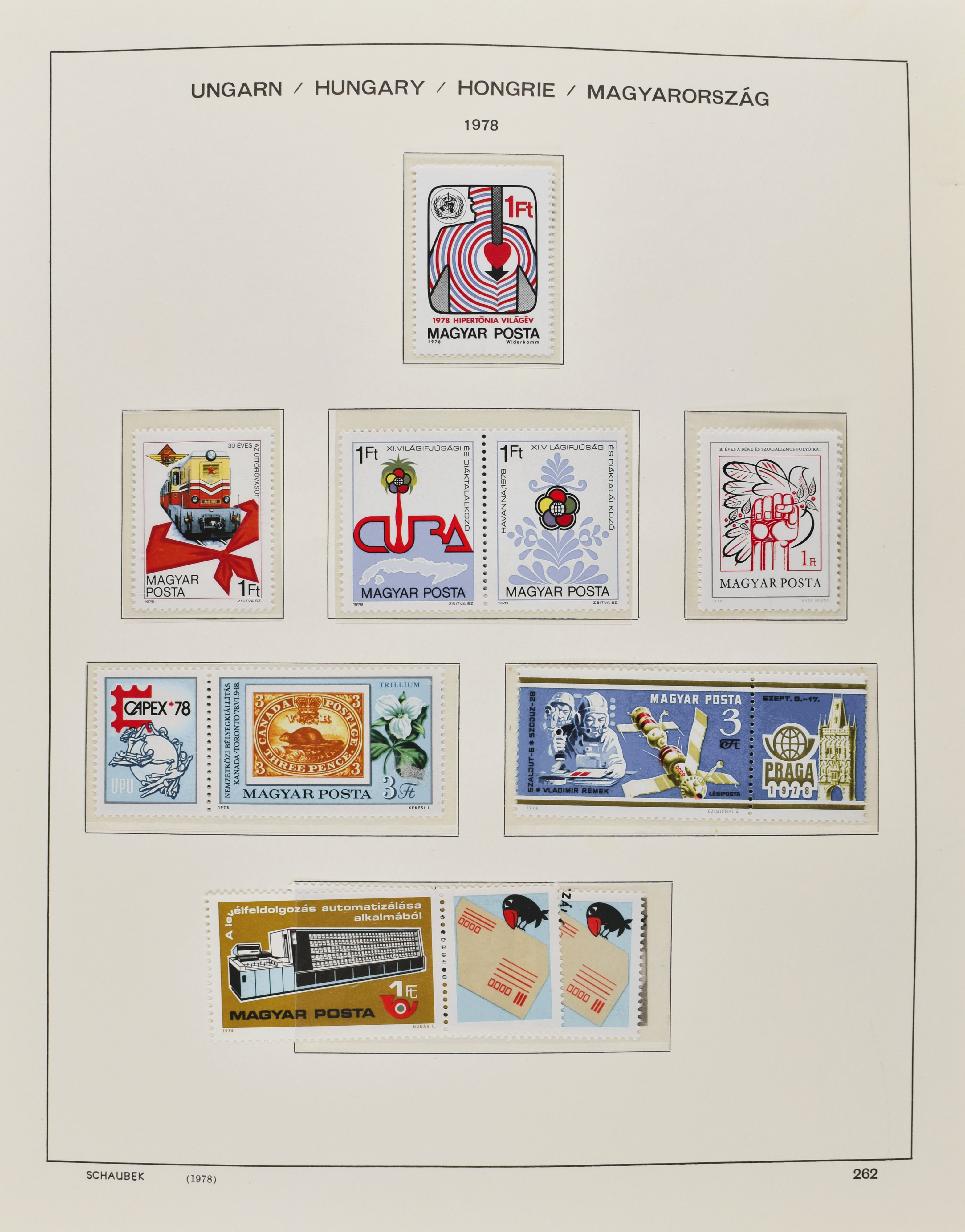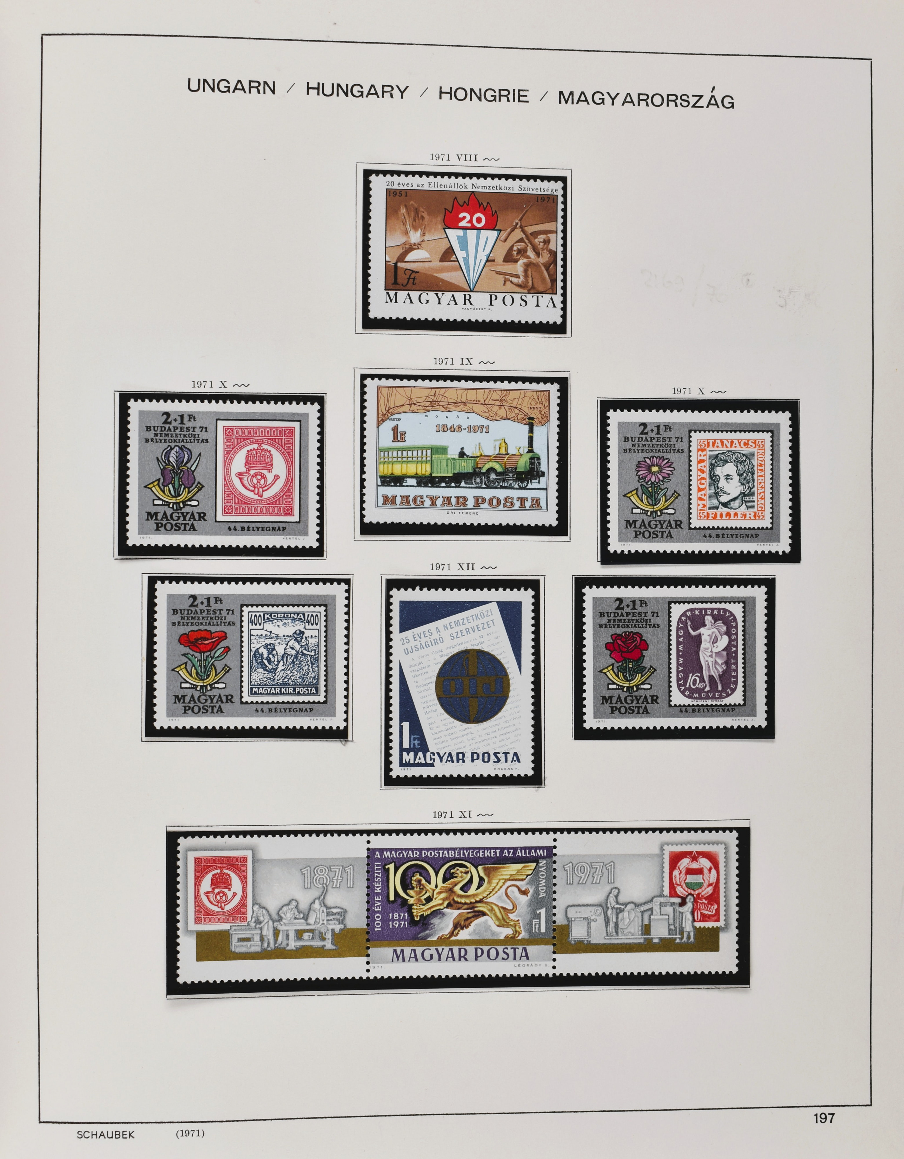 2191 imageHUNGARY 1871-2017, o/*/** extensive collection in 5 albums from 1916 inwards mainly */** or */** and o, with several better numbers and sets including a.o. Mi. 4, 8/13, 427/29, 471/72 (also on cover), 484/86, 1069/86, Block 1, 10/11, 12/13, B.17, Imperforated, m/s, s/s, etc. (Image) (Image2) (Image3) (Image4) (Image5) (Image6) (Image7) (Image8) (Image9) (Image10) (Image11) (Image12) (Image13) (Image14) (Image15) (Image16) (Image17) (Image18) (Image19) (Image20) (Image21) (Image22) (Image23) (Image24) (Image25) (Image26) (Image27) (Image28) (Image29) (Image30) (Image31) (Image32) (Image33) (Image34) (Image35) (Image36) (Image37) (Image38) (Image39) (Image40) (Image41) (Image42) (Image43) (Image44) (Image45) (Image46) (Image47) (Image48) (Image49) (Image50) (Image51) (Image52) (Image53) (Image54) (Image55) (Image56) (Image57) (Image58) (Image59) (Image60) (Image61) (Image62) (Image63) (Image64) (Image65) (Image66) (Image67) (Image68) (Image69) (Image70) (Image71) (Image72) (Image73) (Image74) (Image75) (Image76) (Image77) (Image78) (Image79) (Image80) (Image81) (Image82) (Image83) (Image84) (Image85) (Image86) (Image87) (Image88) (Image89) (Image90) (Image91) (Image92) (Image93) (Image94) (Image95) (Image96) (Image97) (Image98) (Image99) (Image100) (Image101) (Image102) (Image103) (Image104) (Image105) (Image106) (Image107) (Image108) (Image109) (Image110) (Image111) (Image112) (Image113) (Image114) (Image115) (Image116) (Image117) (Image118) (Image119) (Image120) (Image121) (Image122) (Image123) (Image124) (Image125) (Image126) (Image127) (Image128) (Image129) (Image130) (Image131) (Image132) (Image133) (Image134) (Image135) (Image136) (Image137) (Image138) (Image139) (Image140) (Image141) (Image142) (Image143) (Image144) (Image145) (Image146) (Image147) (Image148) (Image149) (Image150) (Image151) (Image152) (Image153) (Image154) (Image155) (Image156) (Image157) (Image158) (Image159) (Image160) (Image161) (Image162) (Image163) (Image164) (Image165) (Image166) (Image167) (Image168) (Image169) (Image170) (Image171) (Image172) (Image173) (Image174) (Image175) (Image176) (Image177) (Image178) (Image179) (Image180) (Image181) (Image182) (Image183) (Image184) (Image185) (Image186) (Image187) (Image188) (Image189) (Image190) (Image191) (Image192) (Image193) (Image194) (Image195) (Image196) (Image197) (Image198) (Image199) (Image200) (Image201) (Image202) (Image203) (Image204) (Image205) (Image206) (Image207) (Image208) (Image209) (Image210) (Image211) (Image212) (Image213) (Image214) (Image215) (Image216) (Image217) (Image218) (Image219) (Image220) (Image221) (Image222) (Image223) (Image224) (Image225) (Image226) (Image227) (Image228) (Image229) (Image230) (Image231) (Image232) (Image233) (Image234) (Image235) (Image236) (Image237) (Image238) (Image239) (Image240) (Image241) (Image242) (Image243) (Image244) (Image245) (Image246) (Image247) (Image248) (Image249) (Image250) (Image251) (Image252) (Image253) (Image254) (Image255) (Image256) (Image257) (Image258) (Image259) (Image260) (Image261) (Image262) (Image263) (Image264) (Image265) (Image266) (Image267) (Image268) (Image269) (Image270) (Image271) (Image272) (Image273) (Image274) (Image275) (Image276) (Image277)