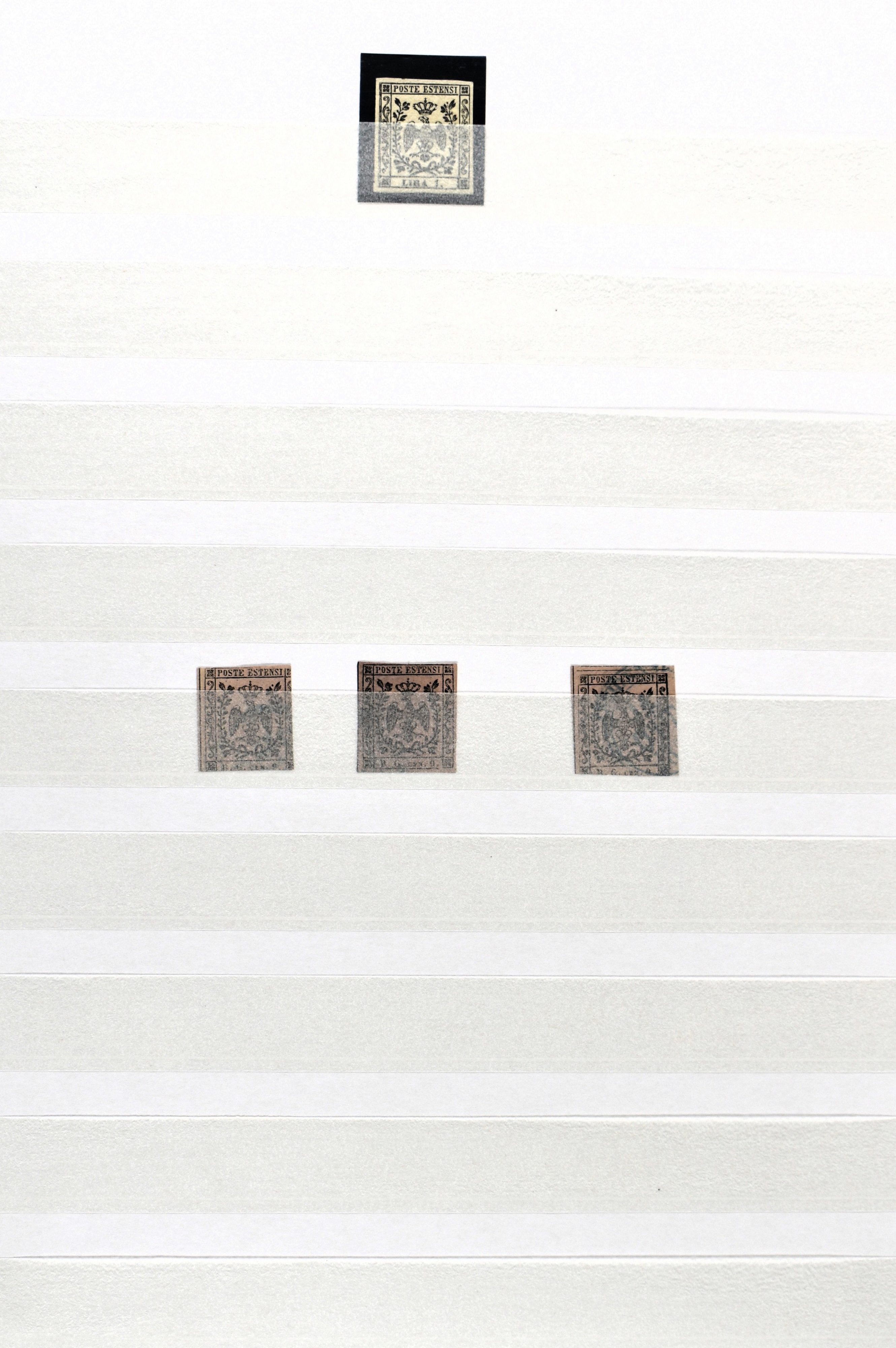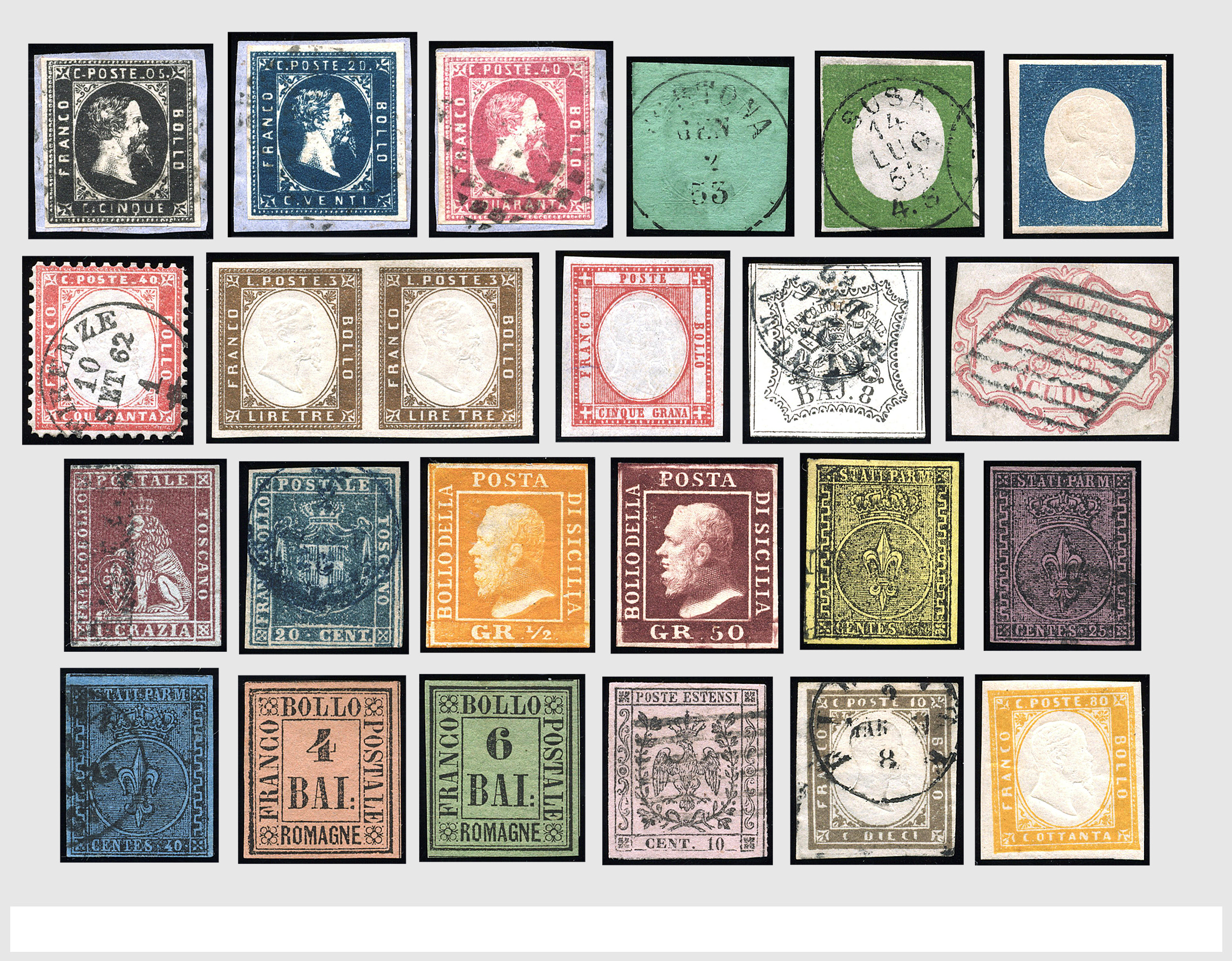 2193 imageOLD ITALIAN STATES 1850-1863, o/(*)/* extensive collection in 2 stockbooks, as always in mixed quality and with some reprints and forgeries but also several better to good numbers available, a lot of stamps are signed by a.o.: Diena and Raybaudi, the lot is completely depicted on our website for a good impression. Nice lot with a huge, huge catalogue value!! (Image) (Image2) (Image3) (Image4) (Image5) (Image6) (Image7) (Image8) (Image9) (Image10) (Image11) (Image12) (Image13) (Image14) (Image15) (Image16) (Image17) (Image18) (Image19) (Image20) (Image21) (Image22) (Image23) (Image24) (Image25) (Image26) (Image27) (Image28) (Image29) (Image30) (Image31) (Image32) (Image33) (Image34) (Image35) (Image36) (Image37) (Image38) (Image39) (Image40) (Image41) (Image42) (Image43) (Image44) (Image45) (Image46) (Image47) (Image48) (Image49) (Image50) (Image51) (Image52) (Image53) (Image54) (Image55) (Image56) (Image57) (Image58) (Image59) (Image60) (Image61) (Image62) (Image63) (Image64) (Image65) (Image66) (Image67) (Image68) (Image69) (Image70) (Image71) (Image72) (Image73) (Image74) (Image75) (Image76) (Image77) (Image78) (Image79) (Image80) (Image81) (Image82) (Image83) (Image84) (Image85) (Image86) (Image87) (Image88) (Image89) (Image90) (Image91) (Image92) (Image93) (Image94) (Image95) (Image96)