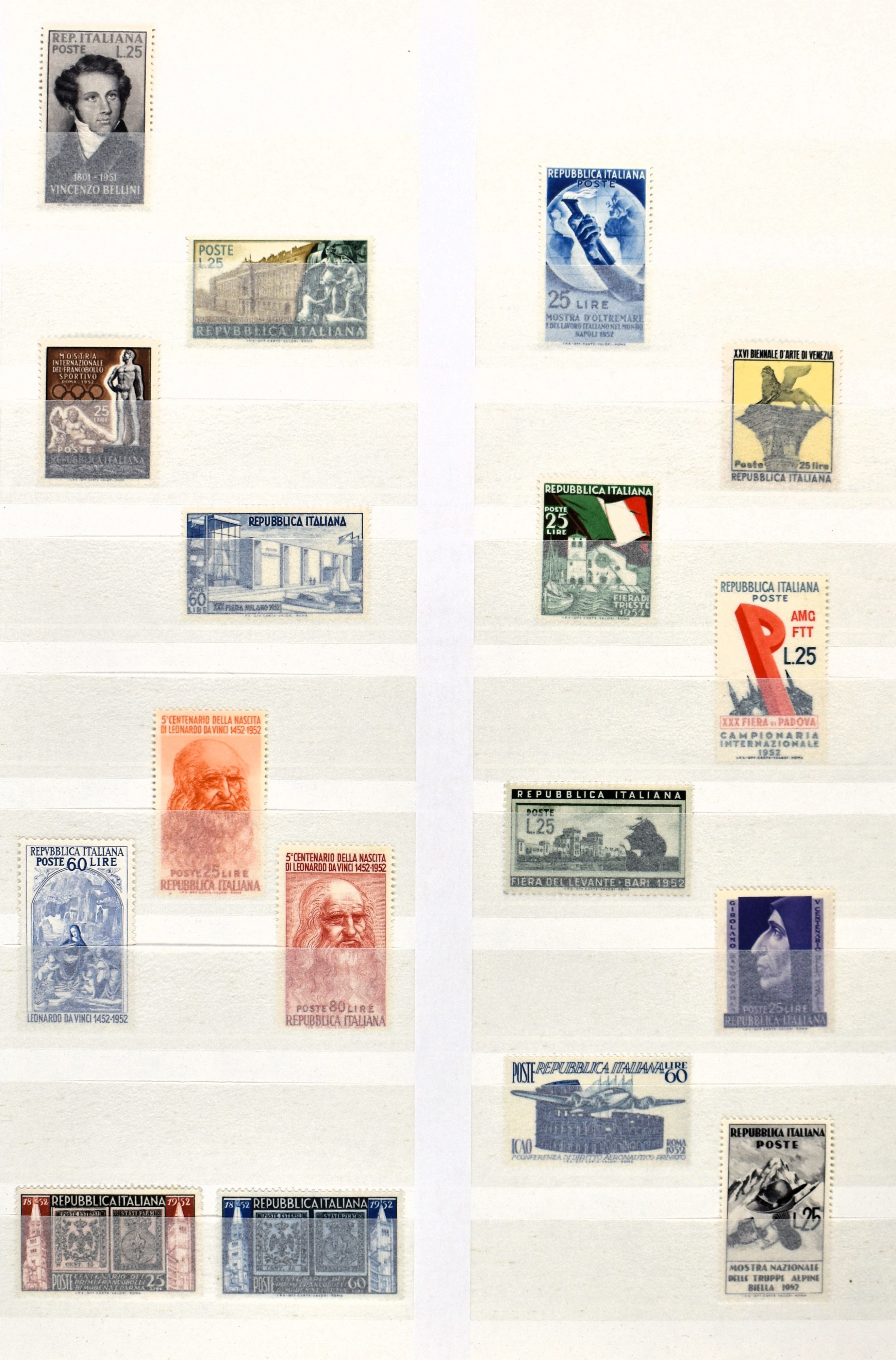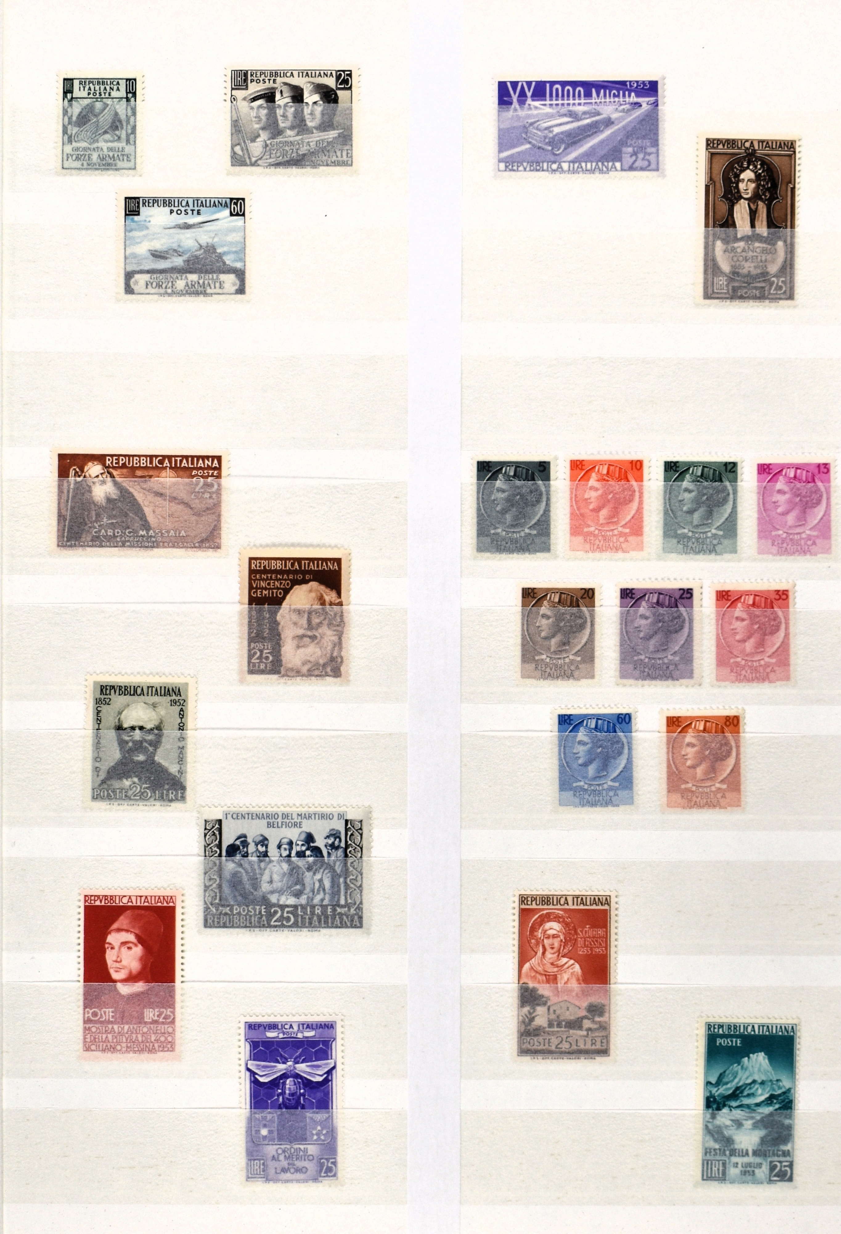 2196 imageITALY 1863-1998, o/(*)/*/** collection in 2 stock books with a nice section of the earlier issues (*)/* including better numbers, further a.o.: Mi. 82(2), 97/98, 153/56(2), 188/03, I205 ''La Gronchi Rosa', 361, 445/46(5) and Official 10 (as is), package stamps, postage due, AMG etc. etc (Image) (Image2) (Image3) (Image4) (Image5) (Image6) (Image7) (Image8) (Image9) (Image10) (Image11) (Image12) (Image13) (Image14) (Image15) (Image16) (Image17) (Image18) (Image19) (Image20) (Image21) (Image22) (Image23) (Image24) (Image25) (Image26) (Image27) (Image28) (Image29) (Image30) (Image31) (Image32) (Image33) (Image34) (Image35) (Image36) (Image37) (Image38) (Image39) (Image40) (Image41) (Image42) (Image43) (Image44) (Image45) (Image46) (Image47) (Image48) (Image49) (Image50) (Image51) (Image52) (Image53) (Image54) (Image55) (Image56) (Image57) (Image58) (Image59) (Image60) (Image61) (Image62) (Image63) (Image64) (Image65) (Image66) (Image67) (Image68) (Image69) (Image70) (Image71) (Image72) (Image73) (Image74) (Image75) (Image76) (Image77) (Image78)