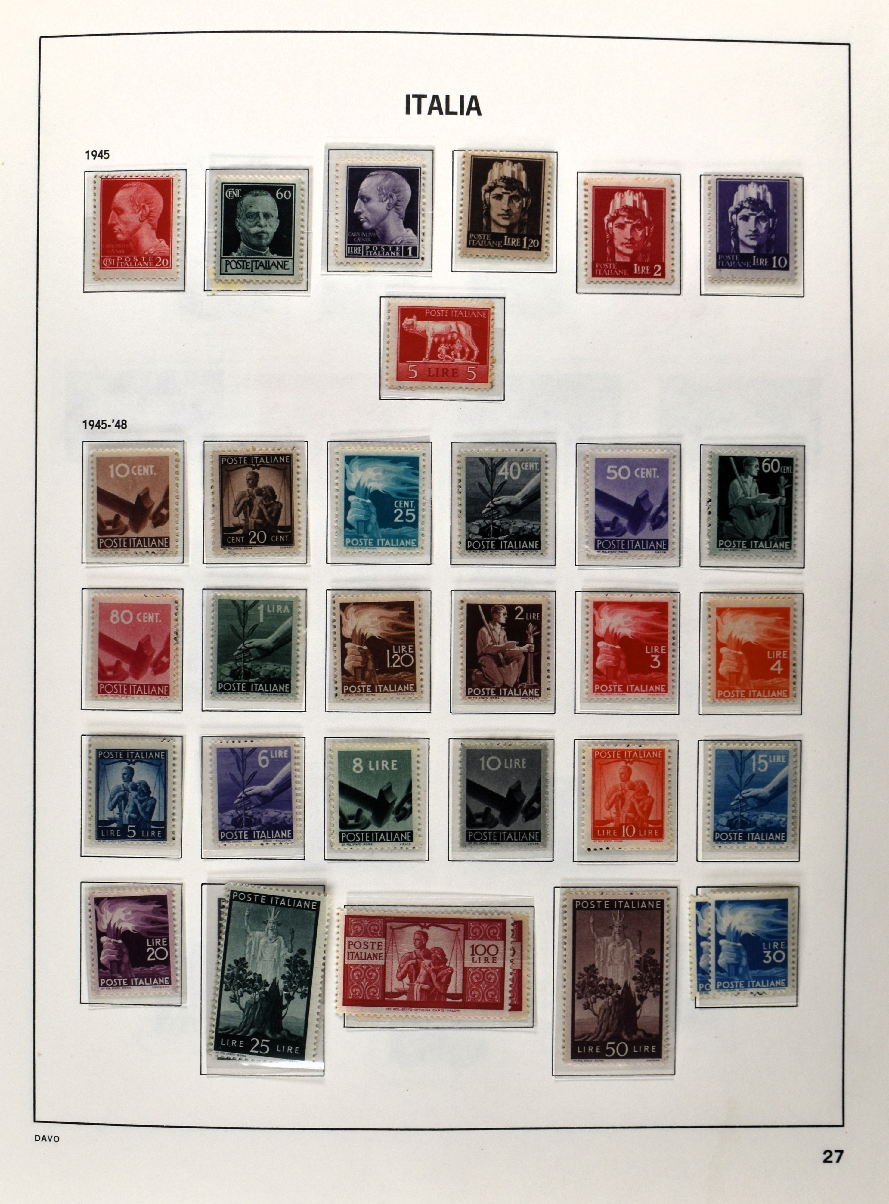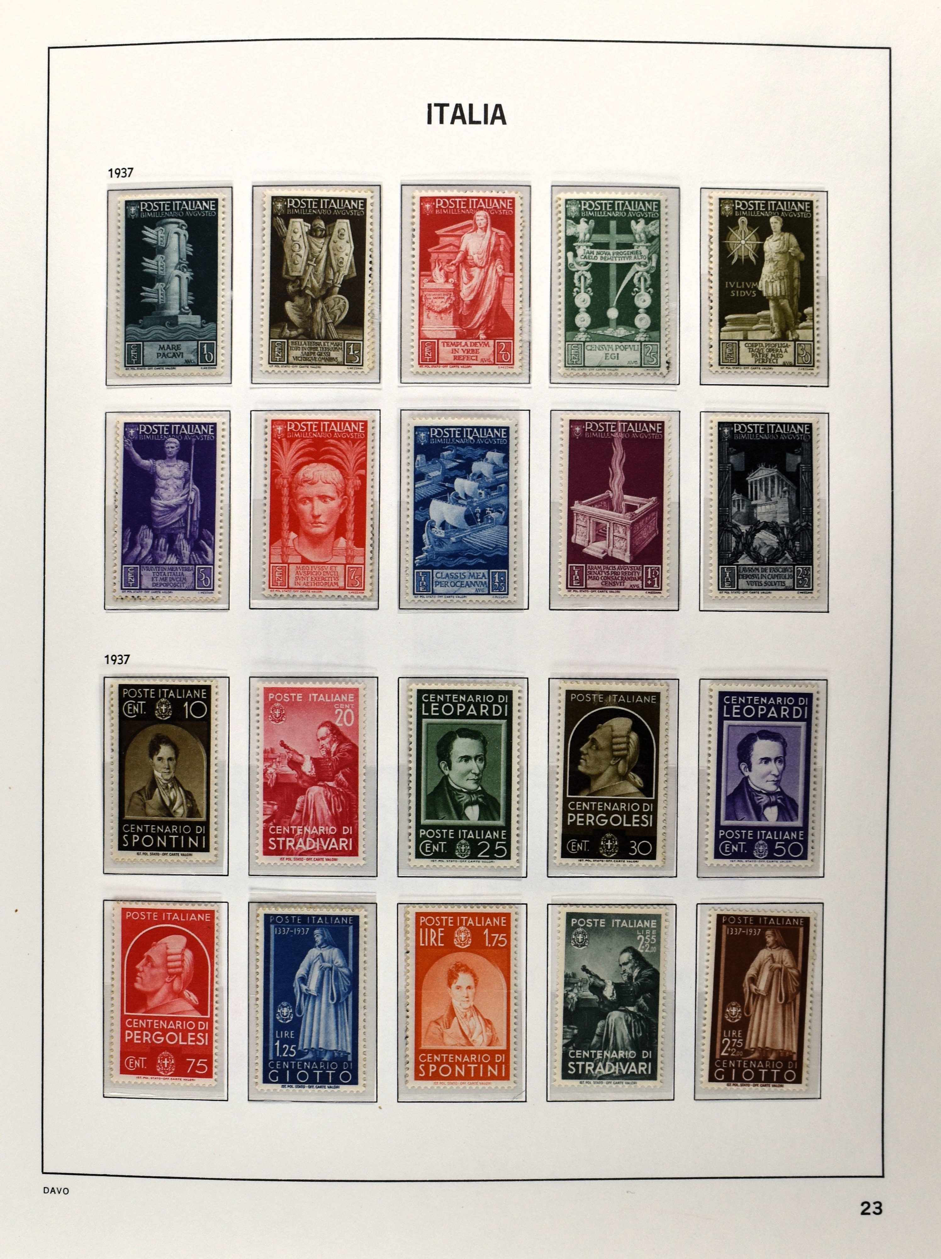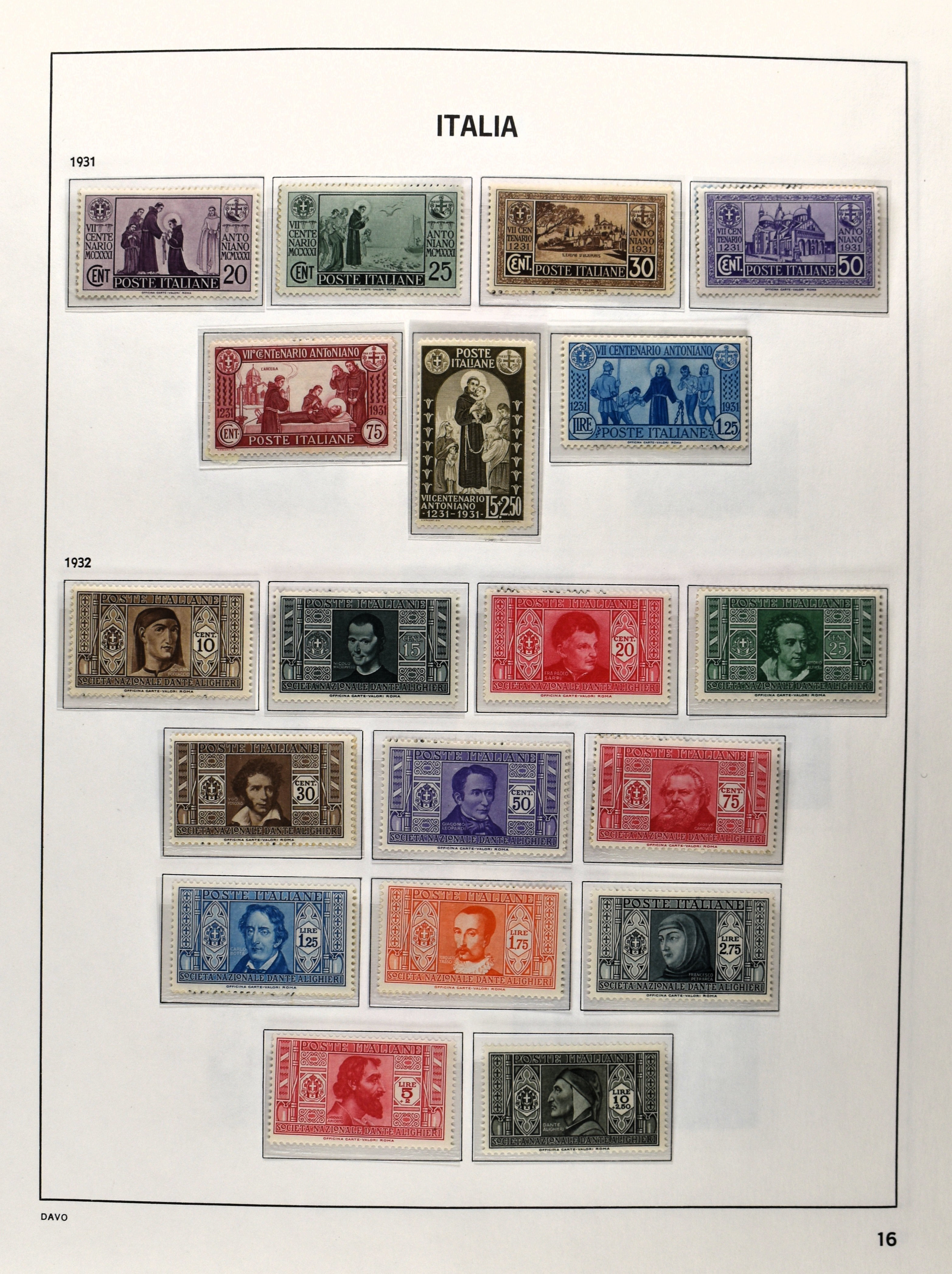 2197 imageITALY 1863-2006, o/*/** in 3 Davo albums with several good numbers and sets f.i. 153/156**, 188/193, 194/200**, 494/512, 682/704, etc. Nice quality and very high catalogue value (Image) (Image2) (Image3) (Image4) (Image5) (Image6) (Image7) (Image8) (Image9) (Image10) (Image11) (Image12) (Image13) (Image14) (Image15) (Image16) (Image17) (Image18) (Image19) (Image20) (Image21) (Image22) (Image23) (Image24) (Image25) (Image26) (Image27) (Image28) (Image29) (Image30) (Image31) (Image32) (Image33) (Image34) (Image35) (Image36) (Image37) (Image38) (Image39) (Image40) (Image41)
