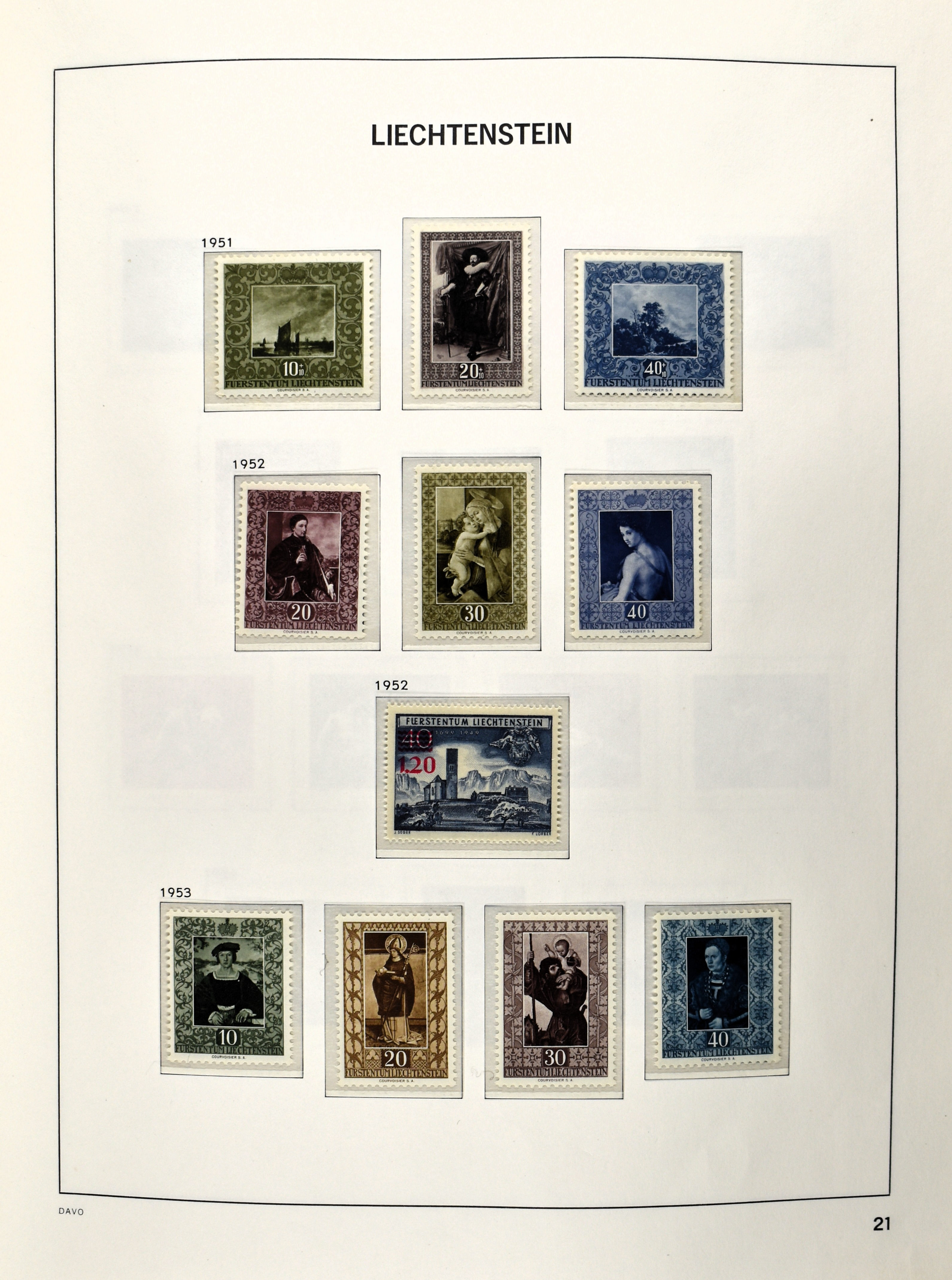 2200 imageLIECHTENSTEIN 1920-2022, o/*/** collection in 3 Davo albums with a lot of better numbers and sets f.i: Mi. 82/89, 94/107, 140/42, 185KB, 304/305, 309, airmail 1/16, Official 1/10 and several more. For a better impression you can visit our website where the lot is well depicted (Image) (Image2) (Image3) (Image4) (Image5) (Image6) (Image7) (Image8) (Image9) (Image10) (Image11) (Image12) (Image13) (Image14) (Image15) (Image16) (Image17) (Image18) (Image19) (Image20) (Image21) (Image22) (Image23) (Image24) (Image25) (Image26) (Image27)