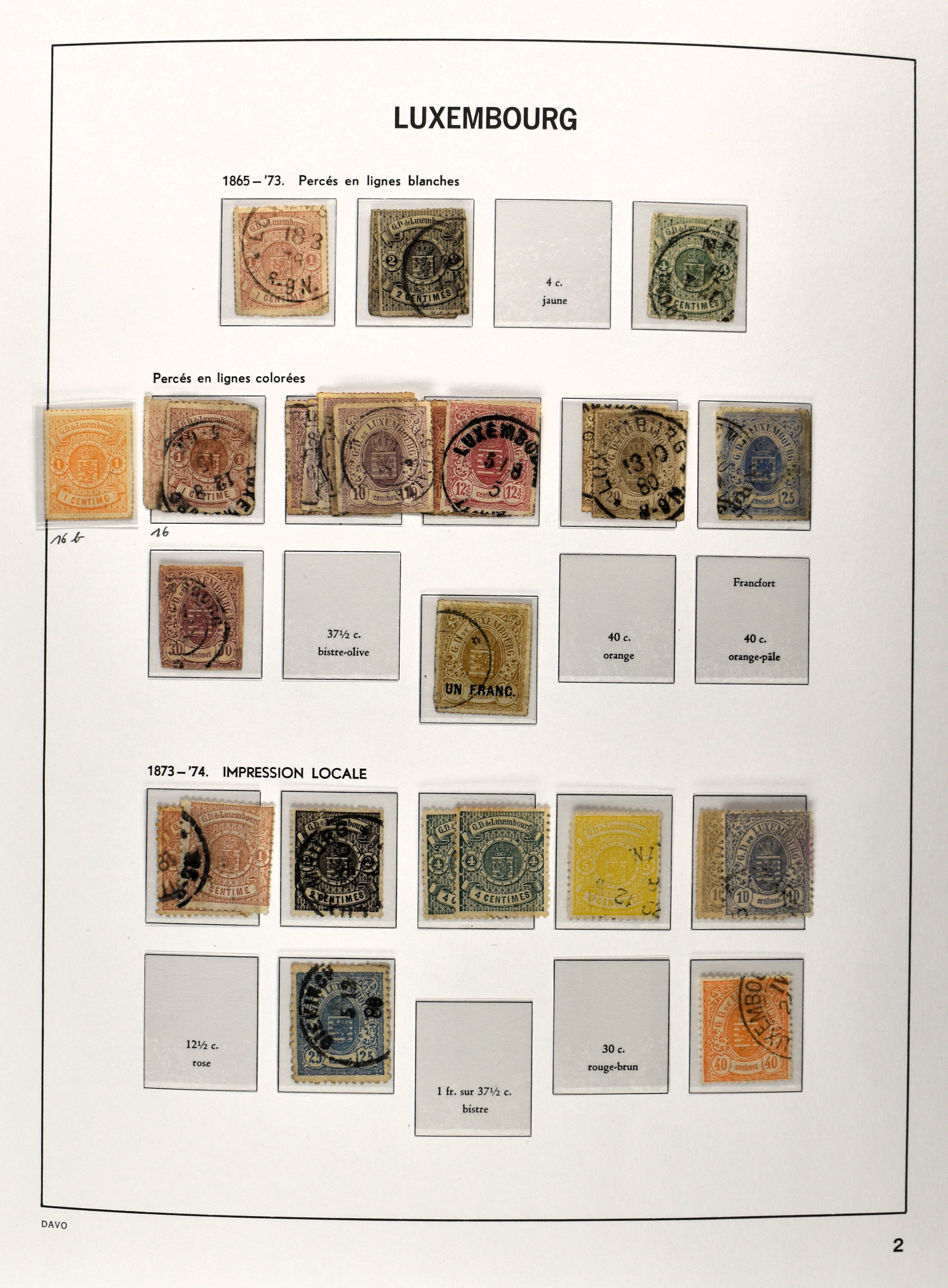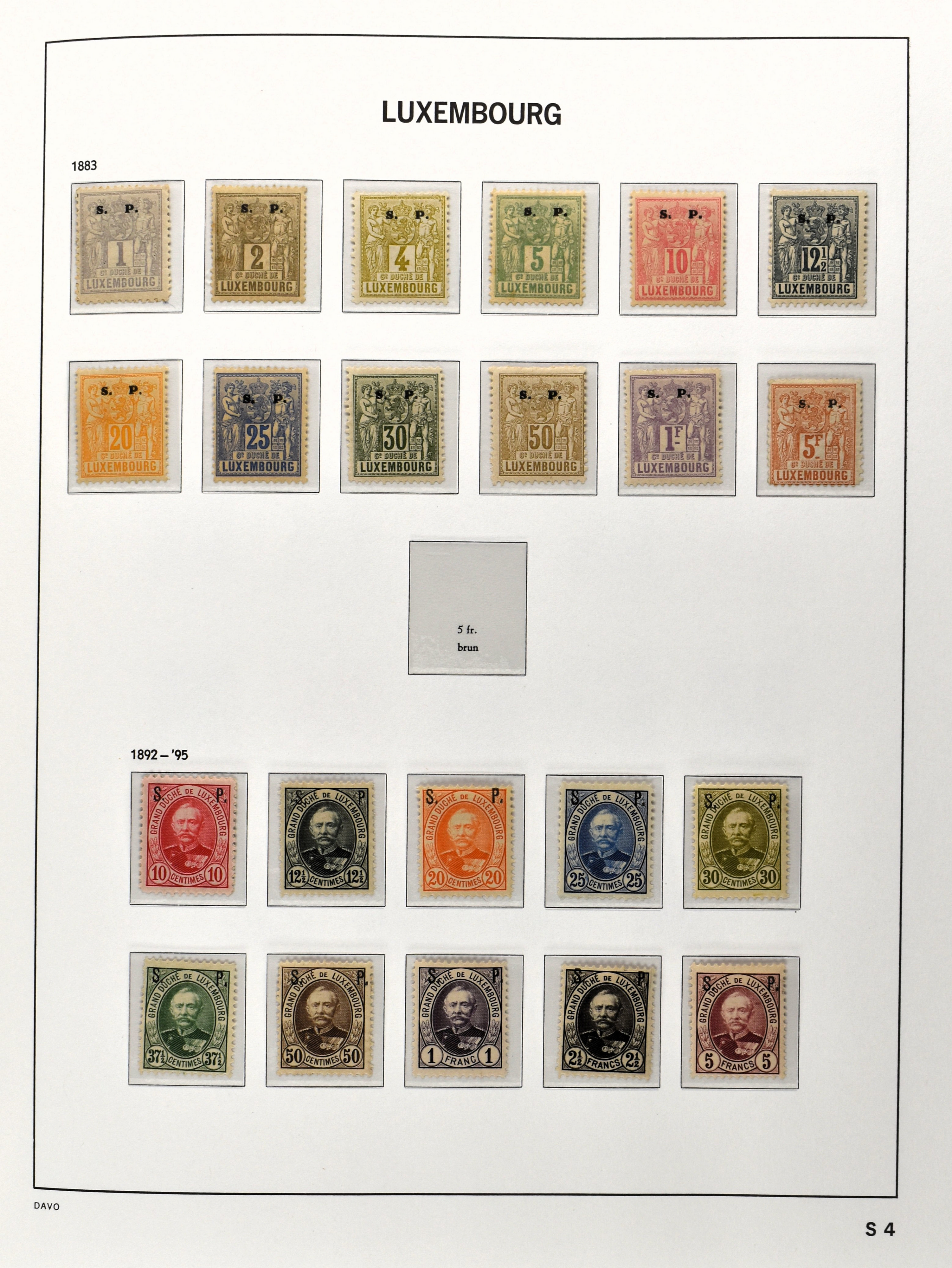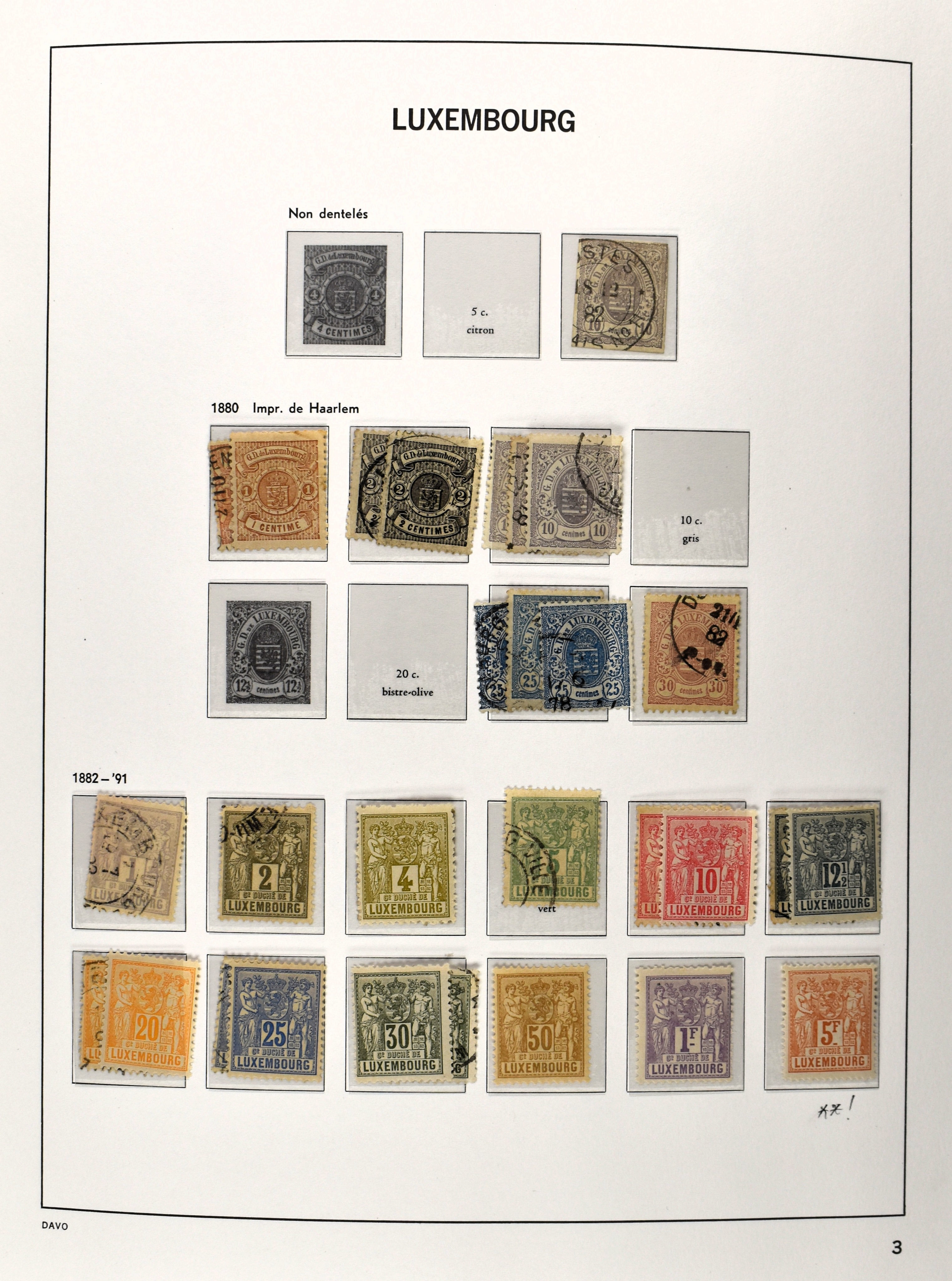 2202 imageLUXEMBOURG 1852-2007, o/*/** in 3 Davo albums wit a lot of good and better numbers i.e. Mi. 1/2, 266/80**, 490/94 (2), good section officials and postage due. Nice lot in overall nice quality (Image) (Image2) (Image3) (Image4) (Image5) (Image6) (Image7) (Image8) (Image9) (Image10) (Image11) (Image12) (Image13) (Image14) (Image15) (Image16) (Image17) (Image18) (Image19) (Image20) (Image21) (Image22) (Image23) (Image24) (Image25) (Image26) (Image27) (Image28) (Image29) (Image30) (Image31) (Image32) (Image33) (Image34) (Image35) (Image36) (Image37) (Image38) (Image39) (Image40) (Image41) (Image42) (Image43) (Image44)