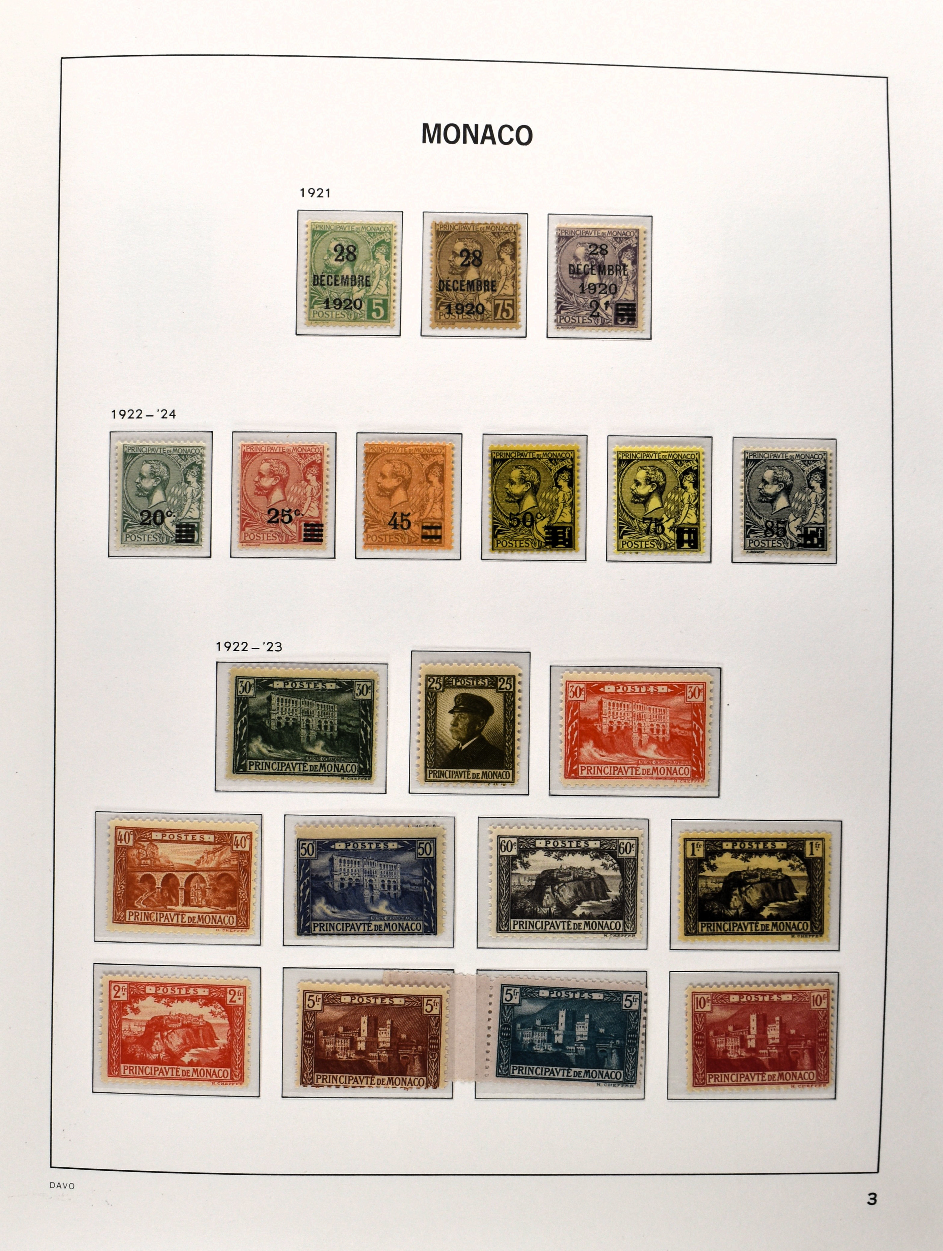 2204 imageMONACO 1891-2017, beautiful unmounted mint collection with all the good and better sets, such as: Yvert 120/136, 138/142, 149/62, Block 1, 164/186, 189, 190/199, 205/219, Block 3/4 A+B, 502/505 A+B, modern blocks, miniature sheets, self adhesives etc. etc. in 6 Davo albums and 1 stock book. (Image) (Image2) (Image3) (Image4) (Image5) (Image6) (Image7) (Image8) (Image9) (Image10) (Image11) (Image12) (Image13) (Image14) (Image15) (Image16) (Image17) (Image18) (Image19) (Image20) (Image21) (Image22) (Image23) (Image24) (Image25) (Image26) (Image27) (Image28) (Image29)